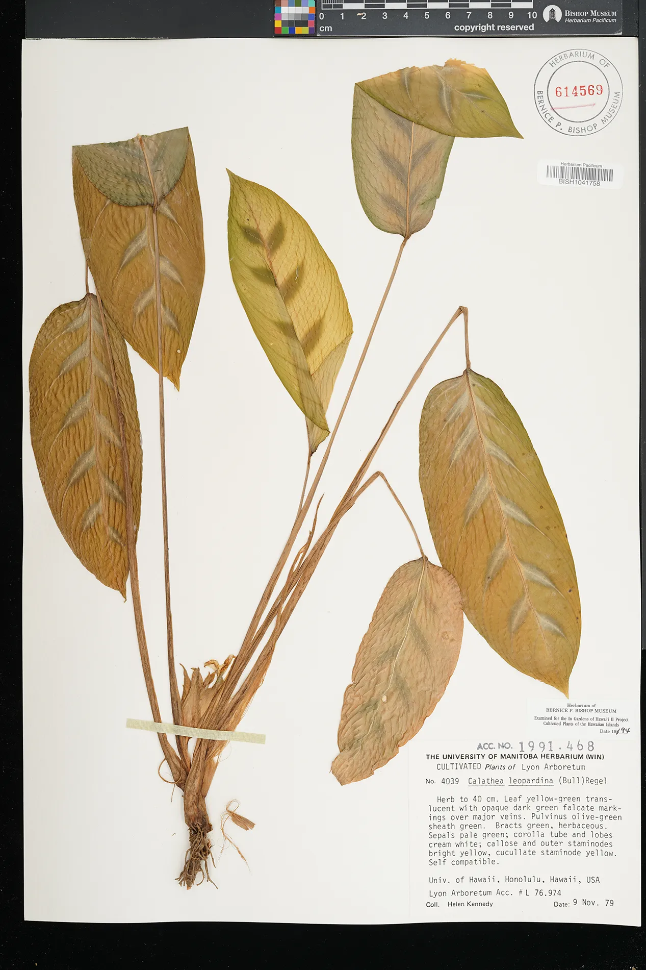 | 1 | Goeppertia concinna | (W.Bull) Borchs. & S.Suárez | Lyon Arboretum | PRESERVED_SPECIMEN | Kennedy, H. | 4039 | Oahu | BISH | 11/9/1979 | |