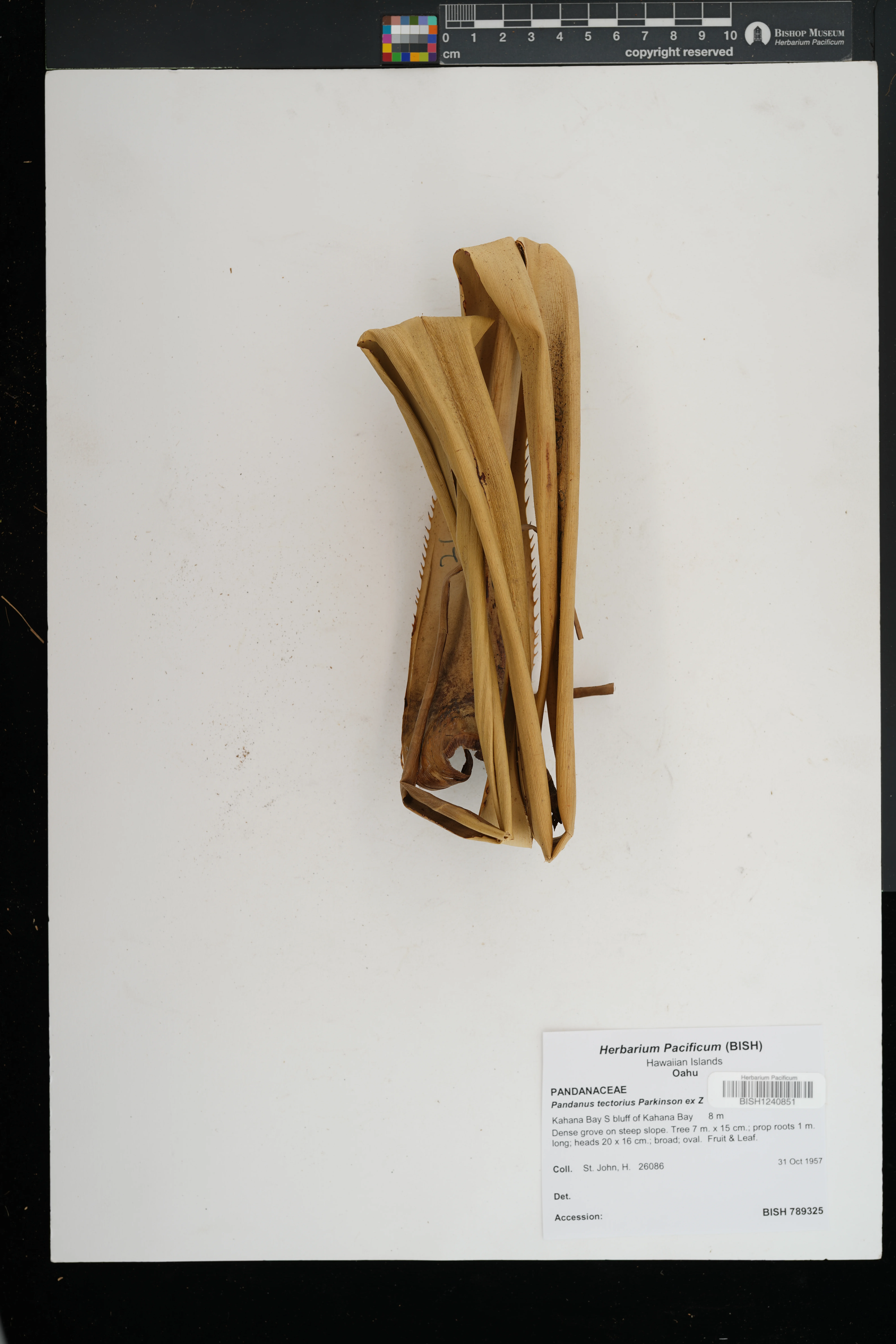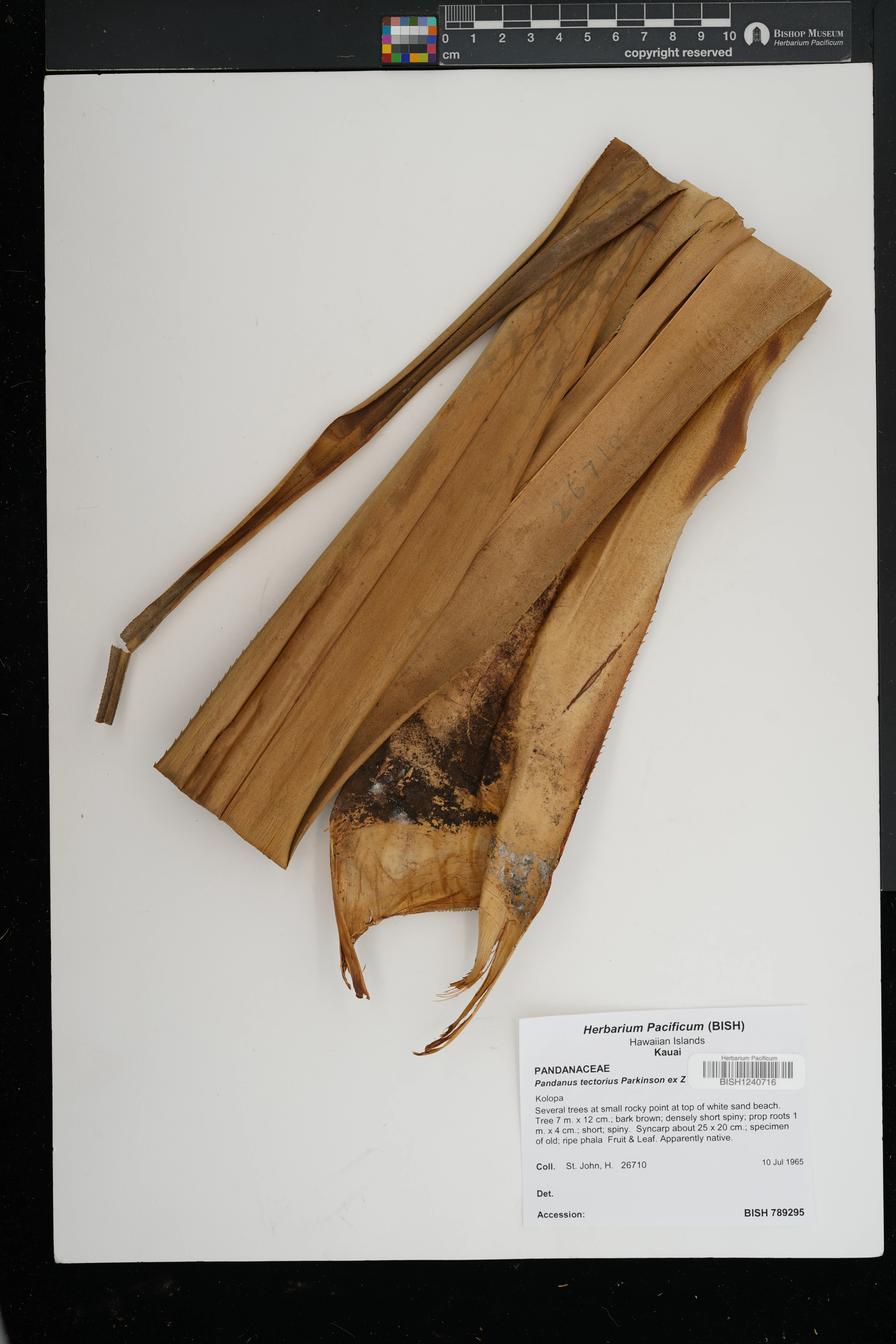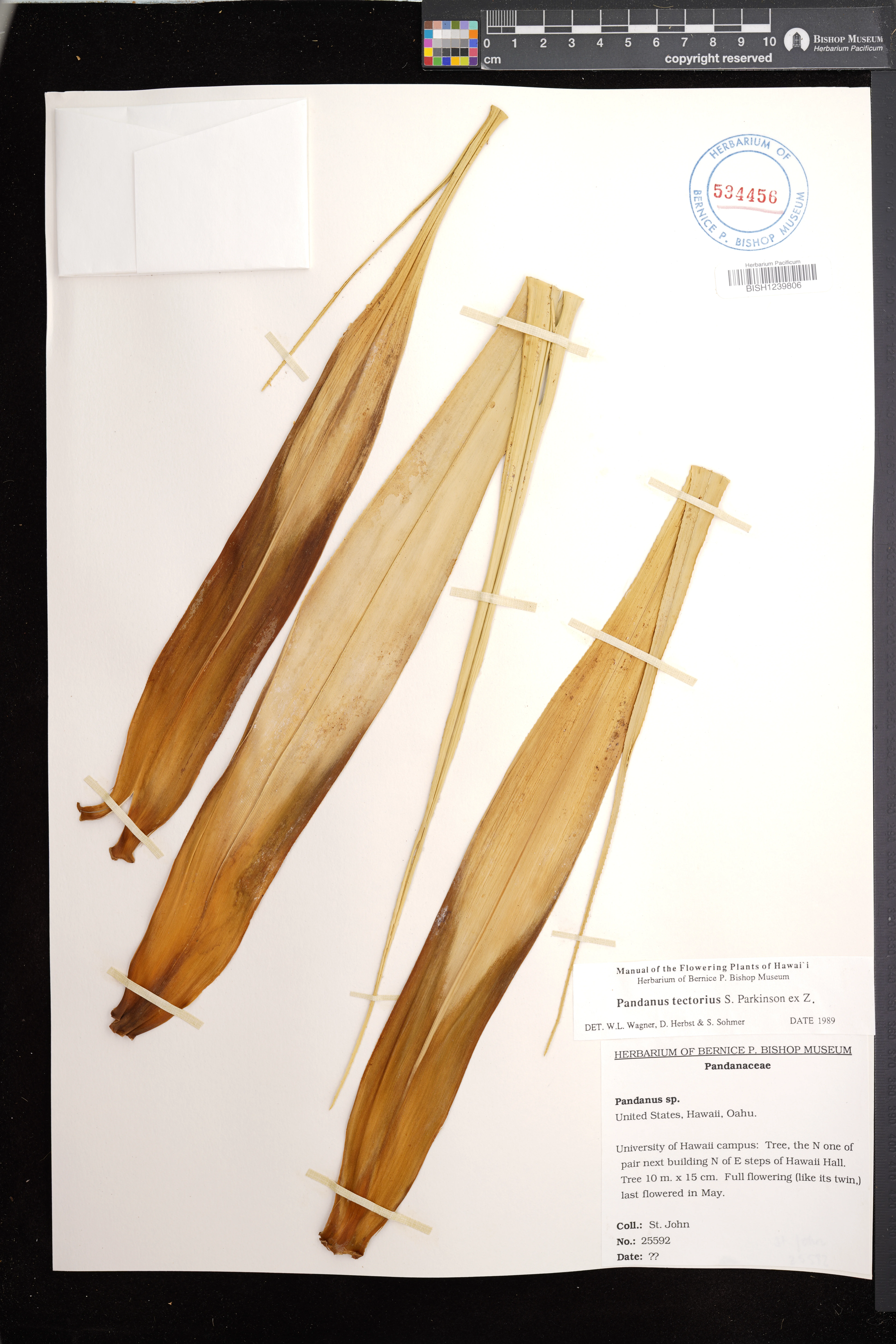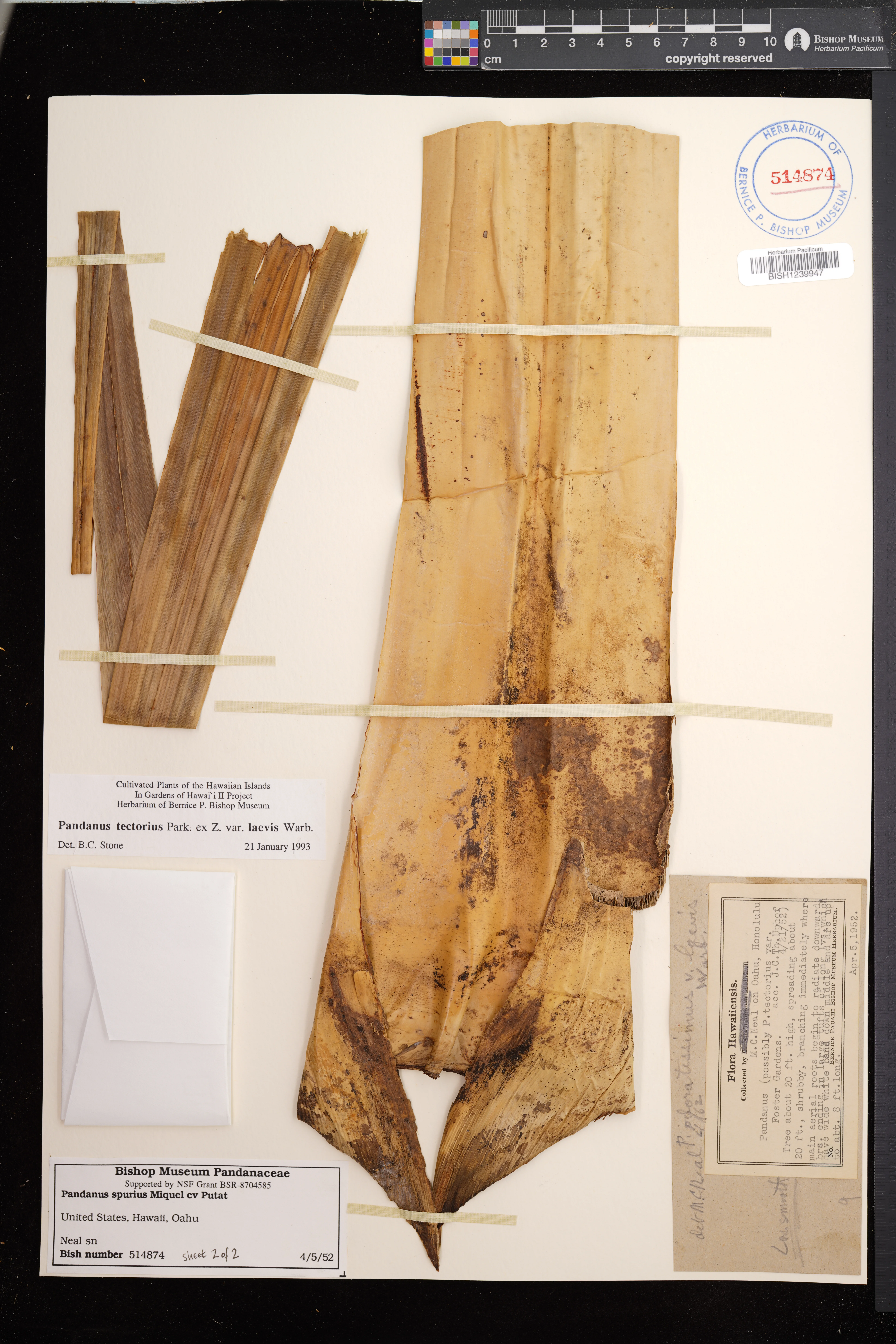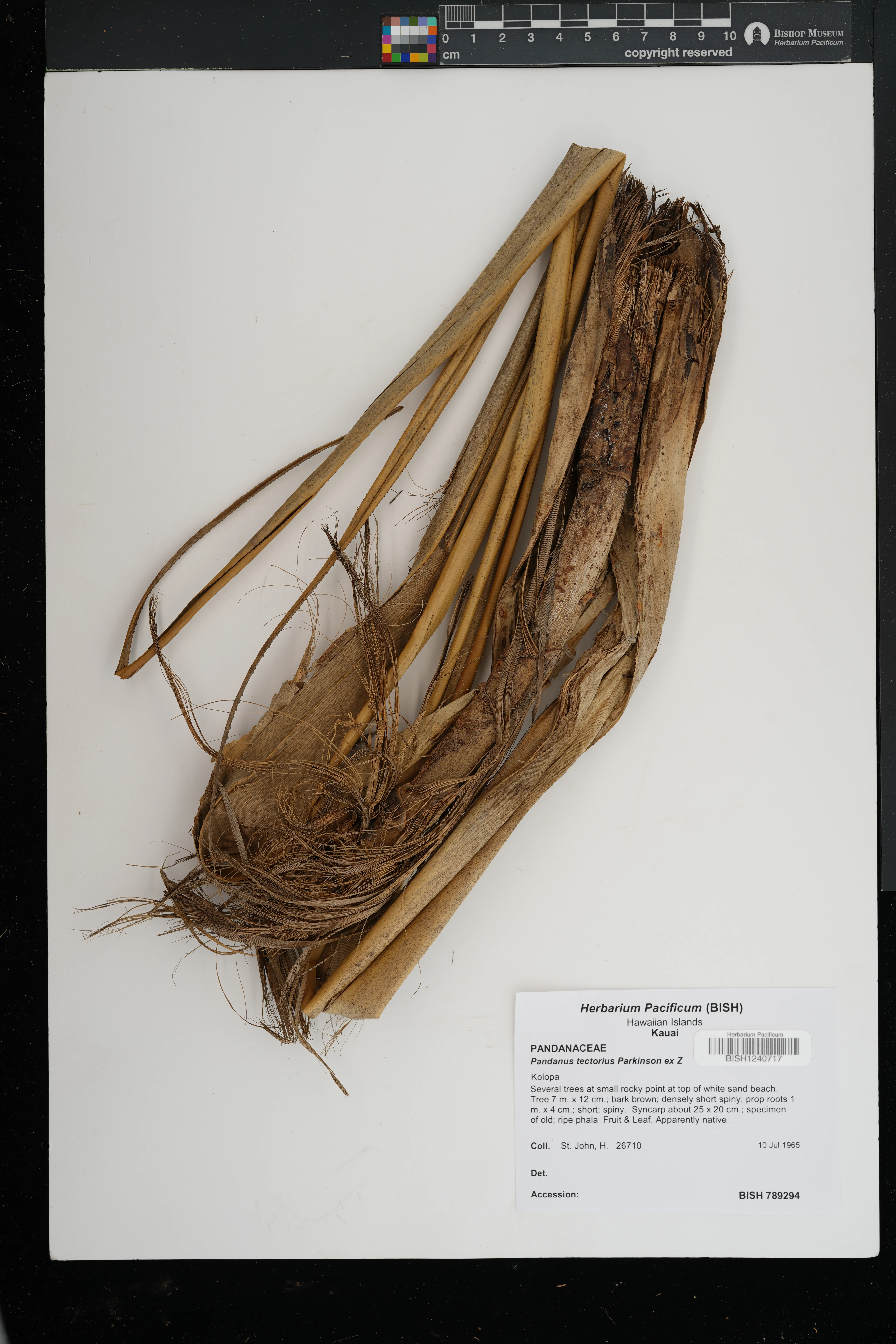 Tree about 20 ft. high; spreading about 20 ft.; shrubby; branching immediately where main aerial roots begin to radiate downward; brs. ending in large tufts of long lvs. which have wide white band down |