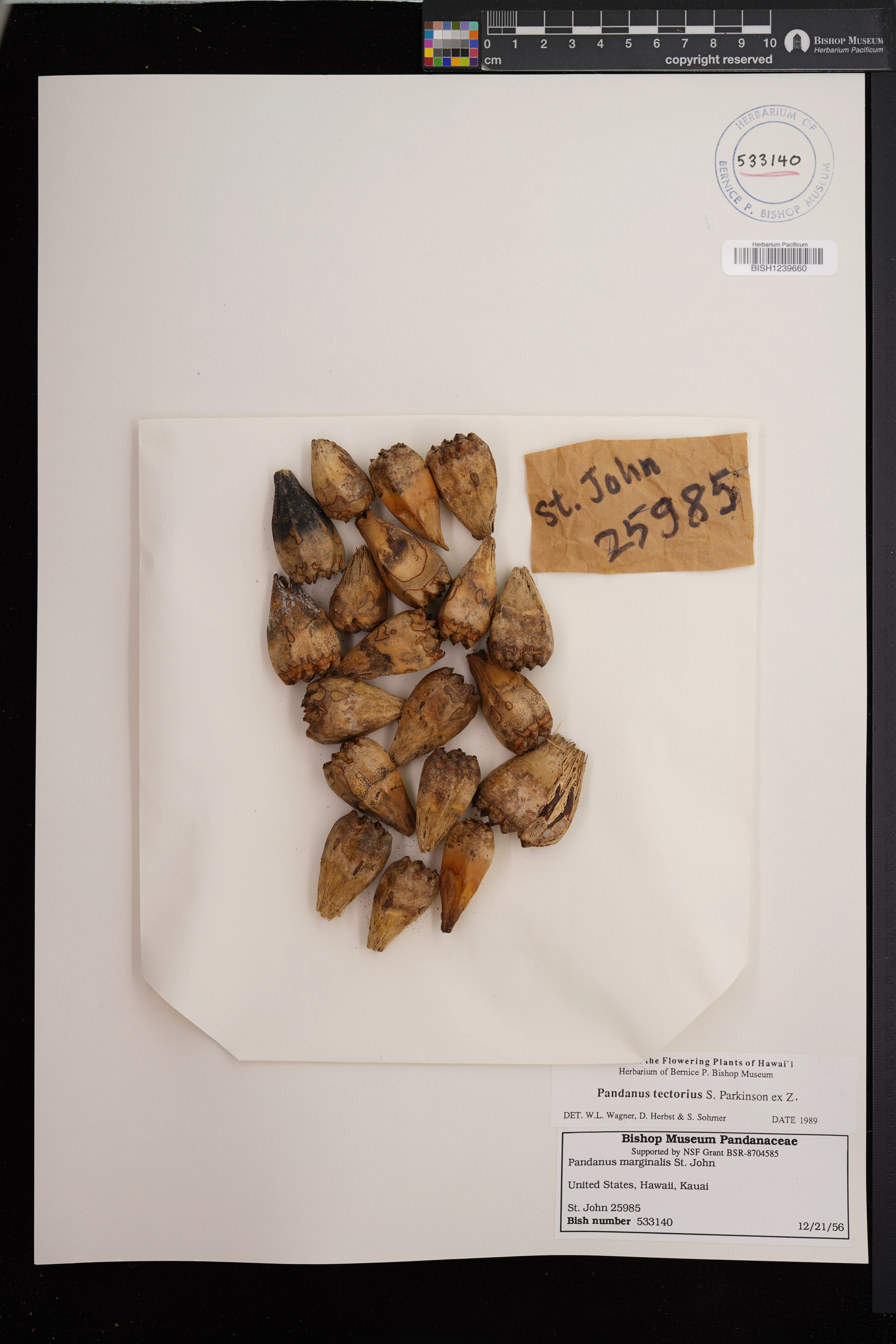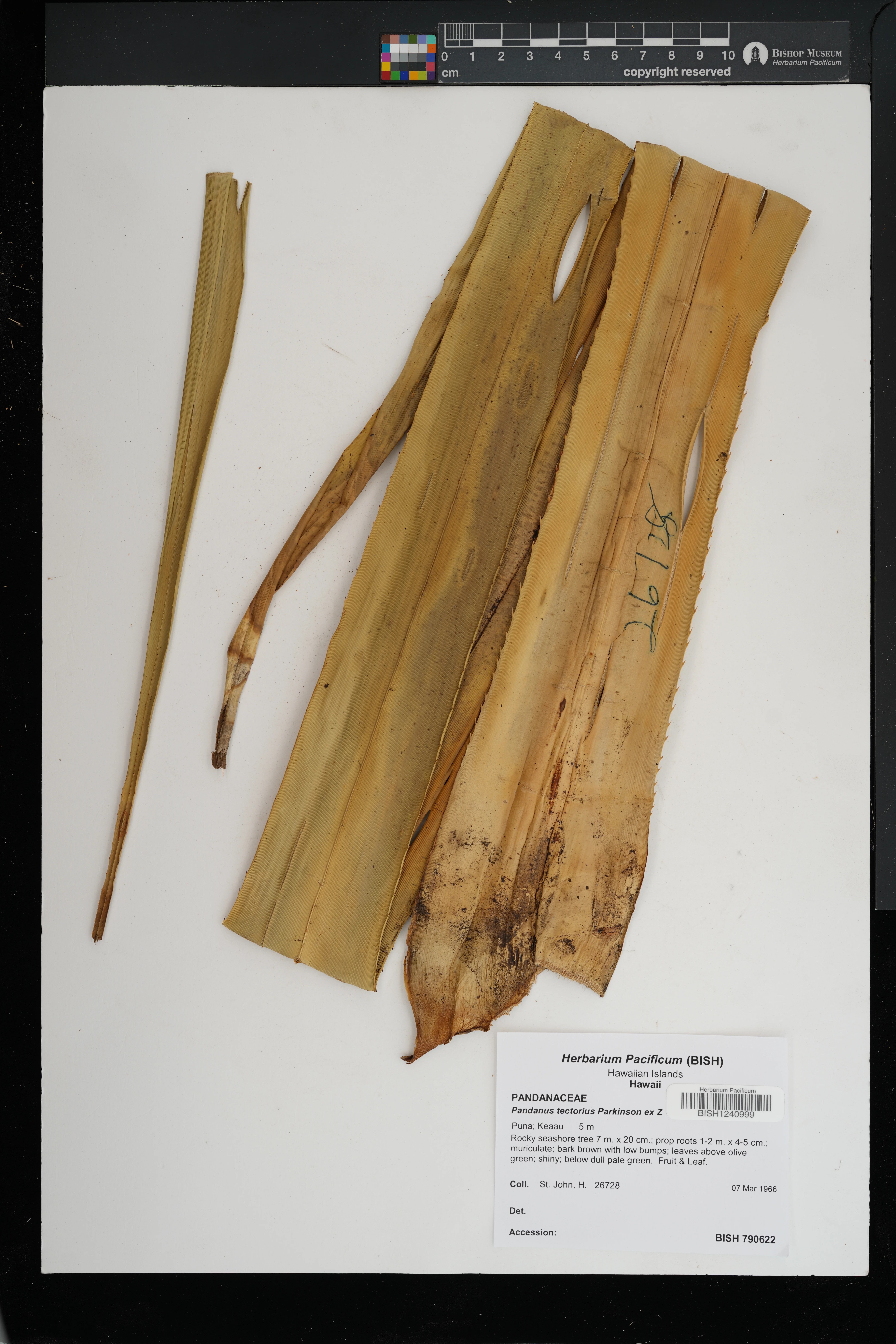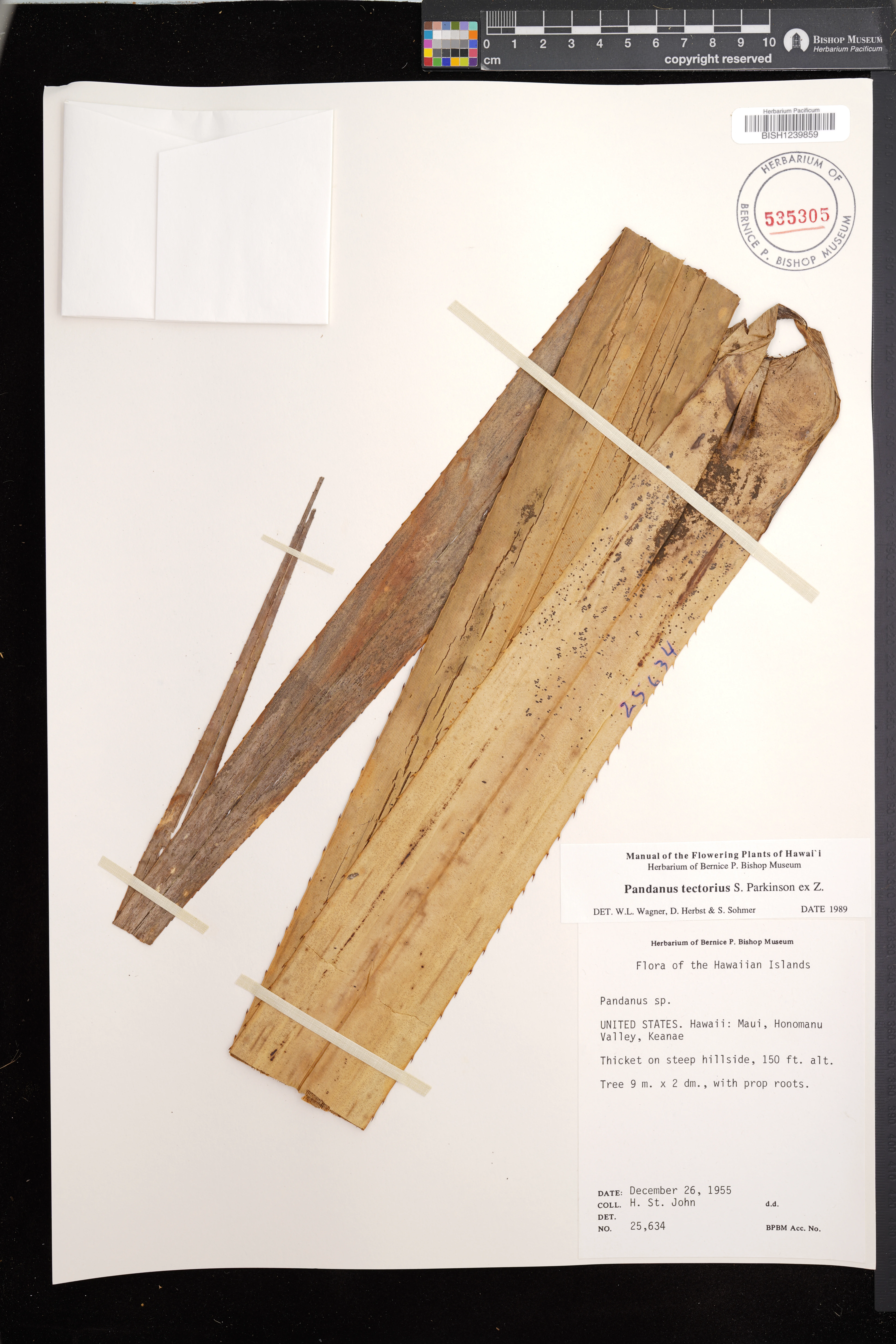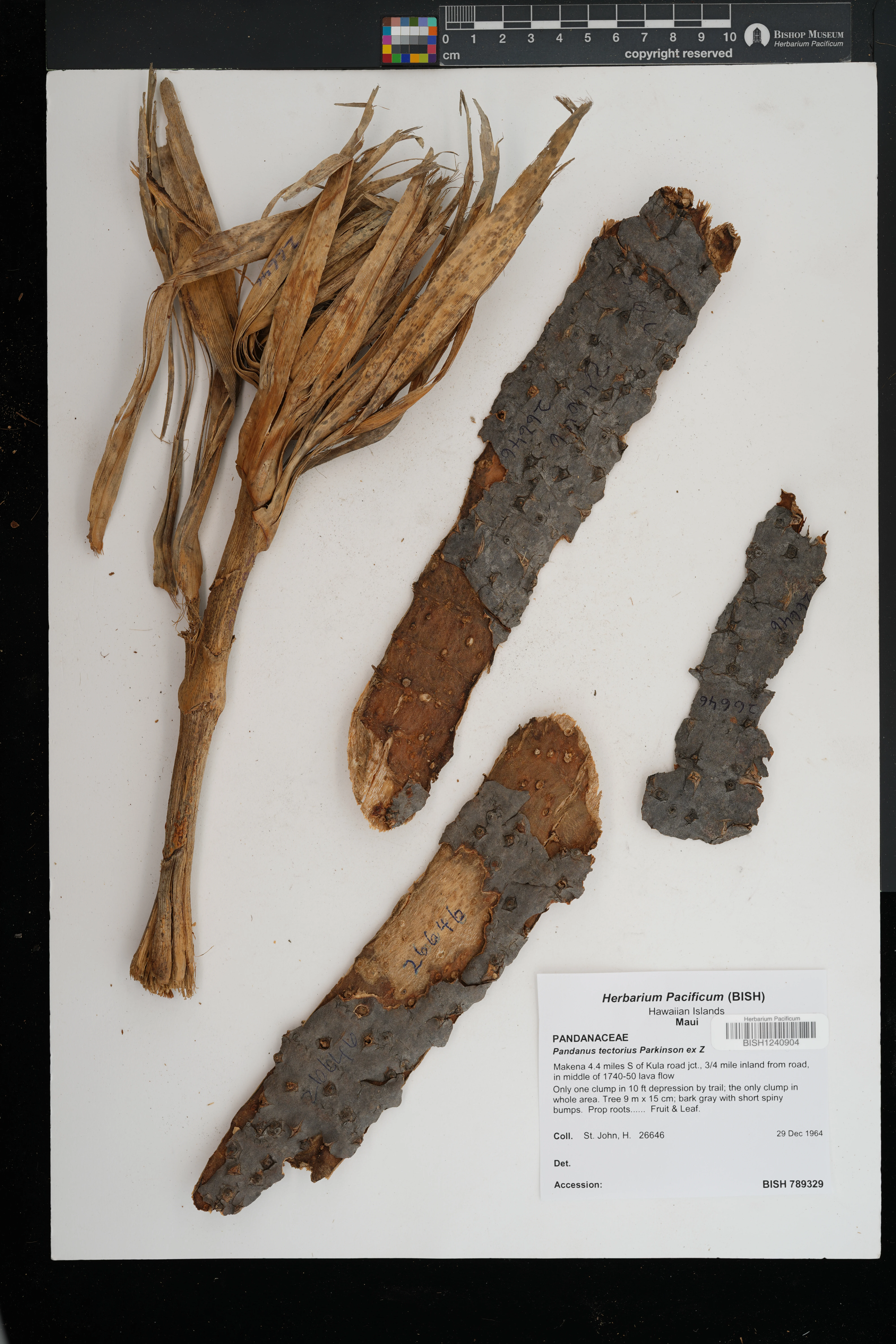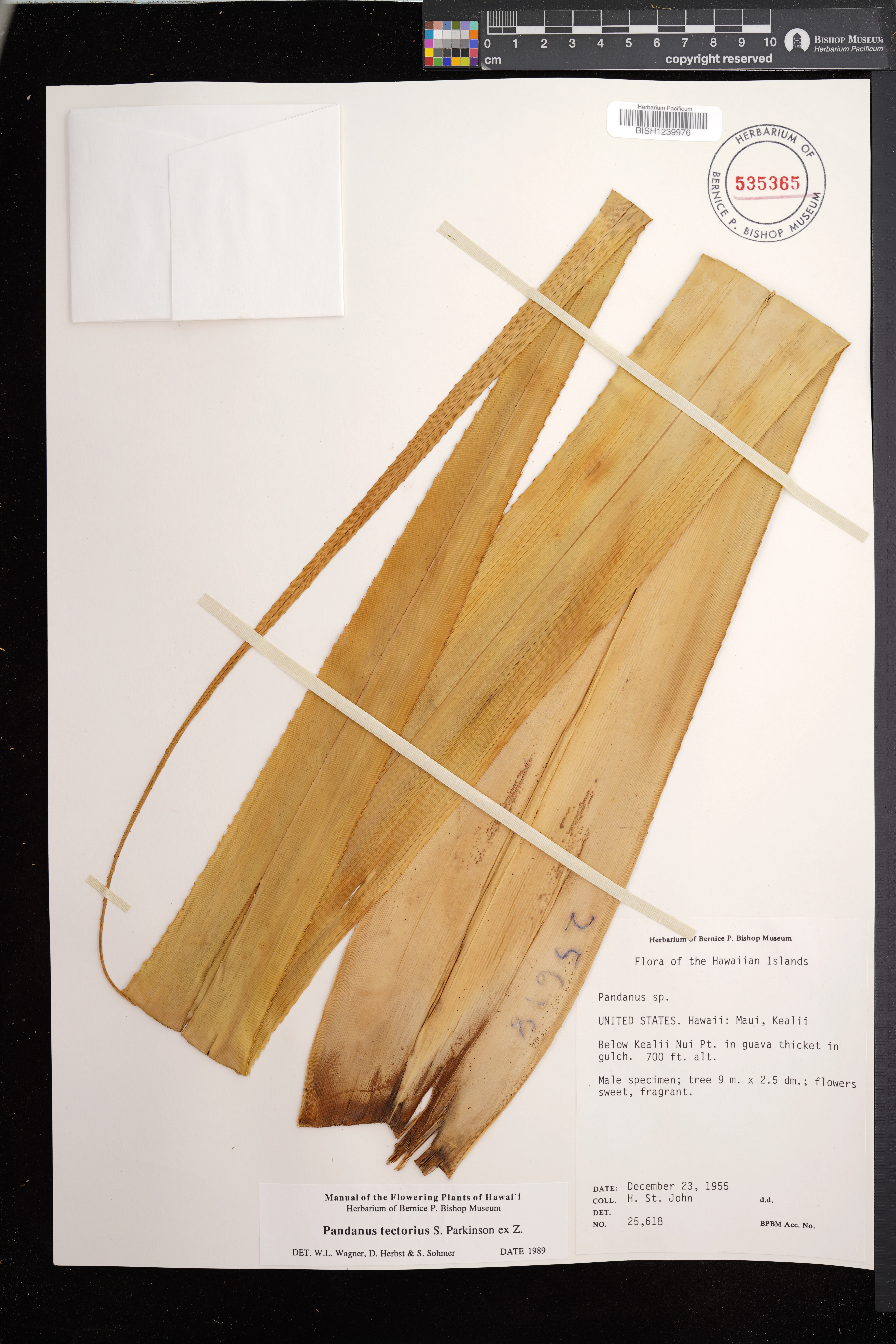Tree about 20 ft. high; spreading about 20 ft.; shrubby; branching immediately where main aerial roots begin to radiate downward; brs. ending in large tufts of long lvs. which have wide white band down |