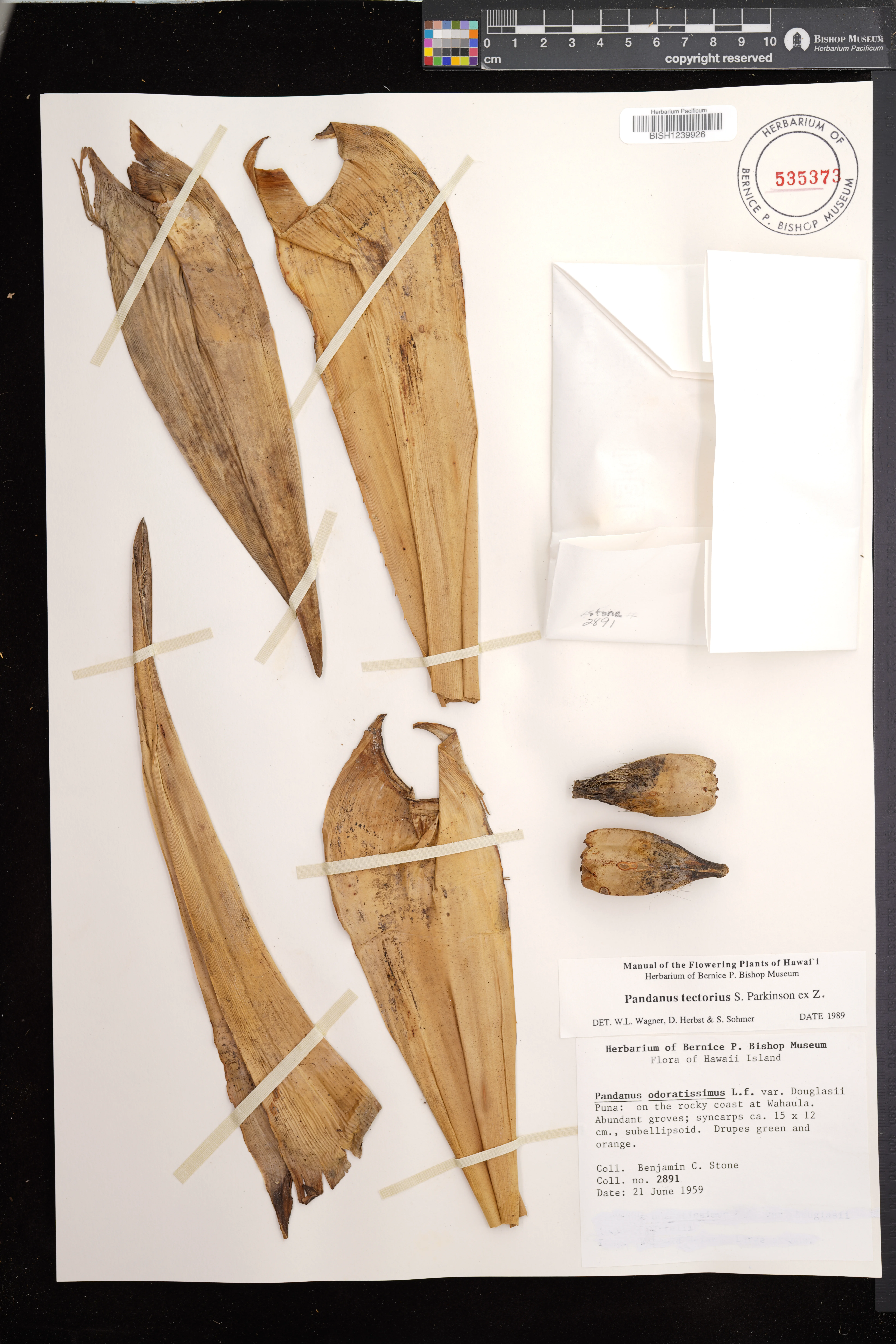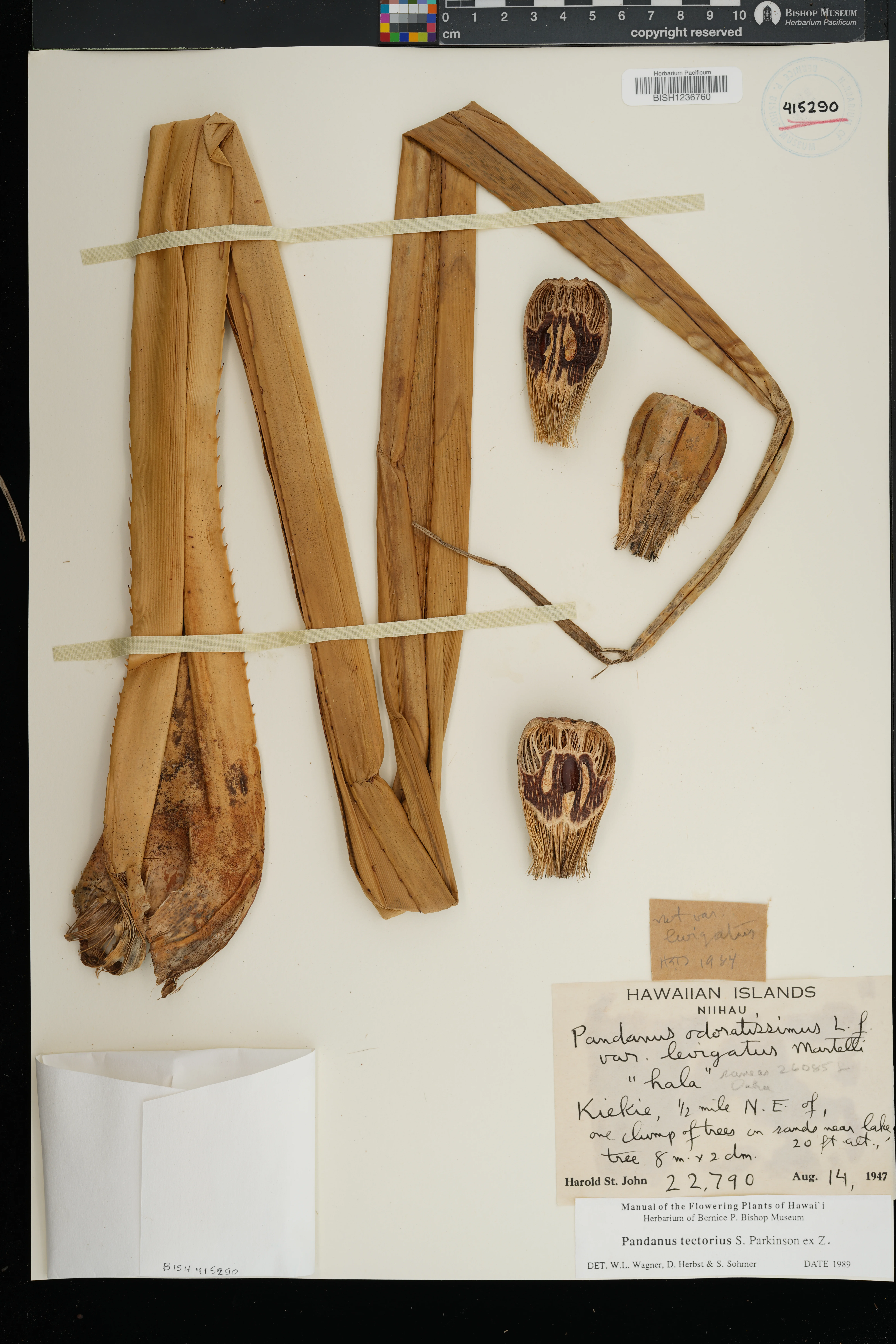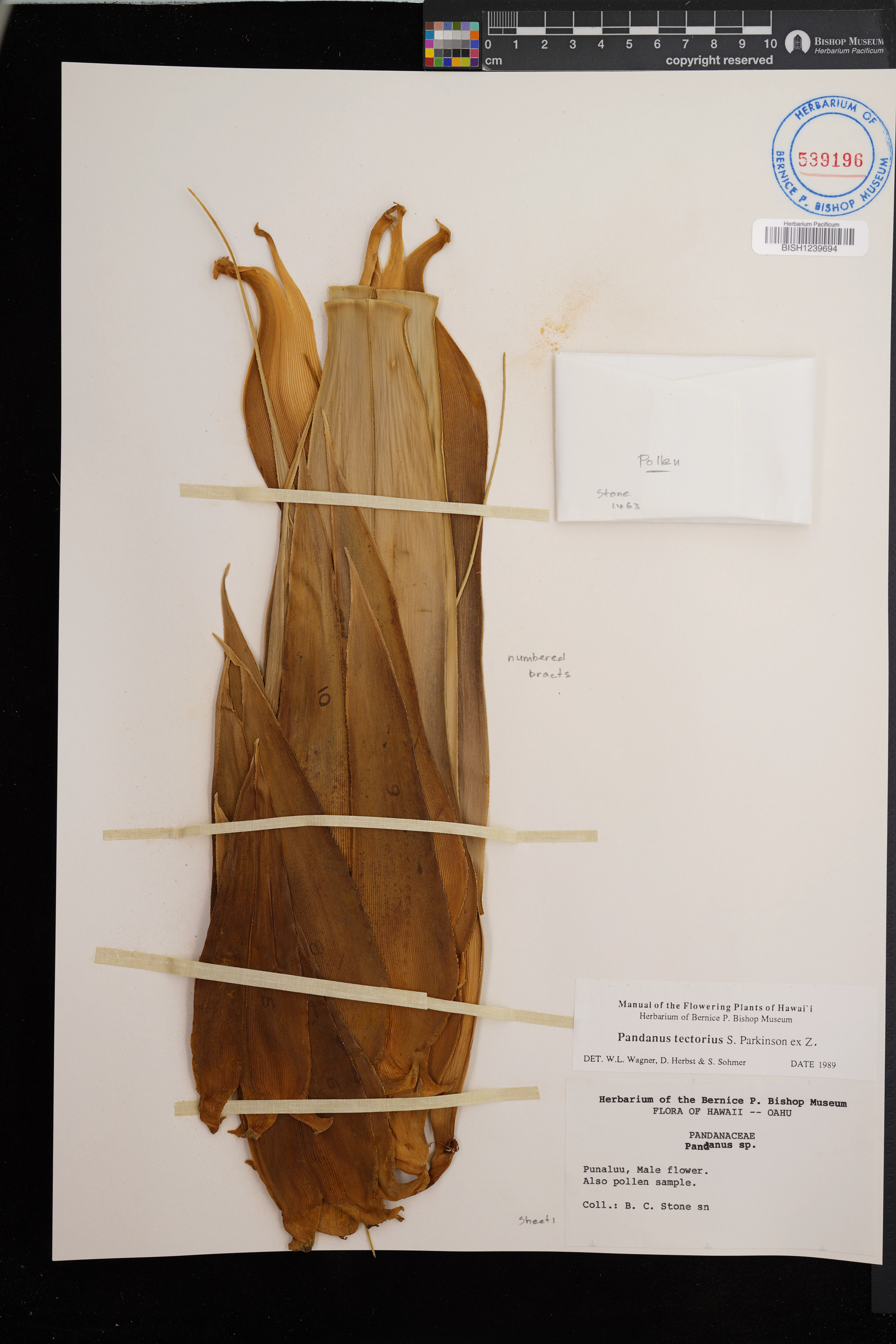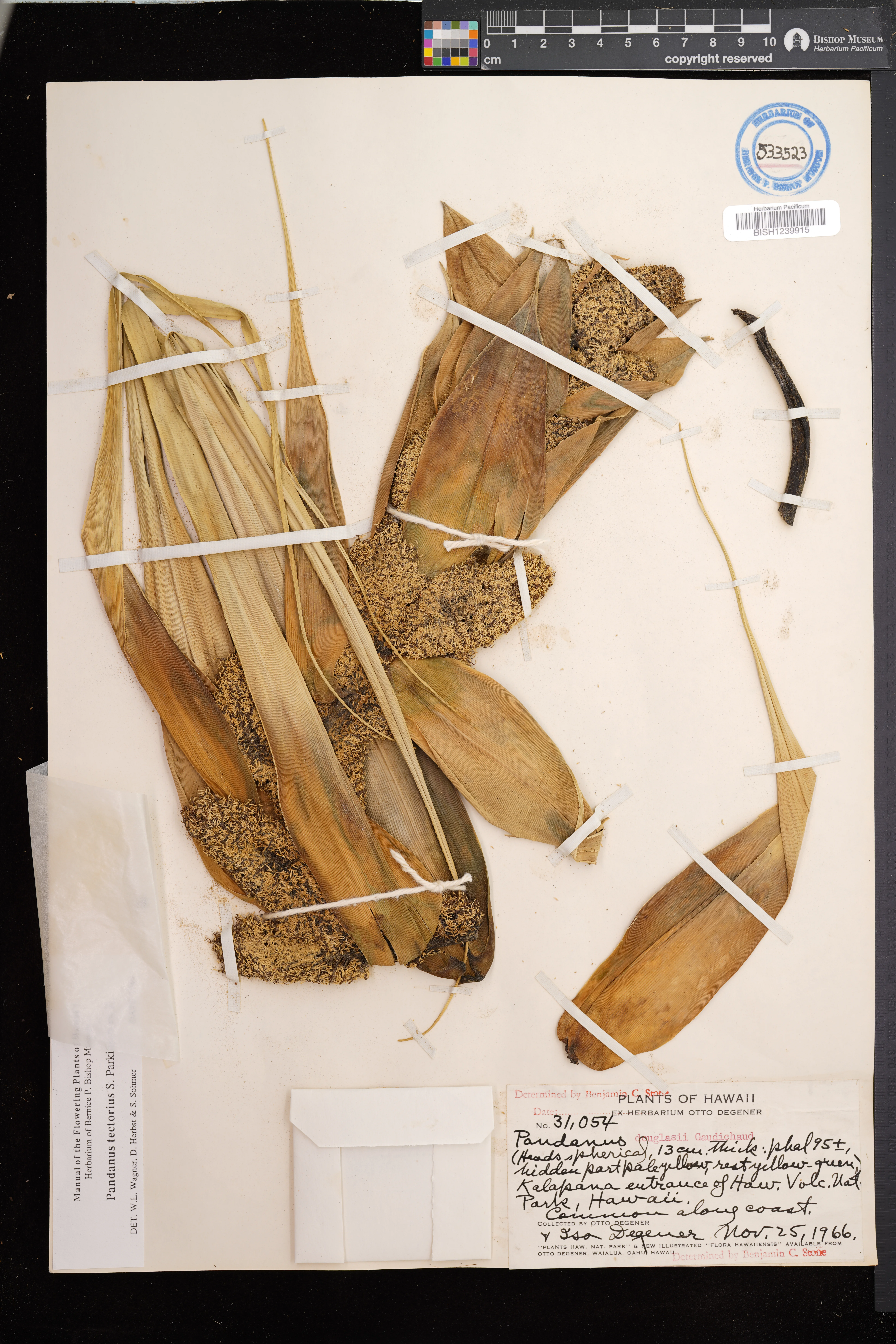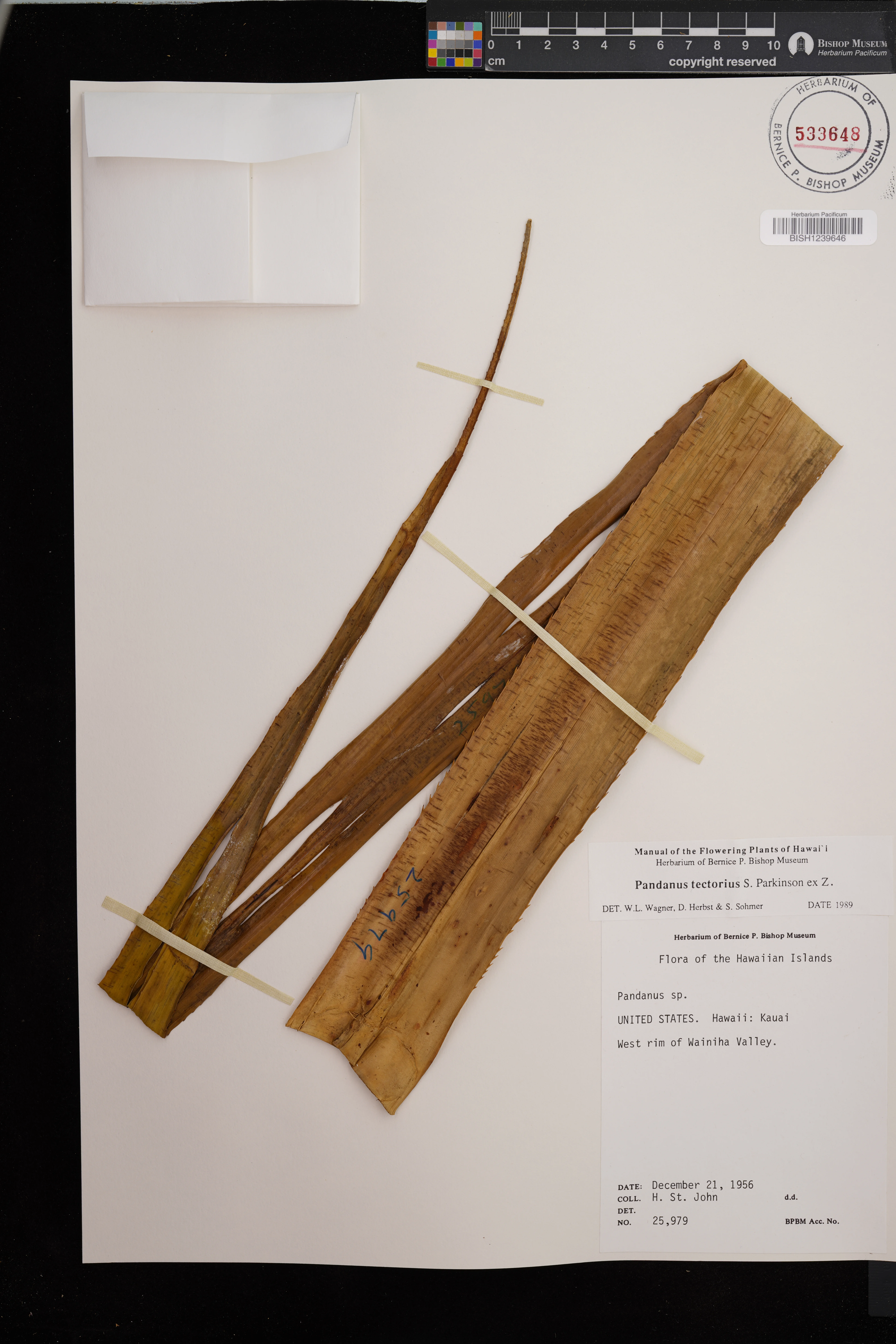 Tree about 20 ft. high; spreading about 20 ft.; shrubby; branching immediately where main aerial roots begin to radiate downward; brs. ending in large tufts of long lvs. which have wide white band down |