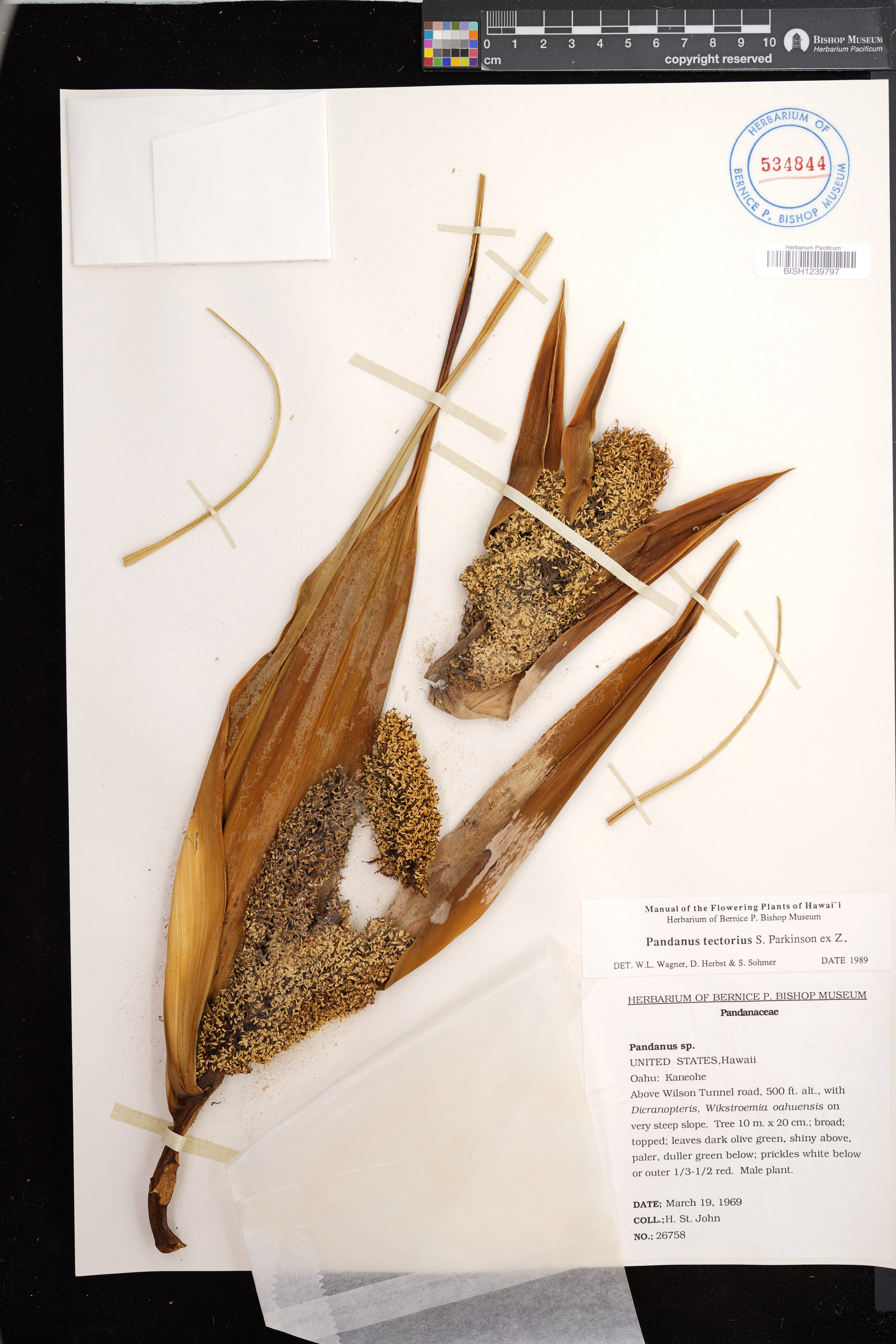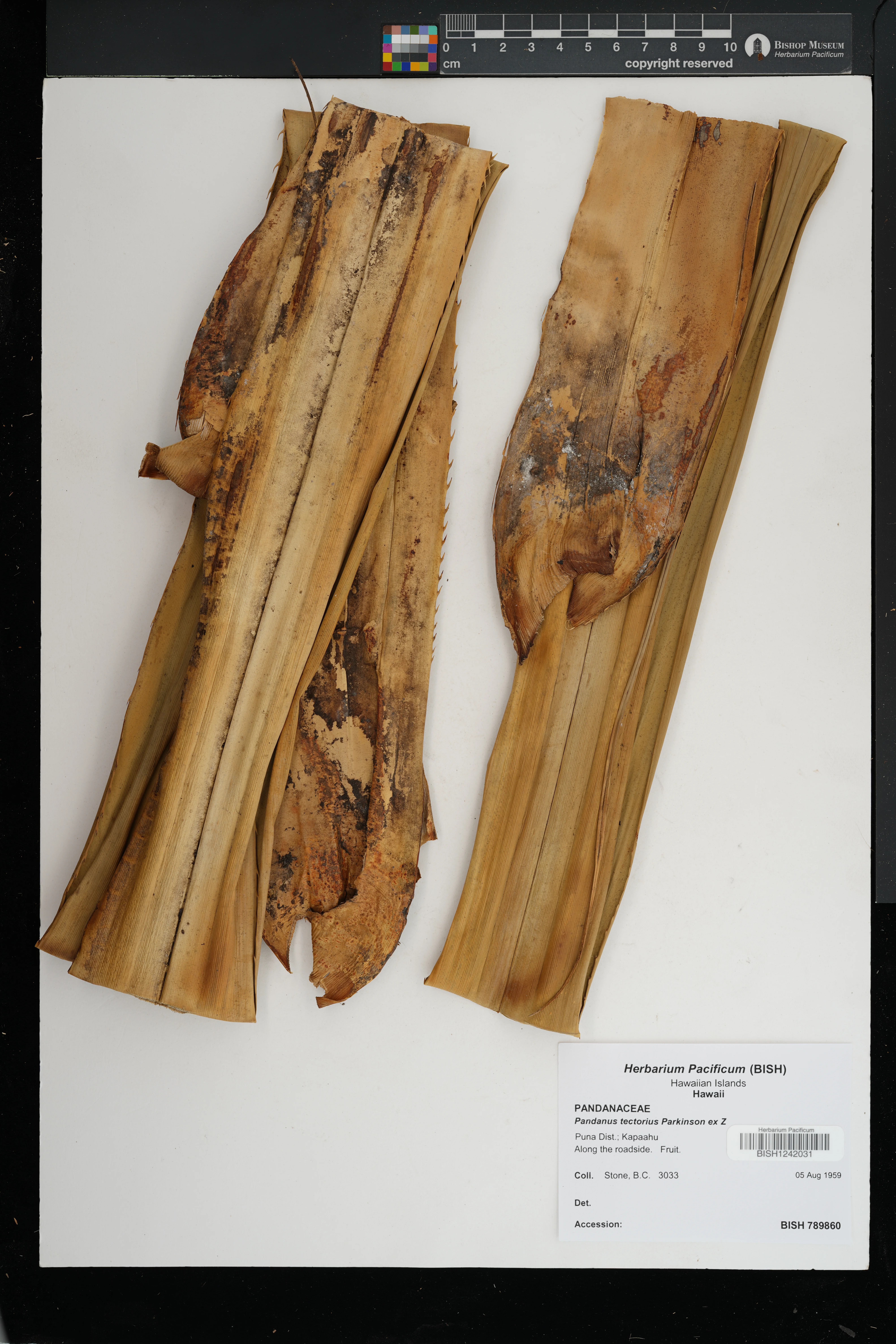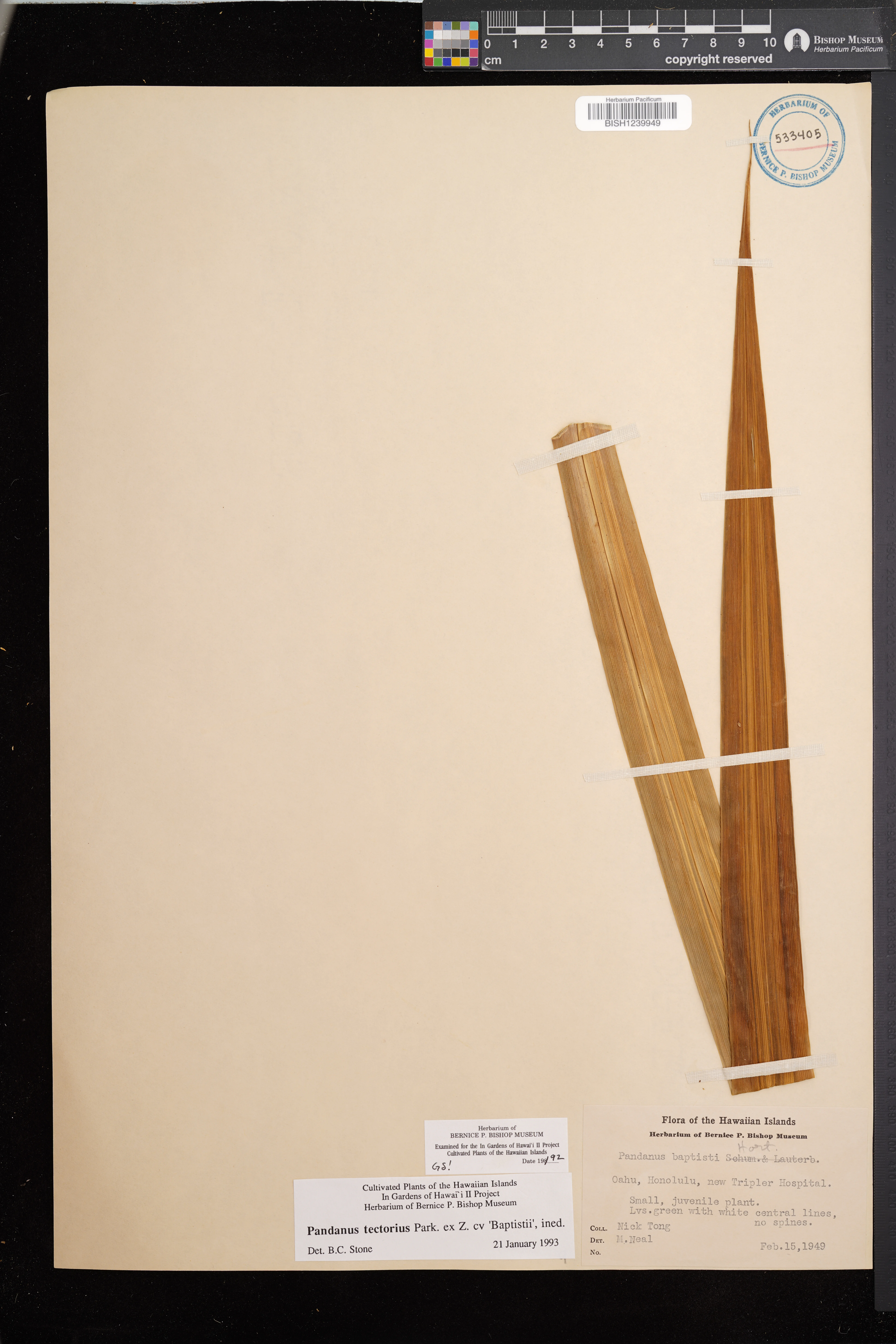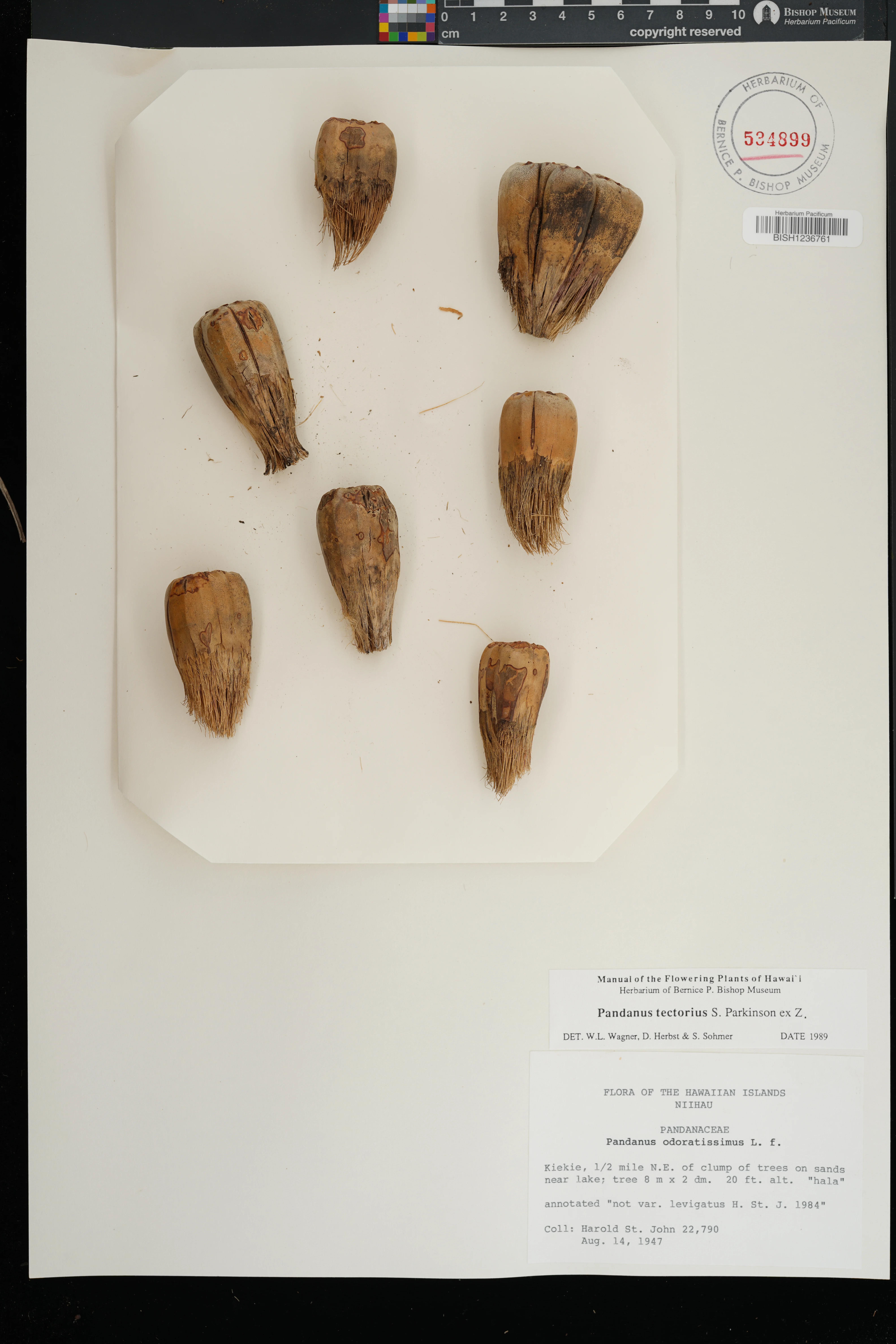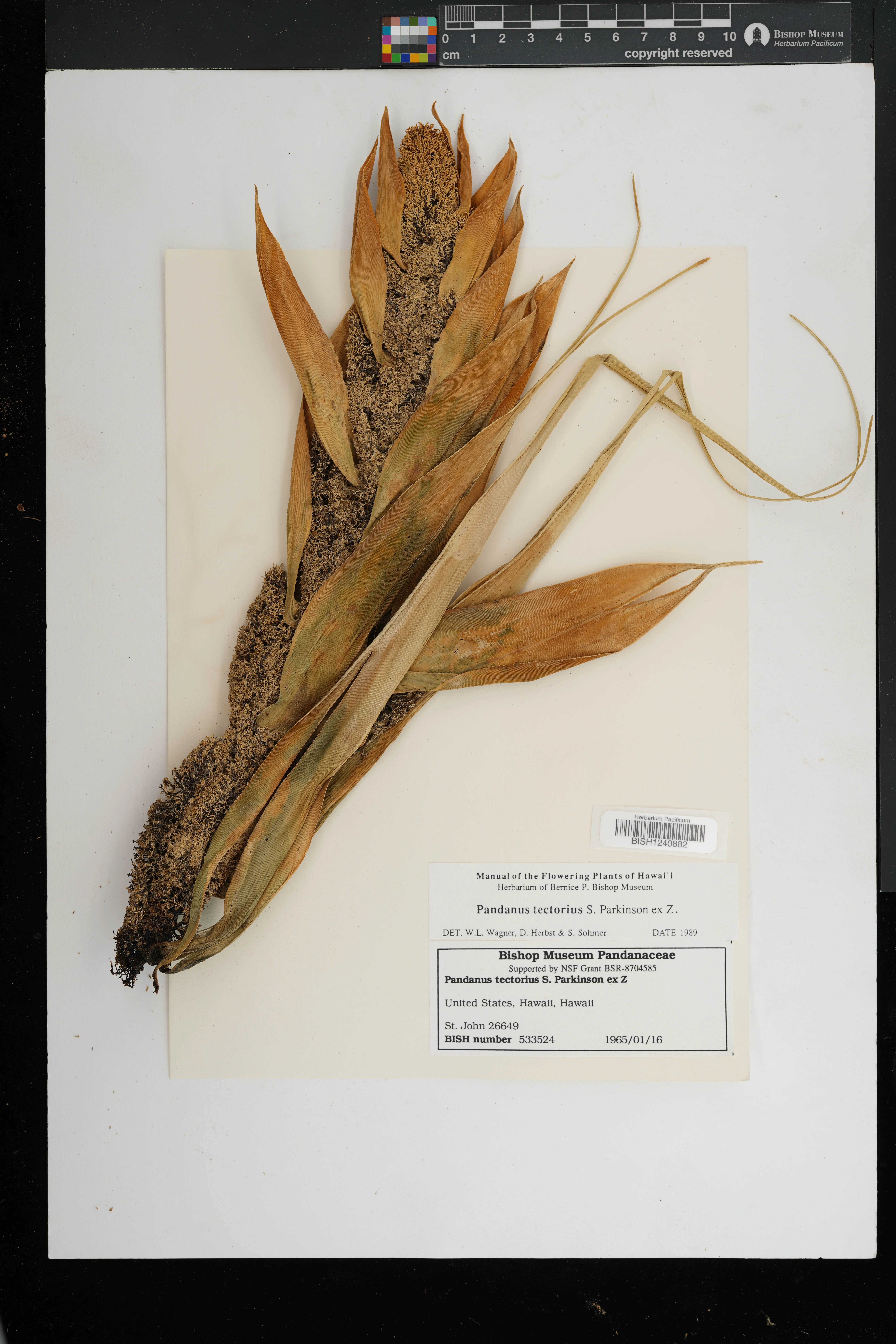 Tree about 20 ft. high; spreading about 20 ft.; shrubby; branching immediately where main aerial roots begin to radiate downward; brs. ending in large tufts of long lvs. which have wide white band down |