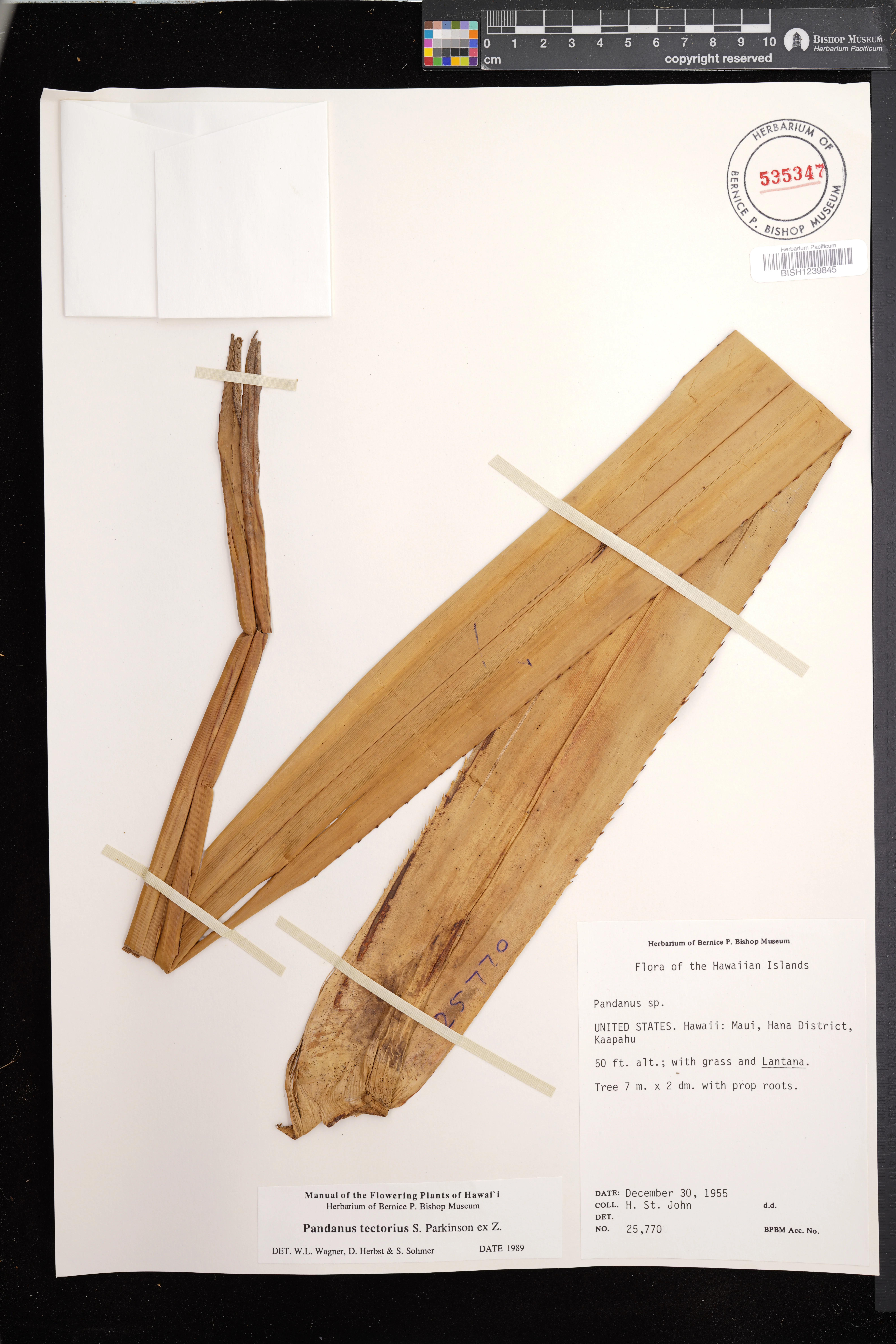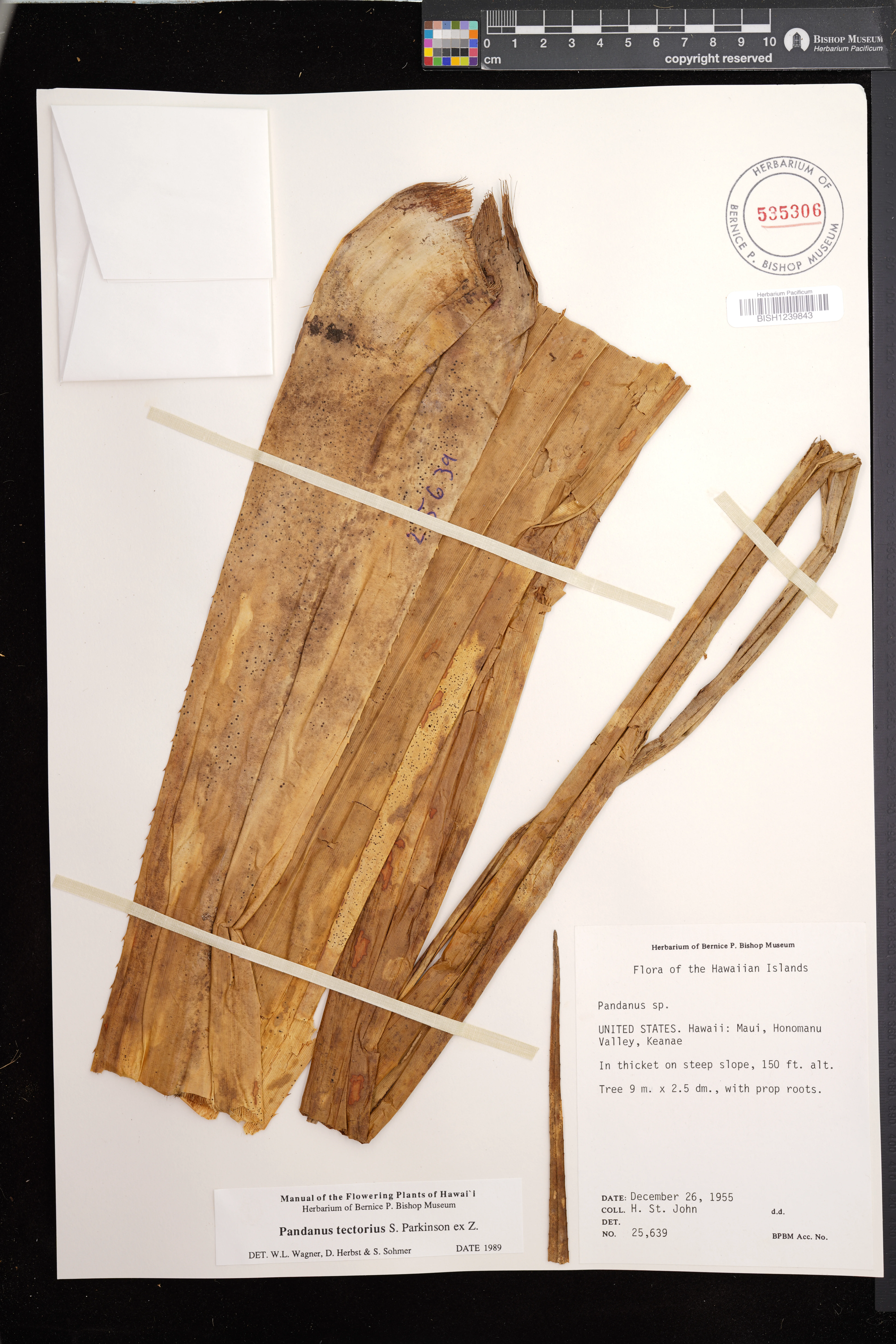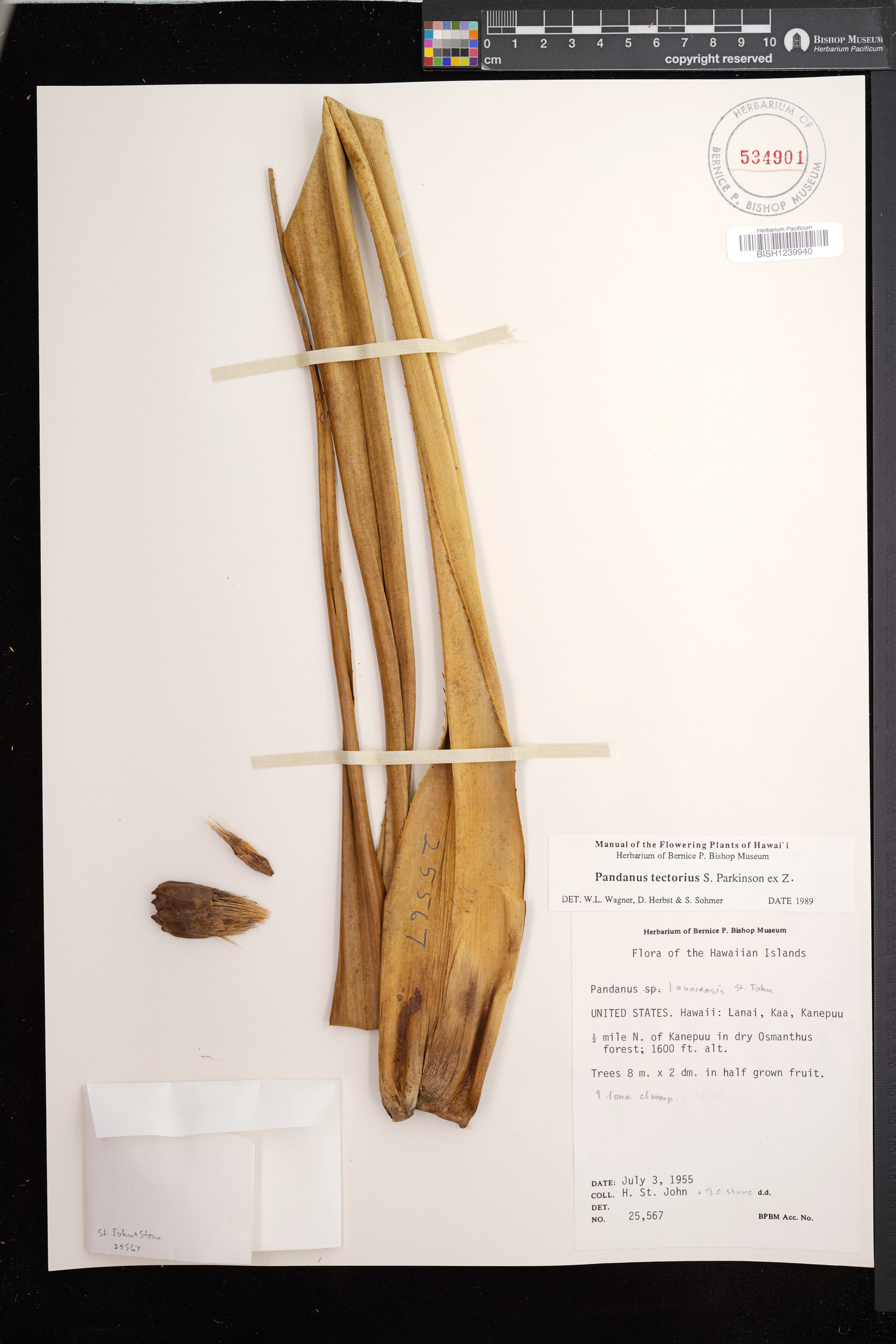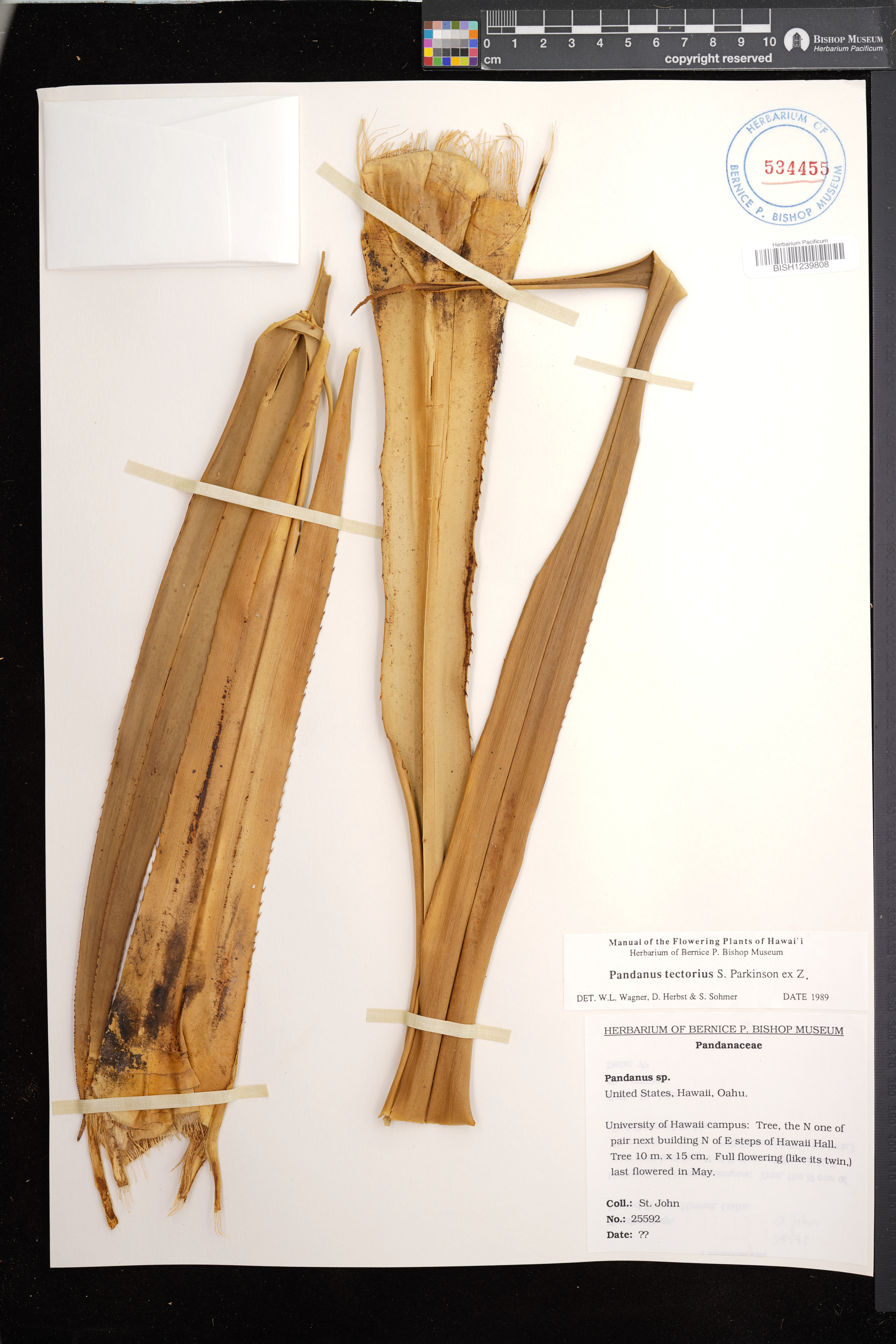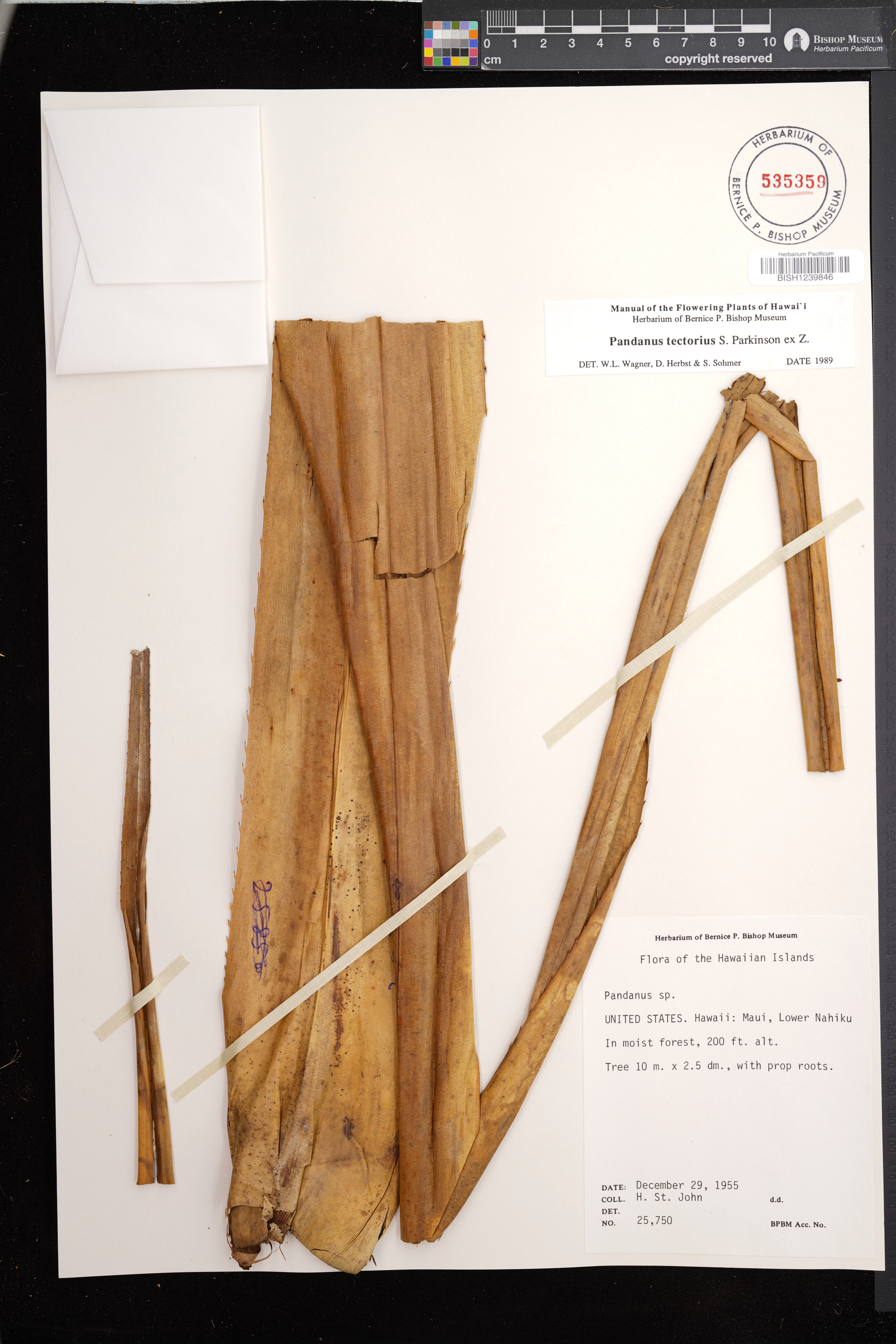 Tree about 20 ft. high; spreading about 20 ft.; shrubby; branching immediately where main aerial roots begin to radiate downward; brs. ending in large tufts of long lvs. which have wide white band down |