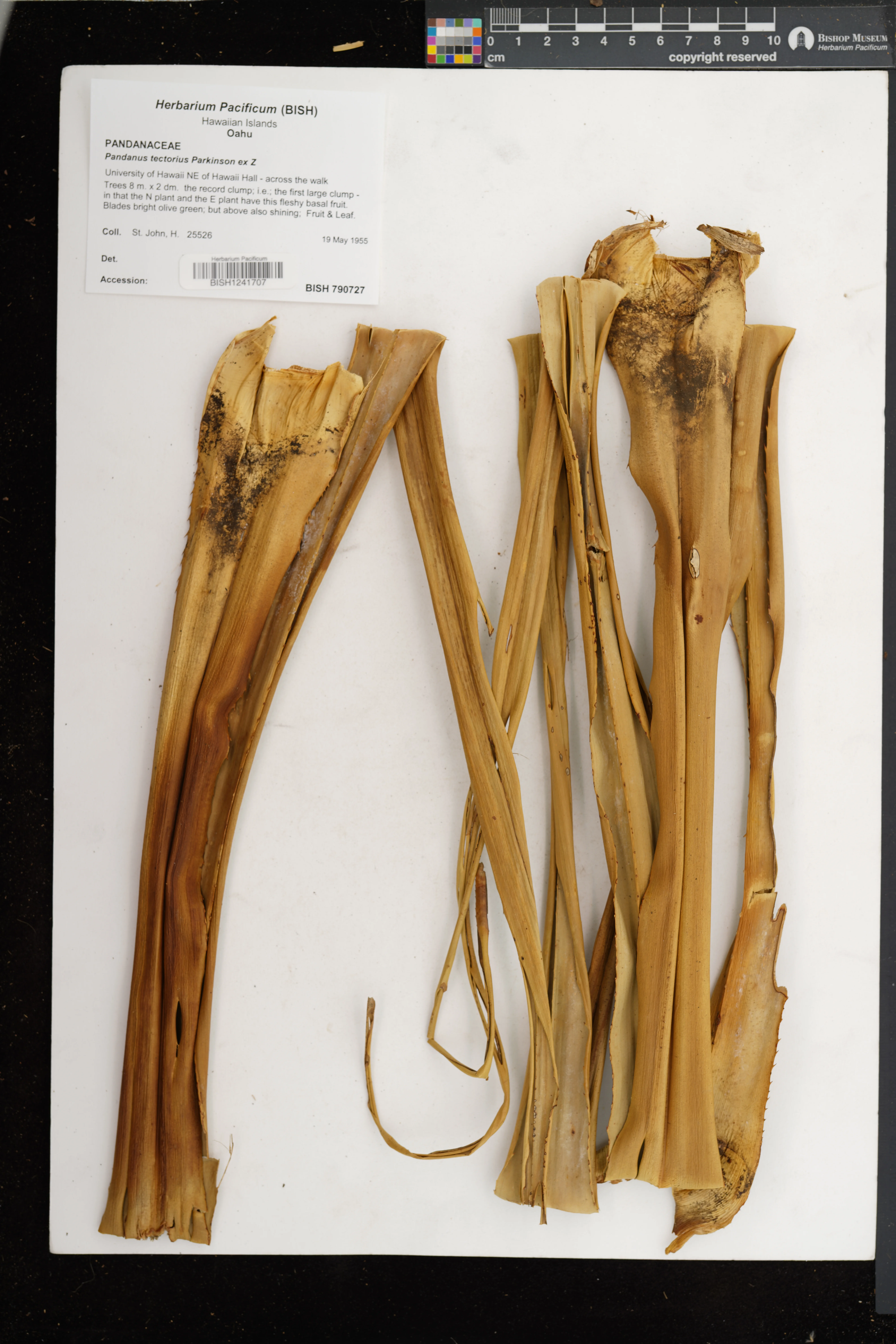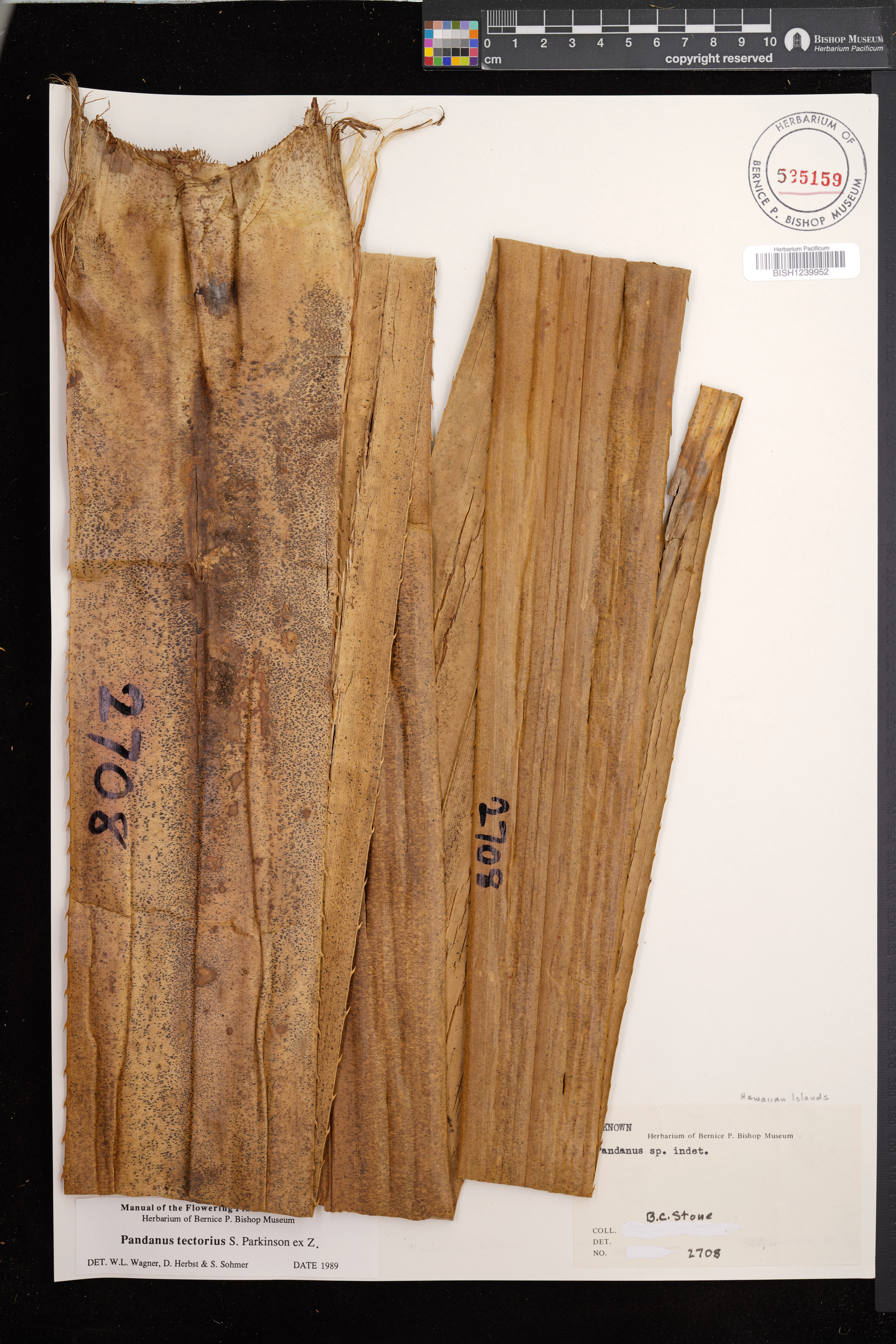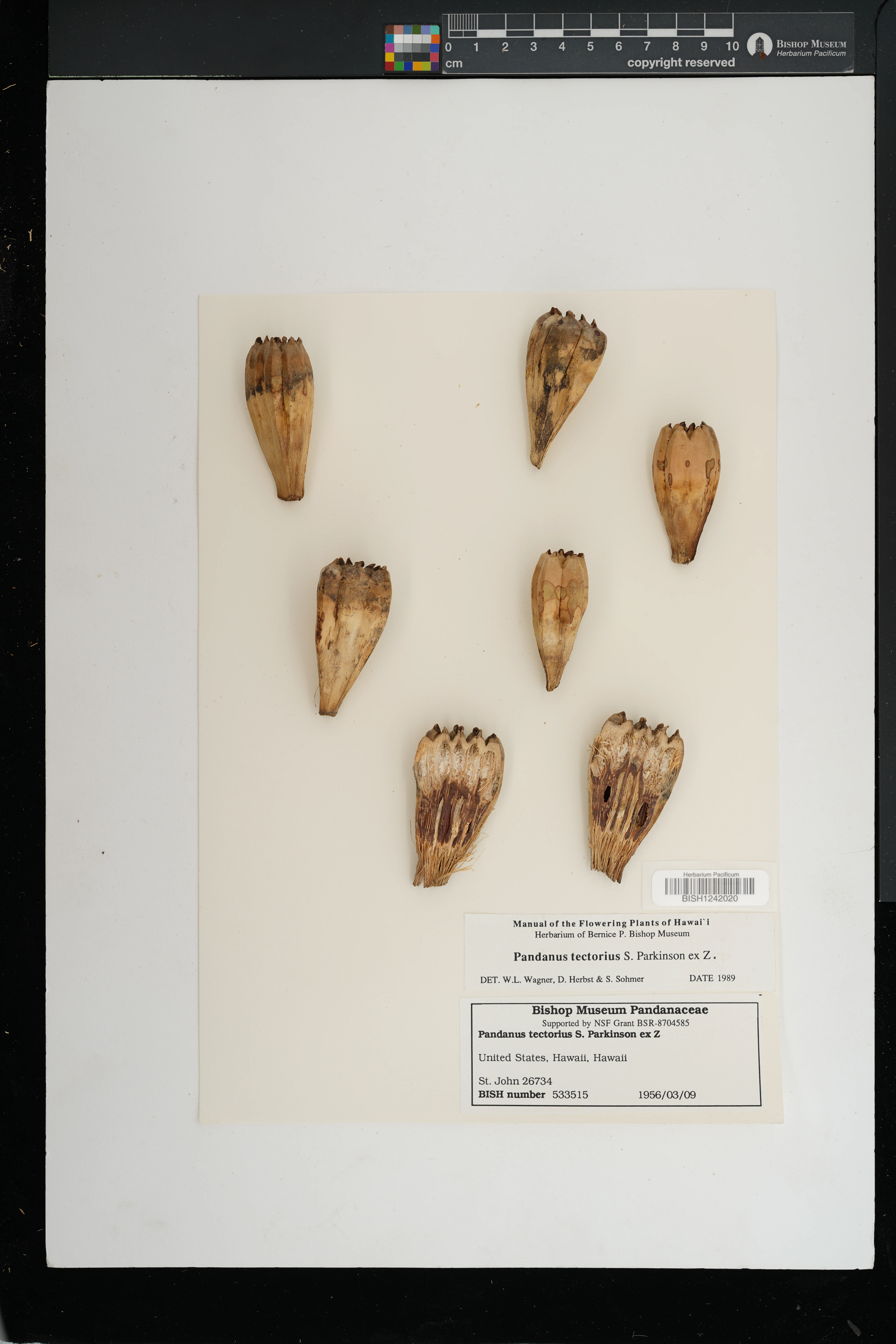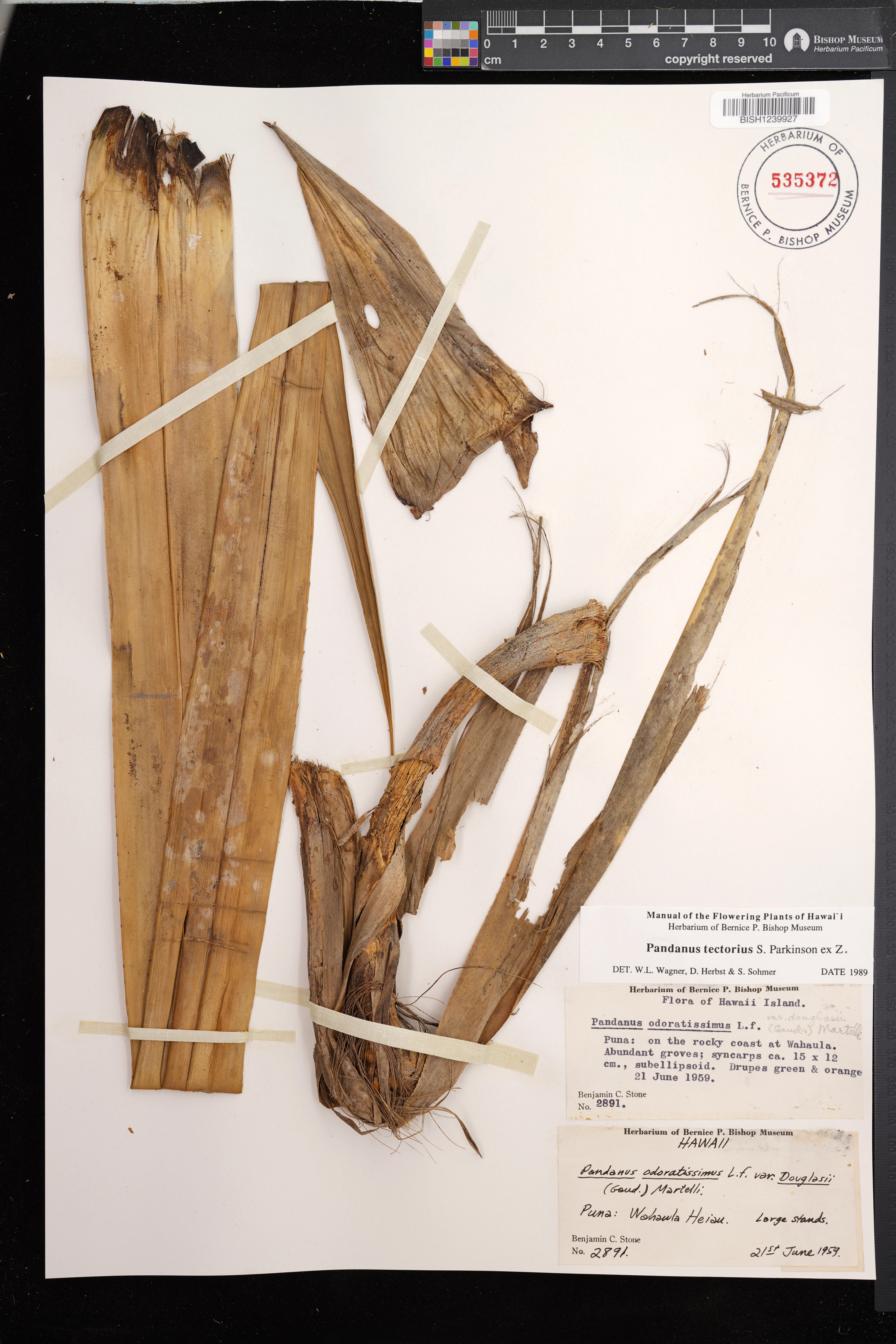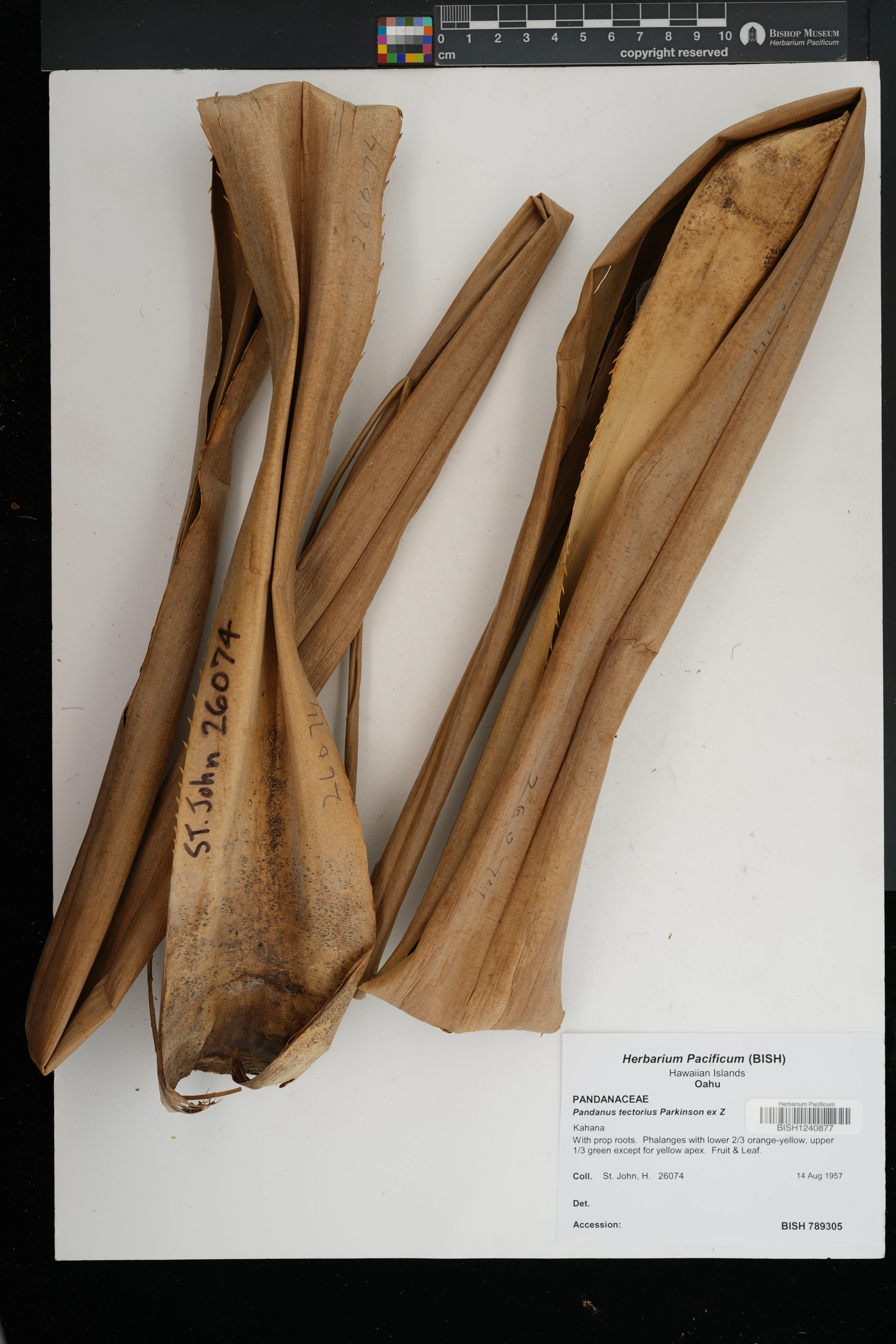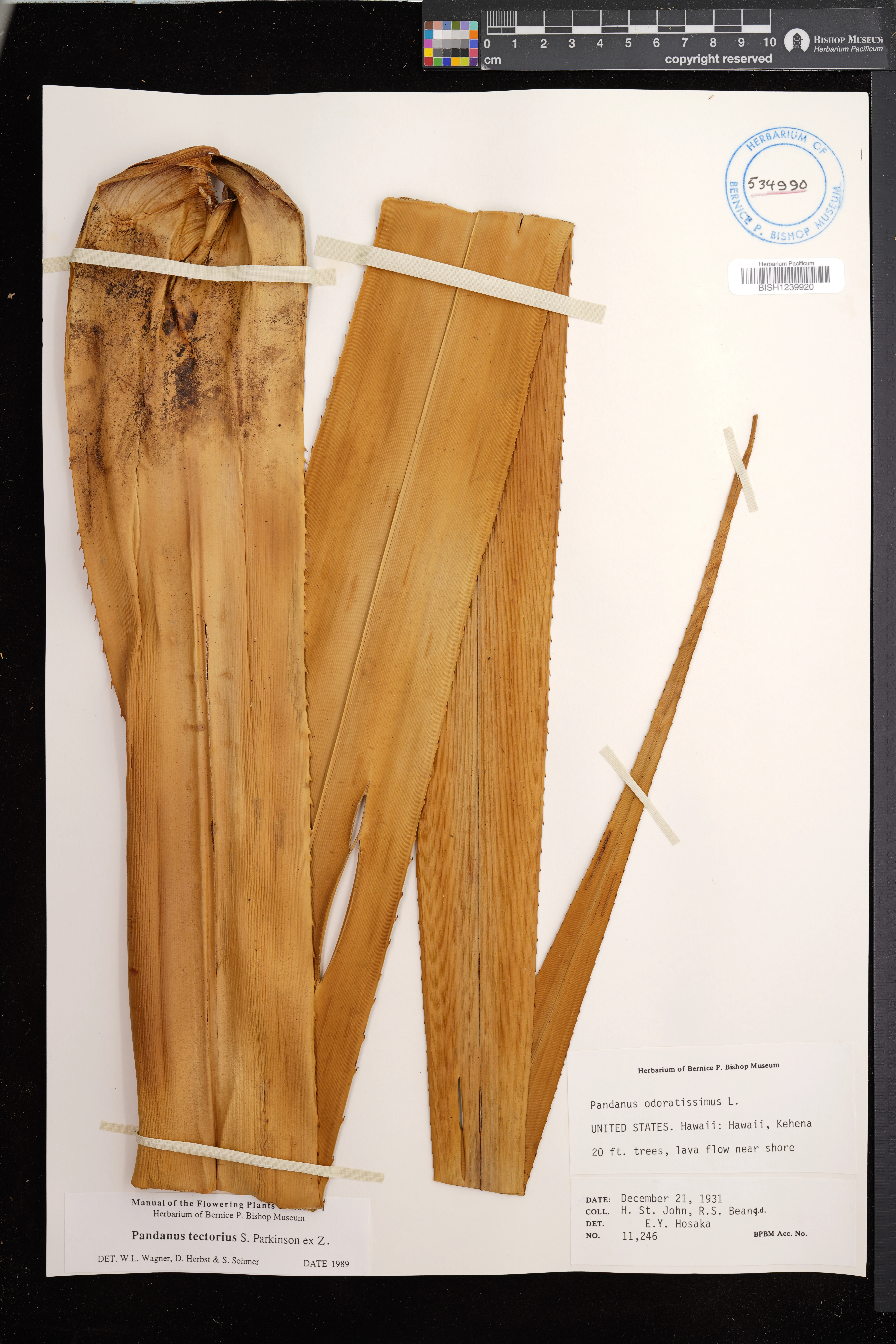 Tree about 20 ft. high; spreading about 20 ft.; shrubby; branching immediately where main aerial roots begin to radiate downward; brs. ending in large tufts of long lvs. which have wide white band down |