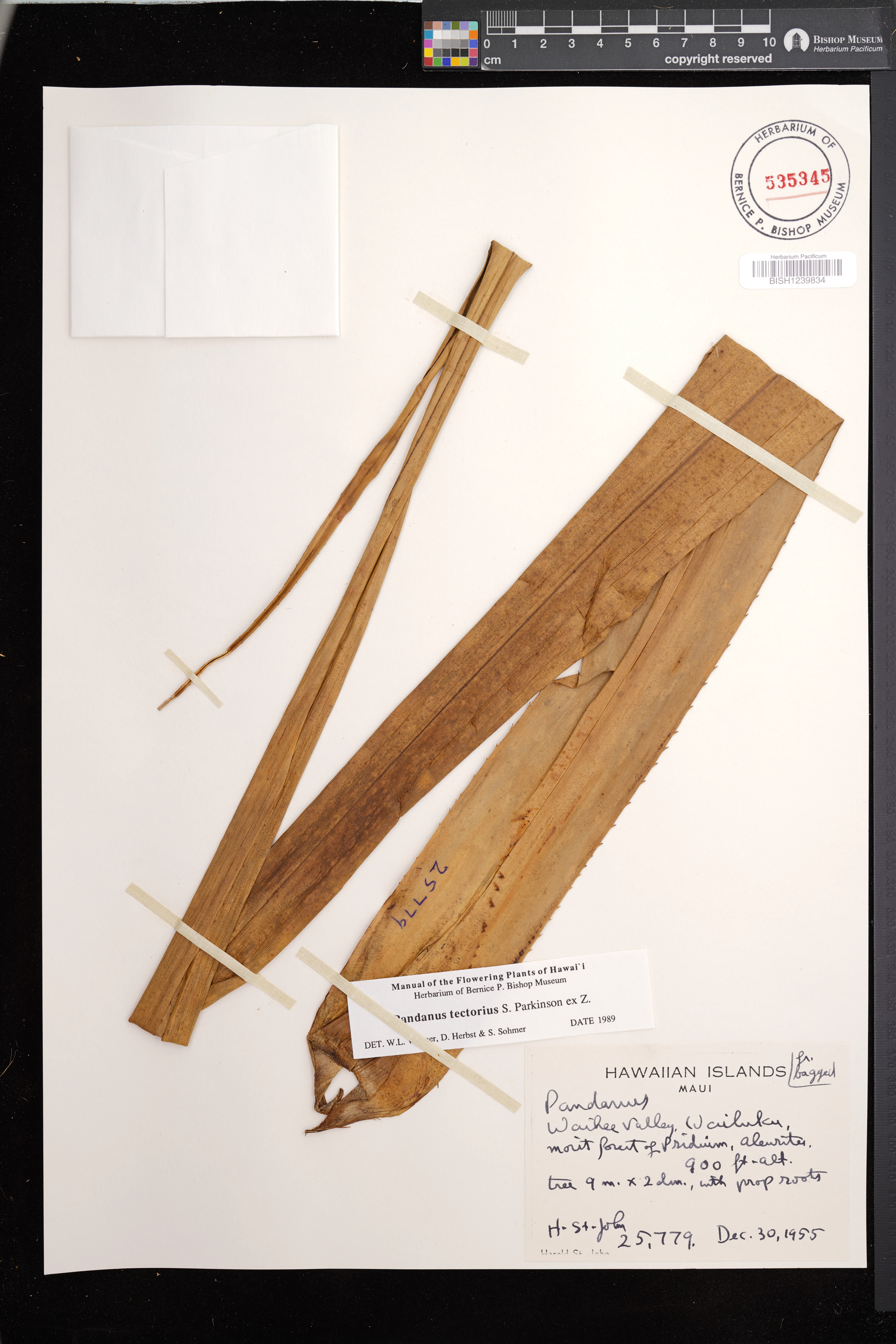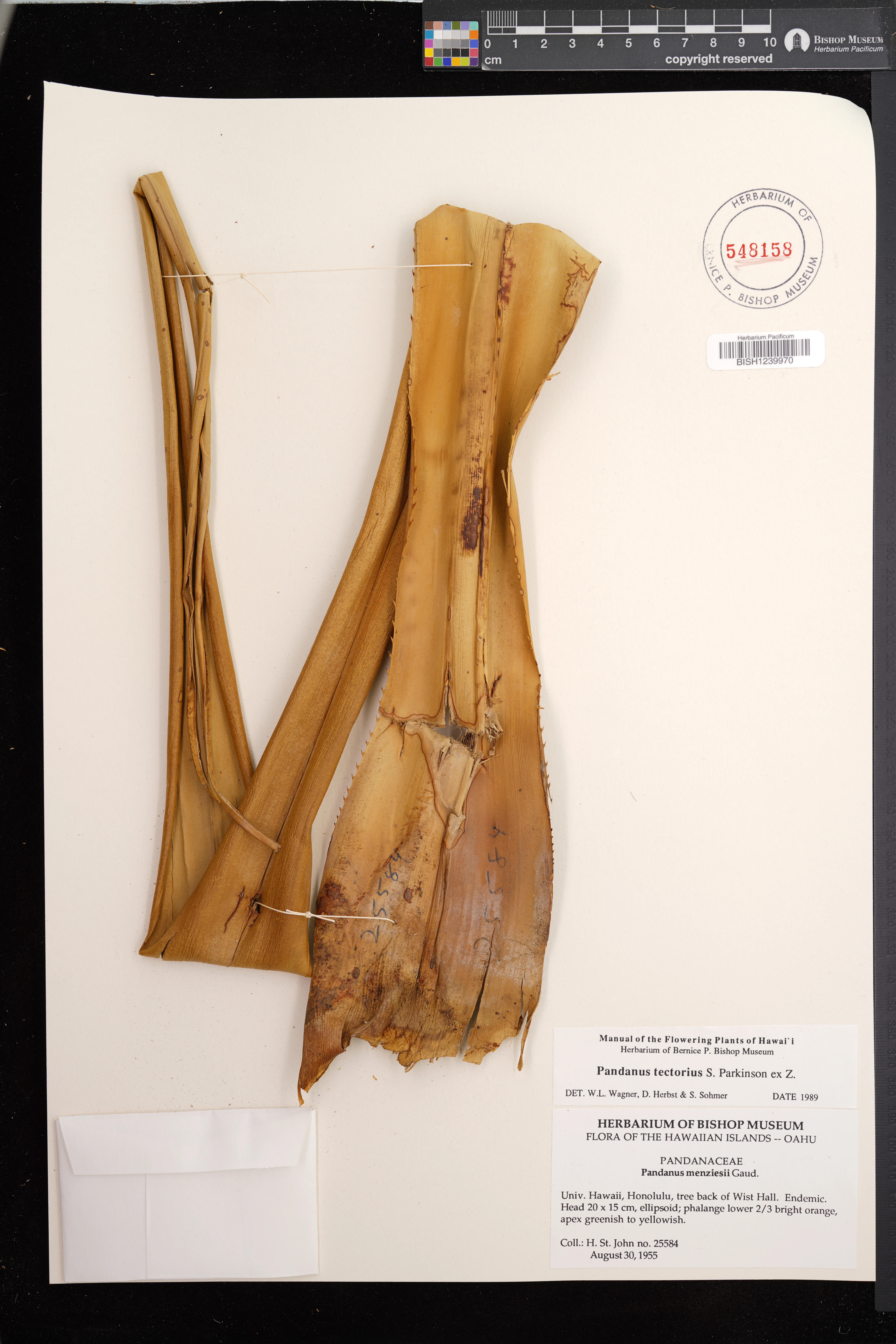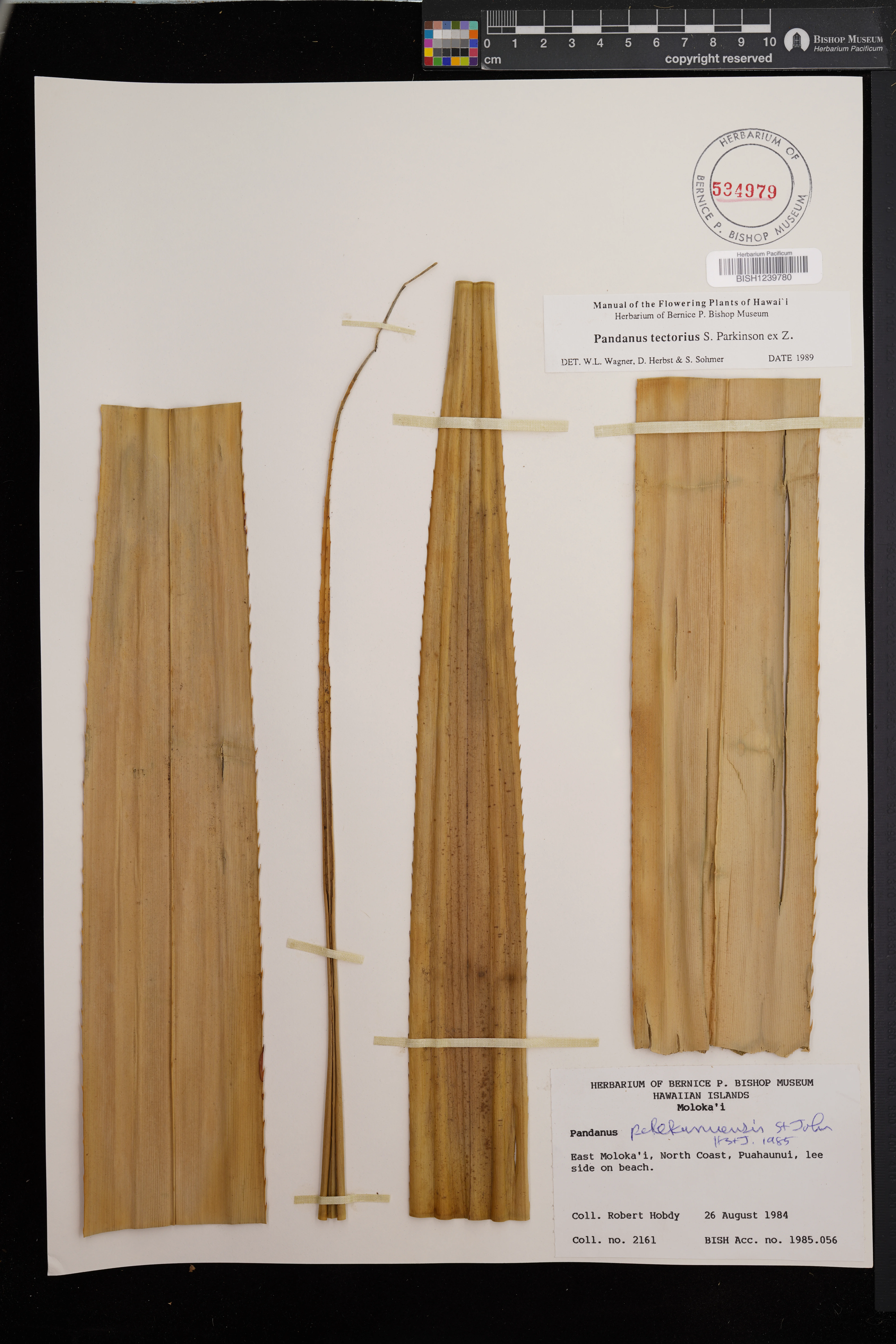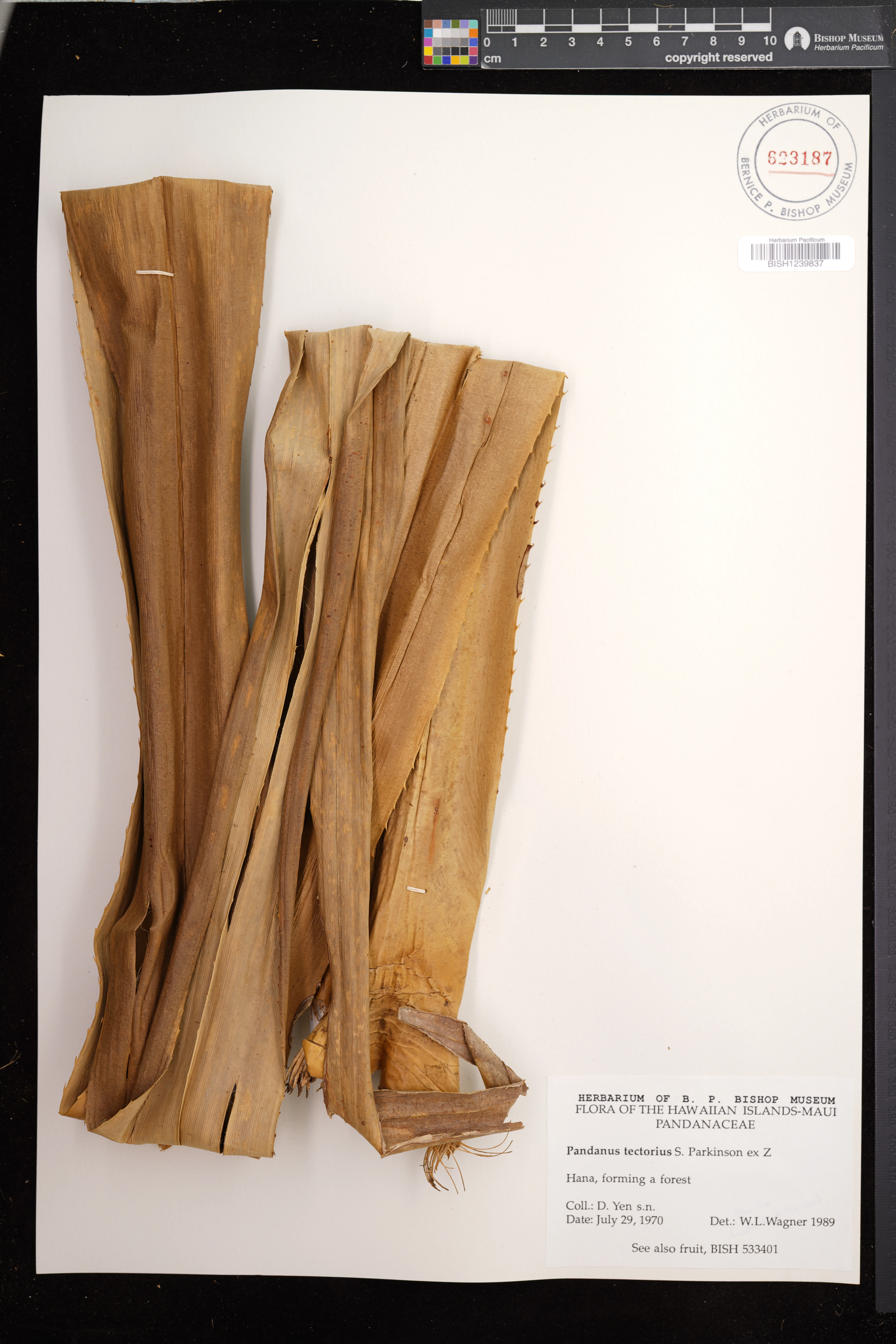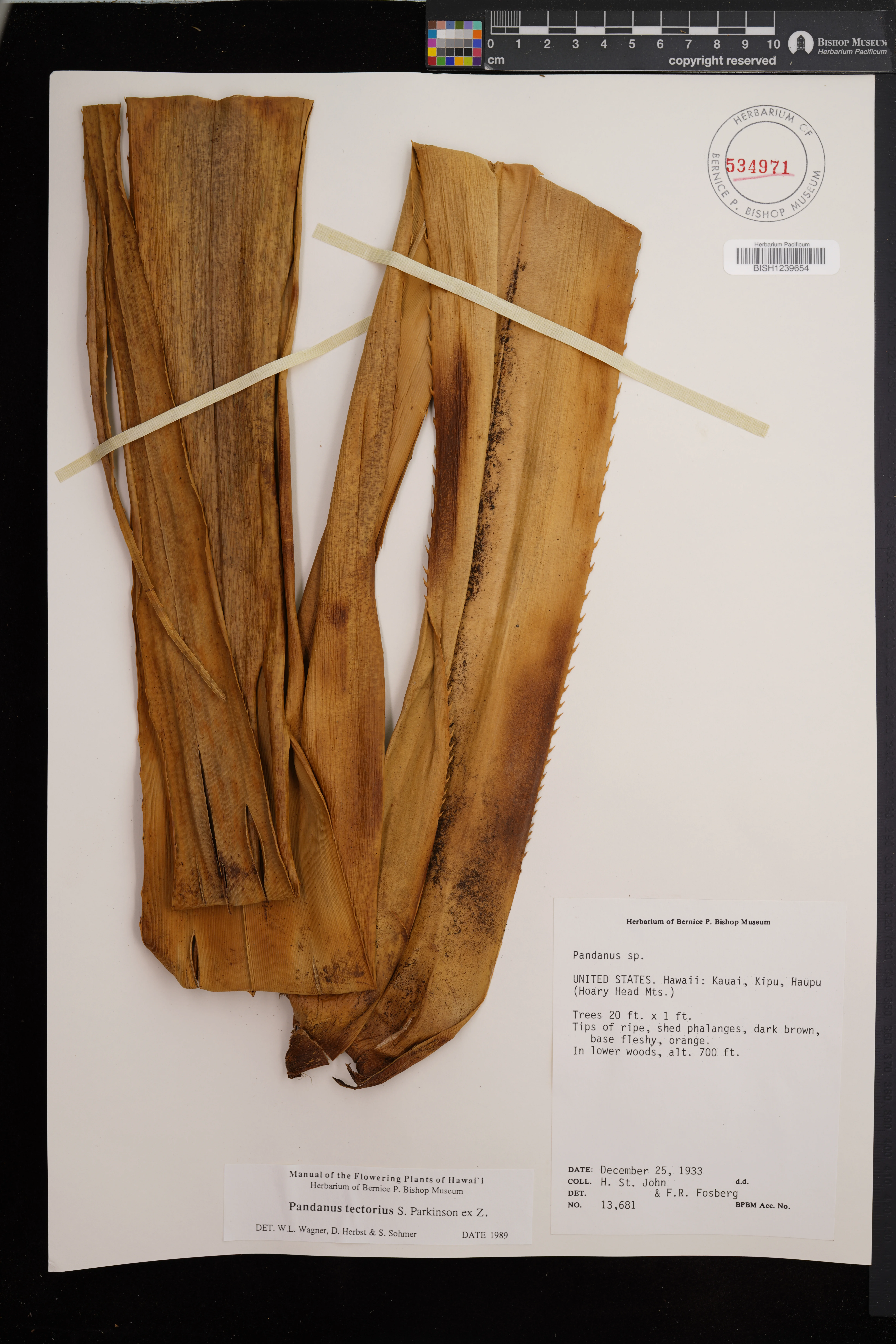 Tree about 20 ft. high; spreading about 20 ft.; shrubby; branching immediately where main aerial roots begin to radiate downward; brs. ending in large tufts of long lvs. which have wide white band down |