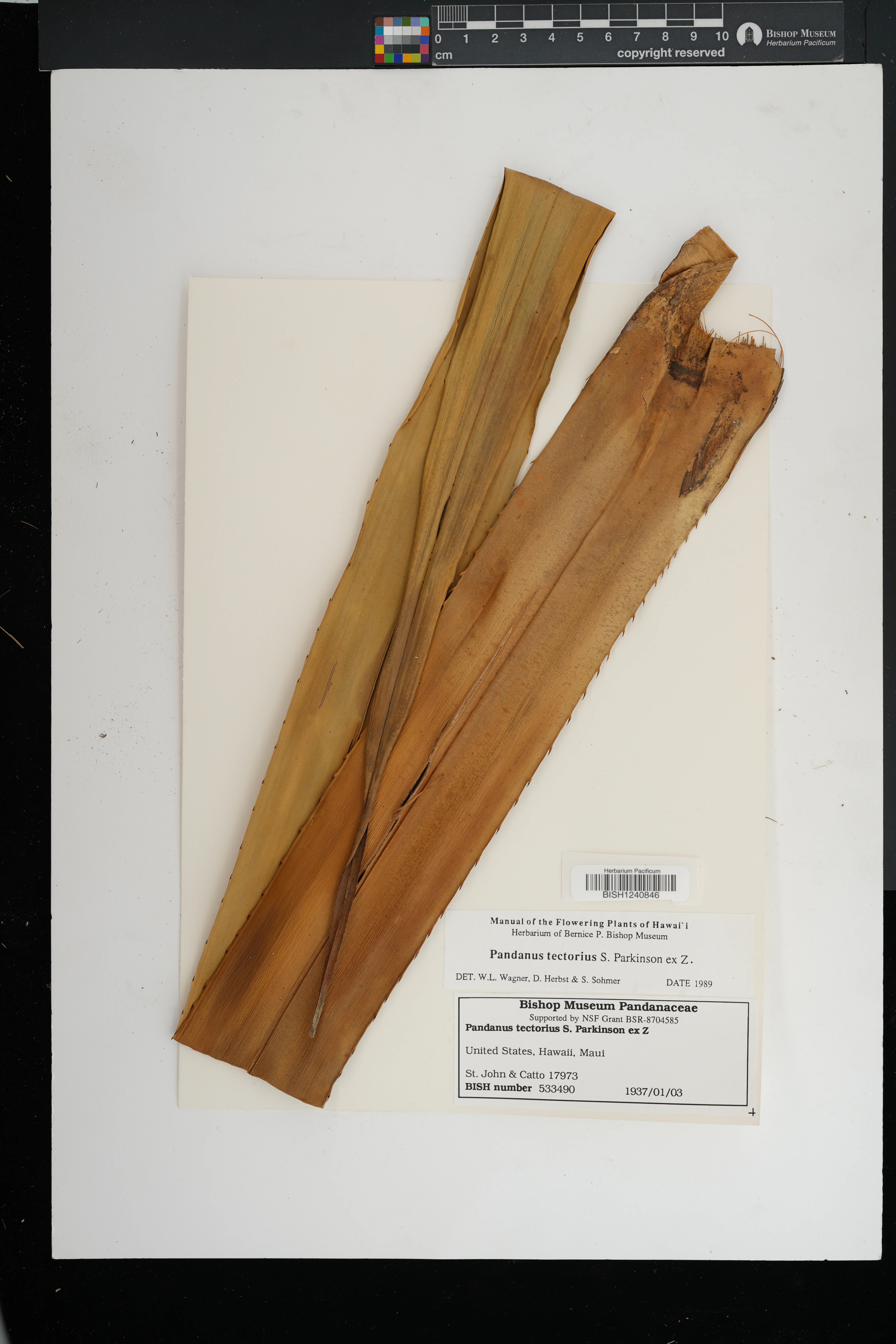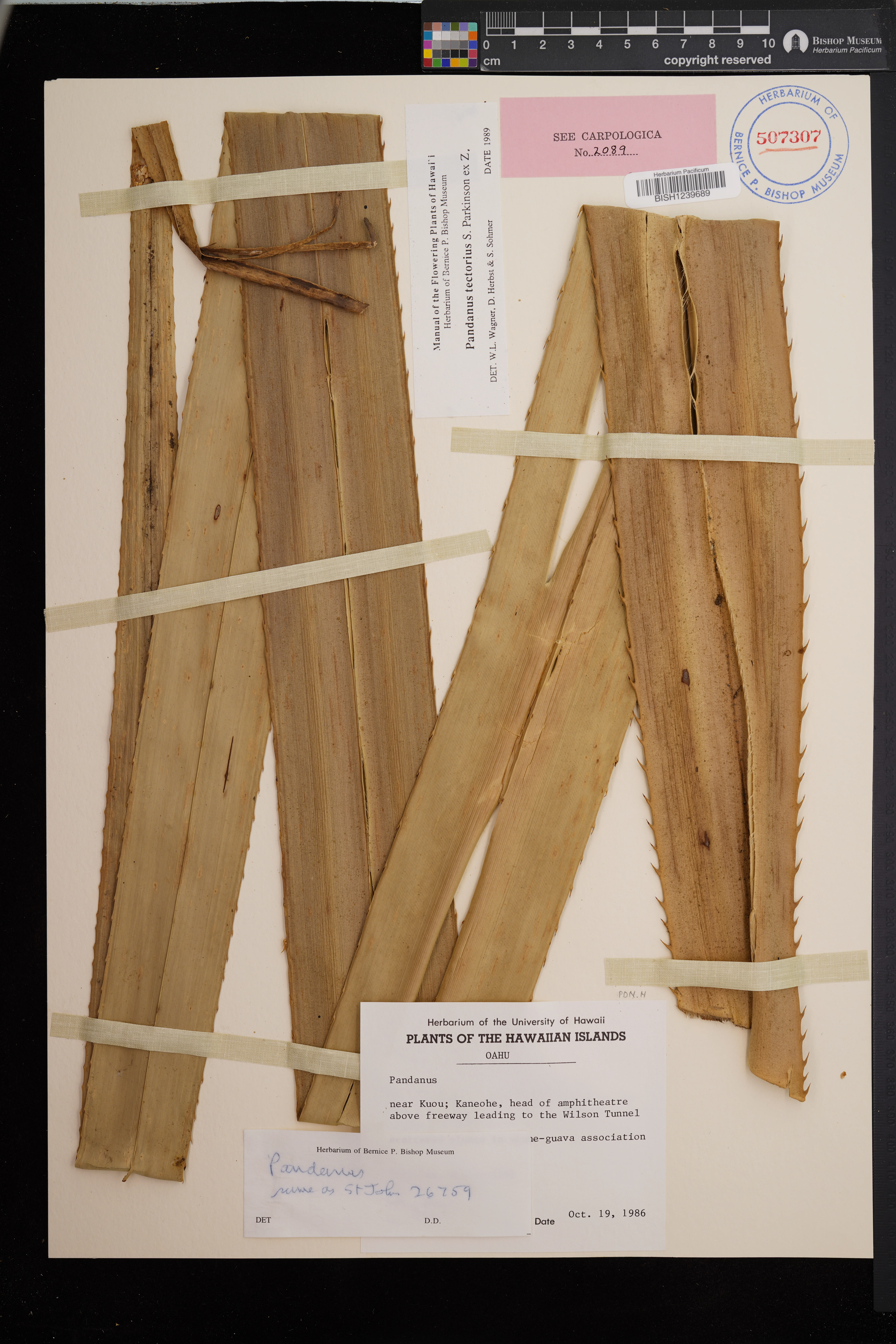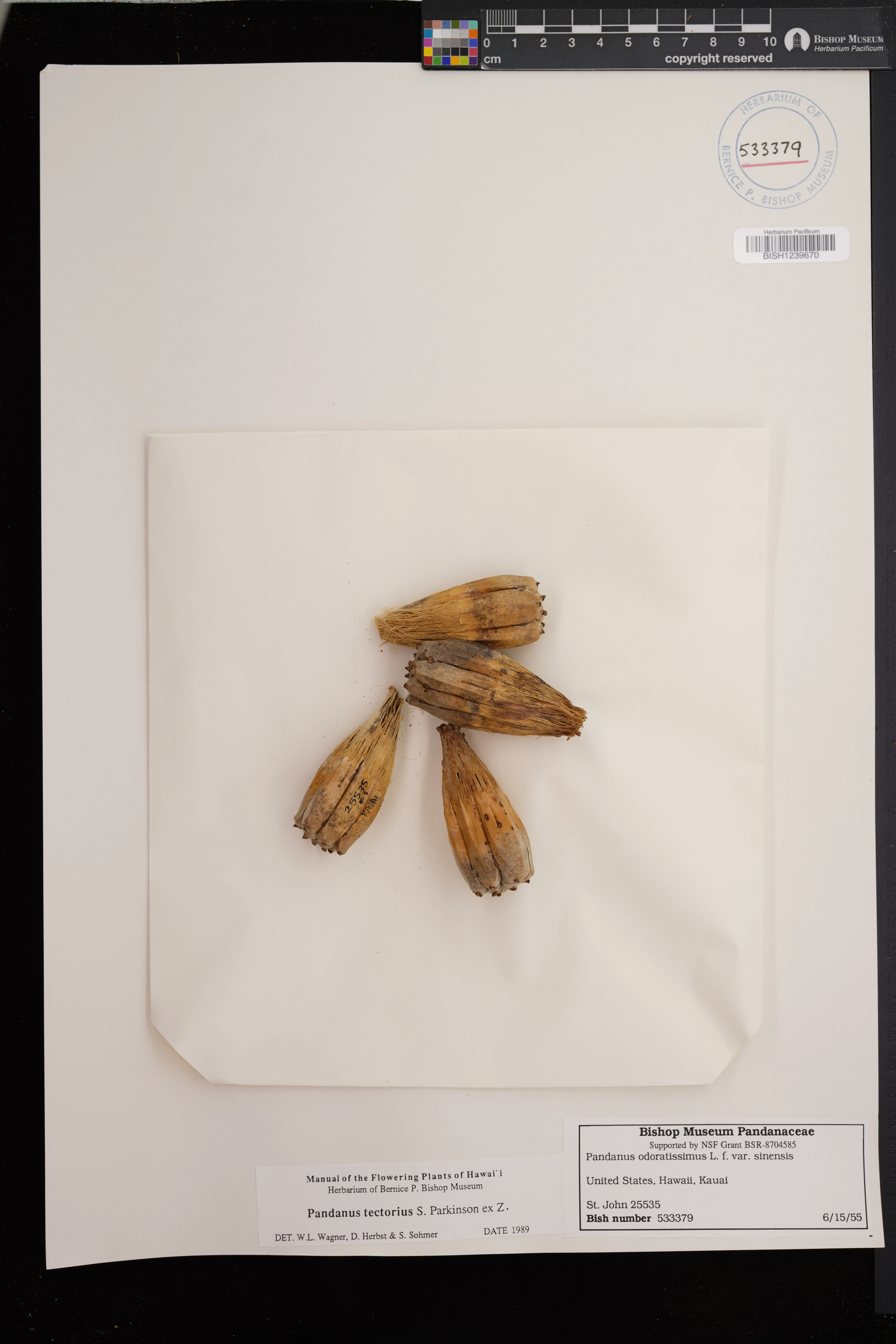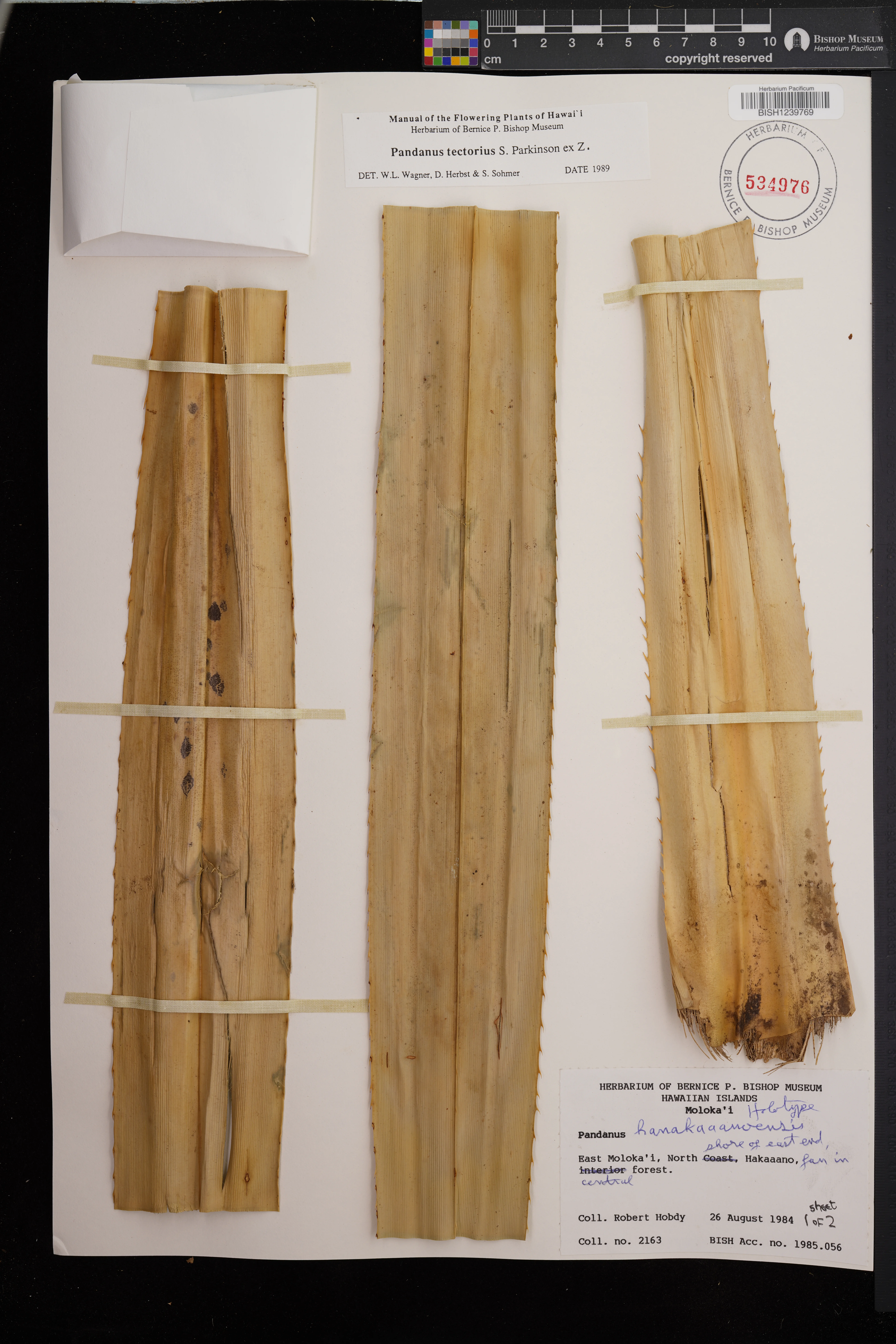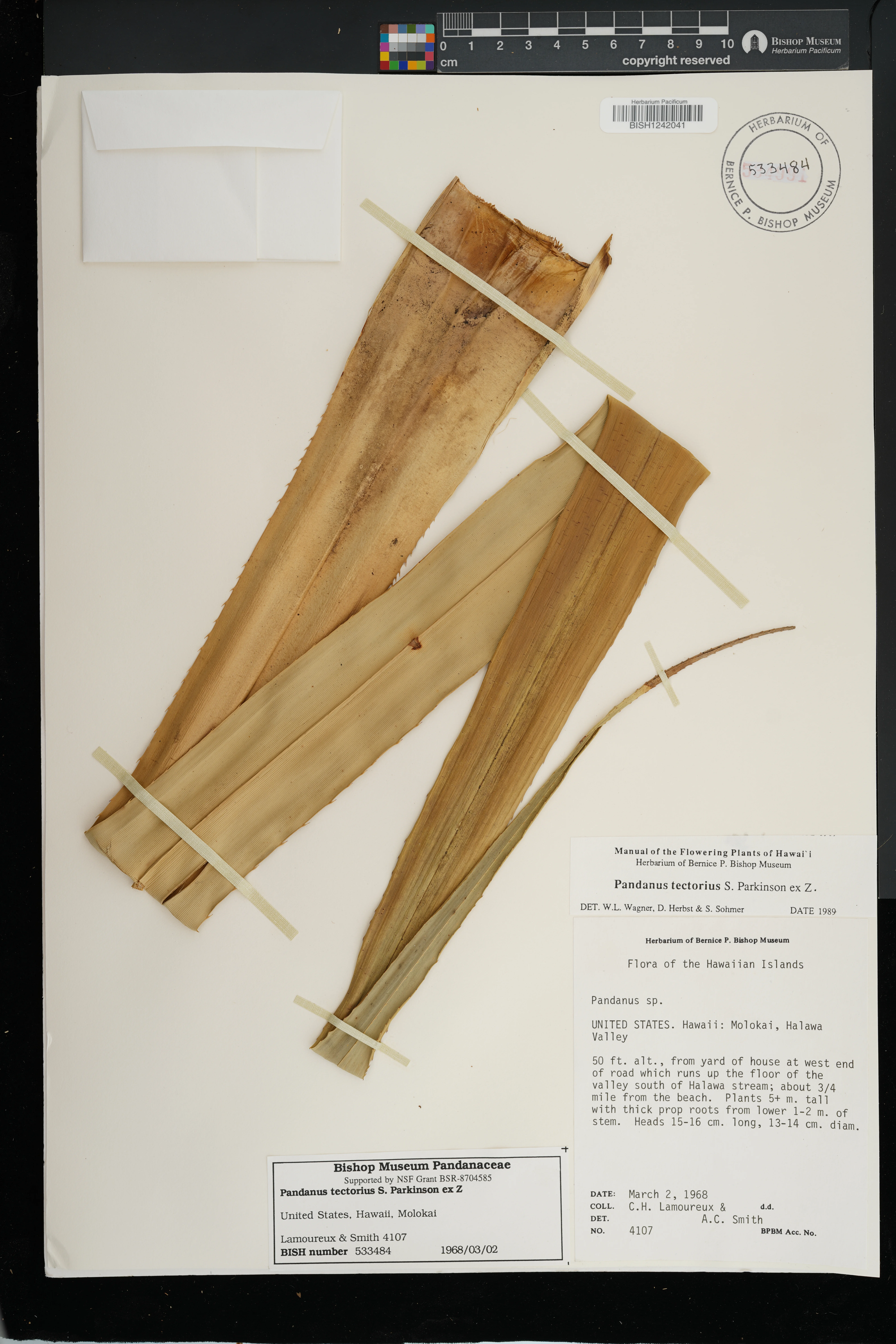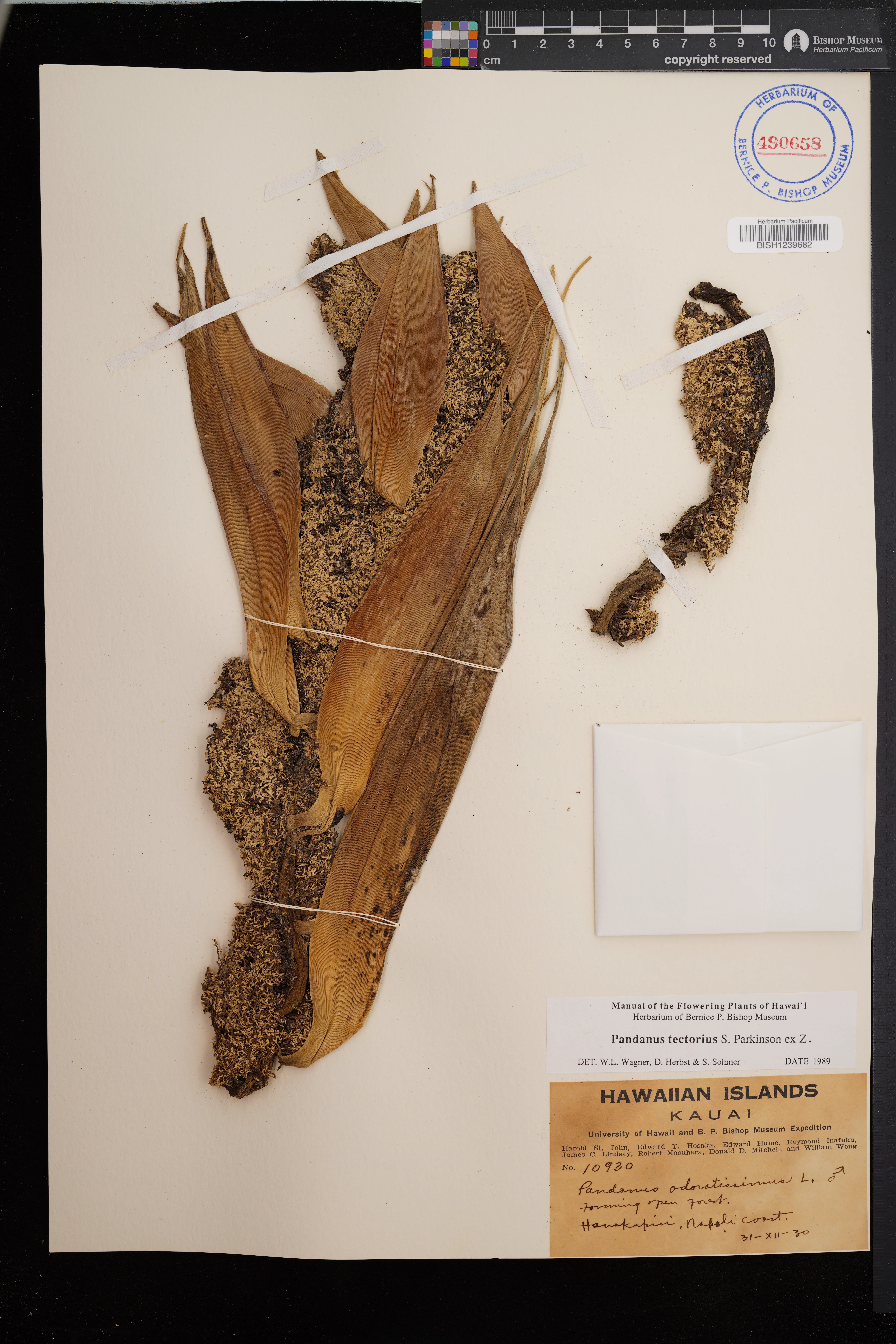 Tree about 20 ft. high; spreading about 20 ft.; shrubby; branching immediately where main aerial roots begin to radiate downward; brs. ending in large tufts of long lvs. which have wide white band down |