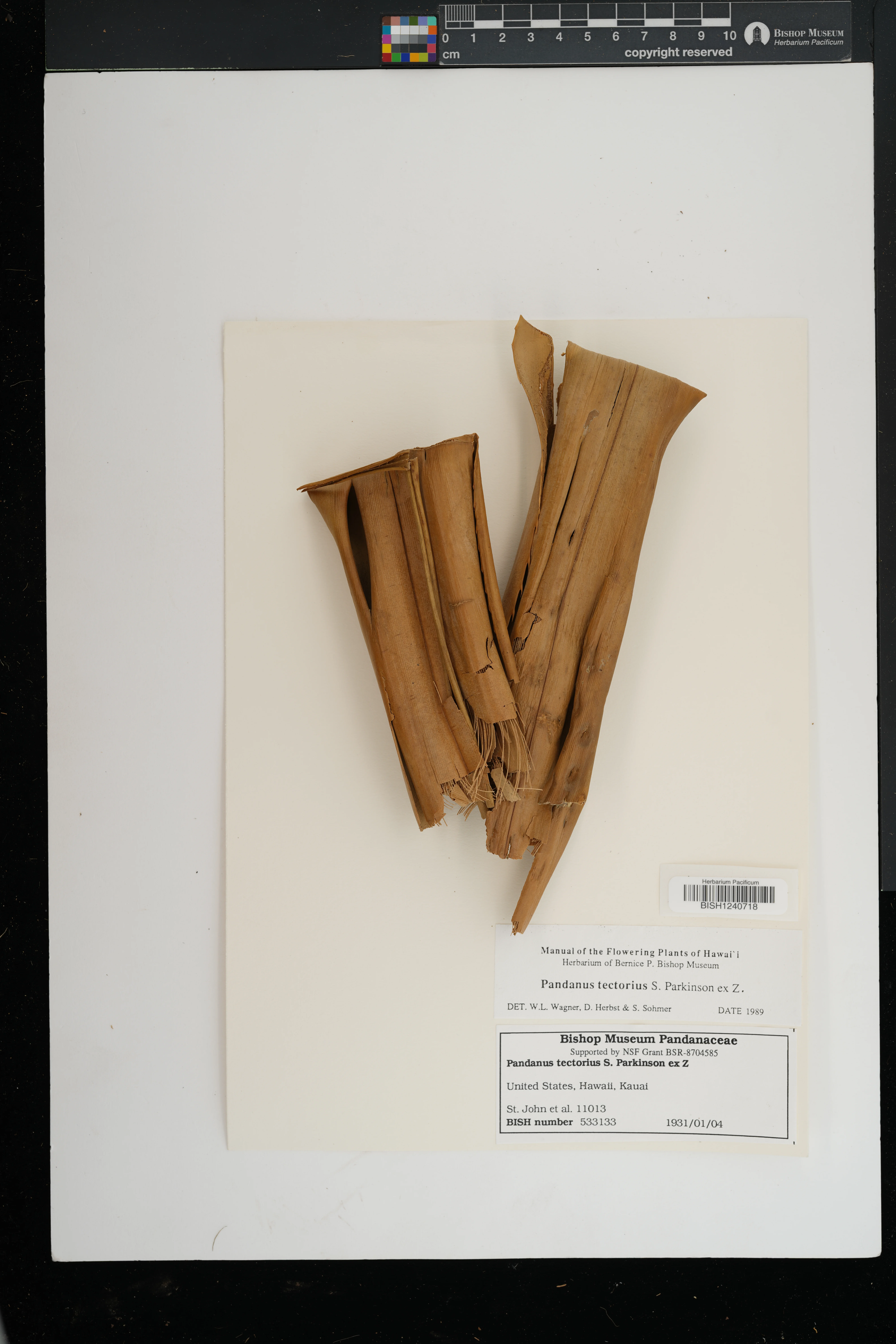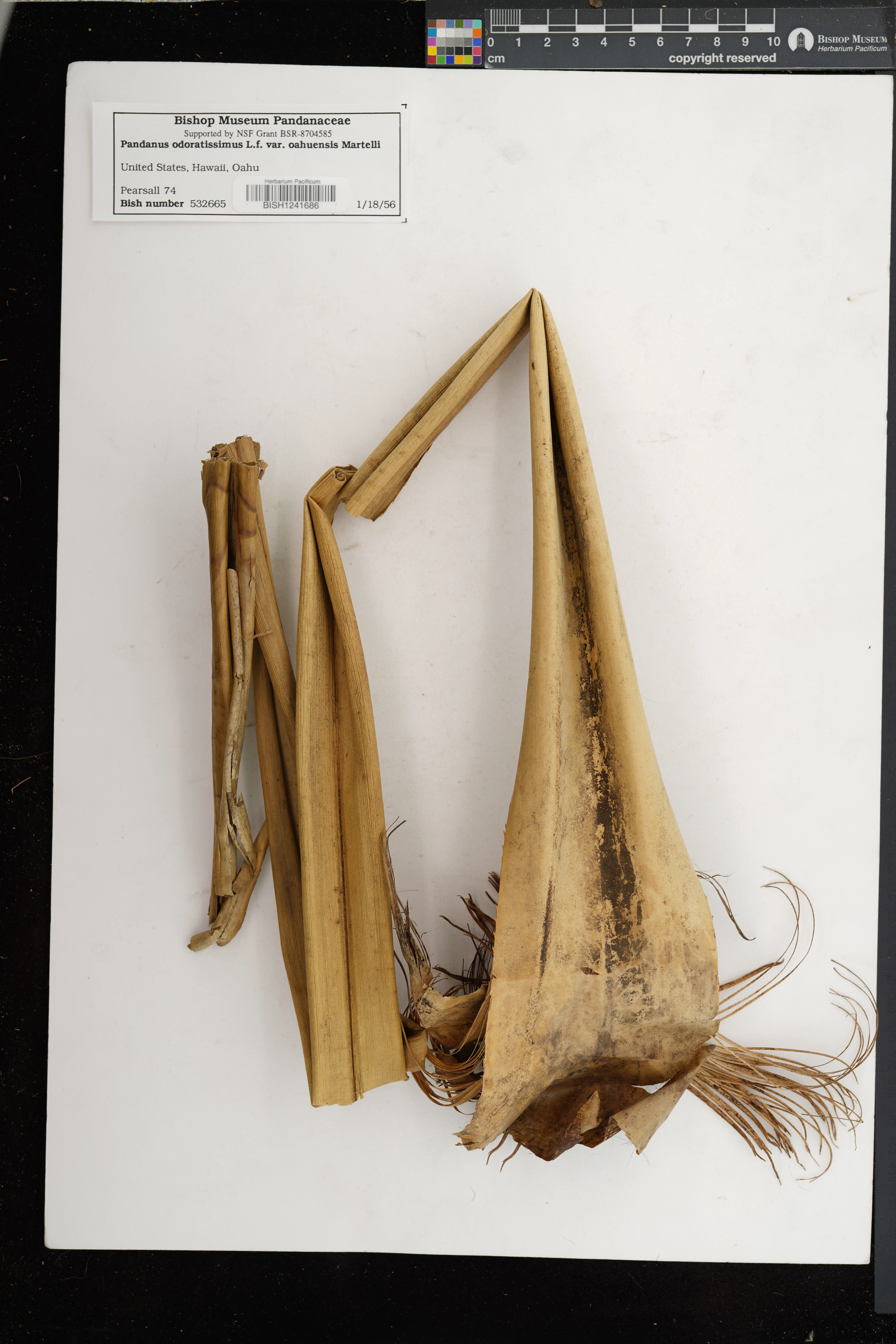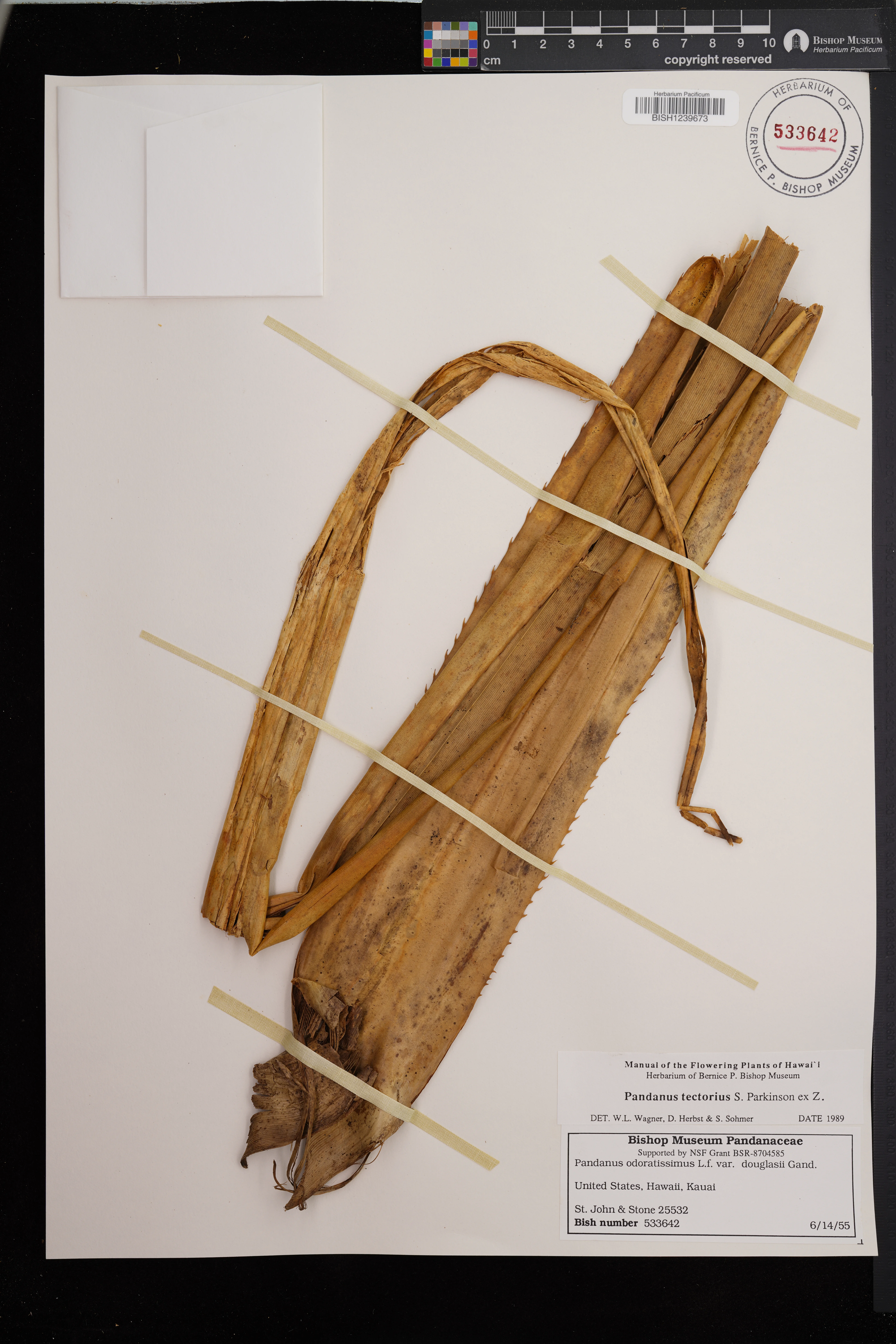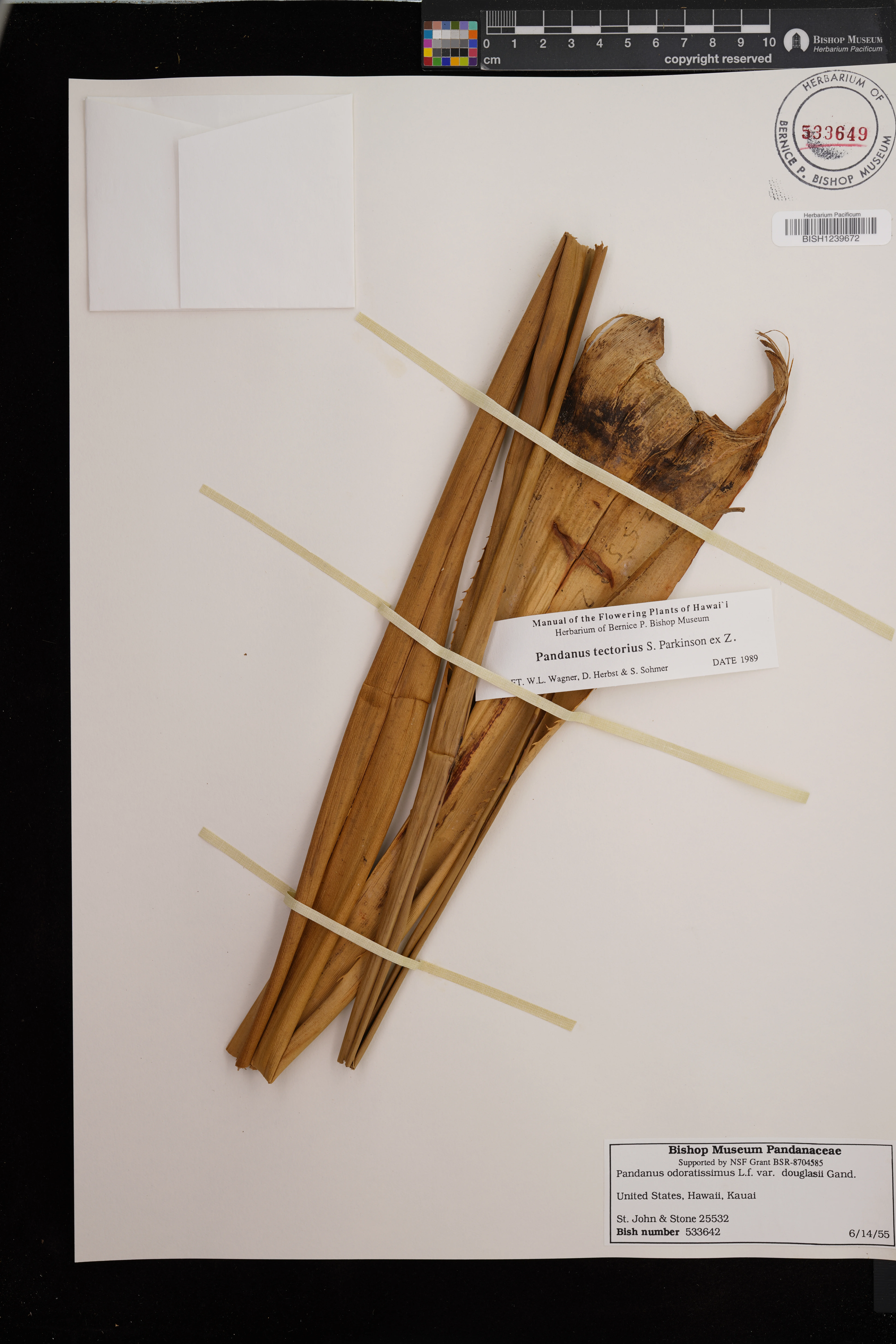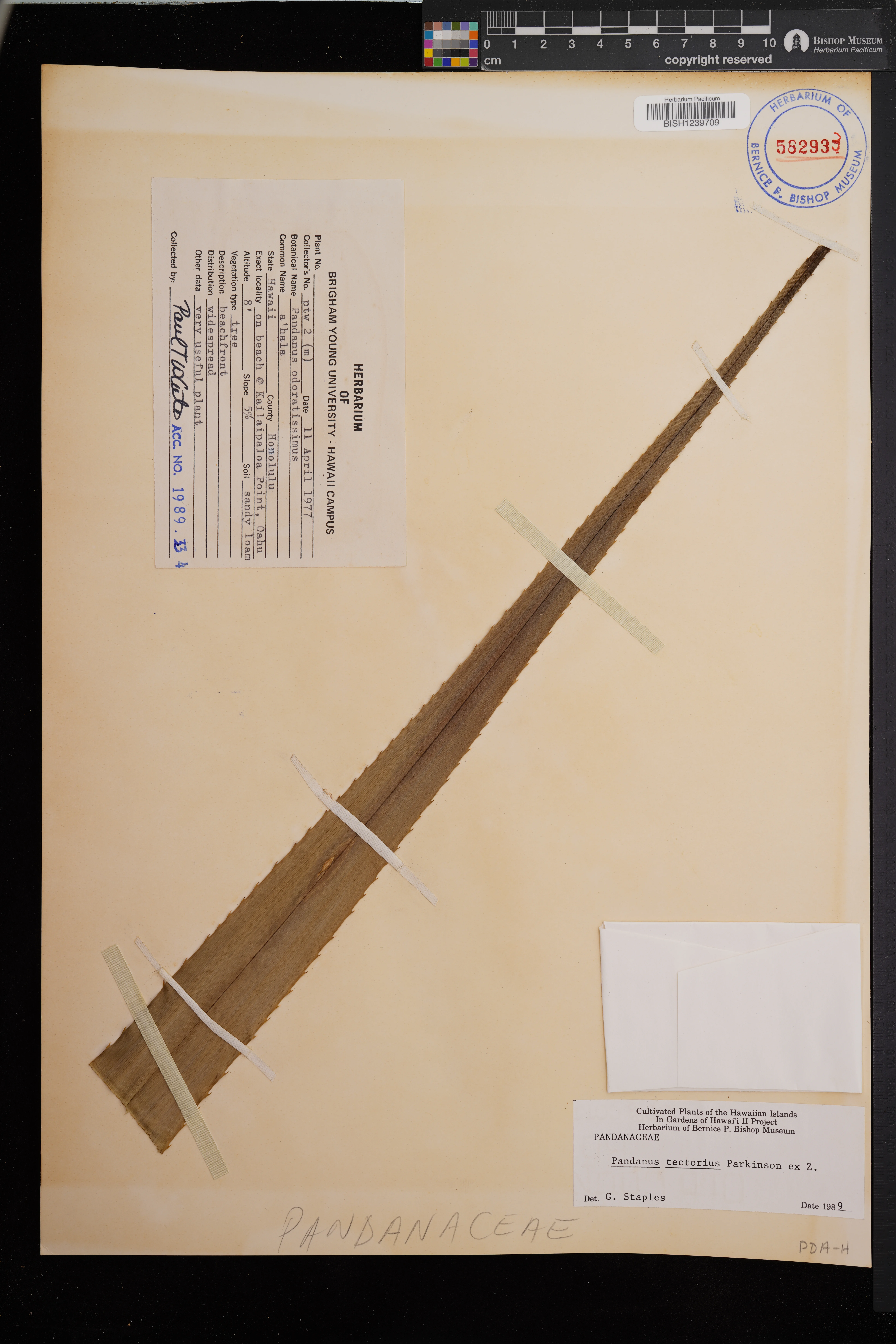 Tree about 20 ft. high; spreading about 20 ft.; shrubby; branching immediately where main aerial roots begin to radiate downward; brs. ending in large tufts of long lvs. which have wide white band down |
