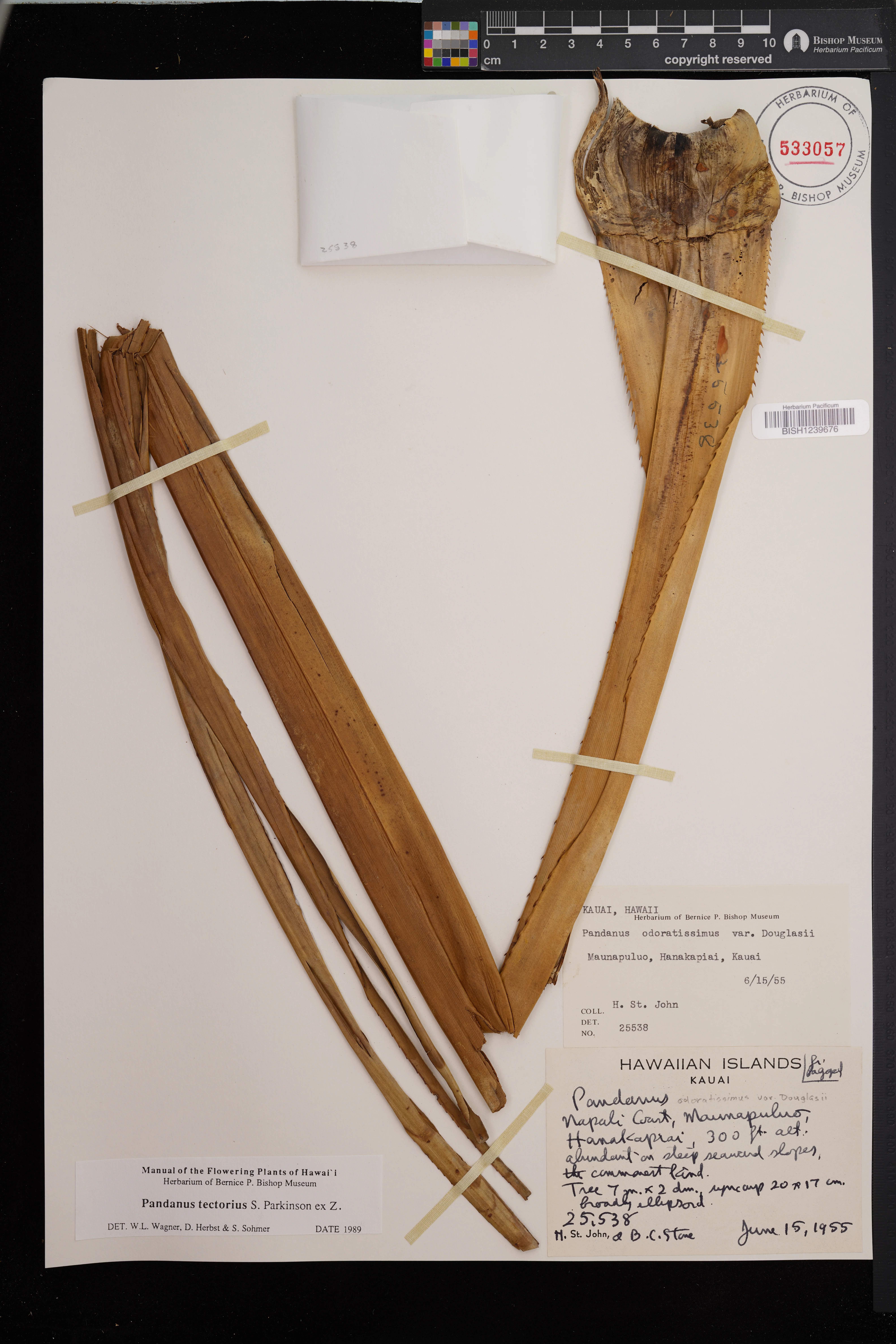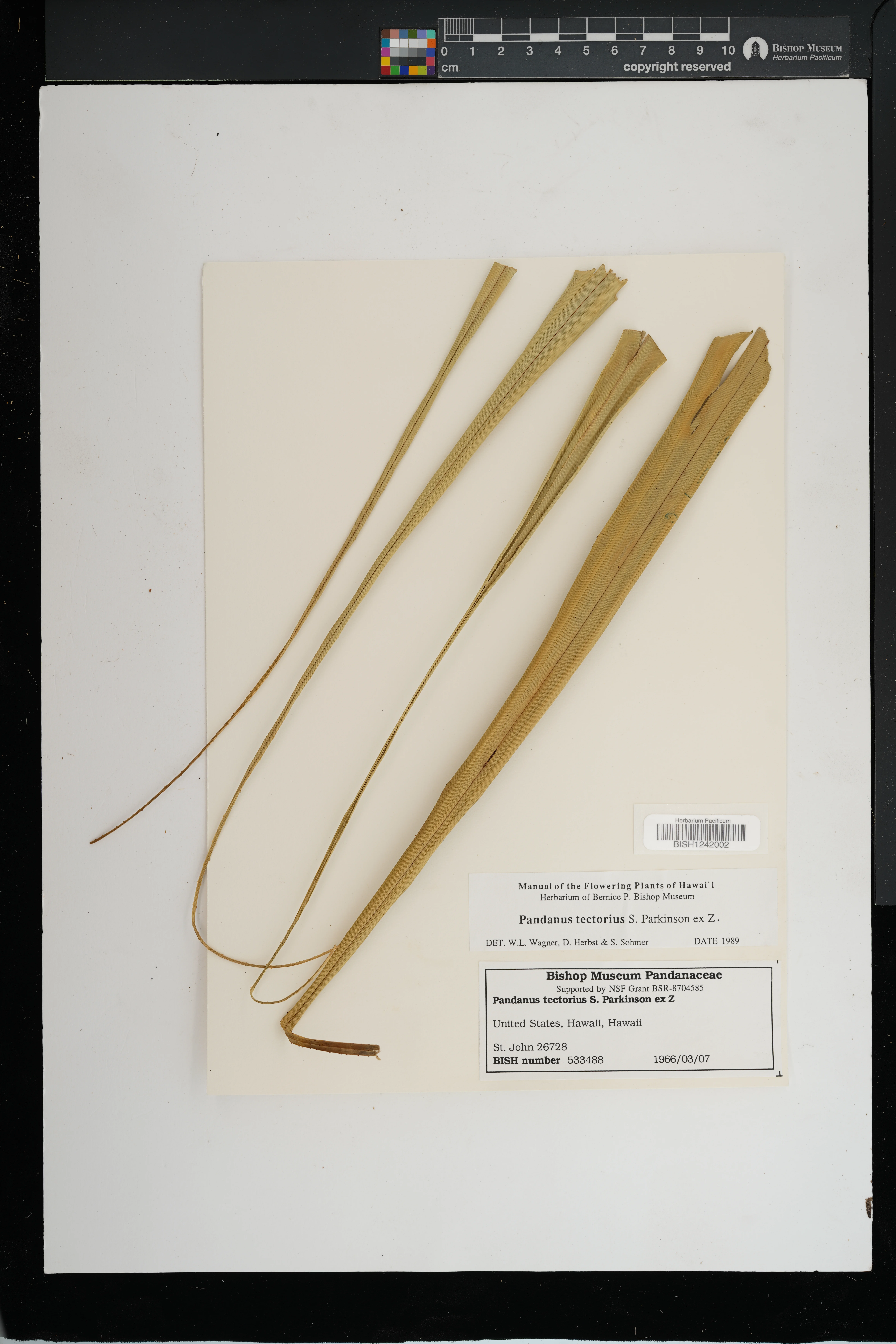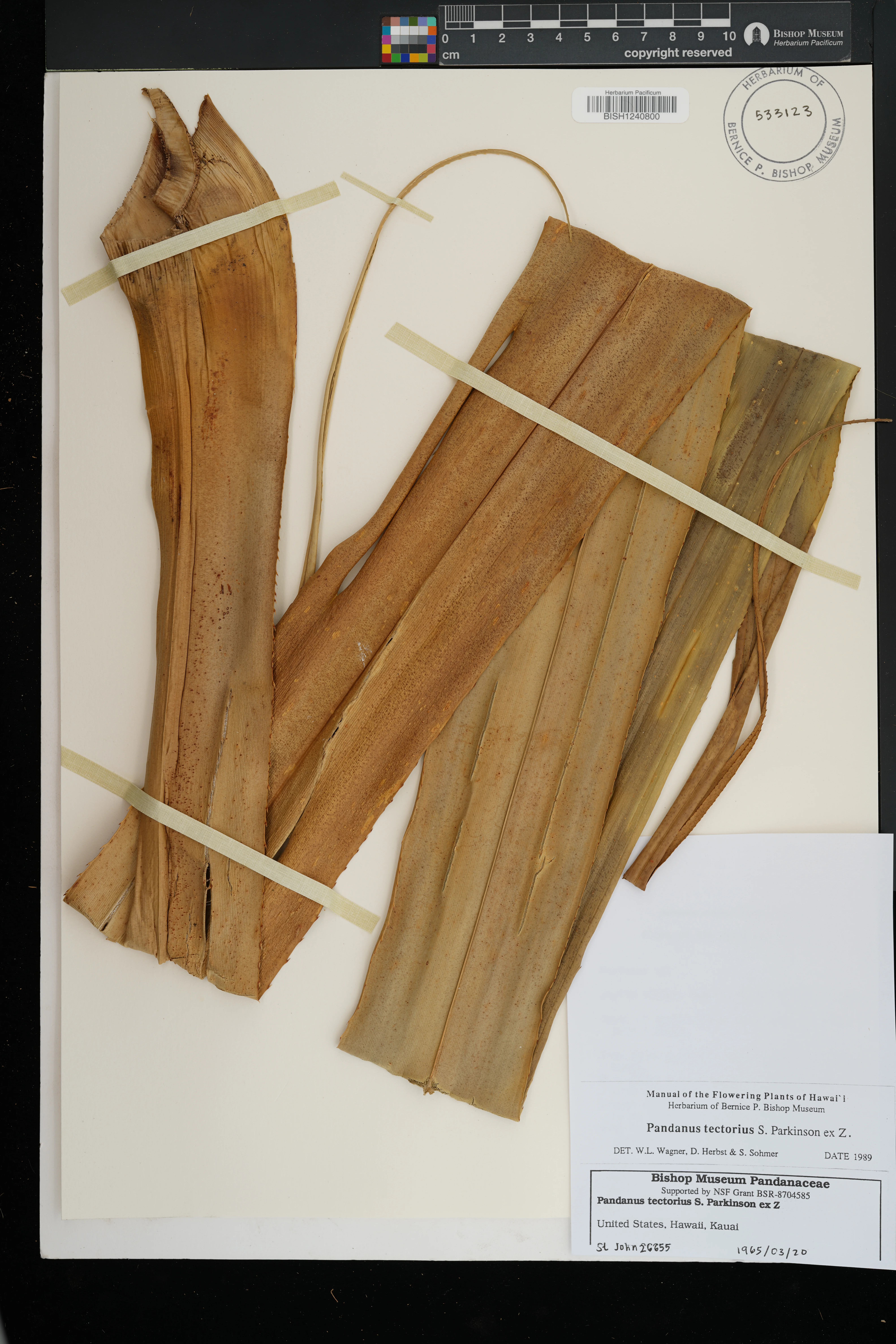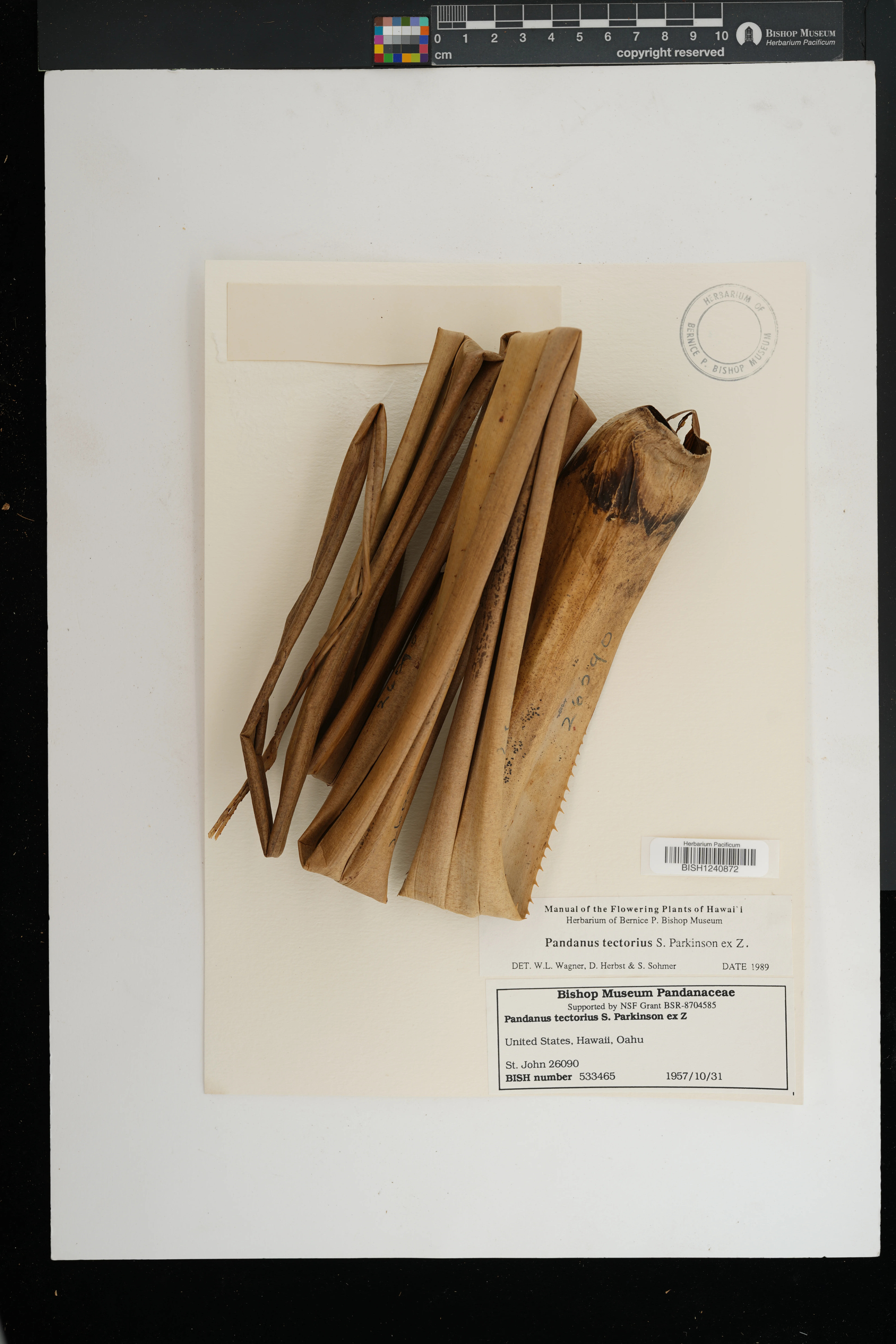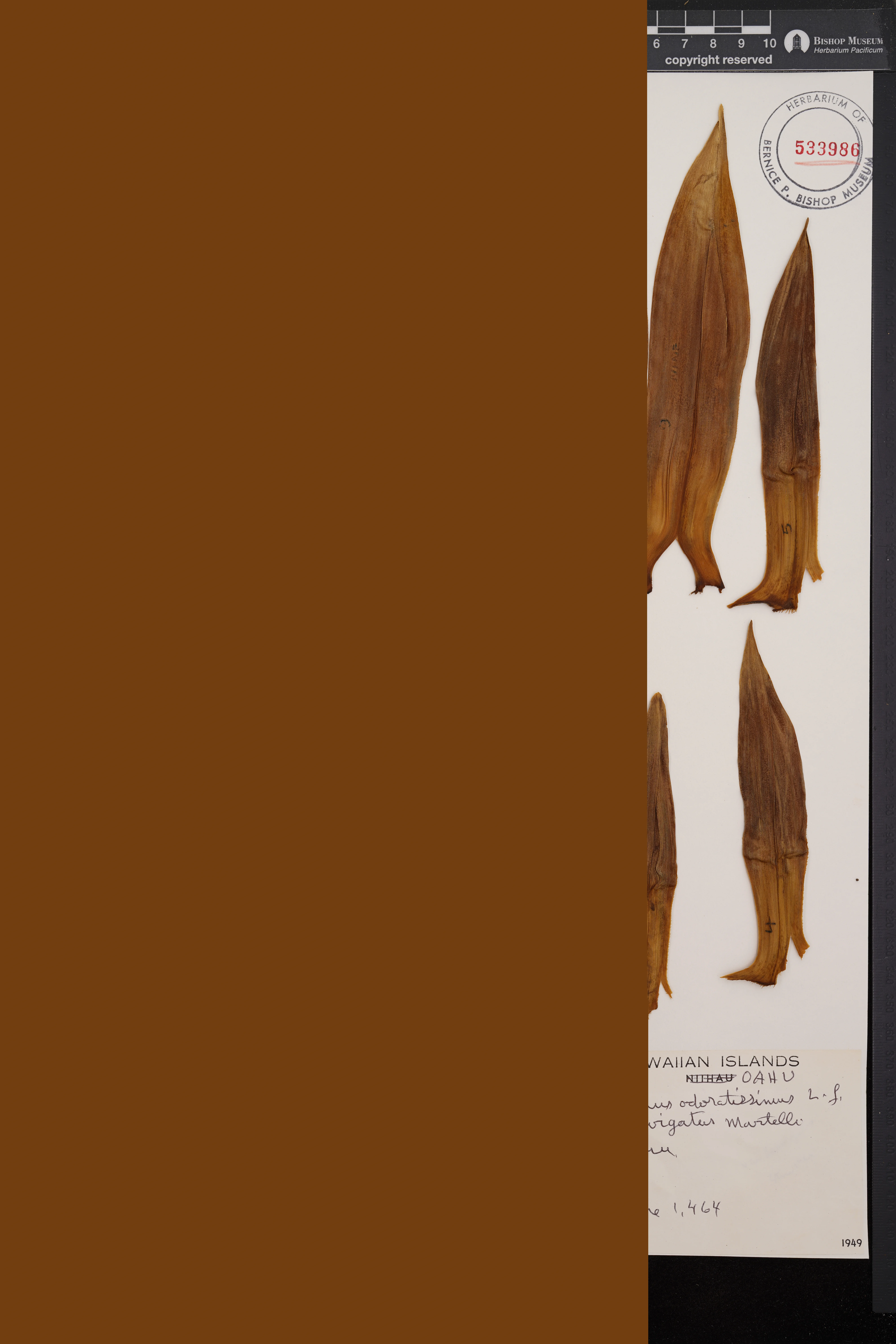 Tree about 20 ft. high; spreading about 20 ft.; shrubby; branching immediately where main aerial roots begin to radiate downward; brs. ending in large tufts of long lvs. which have wide white band down |