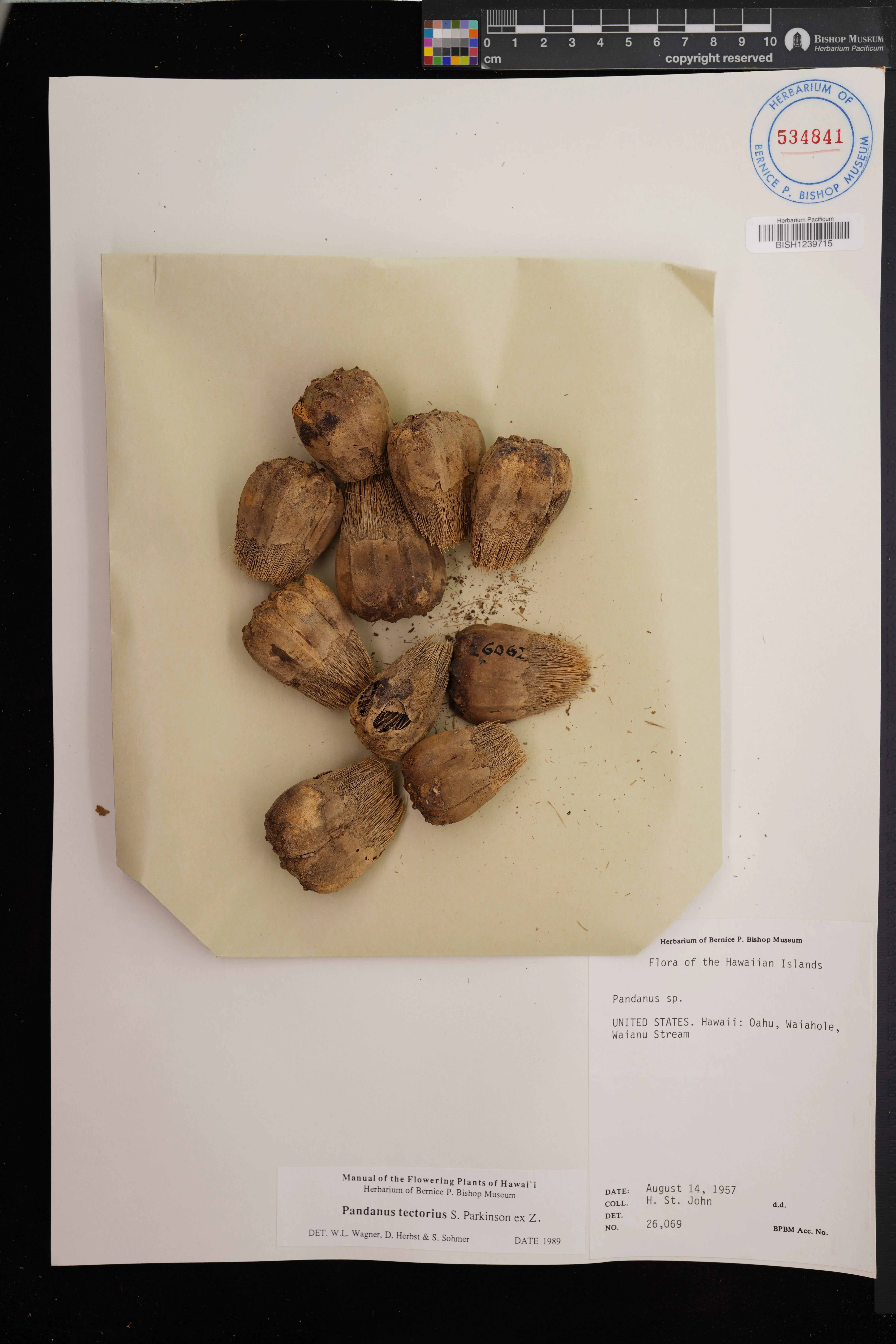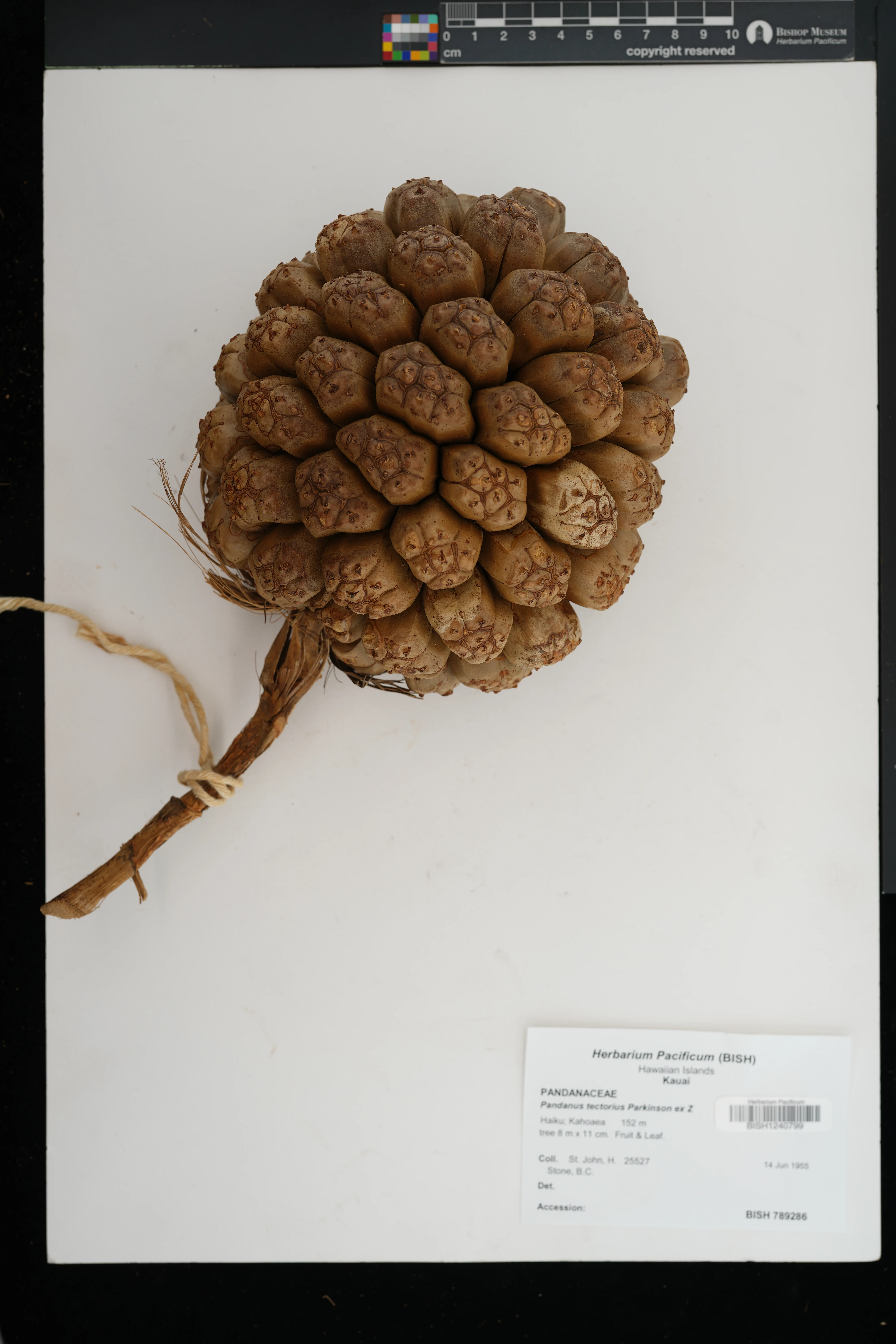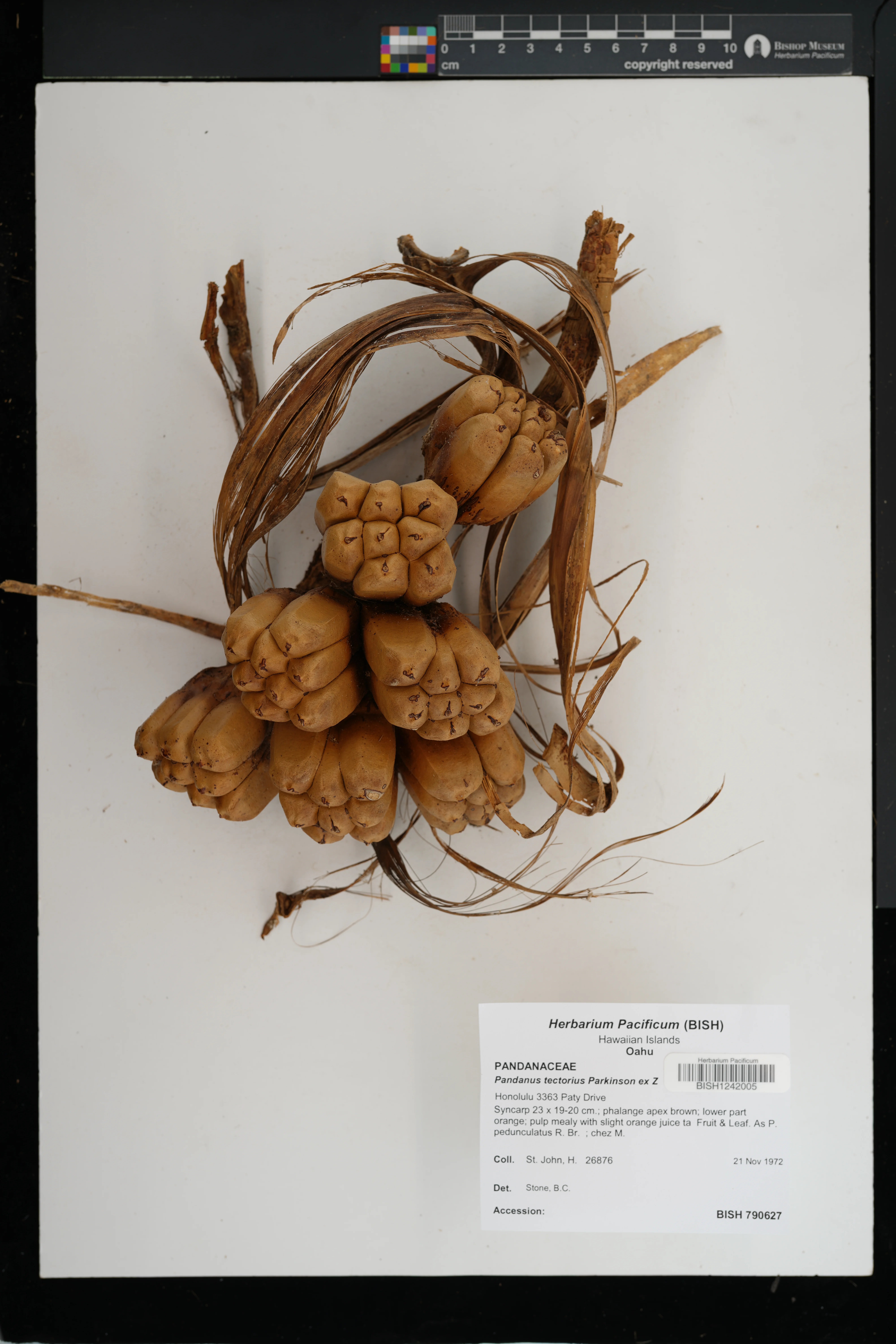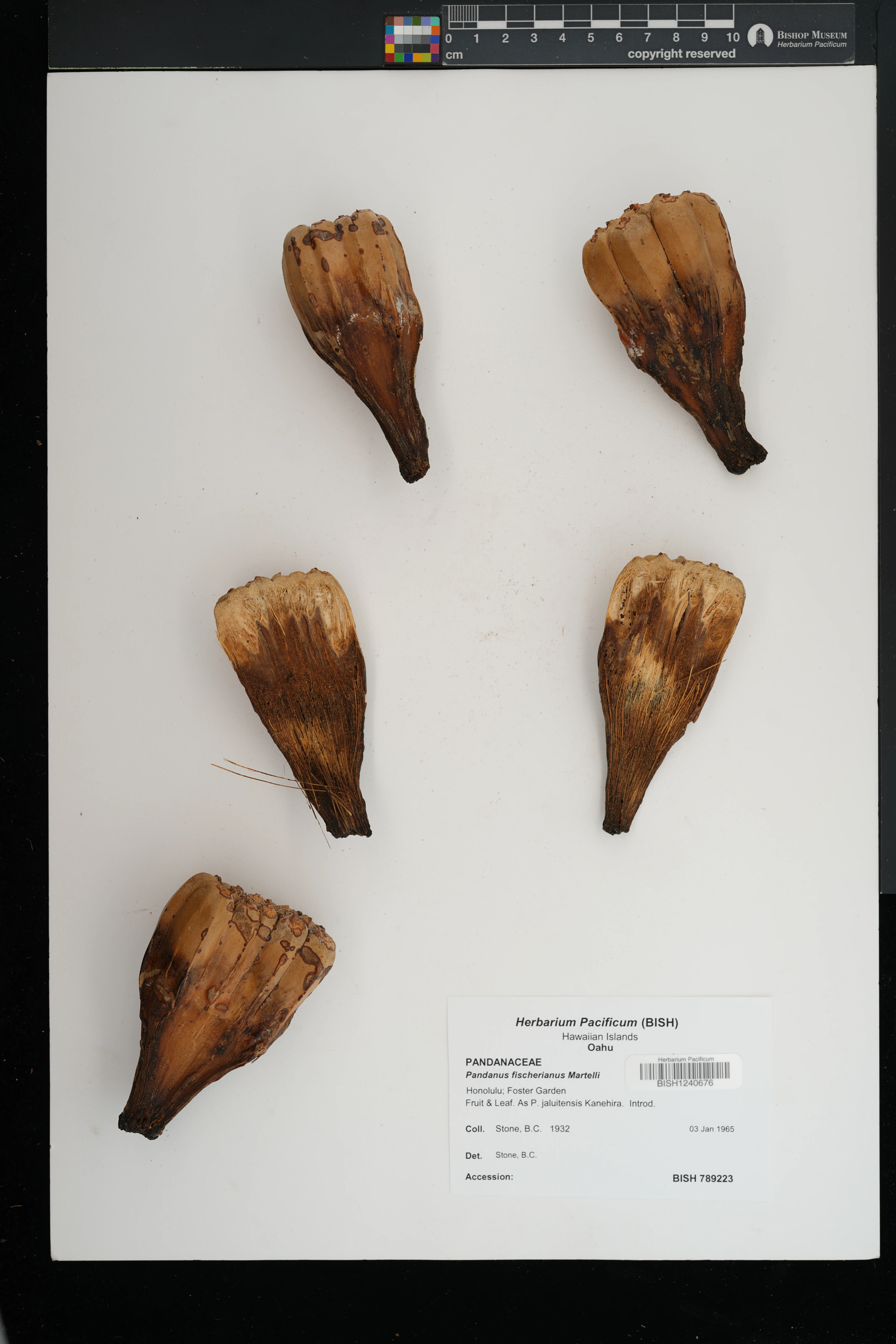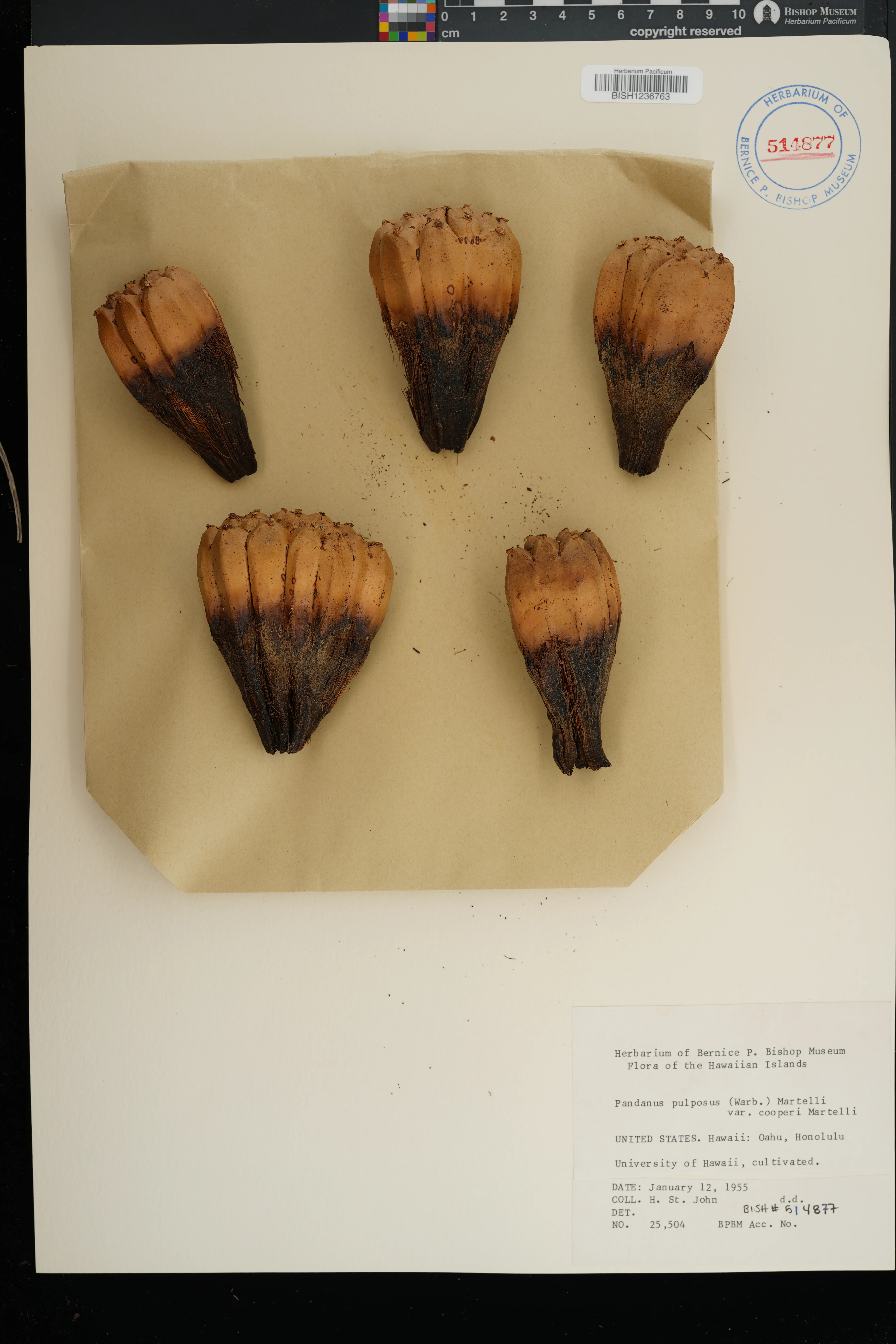 Tree 9m tall; roots spreading laterally at ground level; prop roots from 1m above ground; fruits orange at maturity; fruiting head exceptionally large |