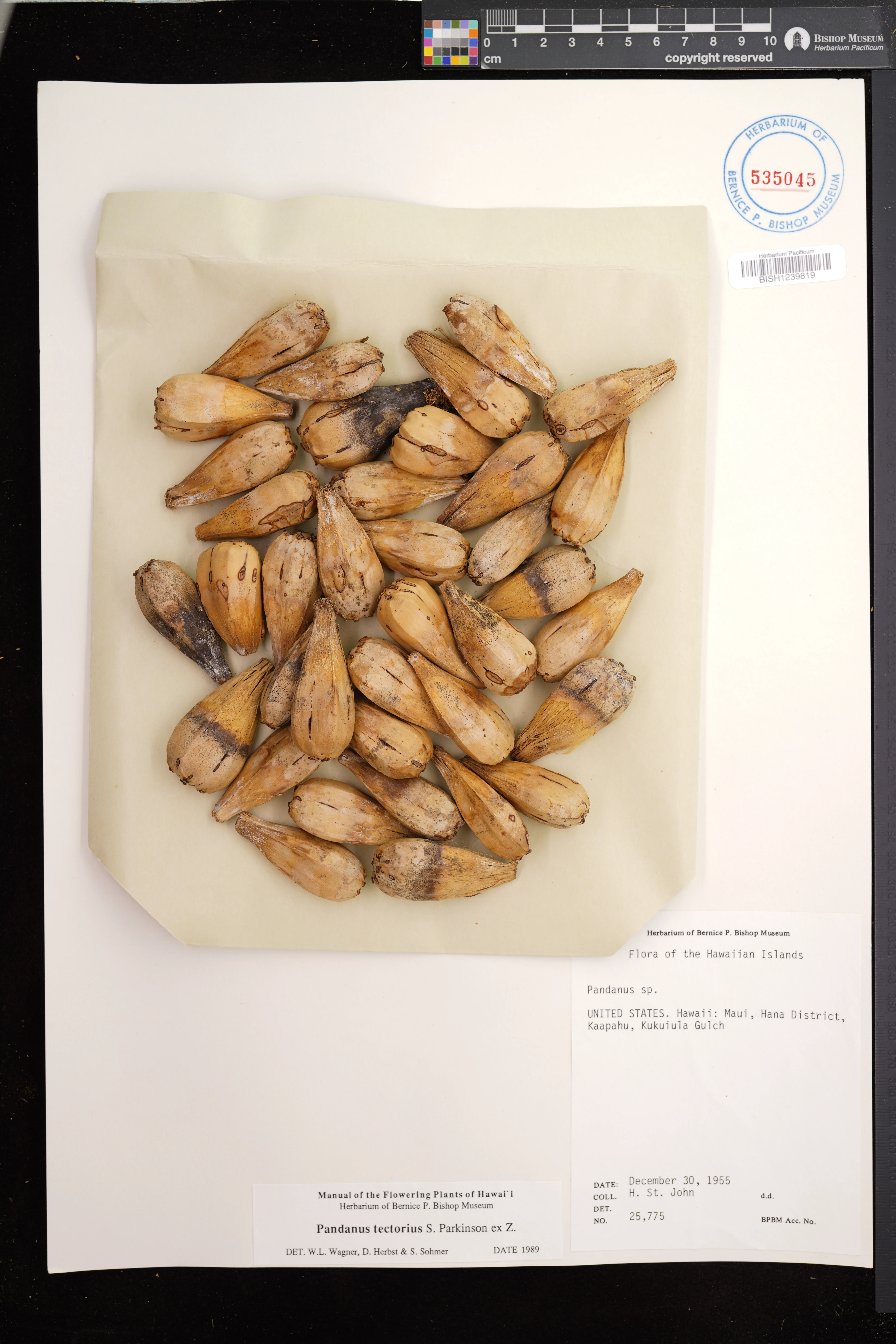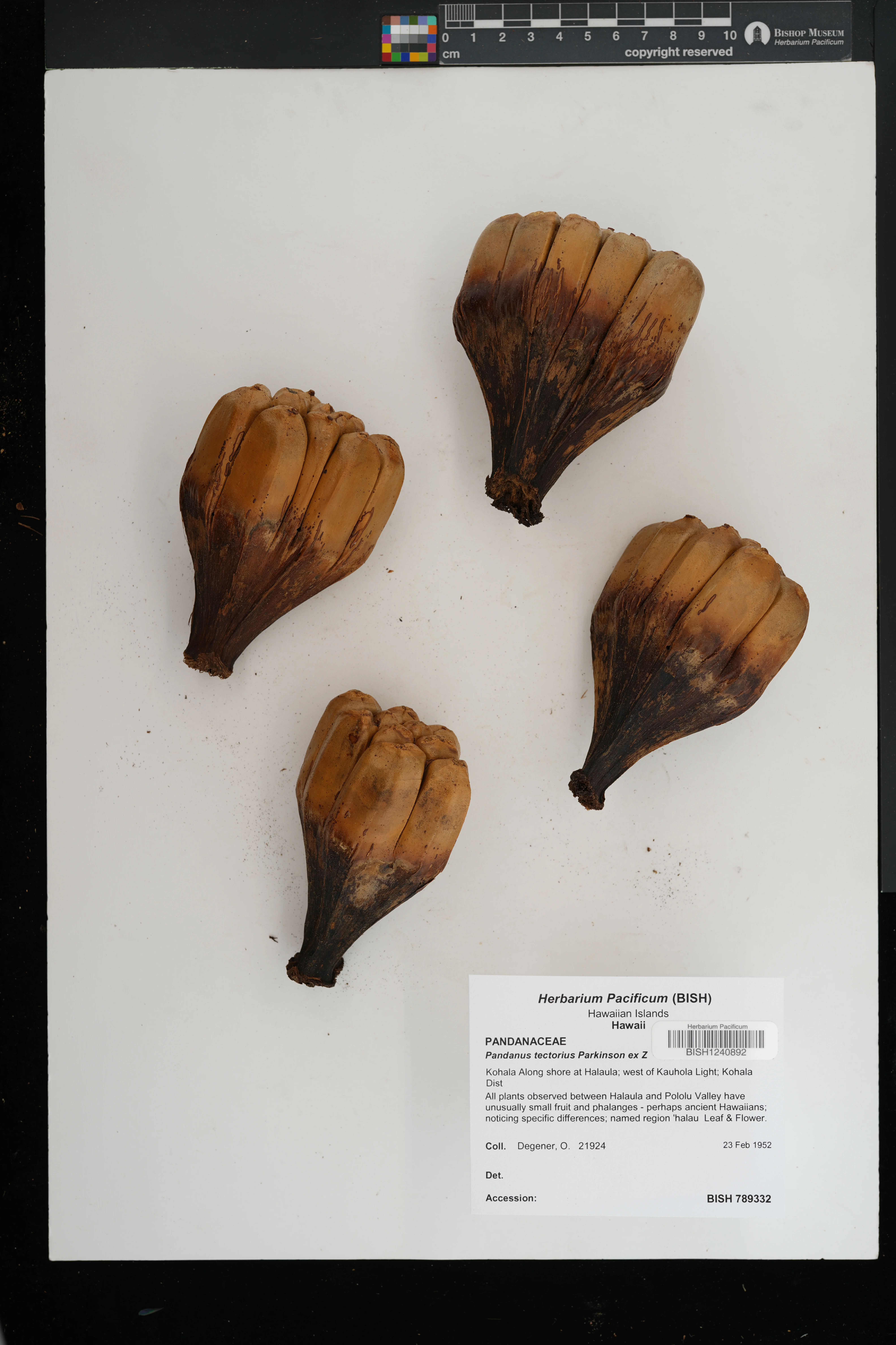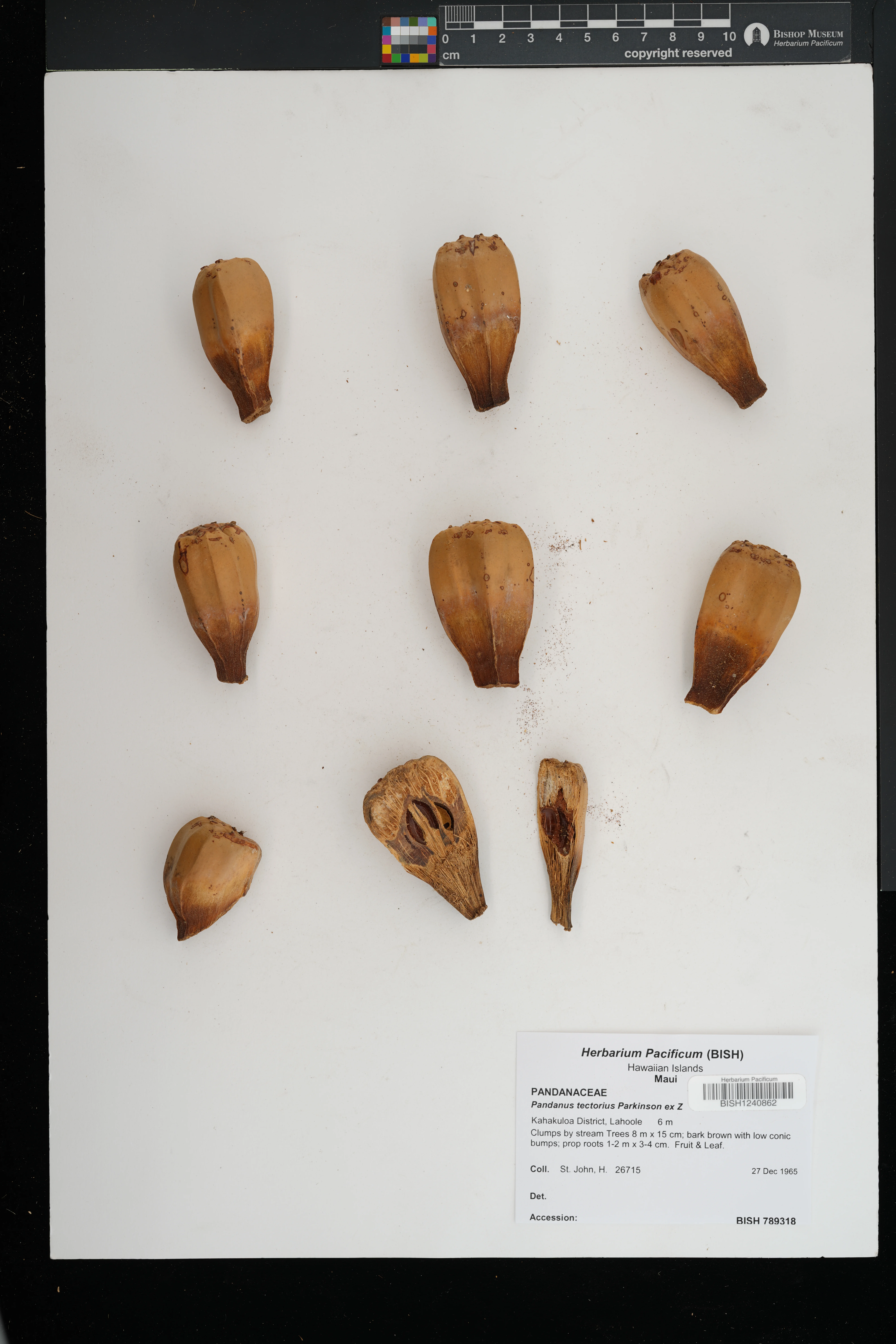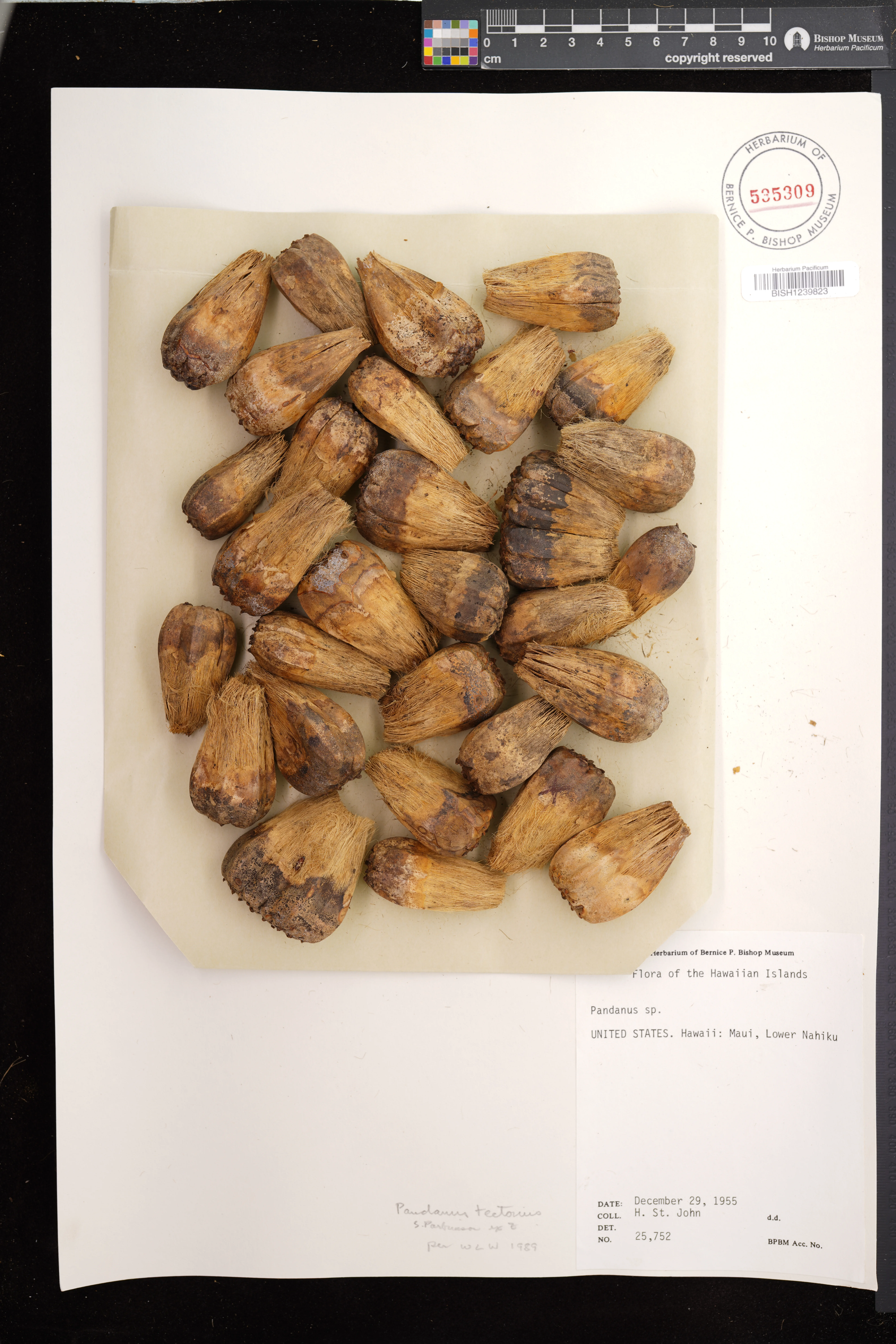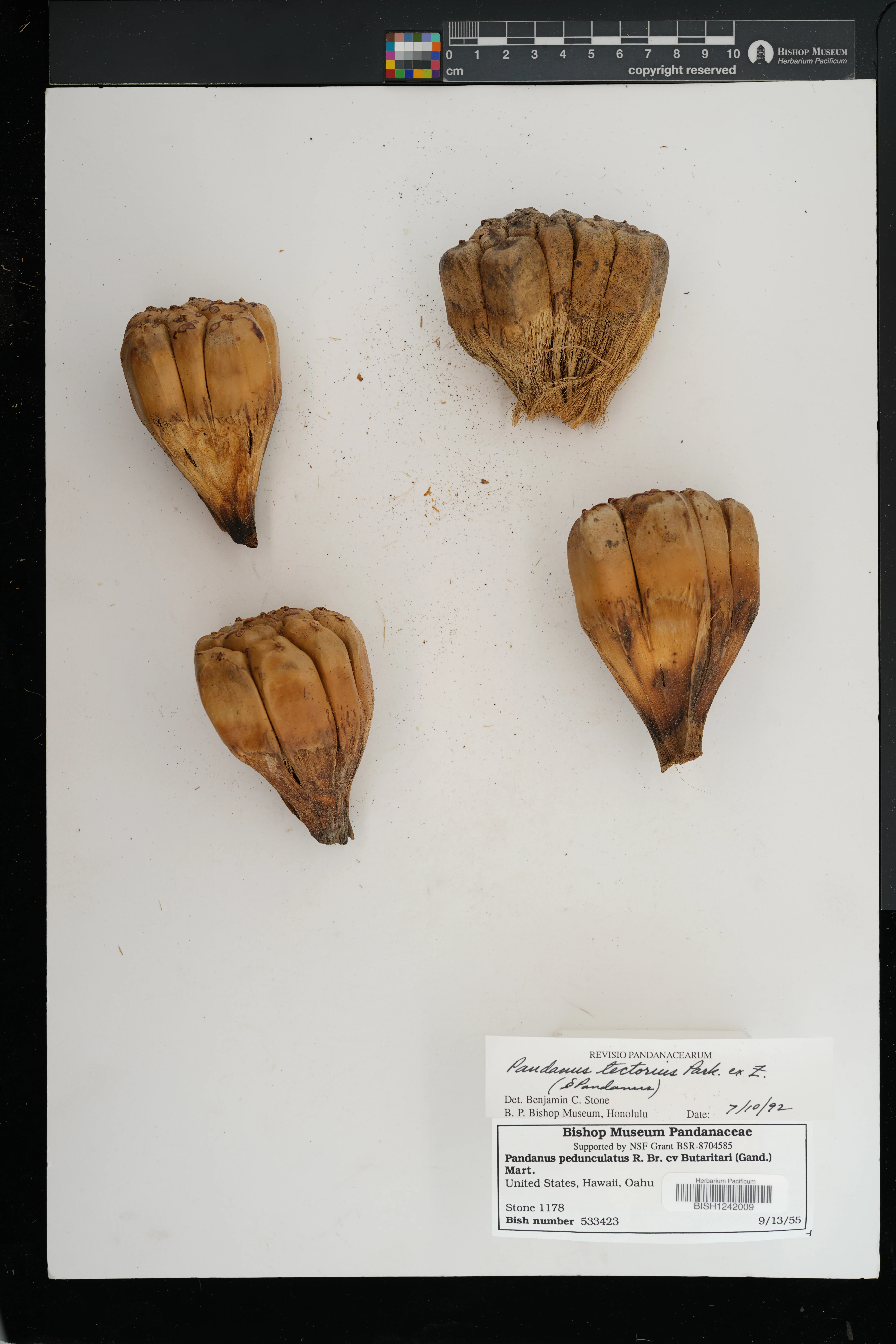 Tree 9m tall; roots spreading laterally at ground level; prop roots from 1m above ground; fruits orange at maturity; fruiting head exceptionally large |