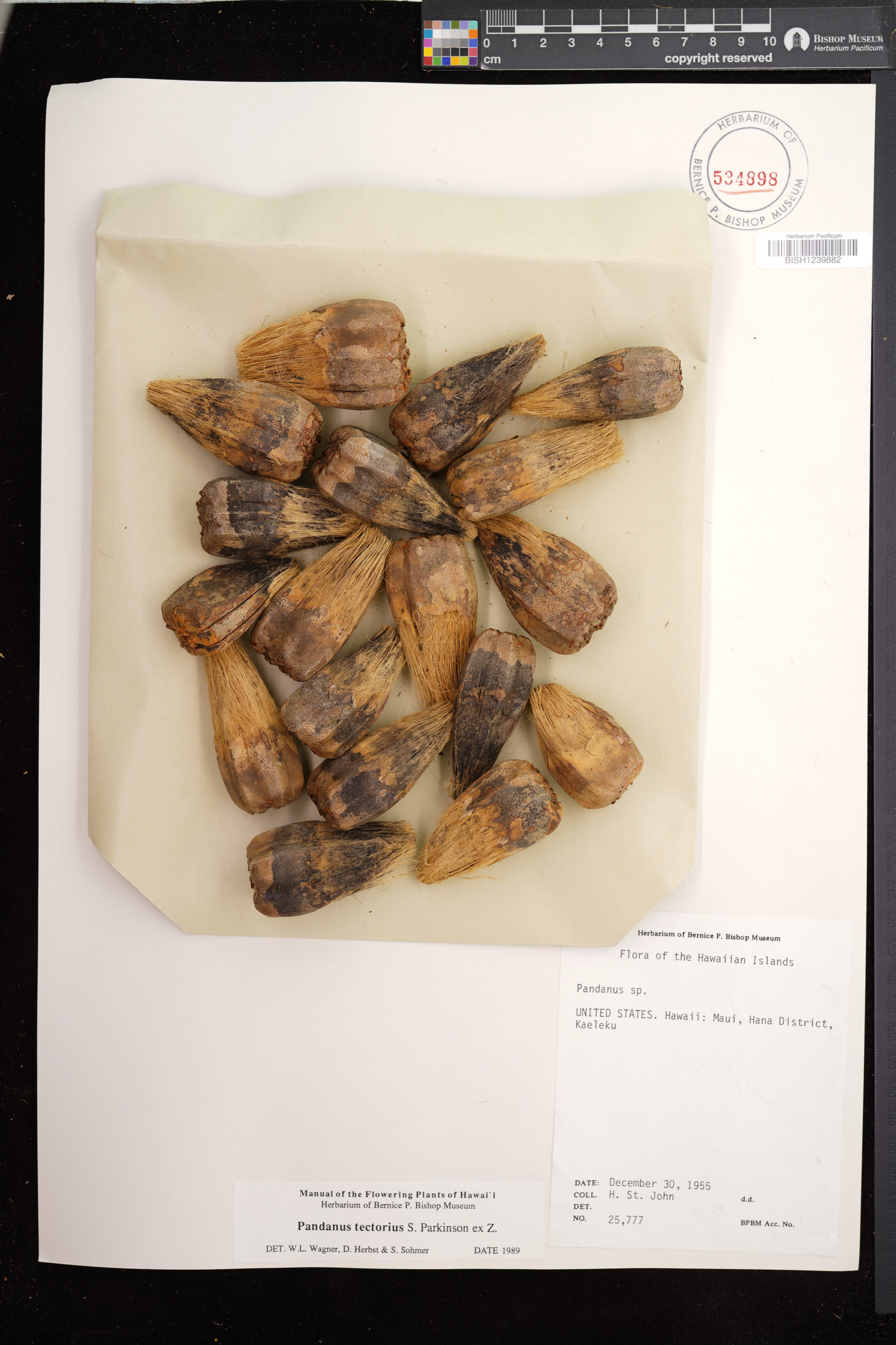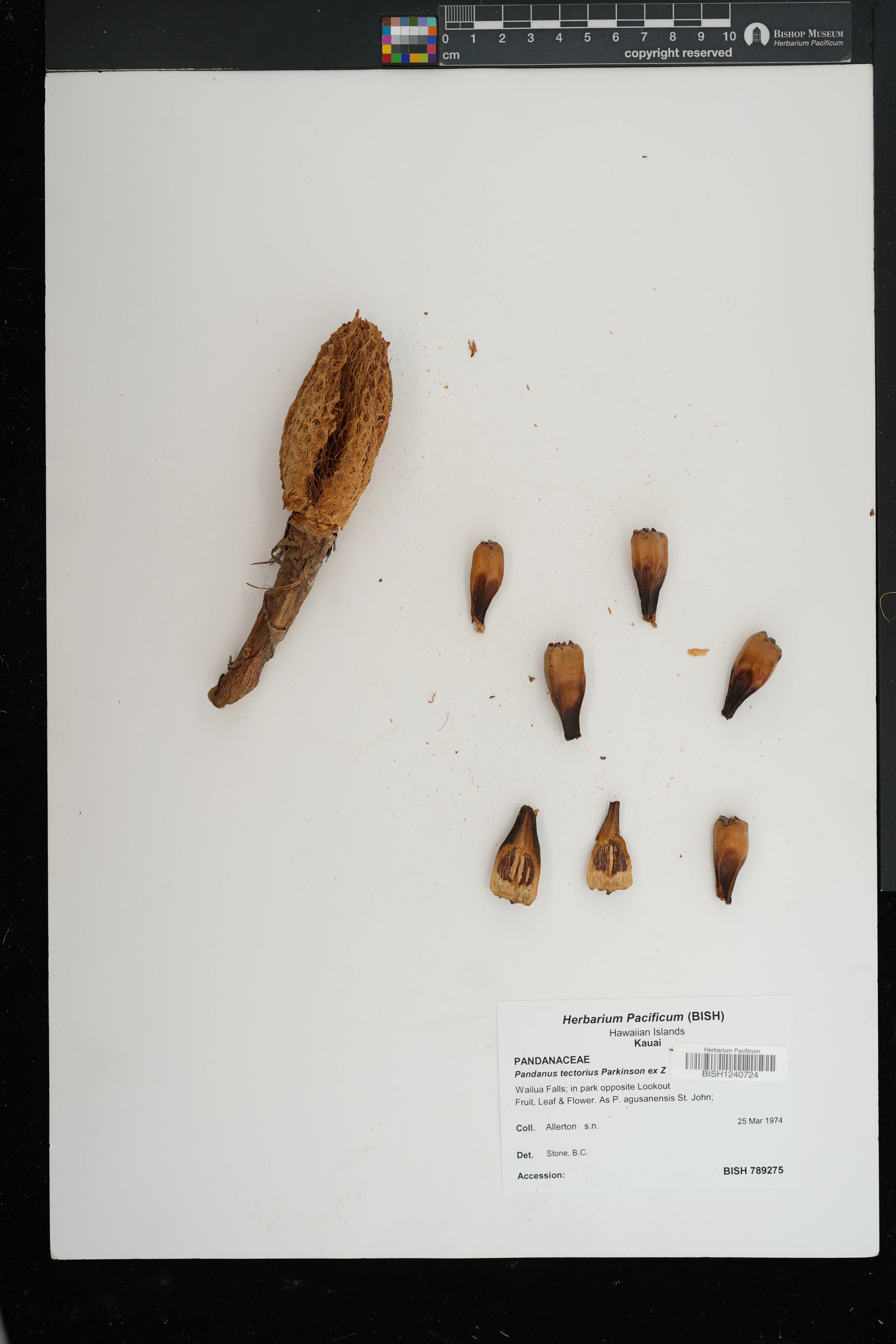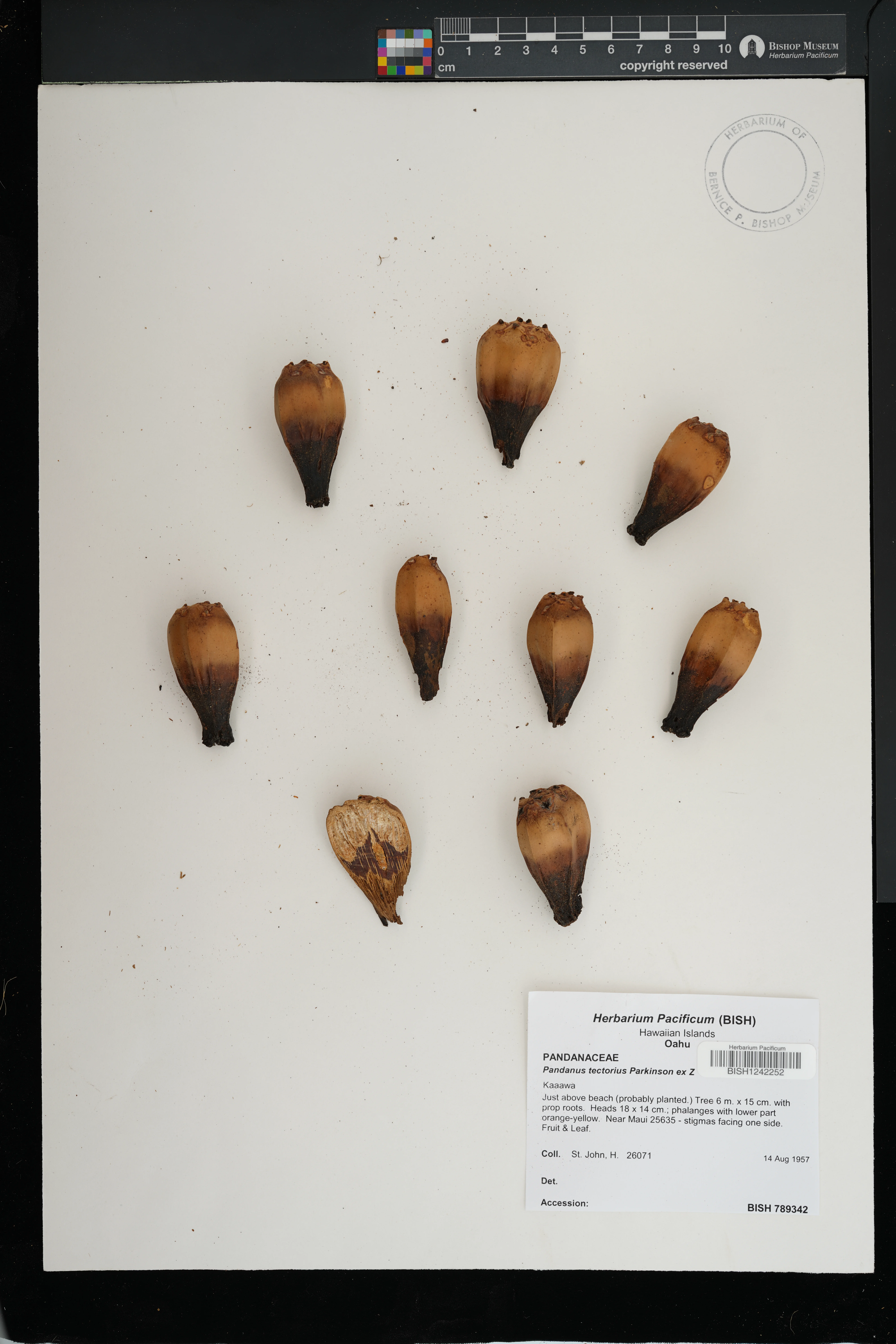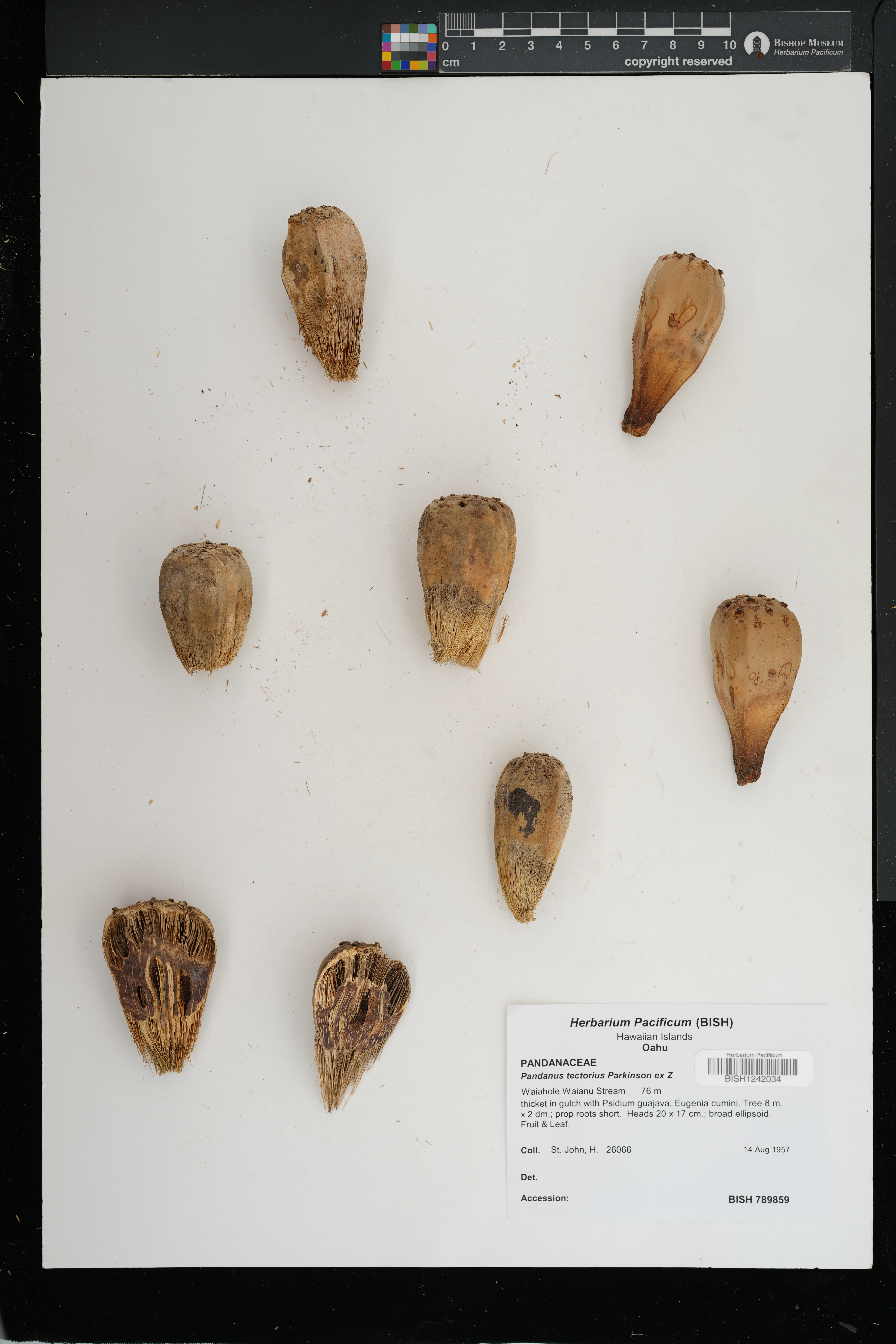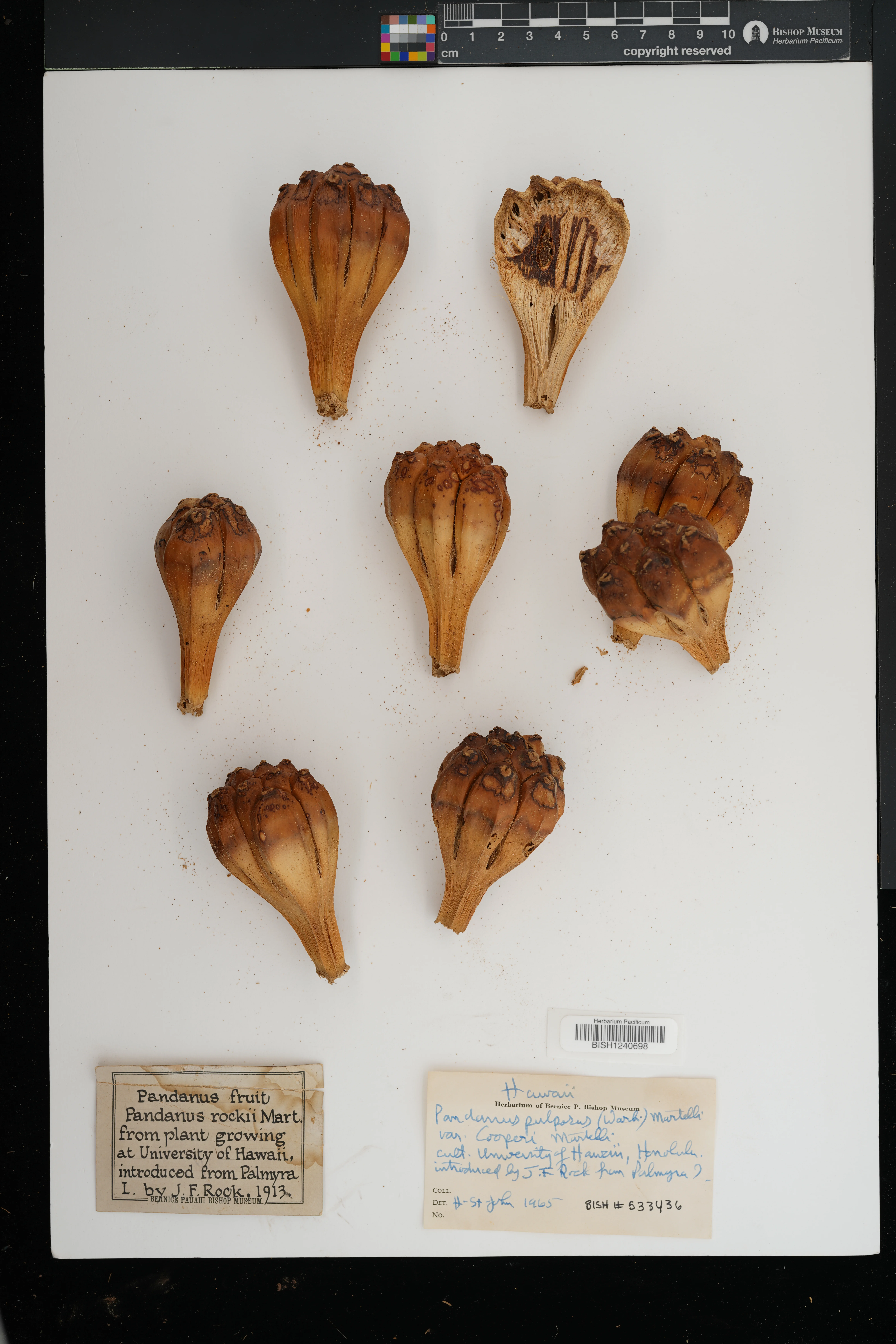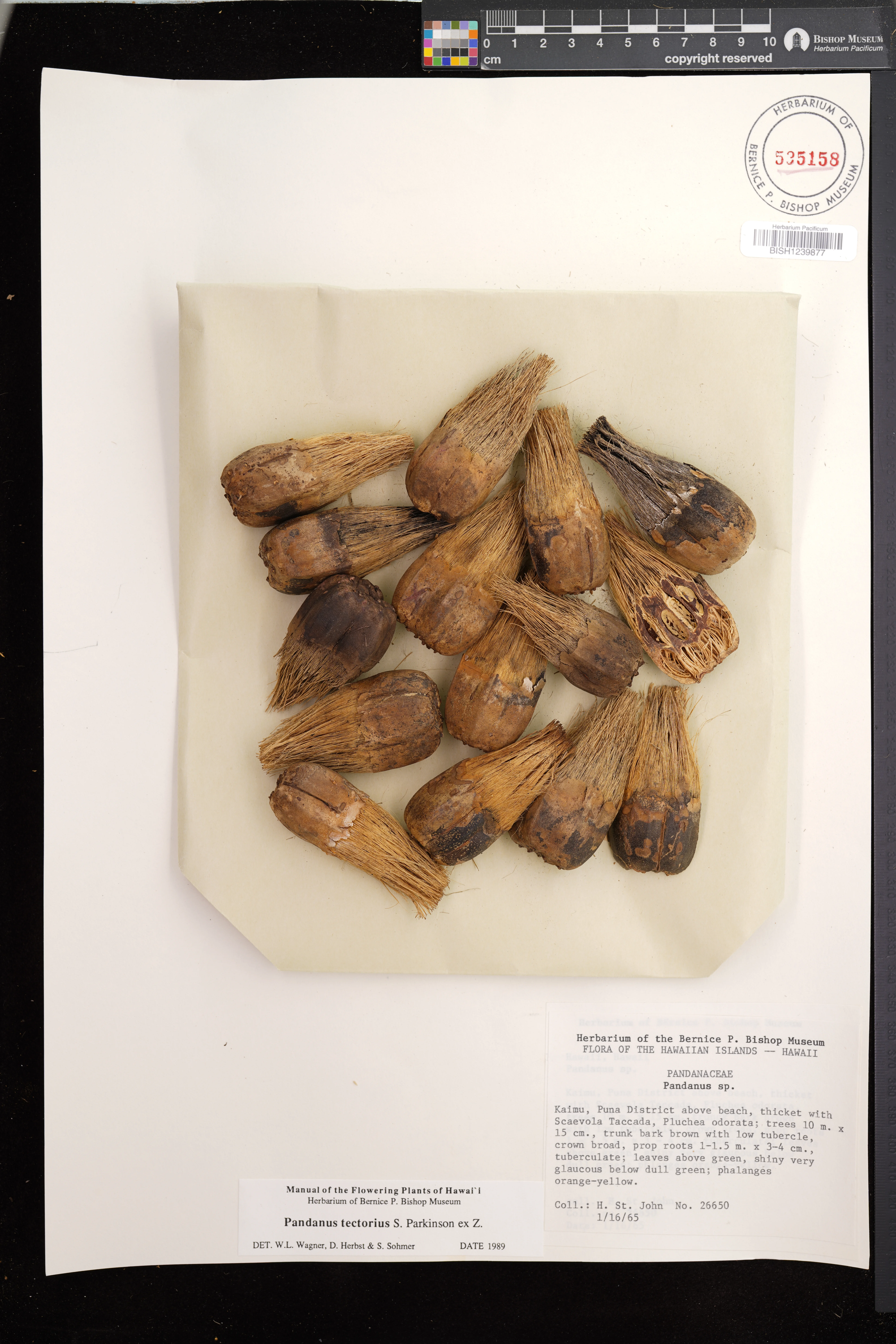 Tree 9m tall; roots spreading laterally at ground level; prop roots from 1m above ground; fruits orange at maturity; fruiting head exceptionally large |