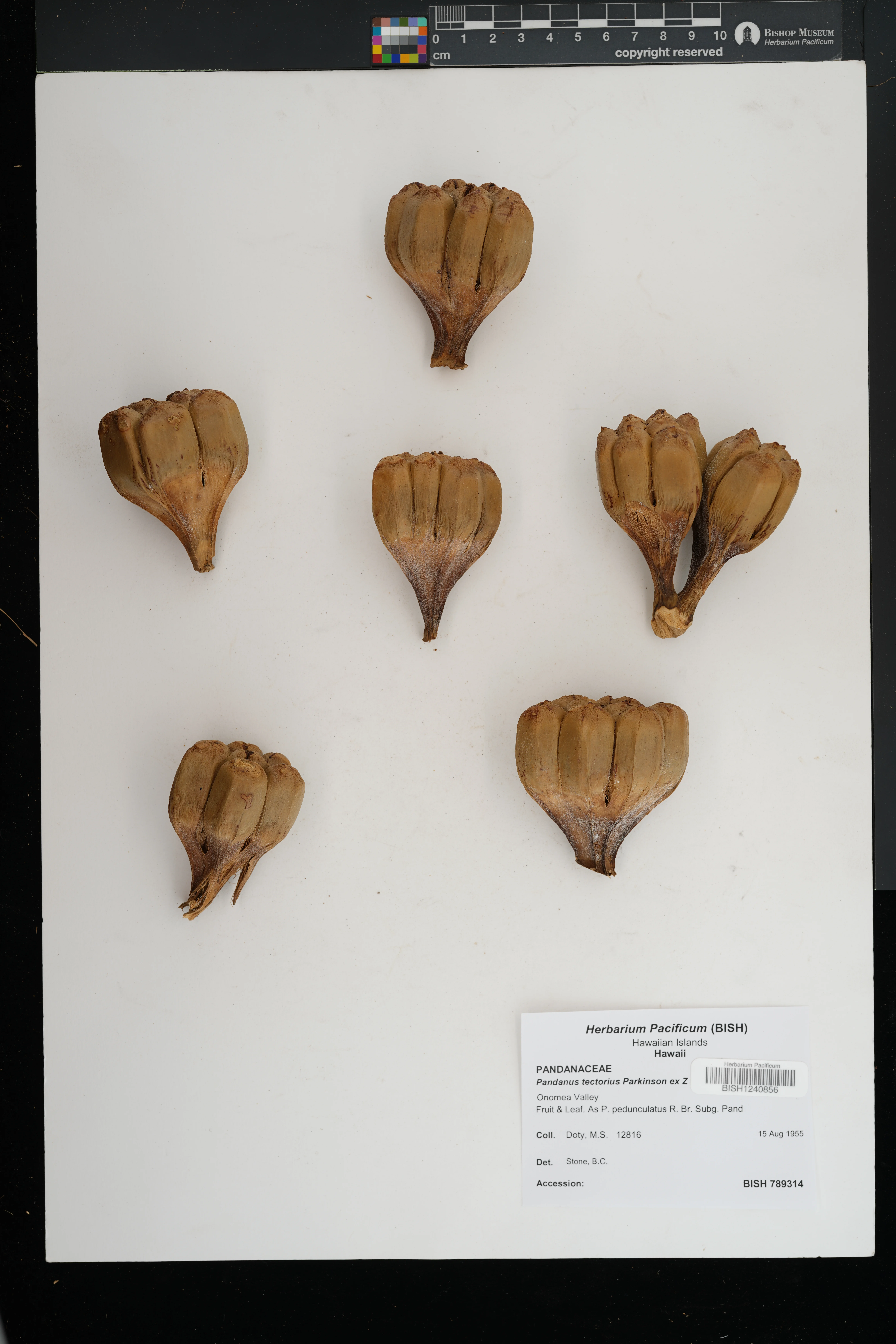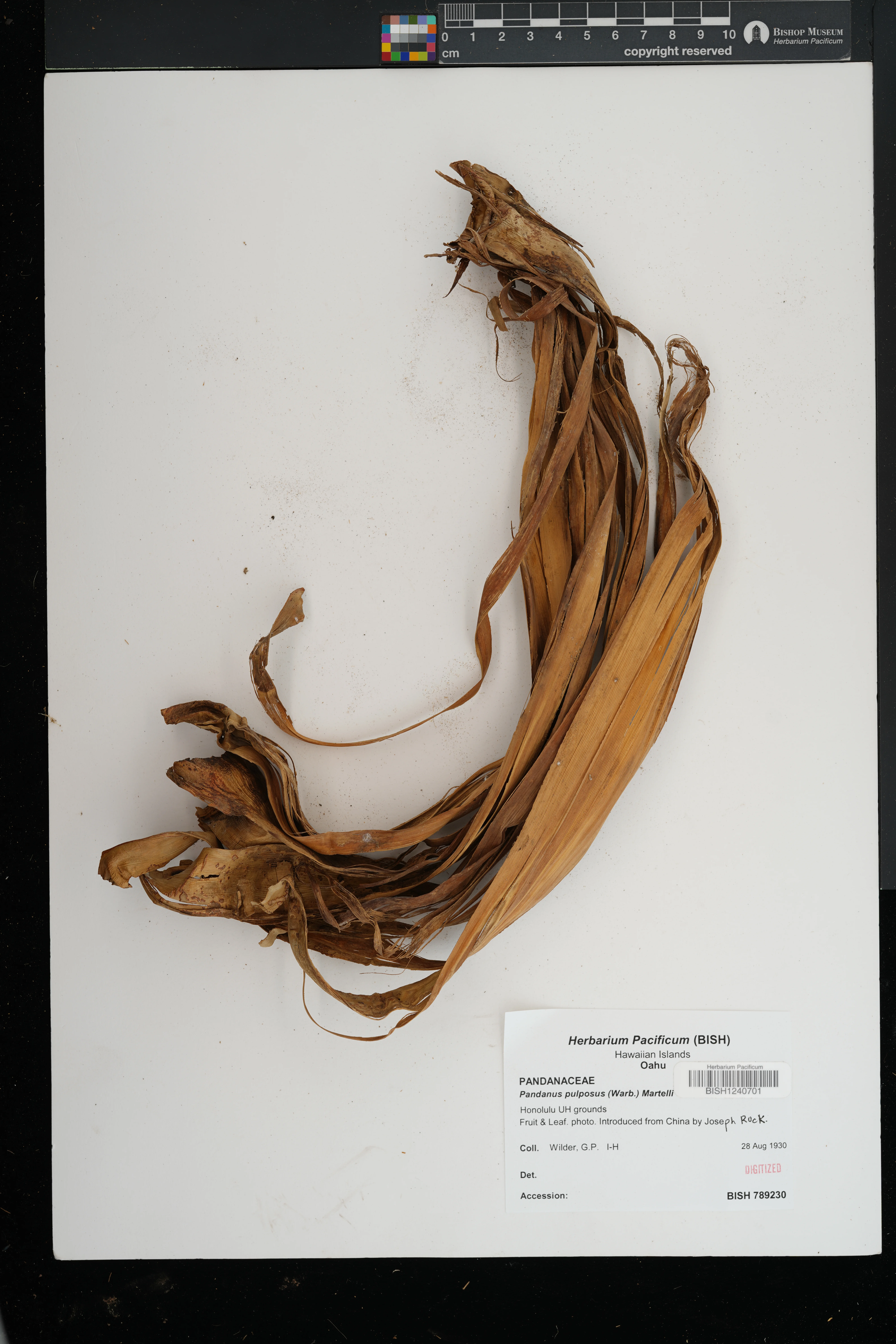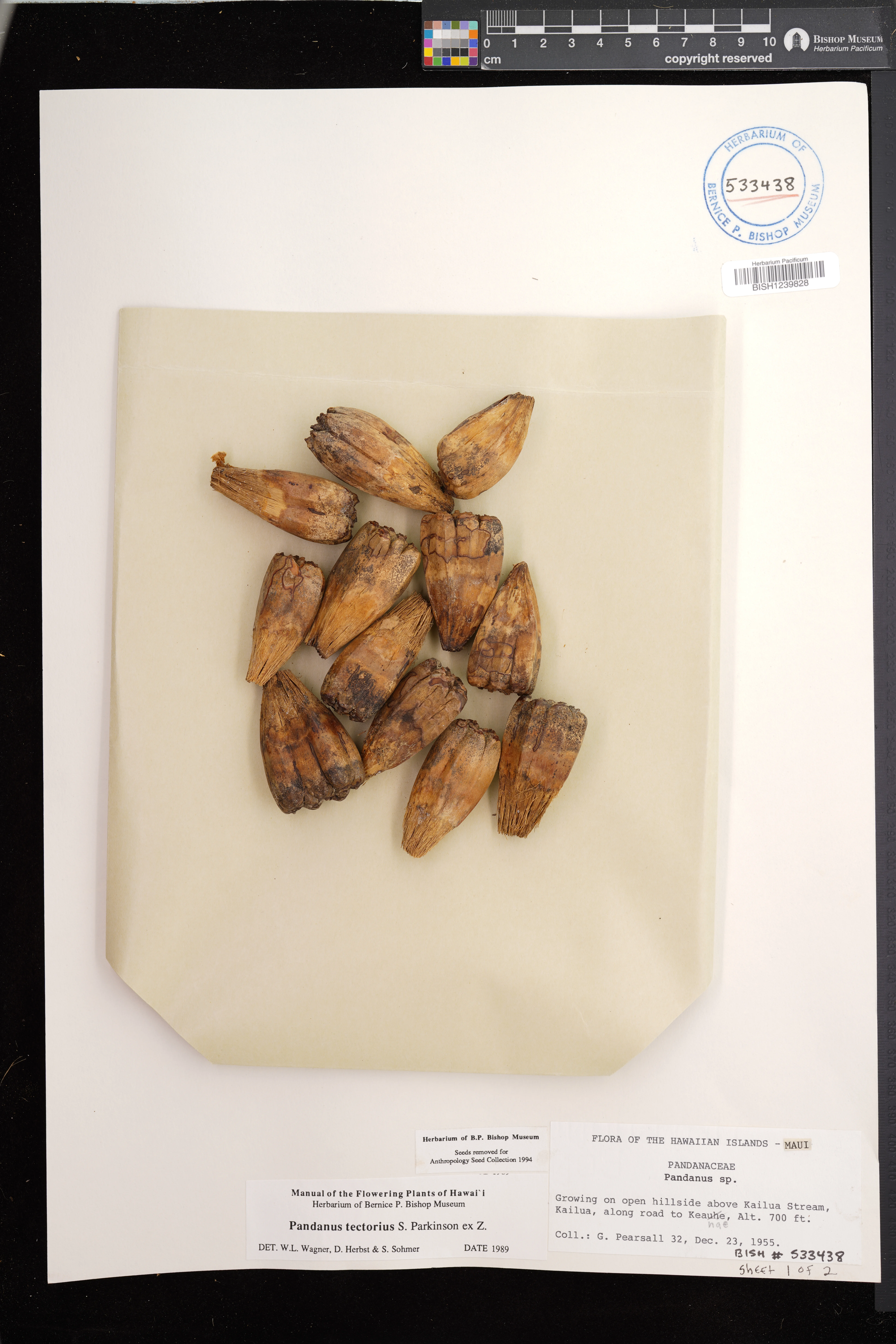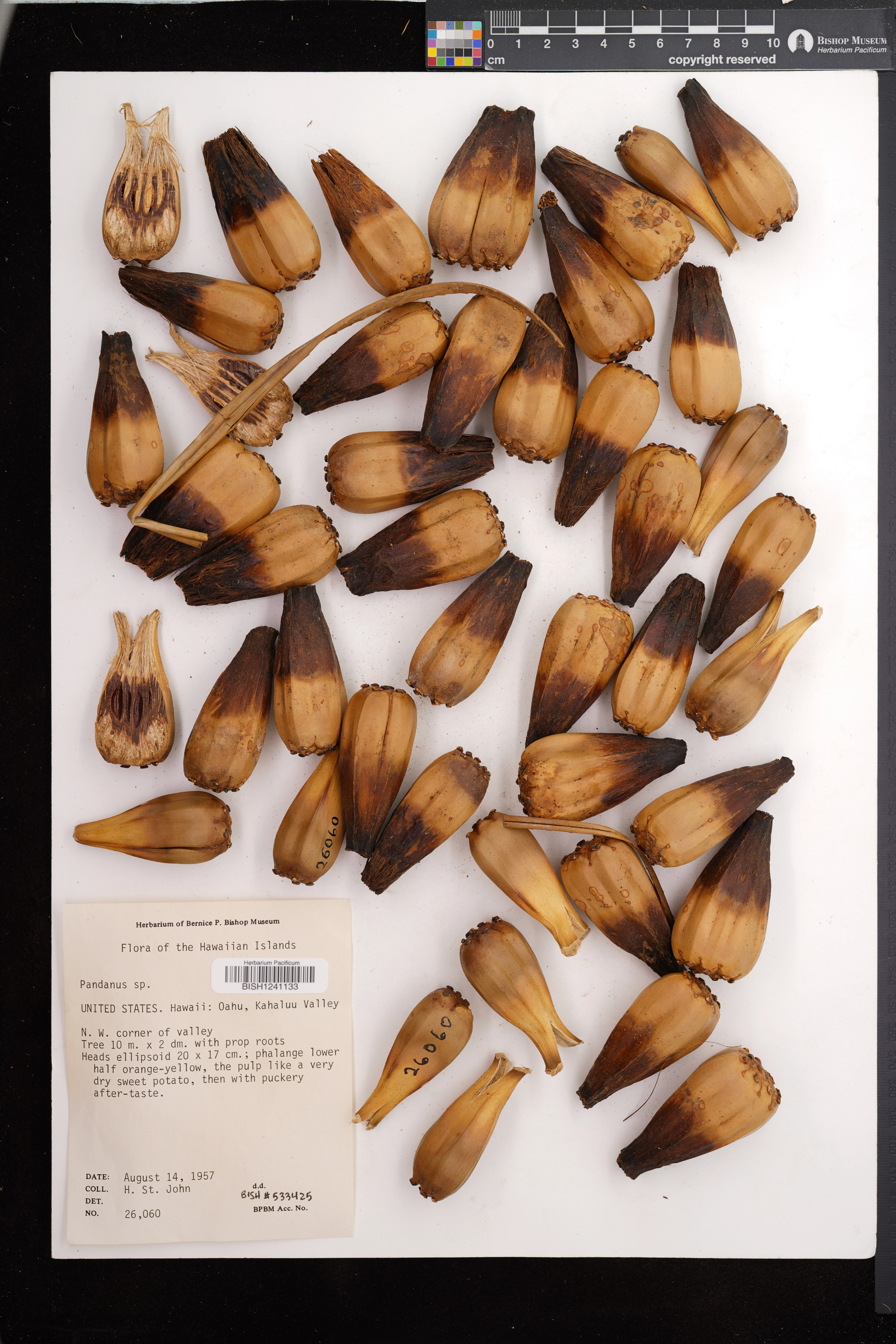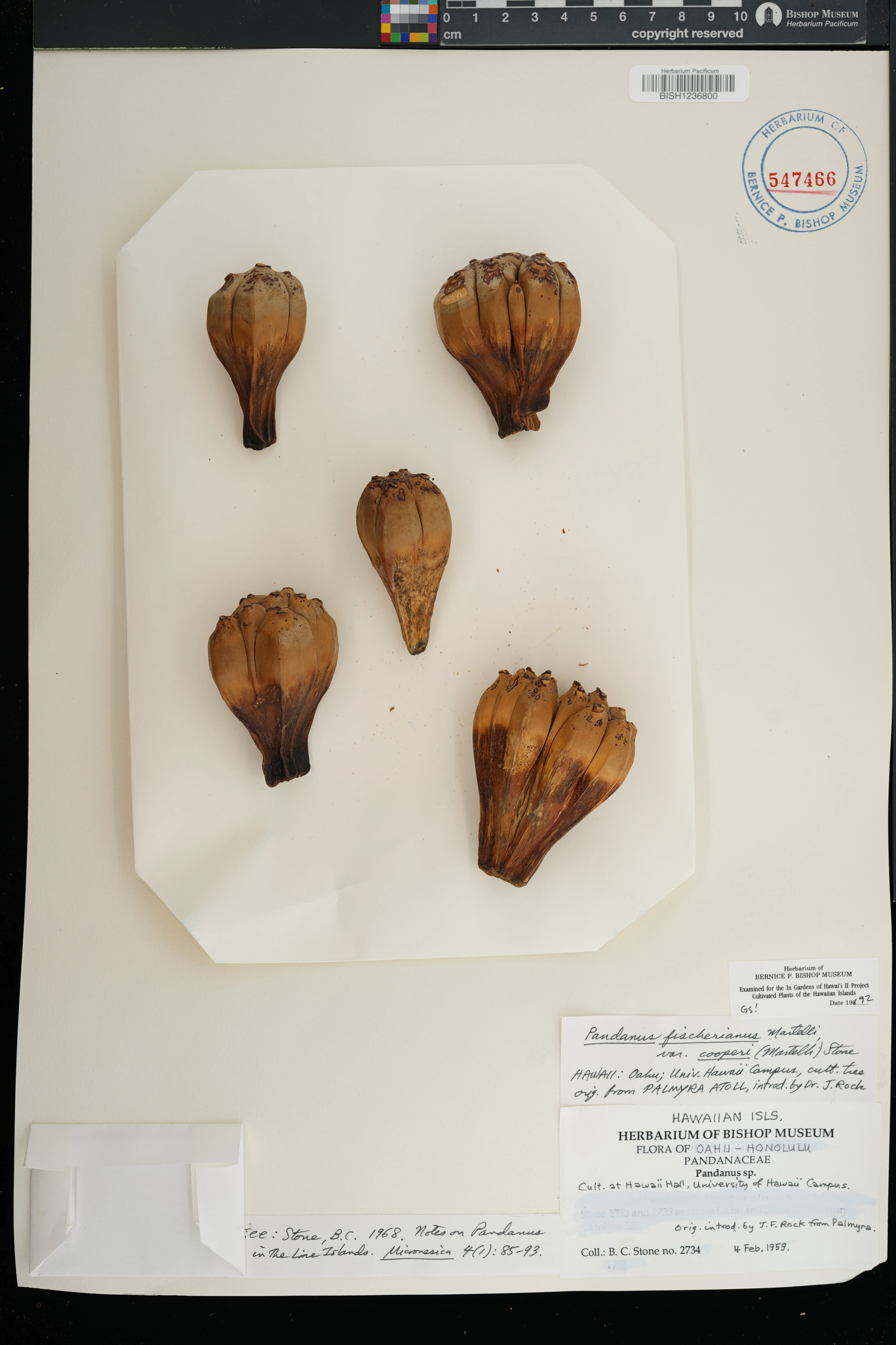Tree 9m tall; roots spreading laterally at ground level; prop roots from 1m above ground; fruits orange at maturity; fruiting head exceptionally large |