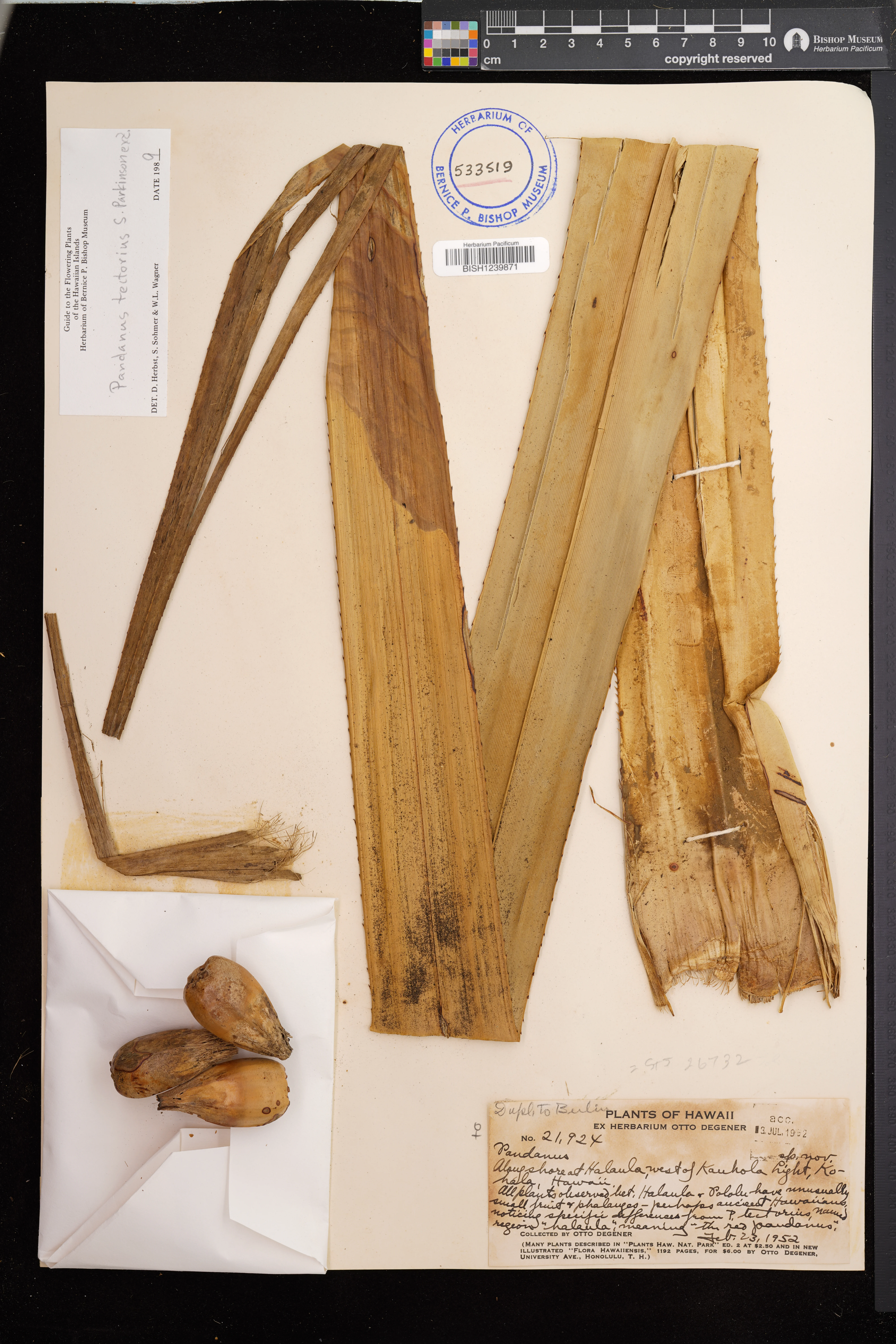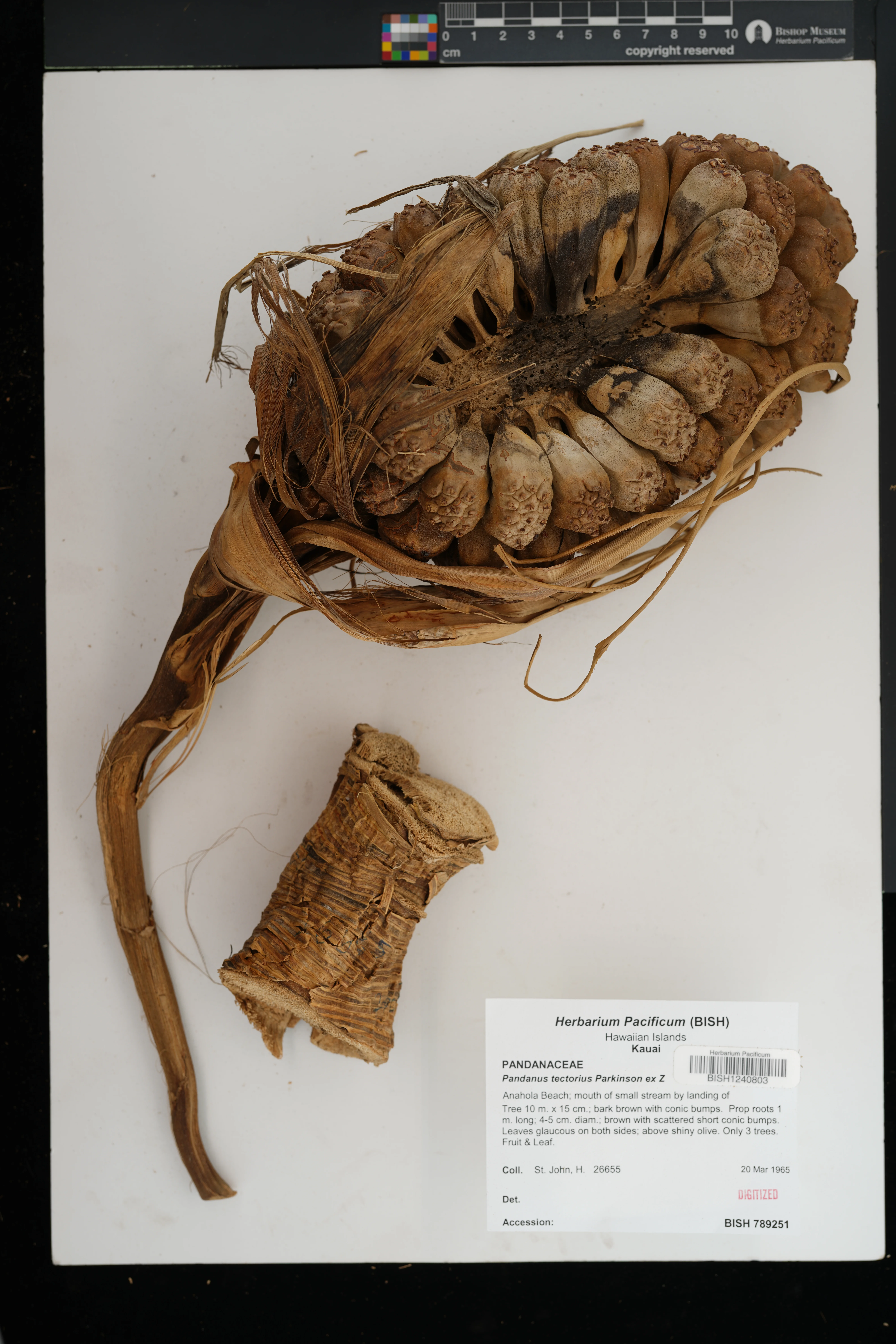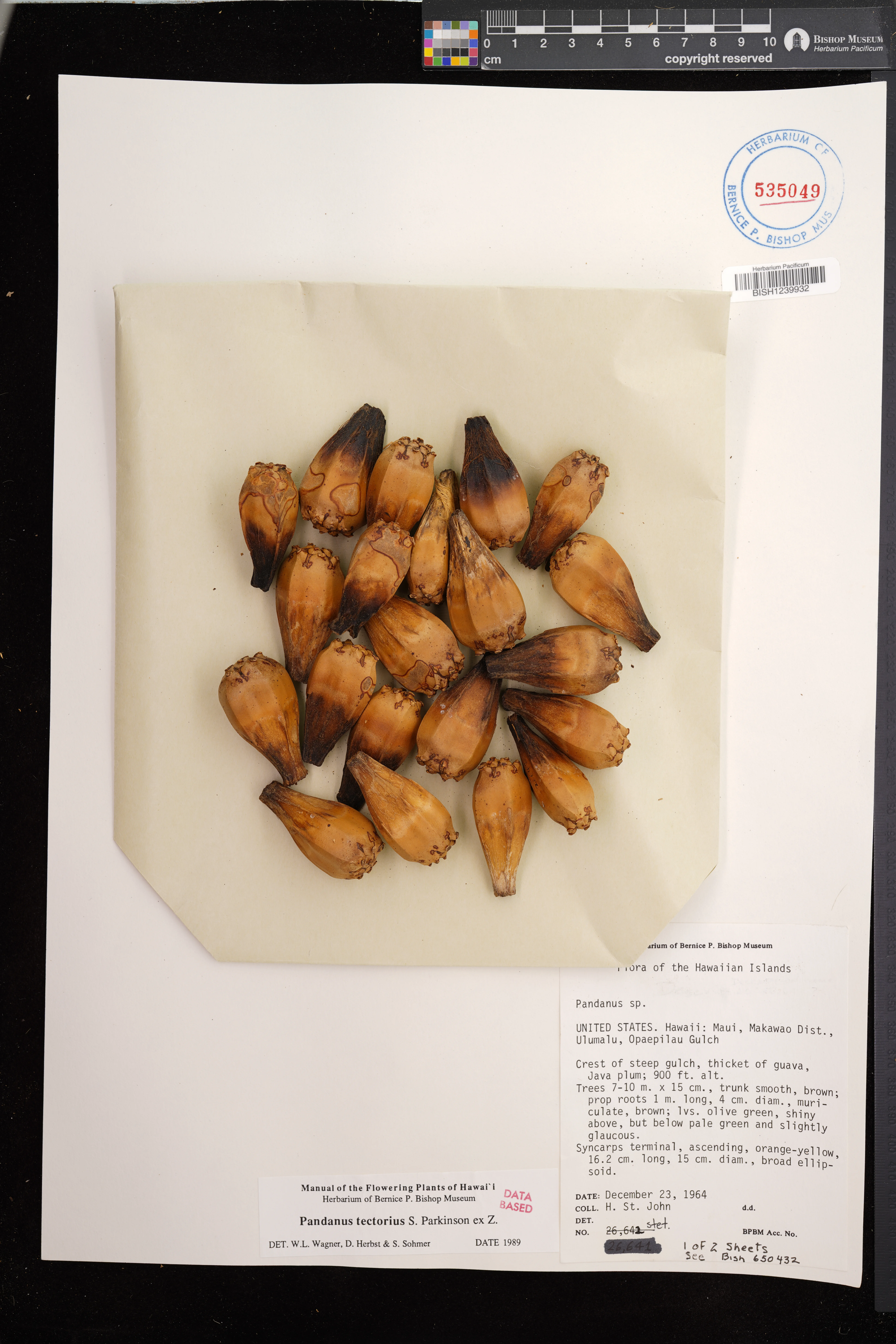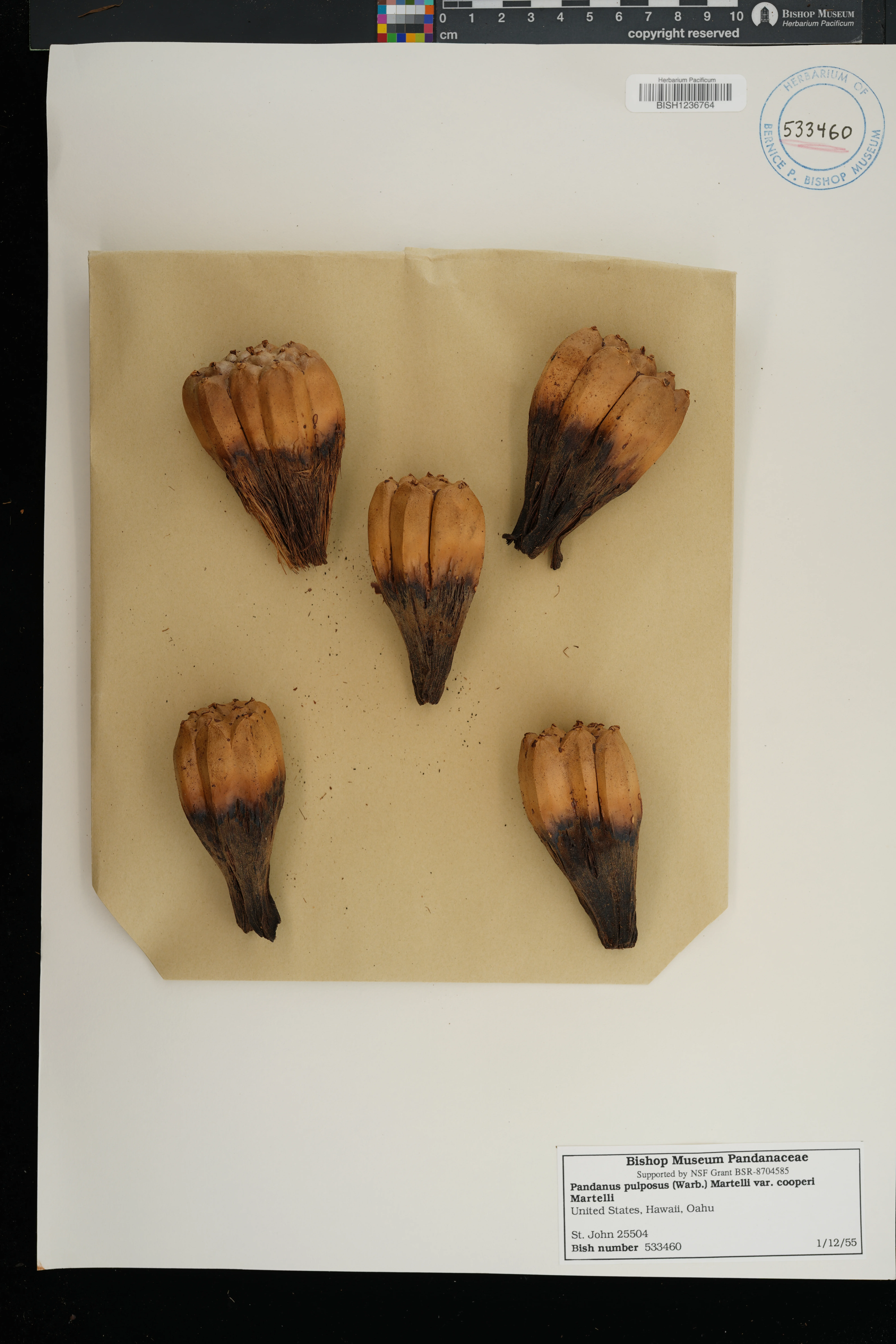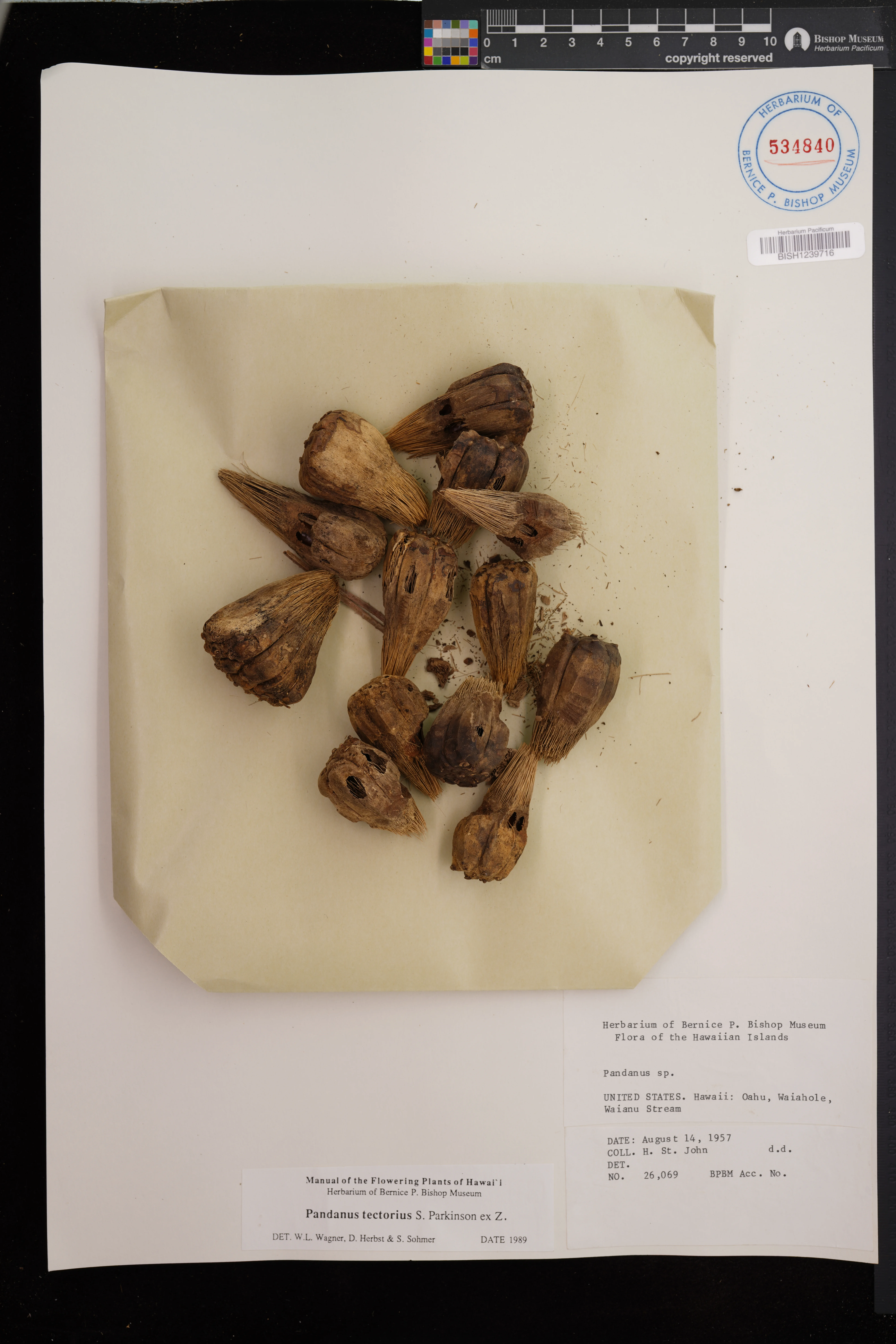 Tree 9m tall; roots spreading laterally at ground level; prop roots from 1m above ground; fruits orange at maturity; fruiting head exceptionally large |