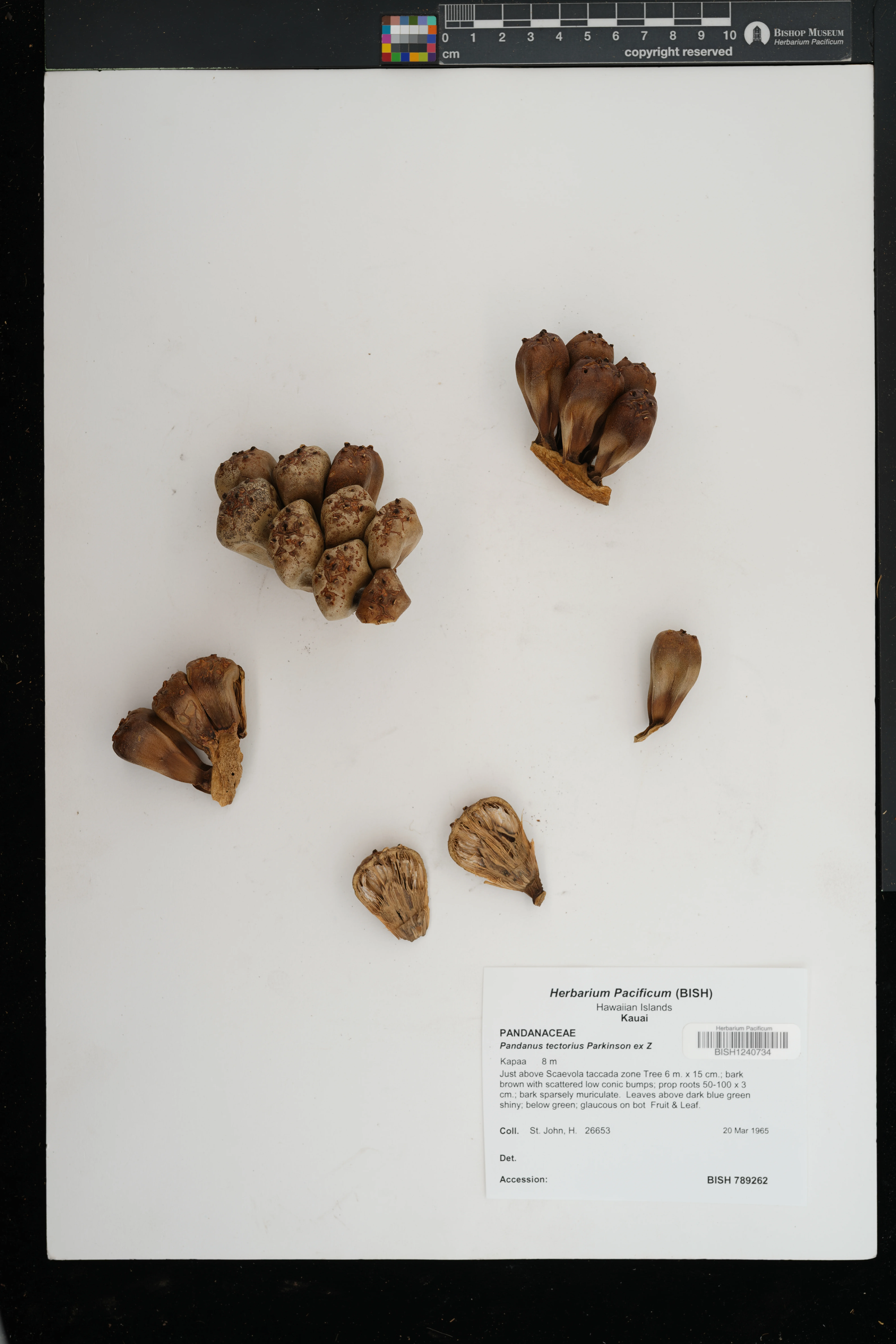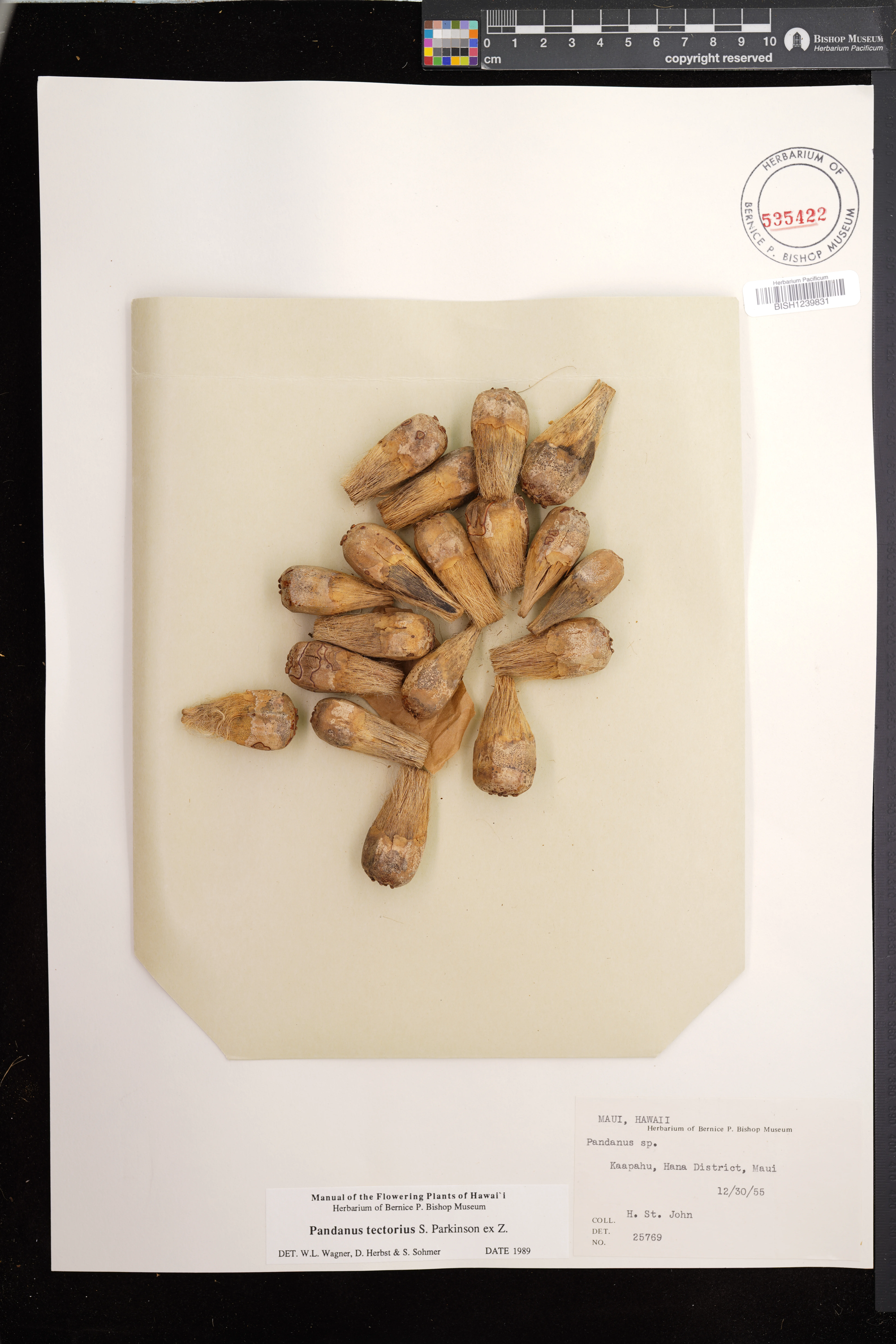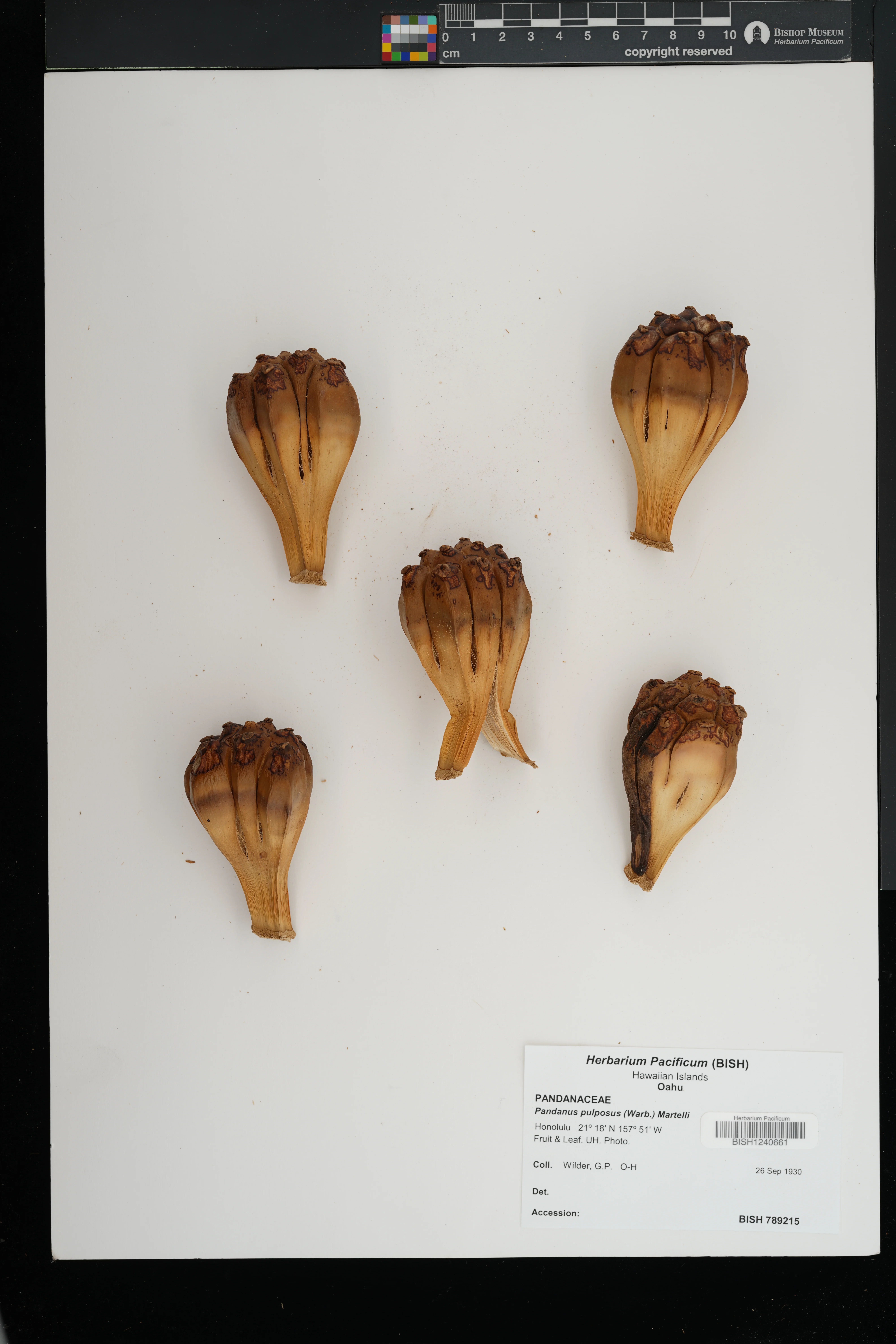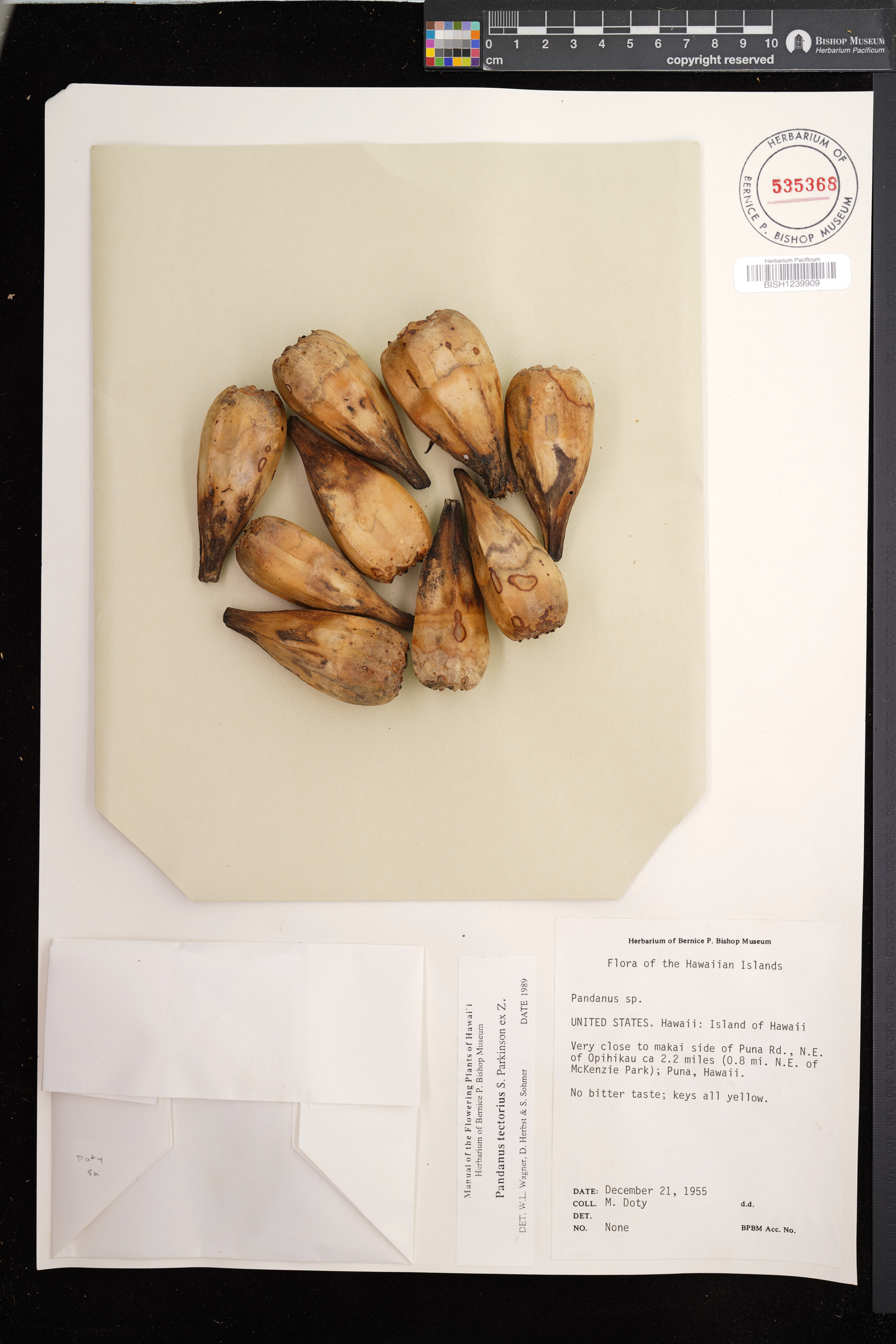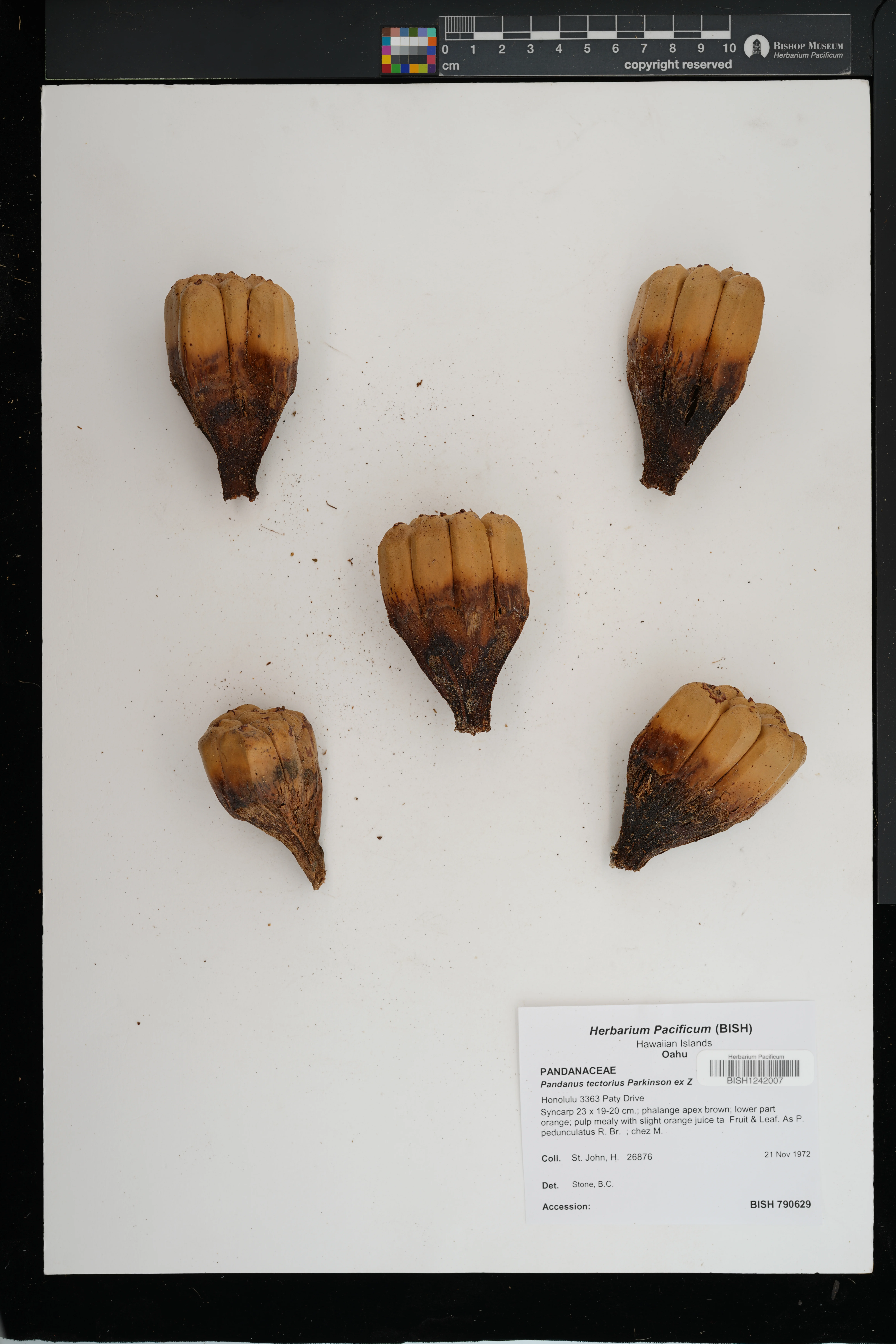 Tree 9m tall; roots spreading laterally at ground level; prop roots from 1m above ground; fruits orange at maturity; fruiting head exceptionally large |
