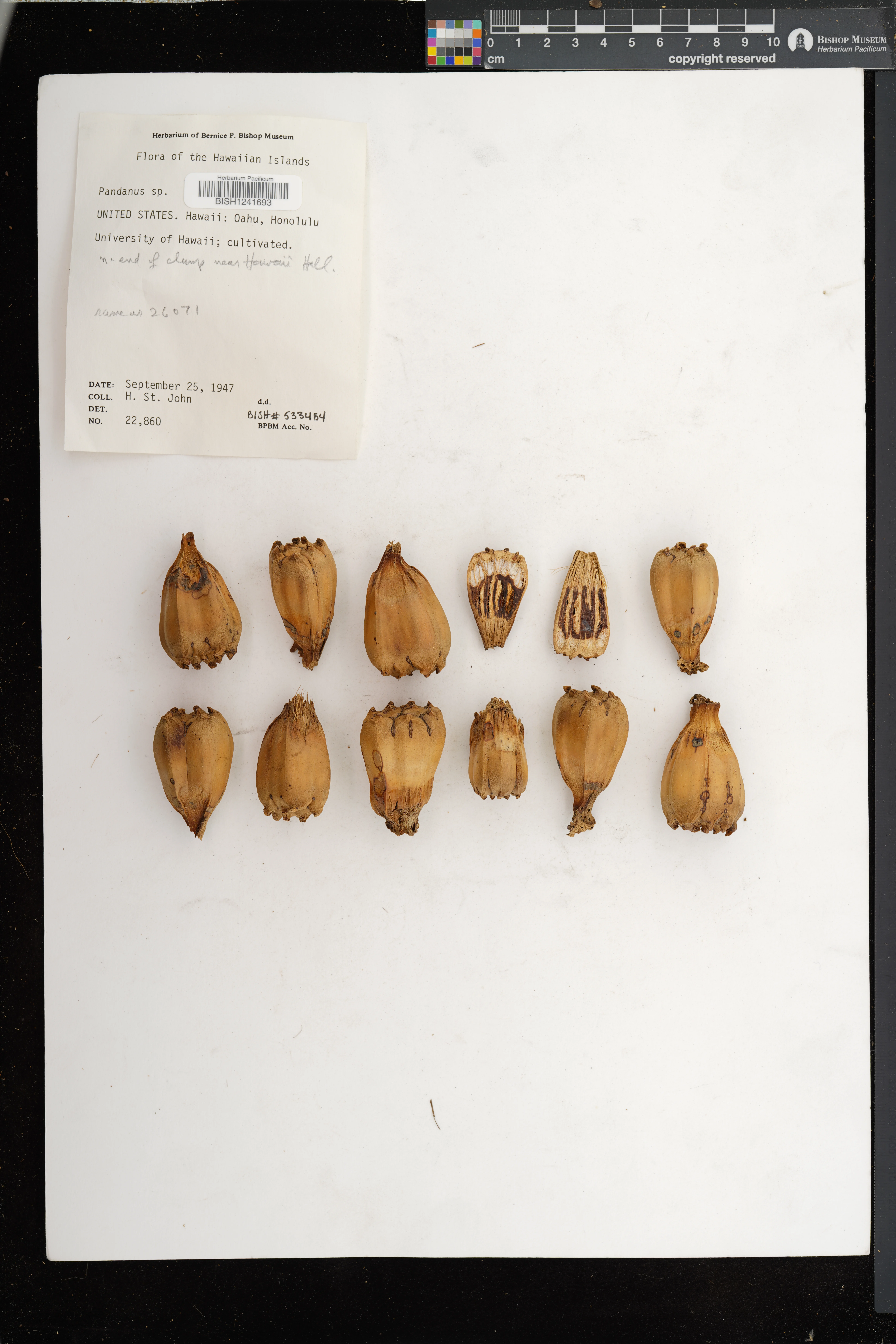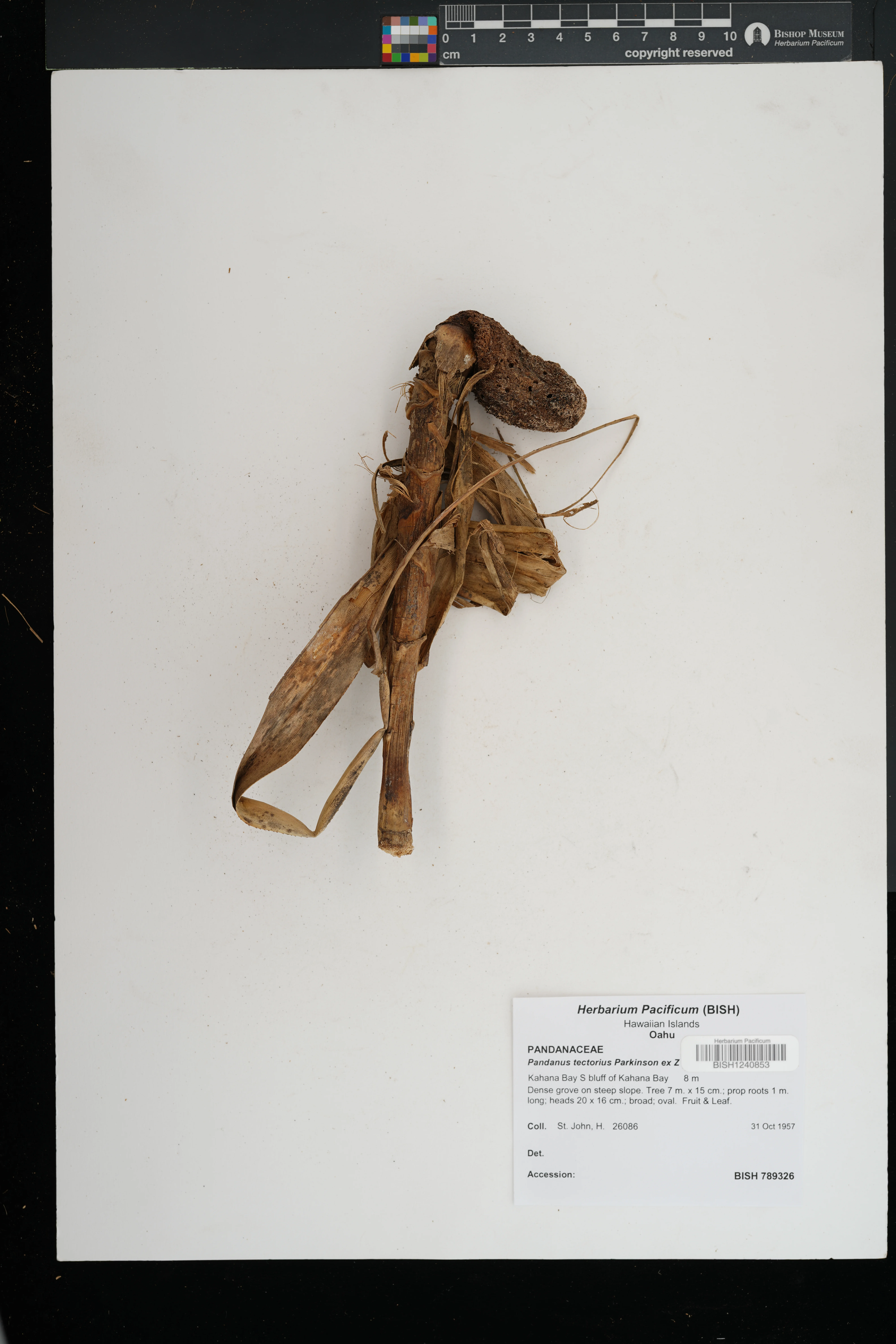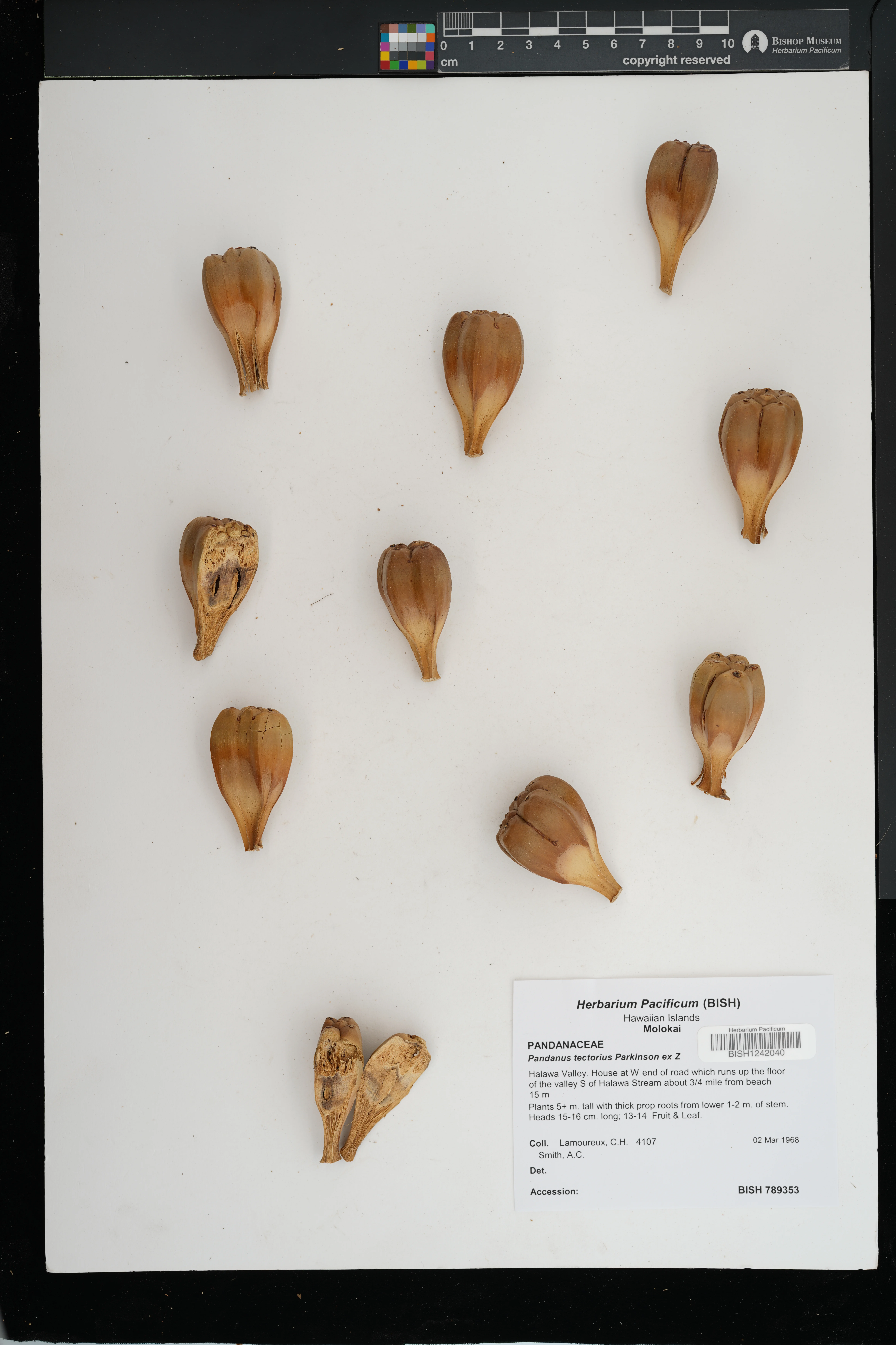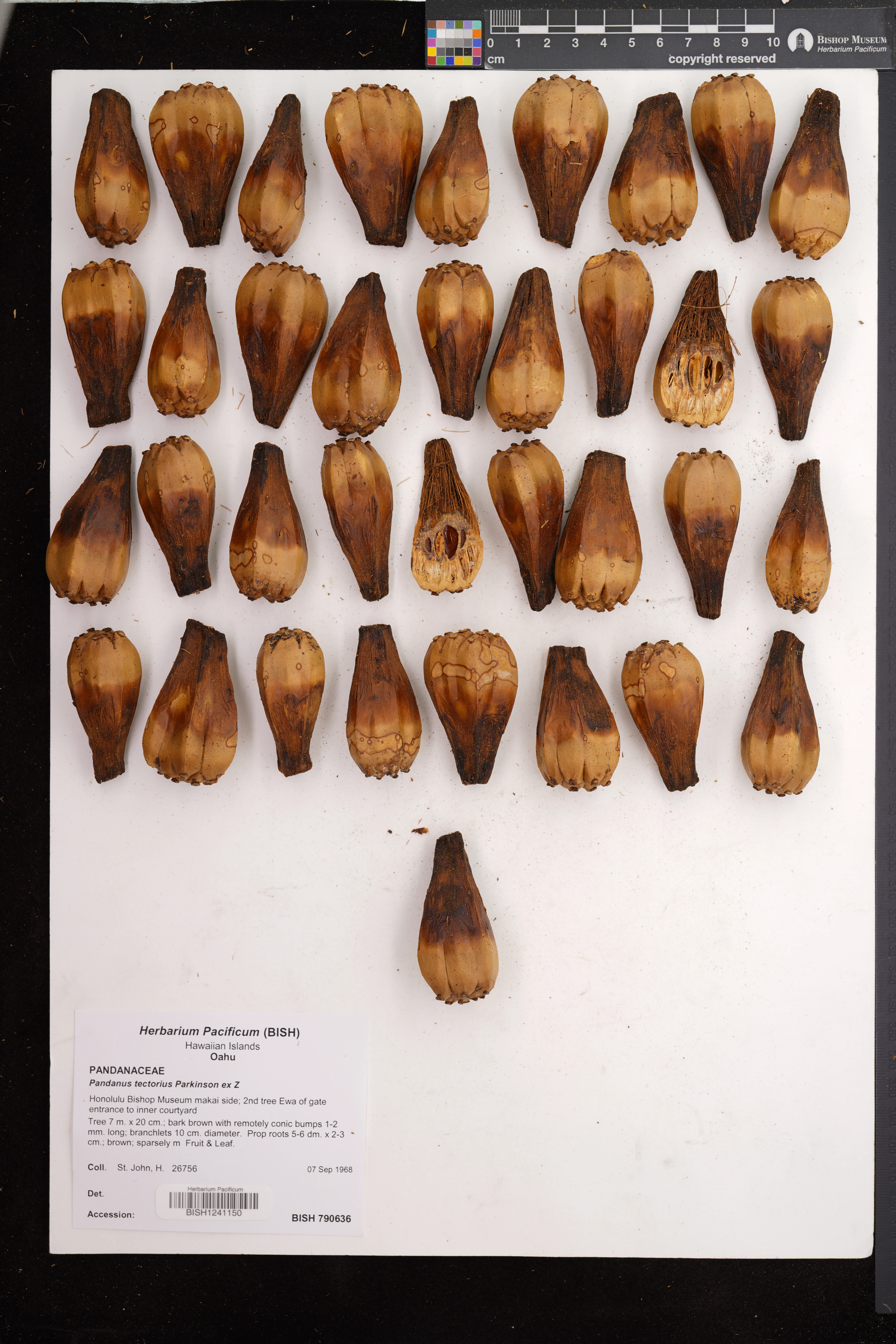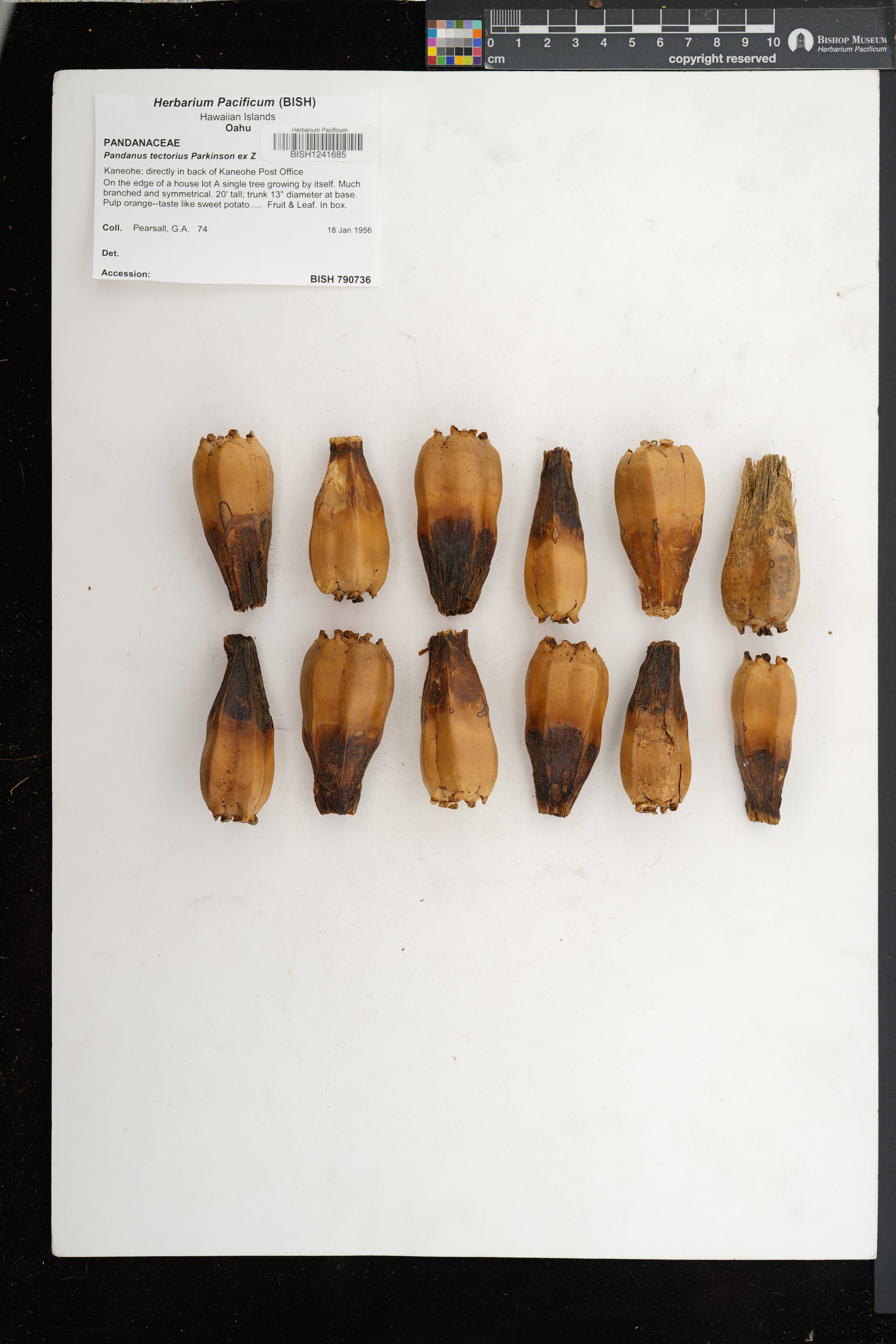 Tree 9m tall; roots spreading laterally at ground level; prop roots from 1m above ground; fruits orange at maturity; fruiting head exceptionally large |