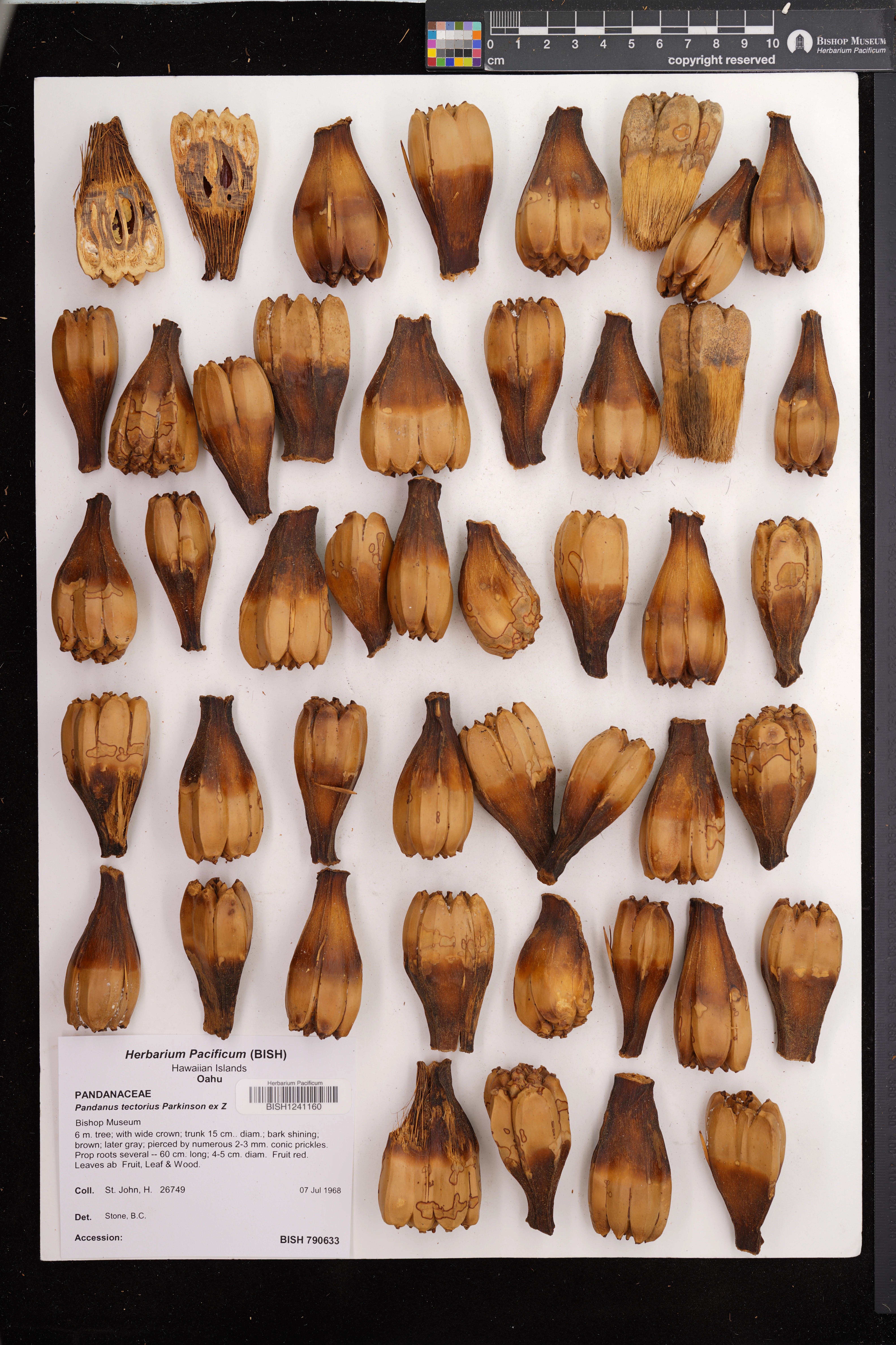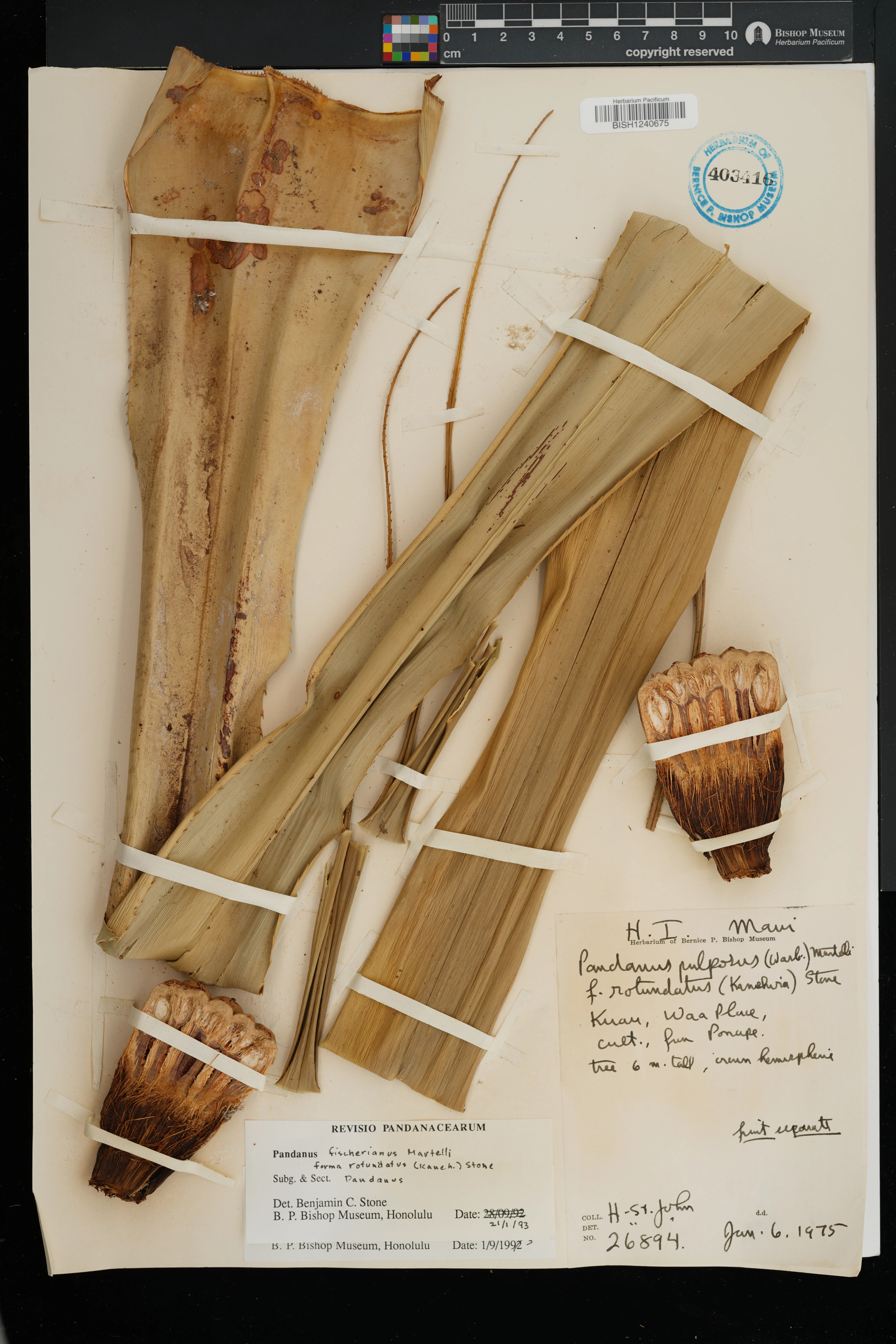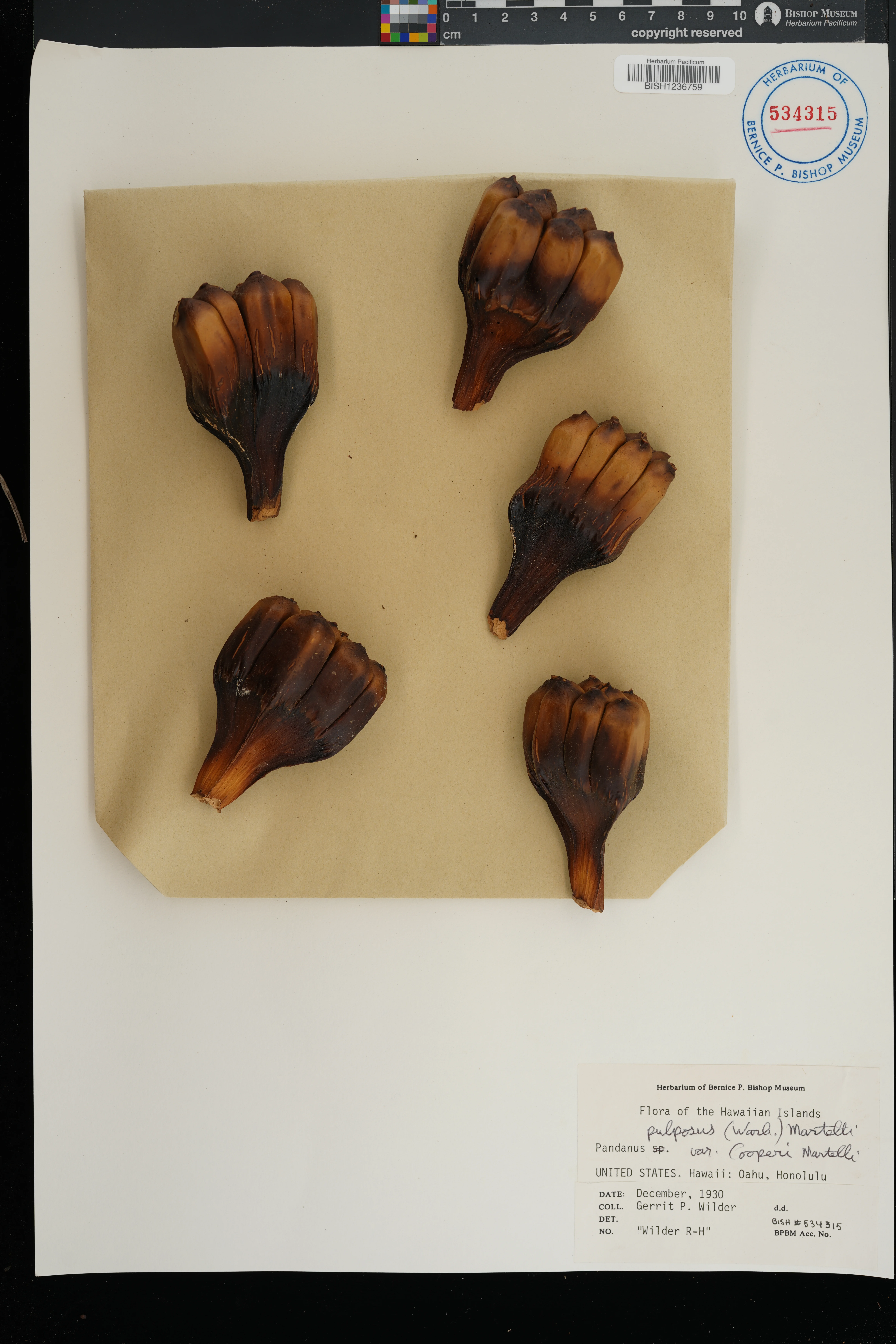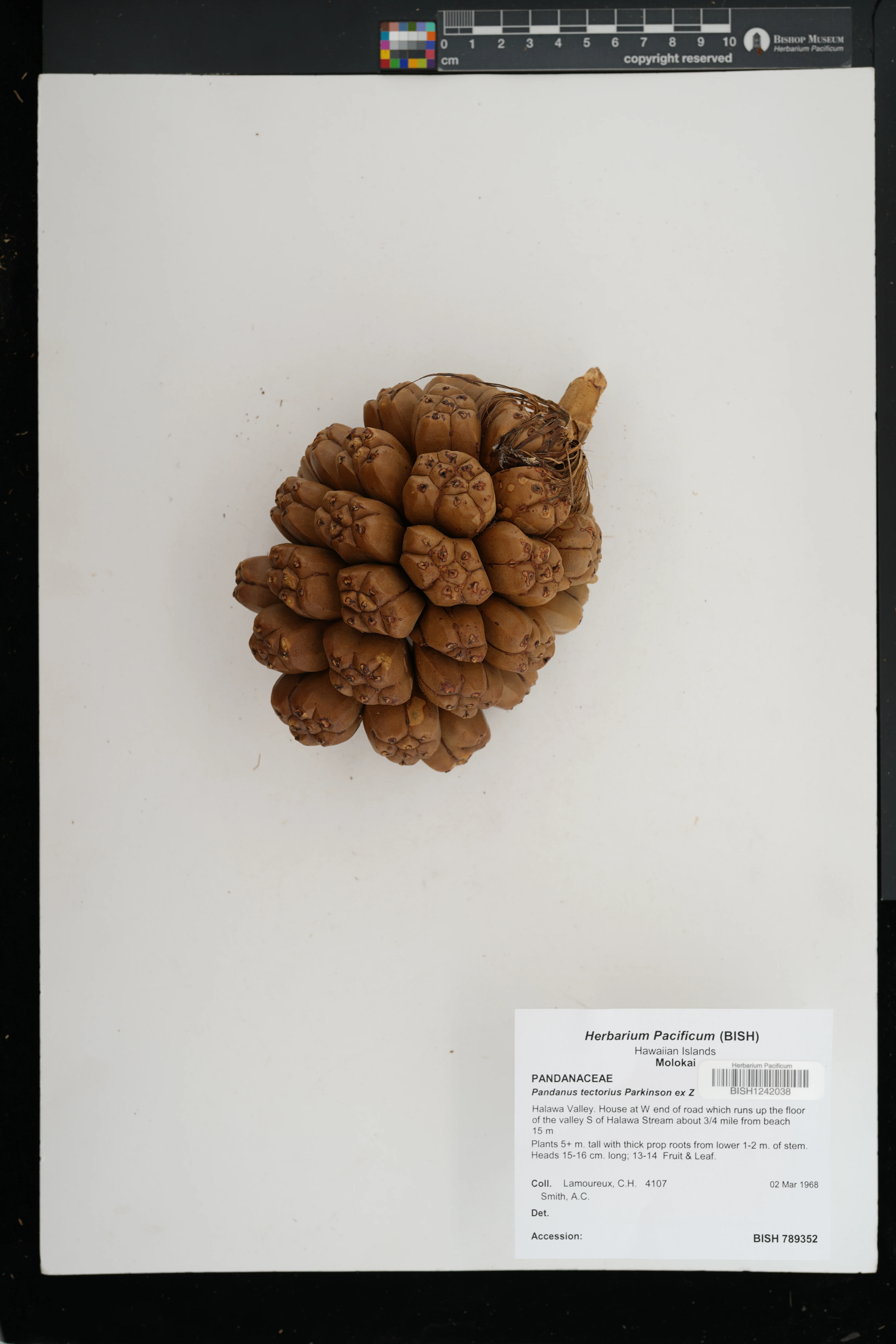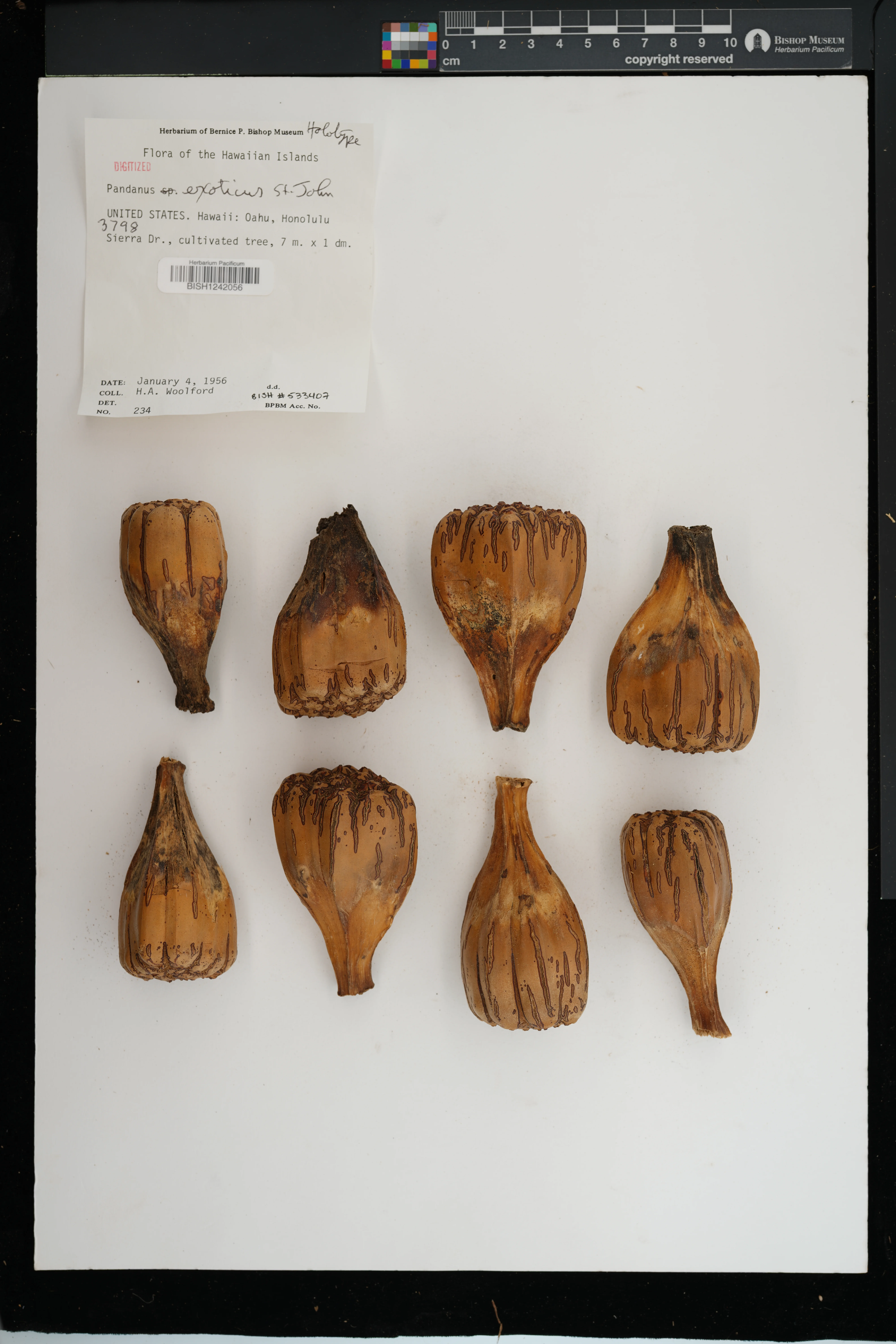Tree 9m tall; roots spreading laterally at ground level; prop roots from 1m above ground; fruits orange at maturity; fruiting head exceptionally large |