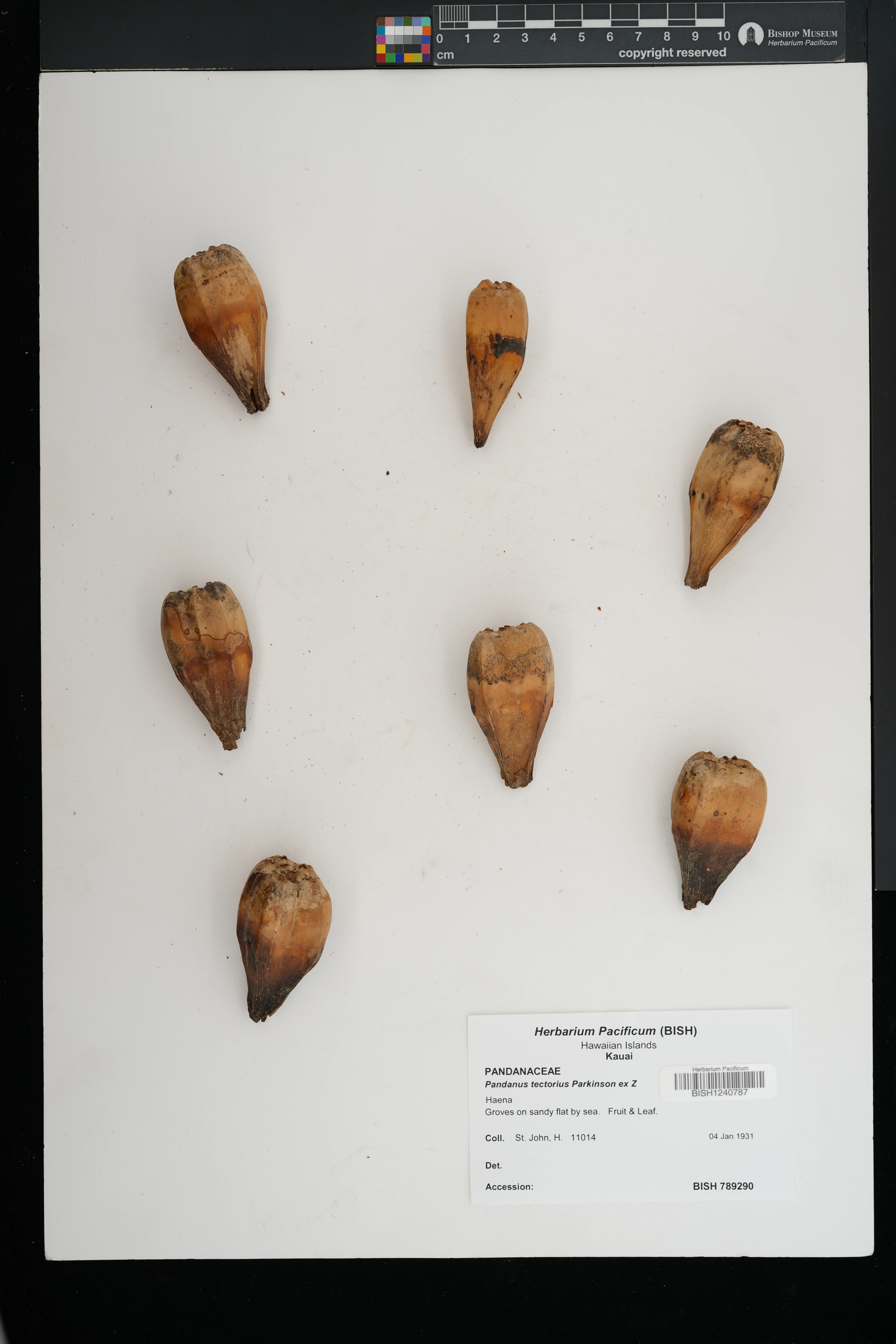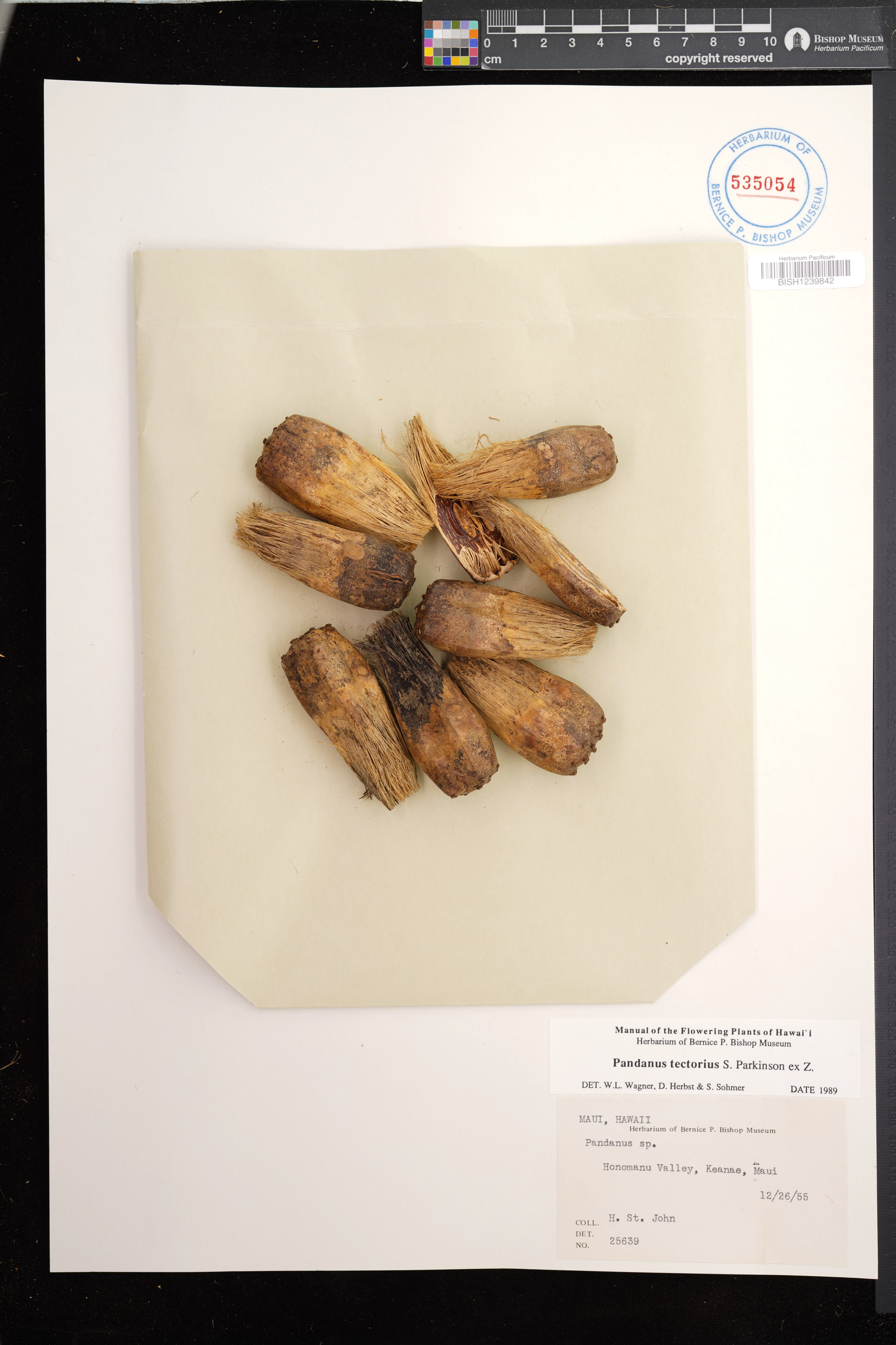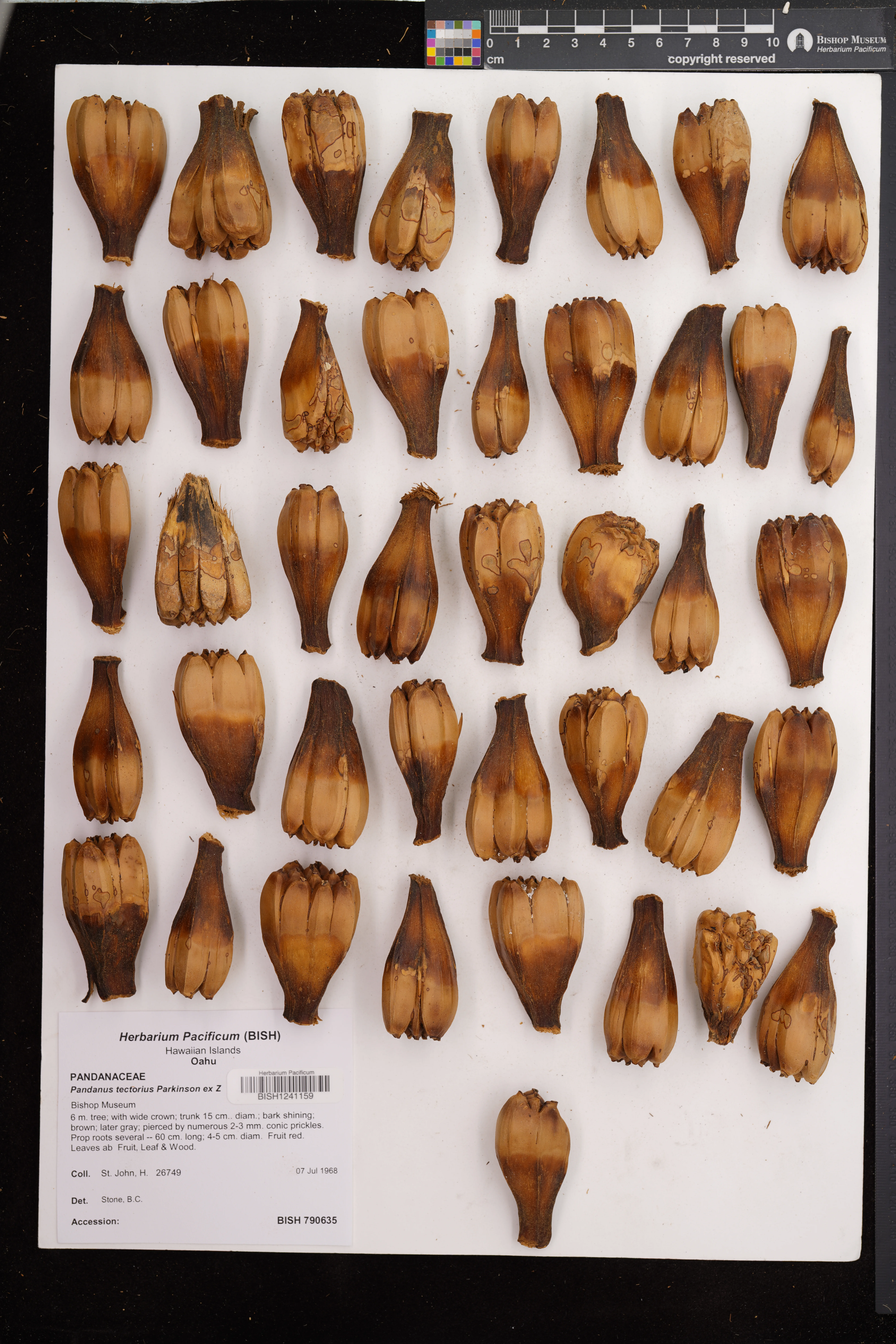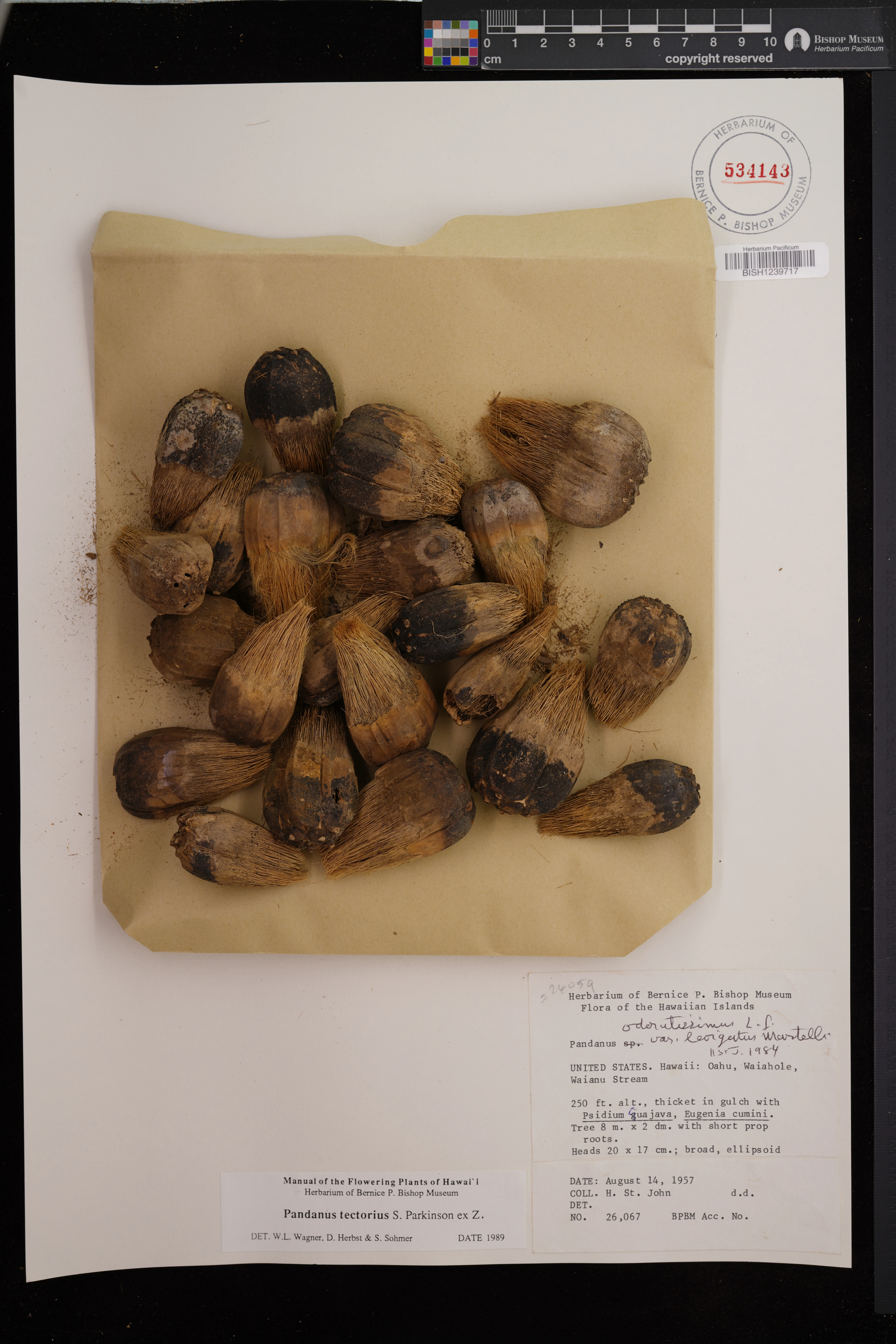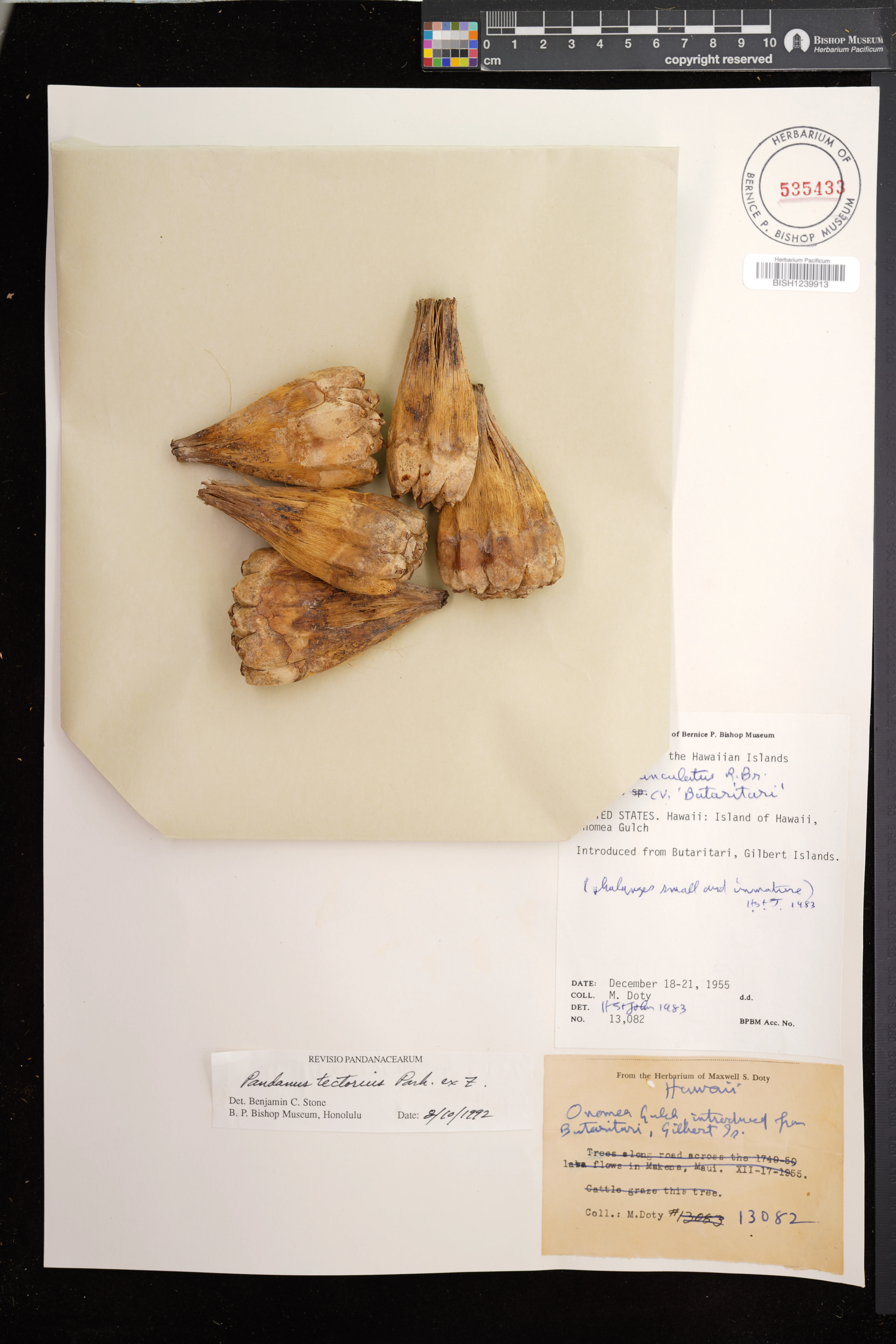 Tree 9m tall; roots spreading laterally at ground level; prop roots from 1m above ground; fruits orange at maturity; fruiting head exceptionally large |