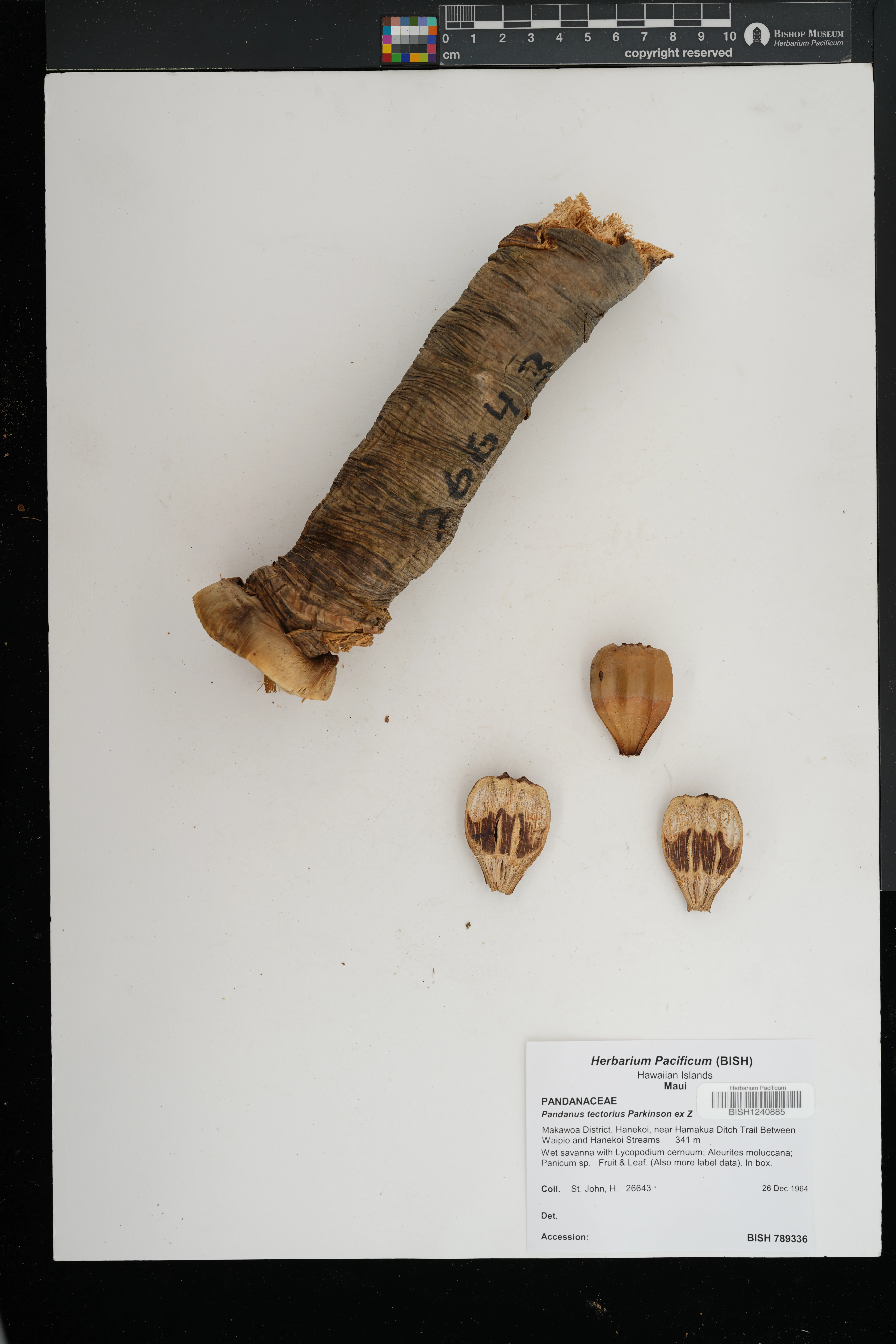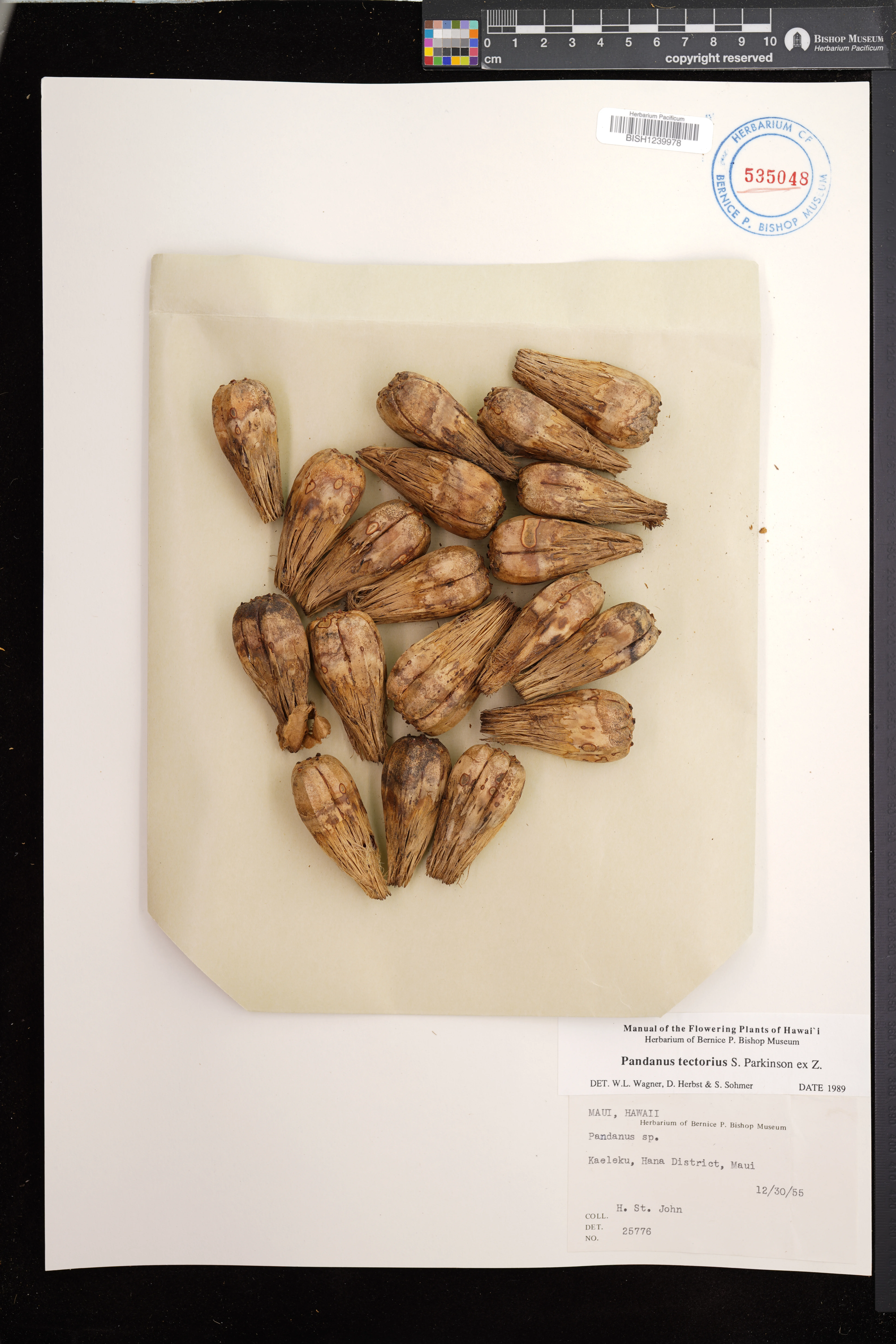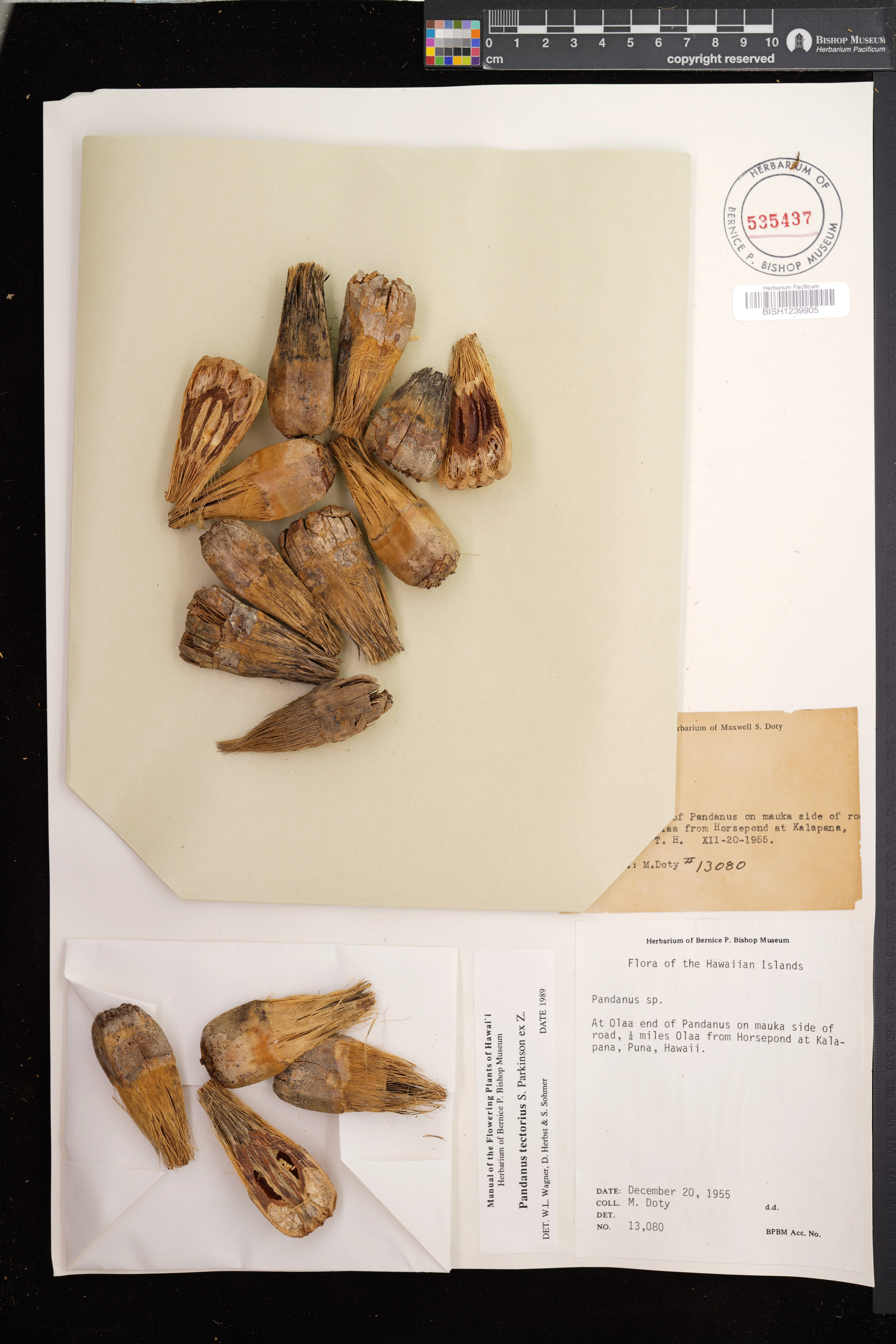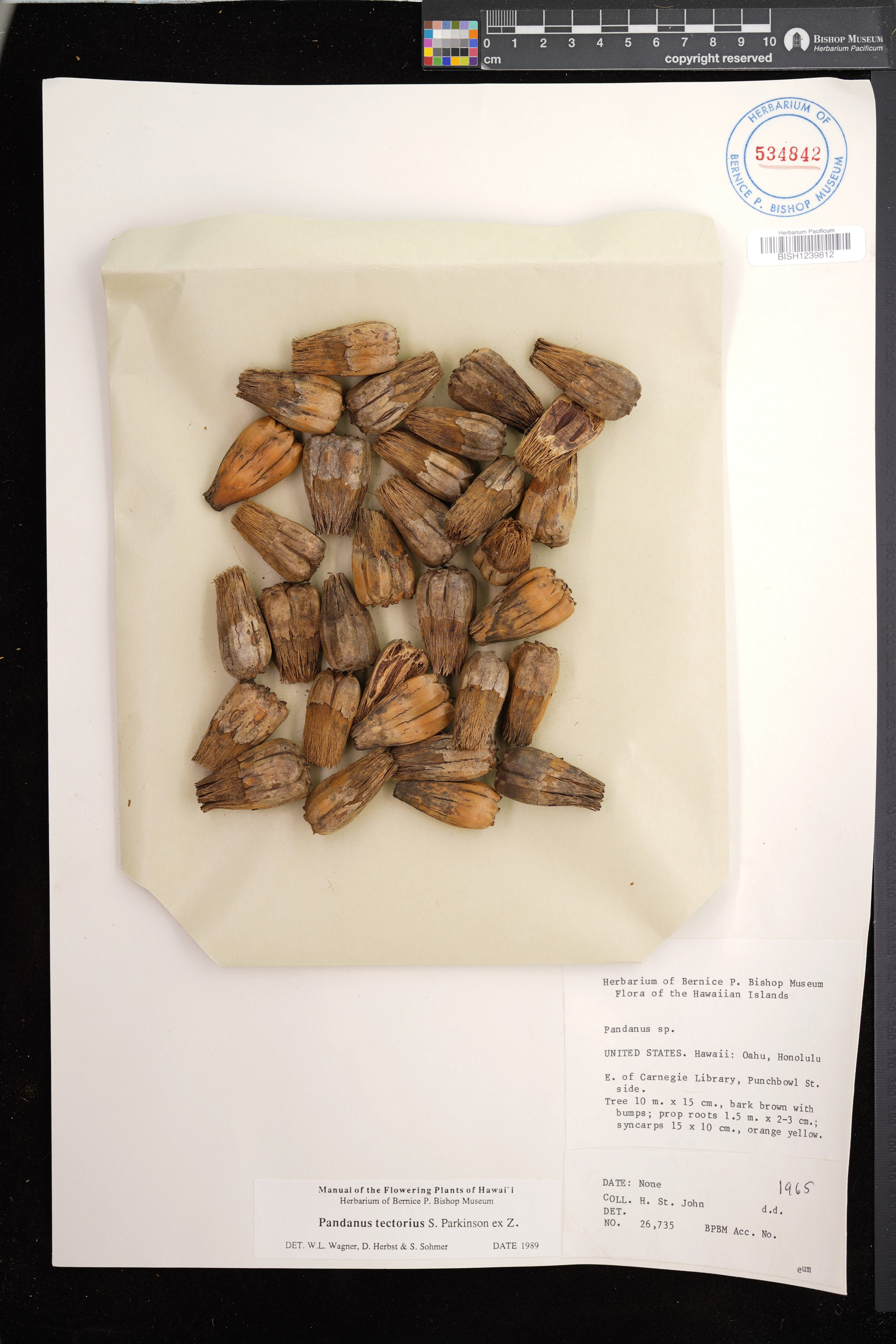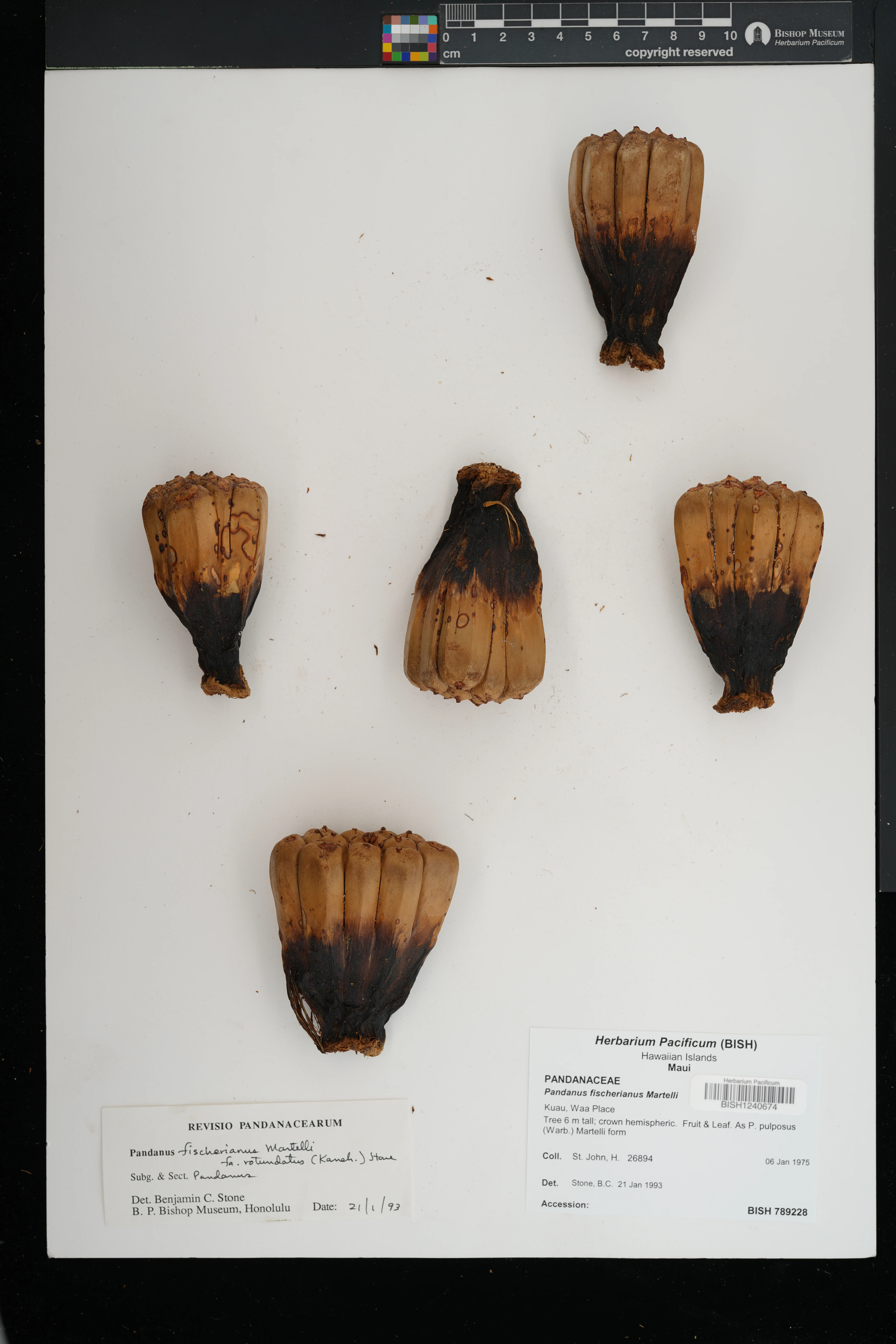 Tree 9m tall; roots spreading laterally at ground level; prop roots from 1m above ground; fruits orange at maturity; fruiting head exceptionally large |