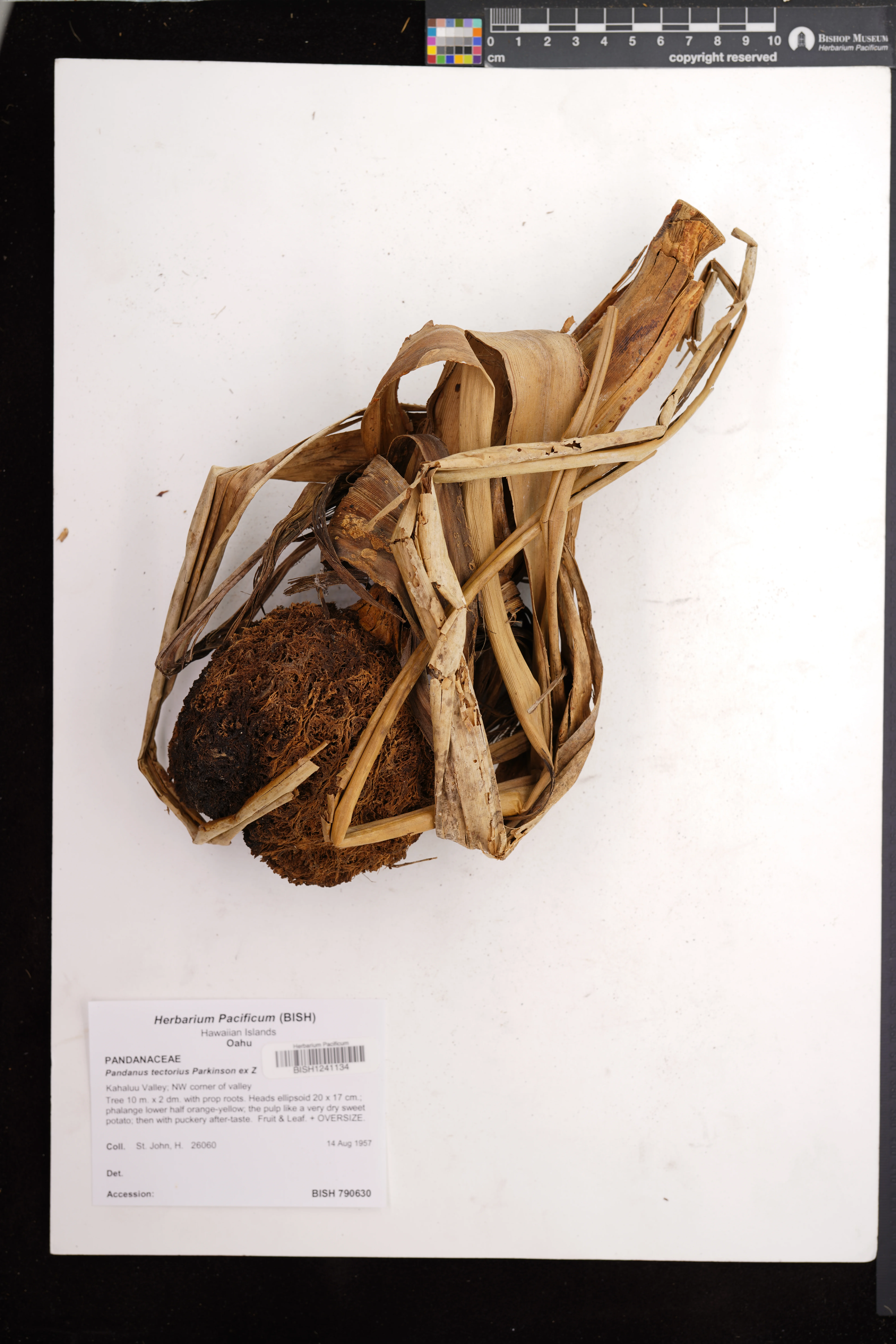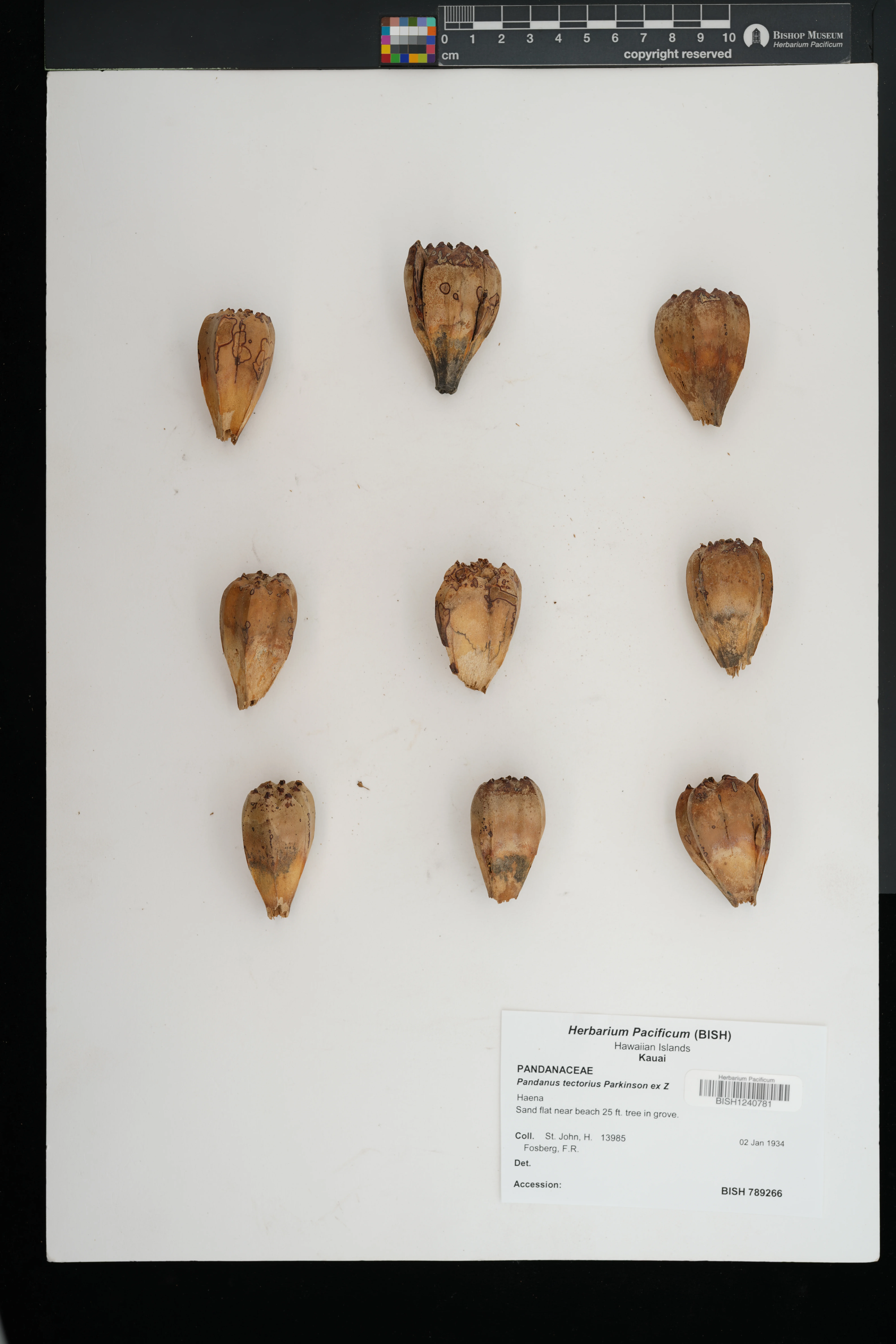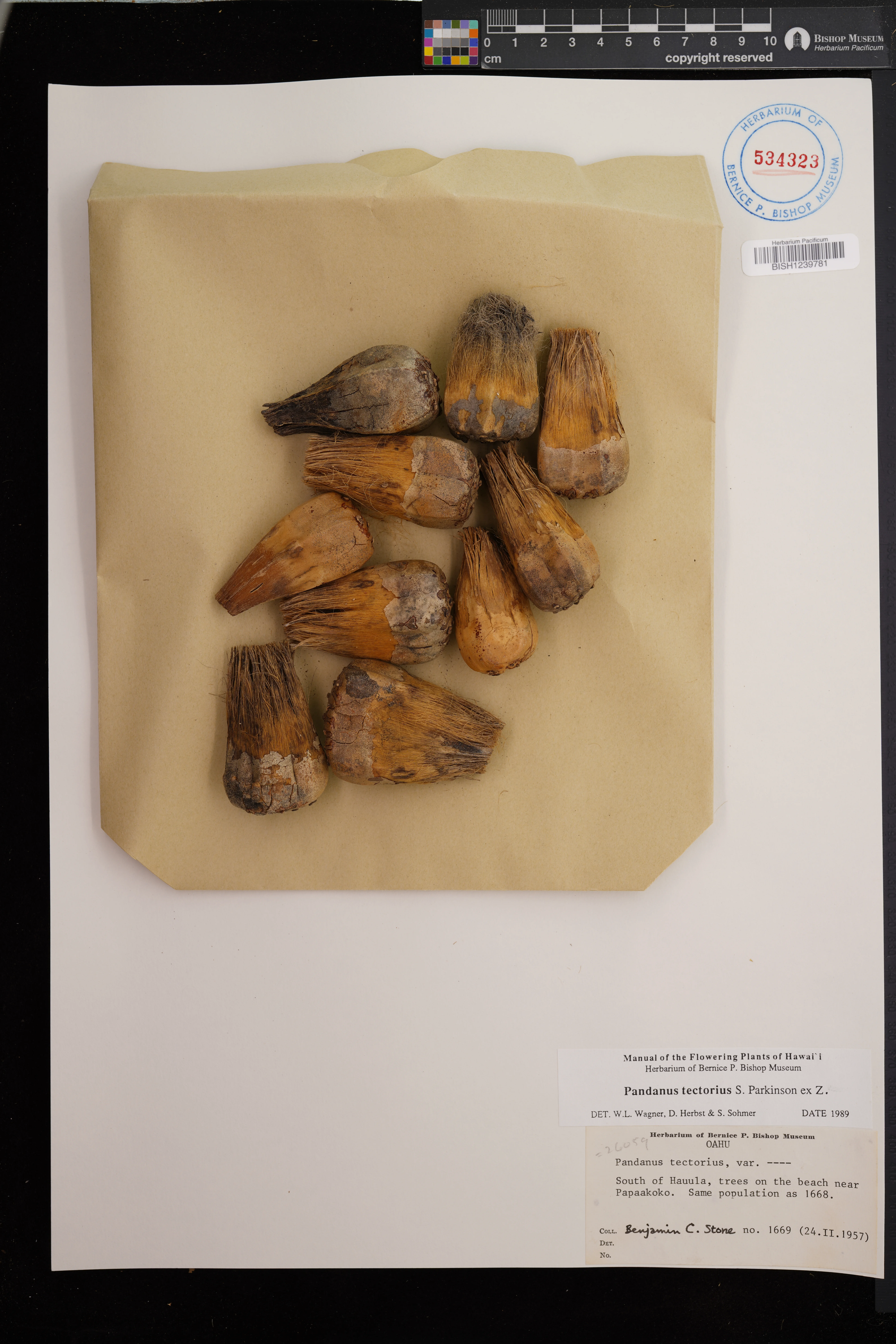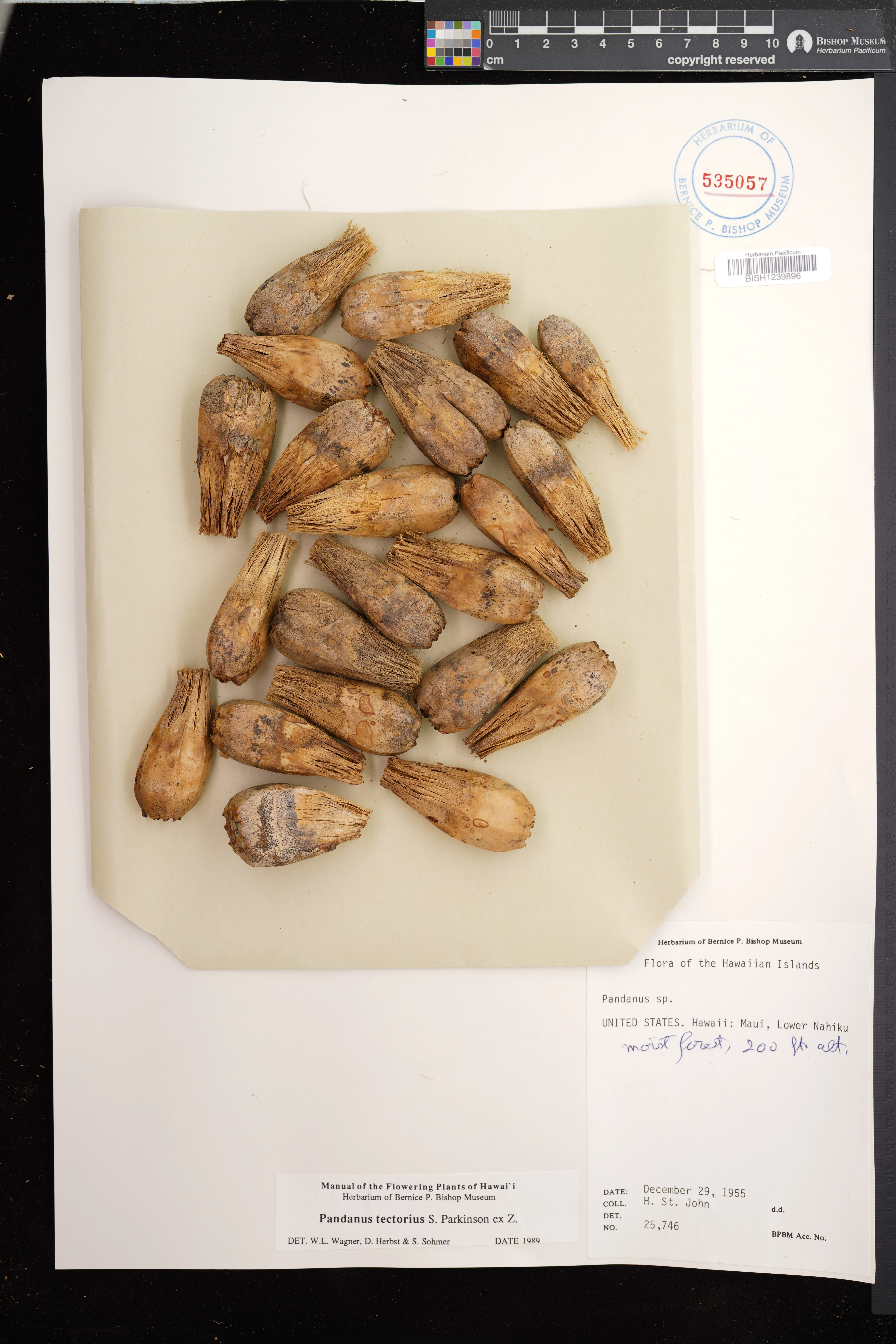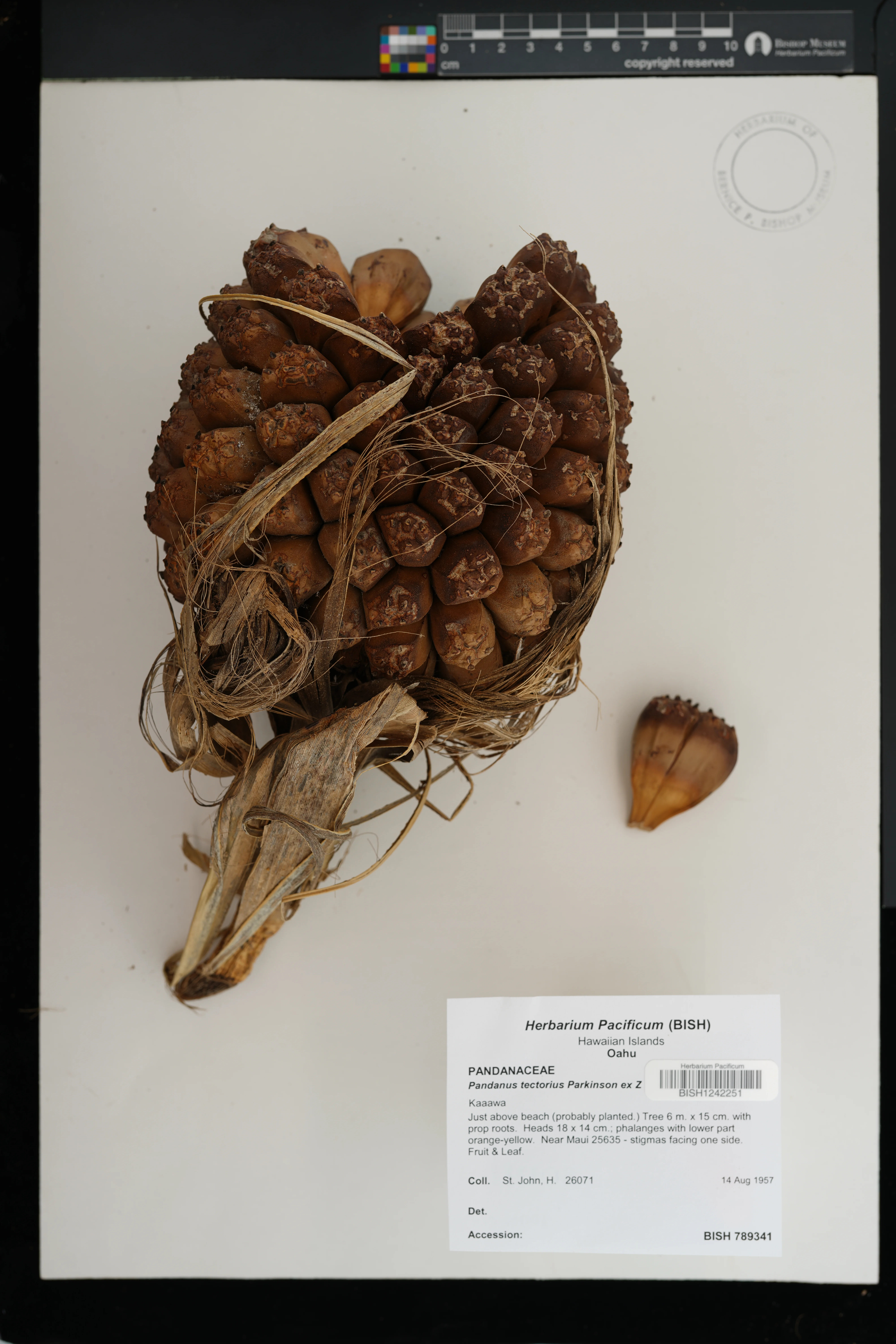 Tree 9m tall; roots spreading laterally at ground level; prop roots from 1m above ground; fruits orange at maturity; fruiting head exceptionally large |
