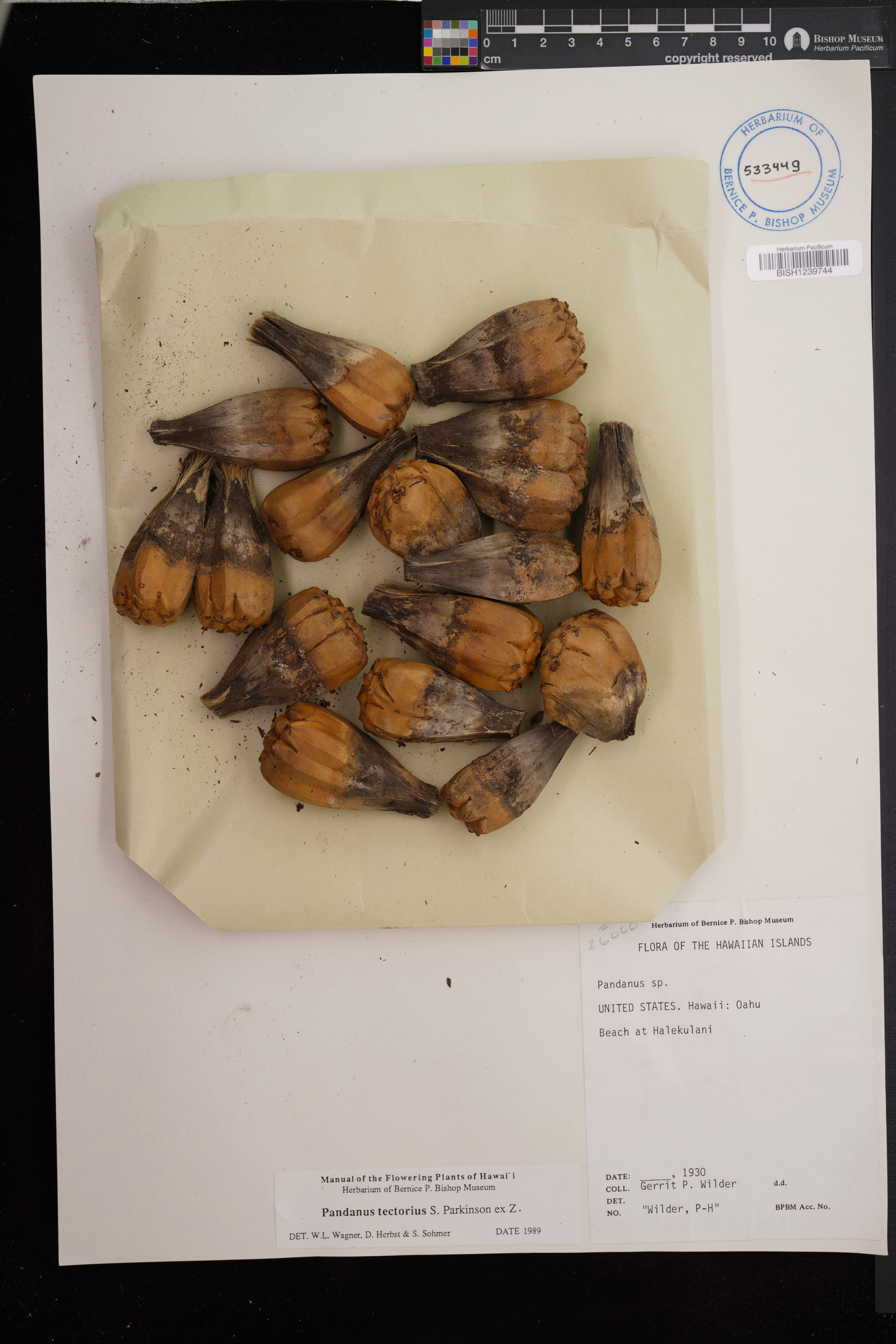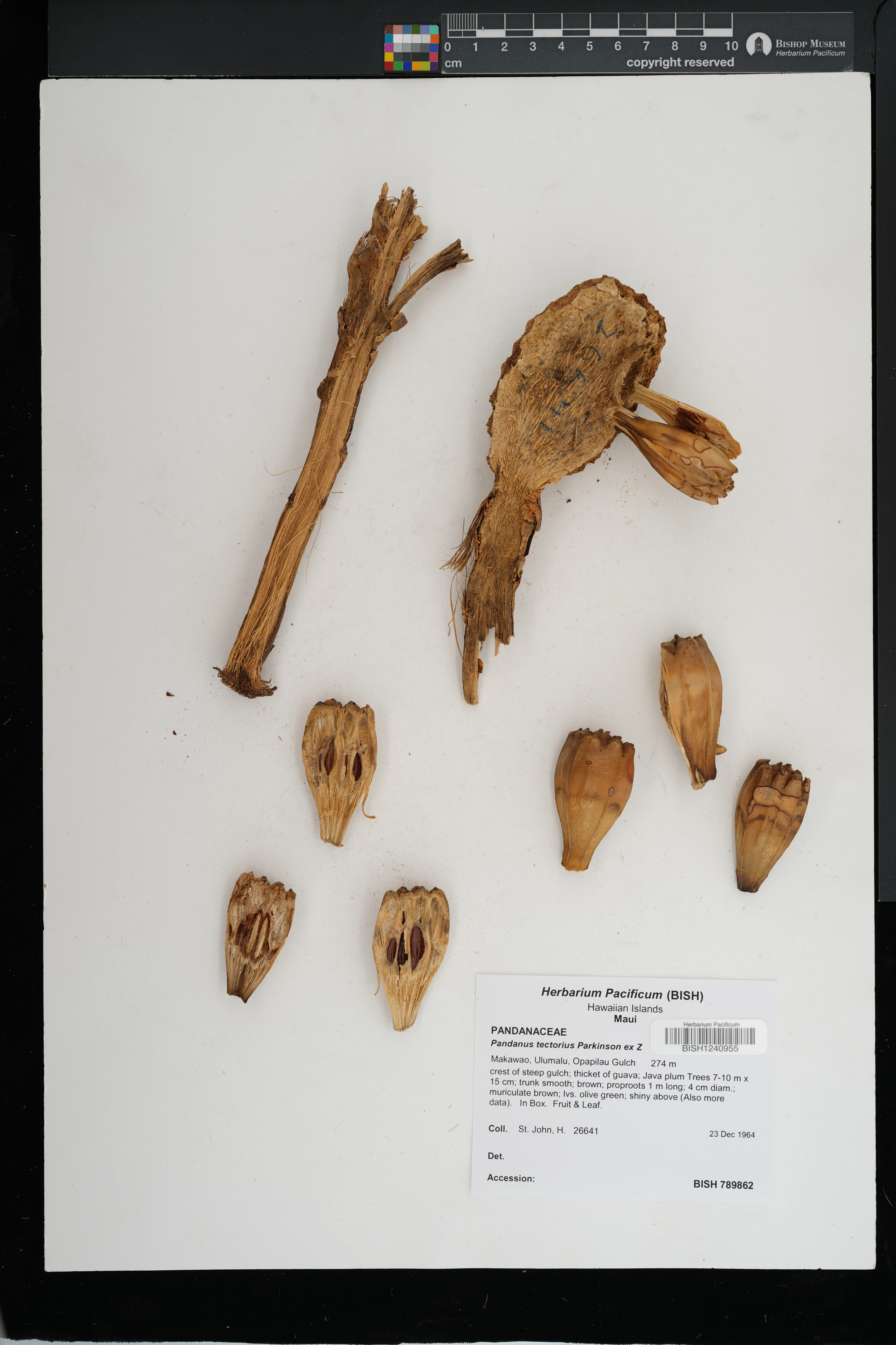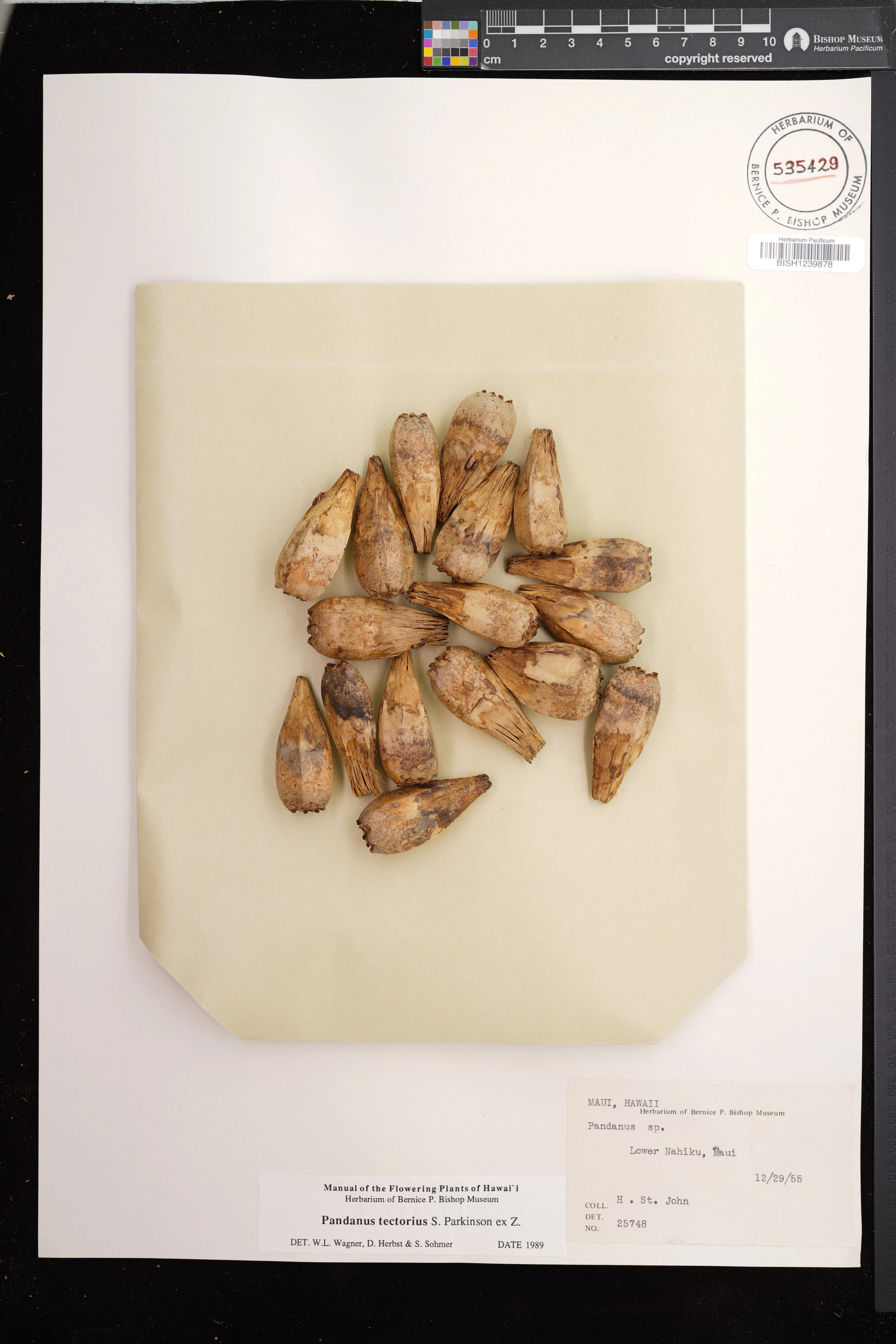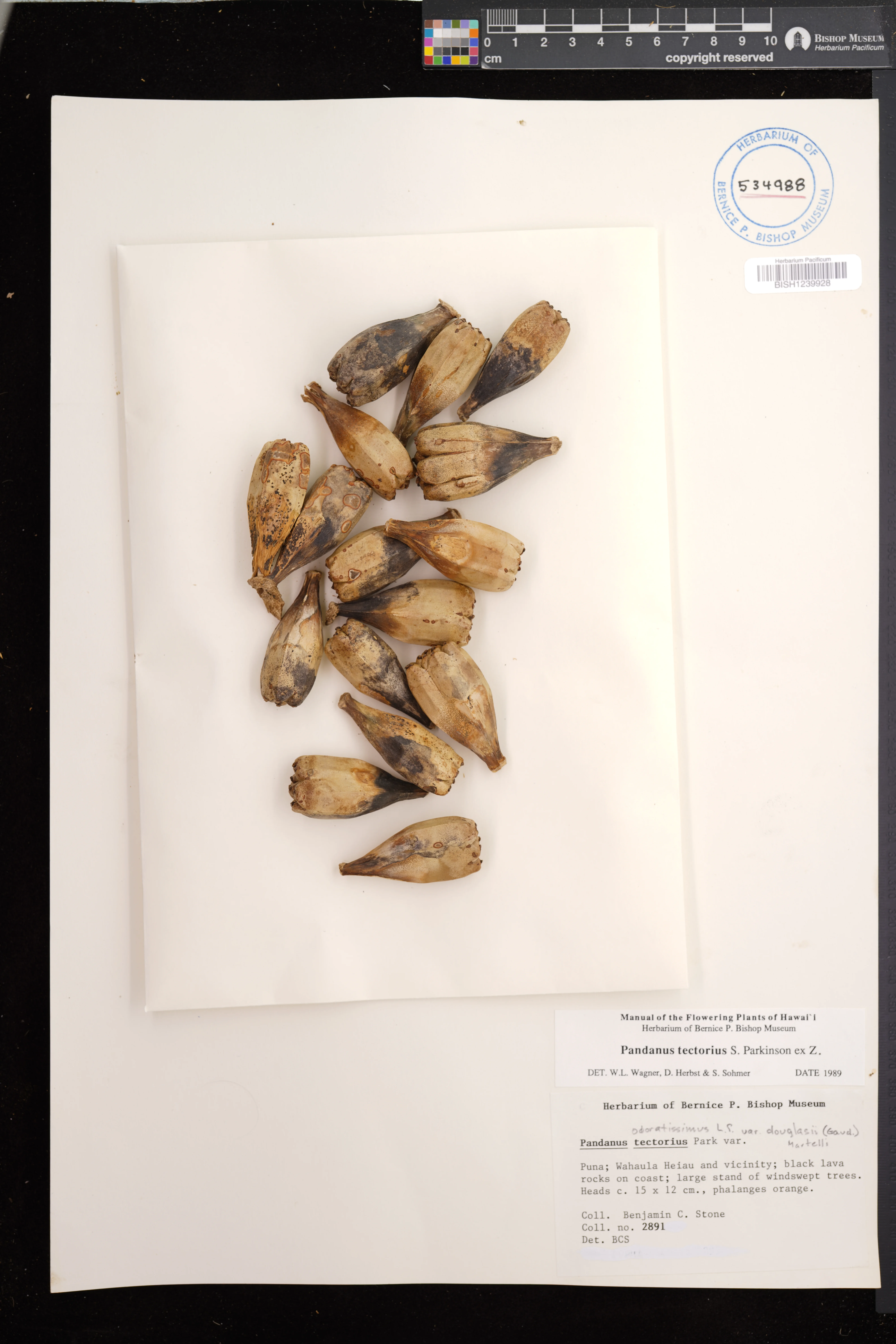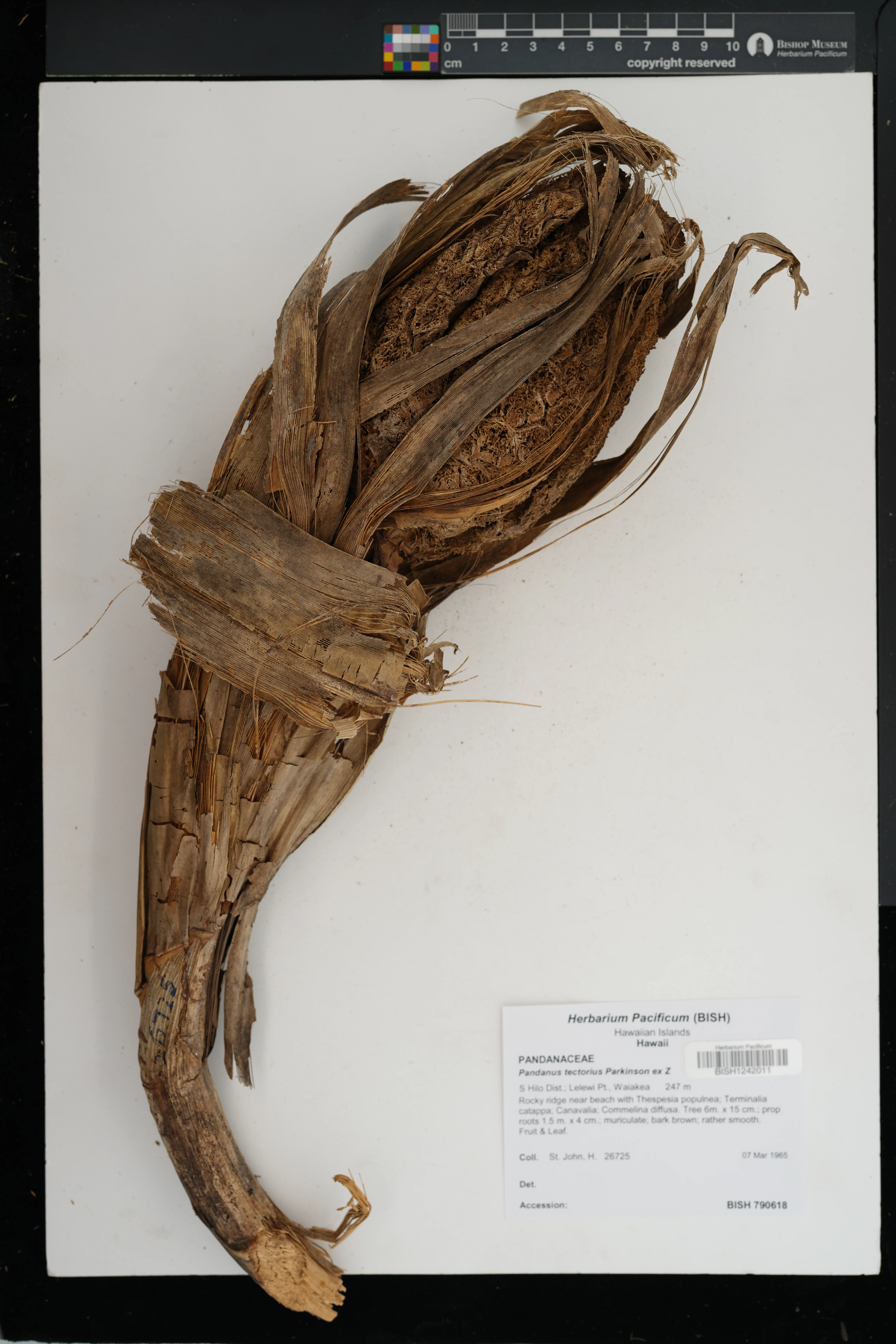 Tree 9m tall; roots spreading laterally at ground level; prop roots from 1m above ground; fruits orange at maturity; fruiting head exceptionally large |