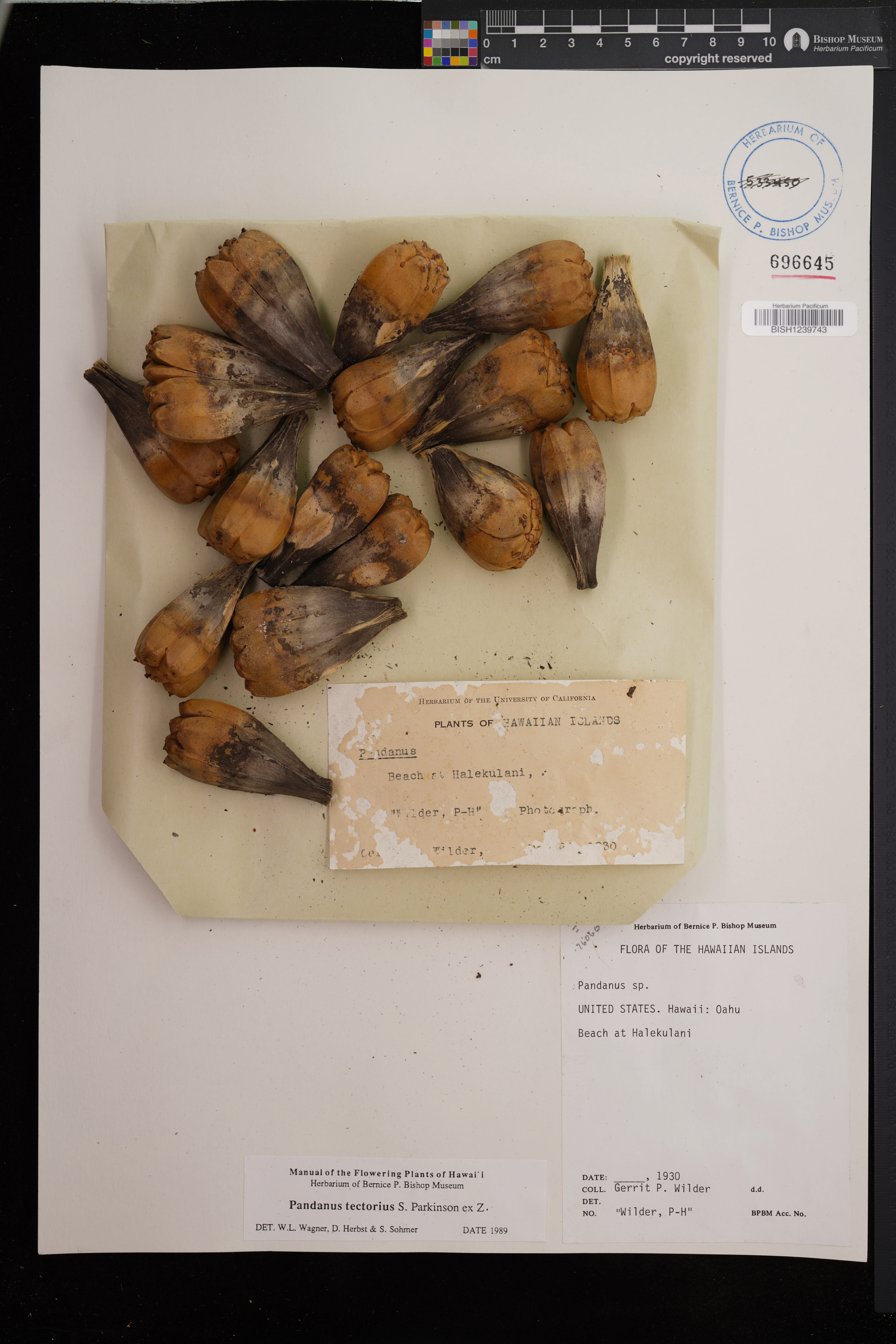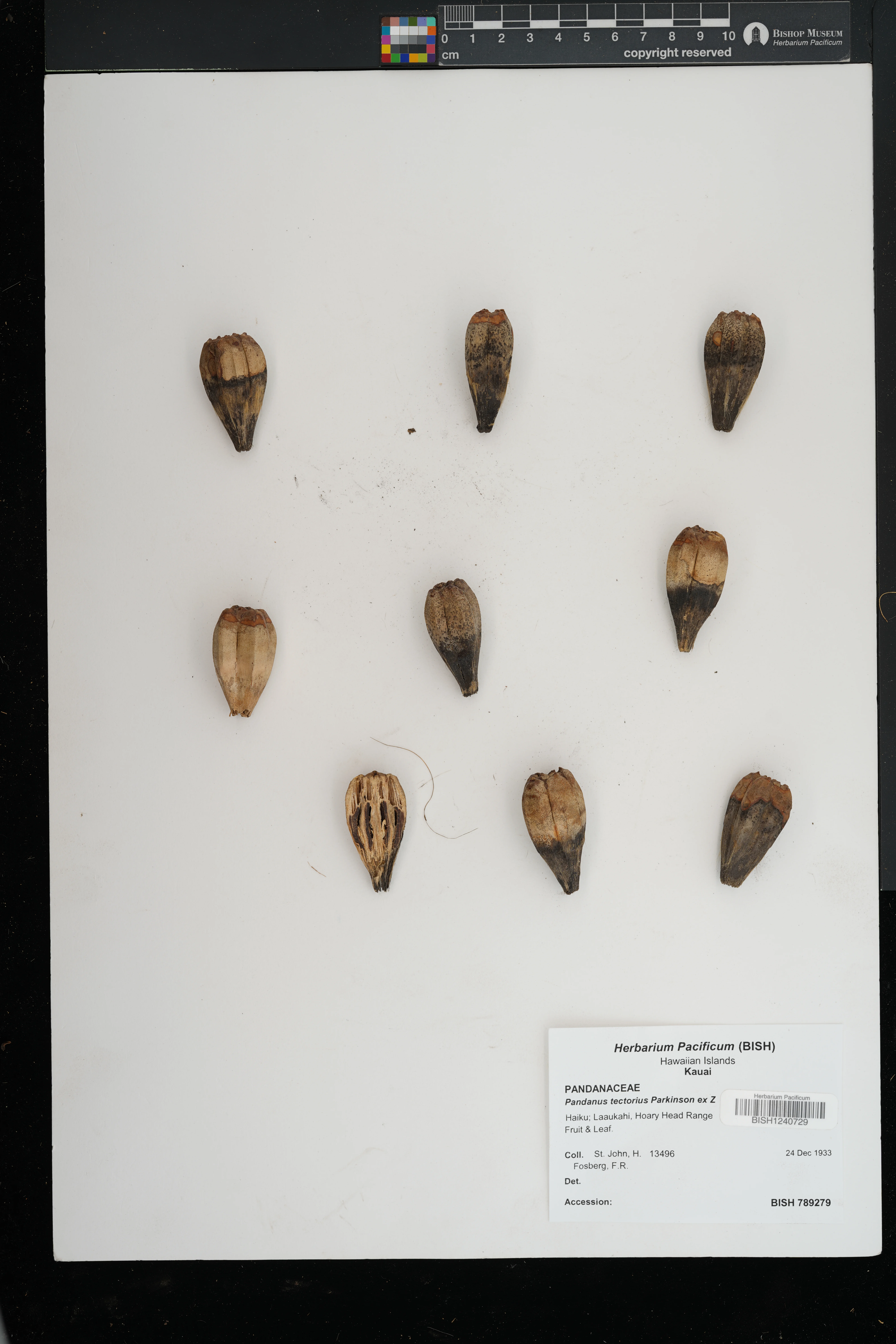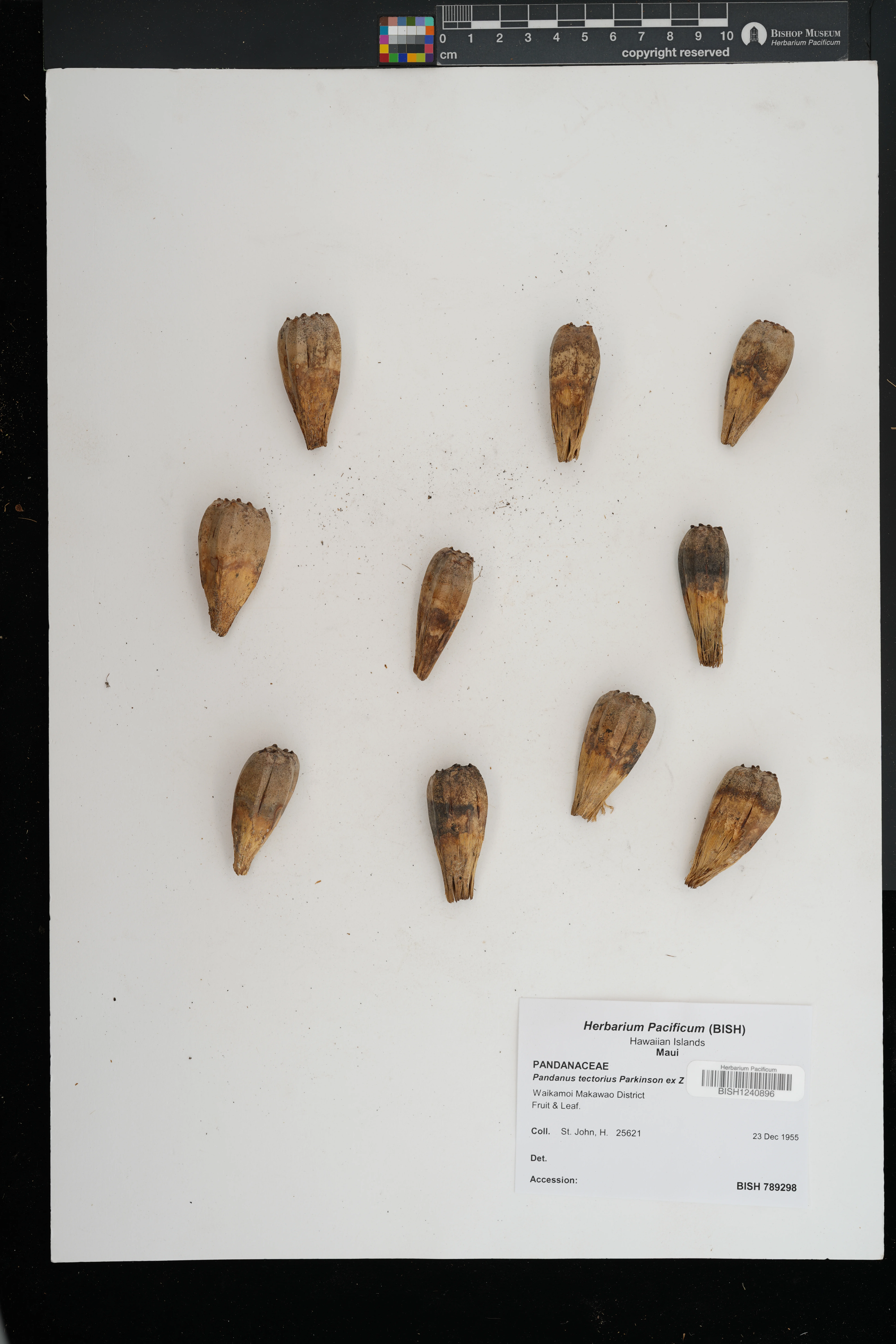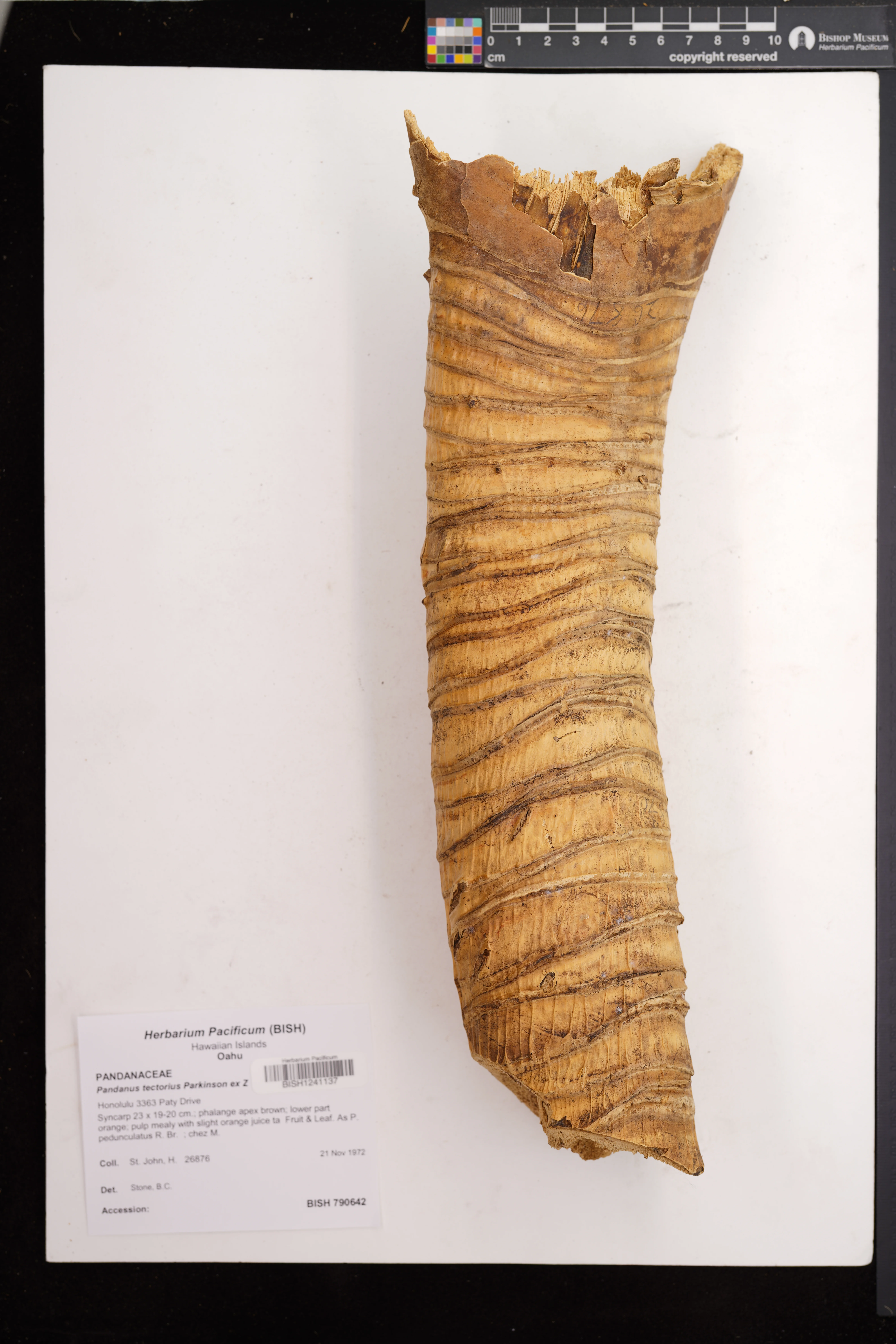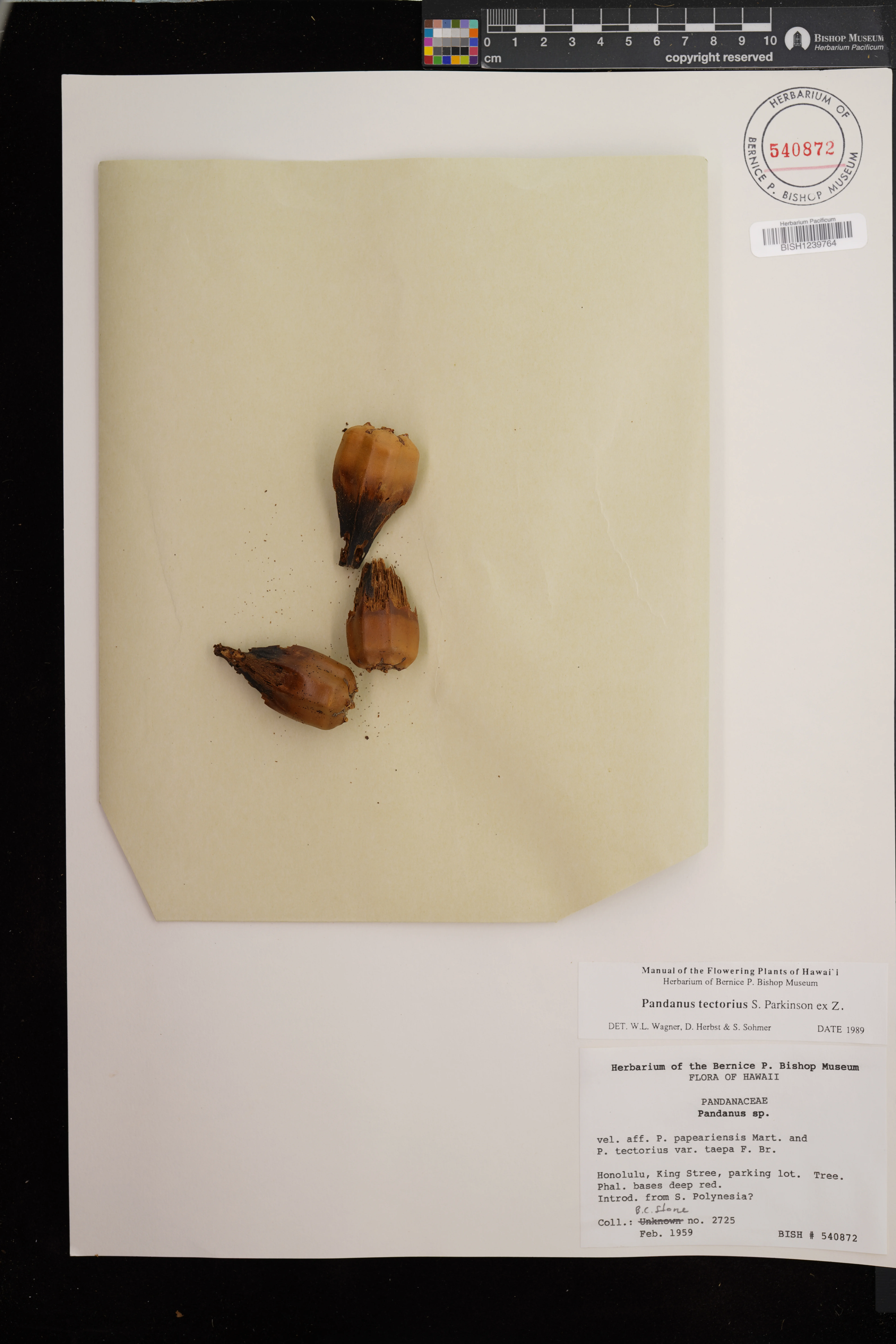 Tree 9m tall; roots spreading laterally at ground level; prop roots from 1m above ground; fruits orange at maturity; fruiting head exceptionally large |