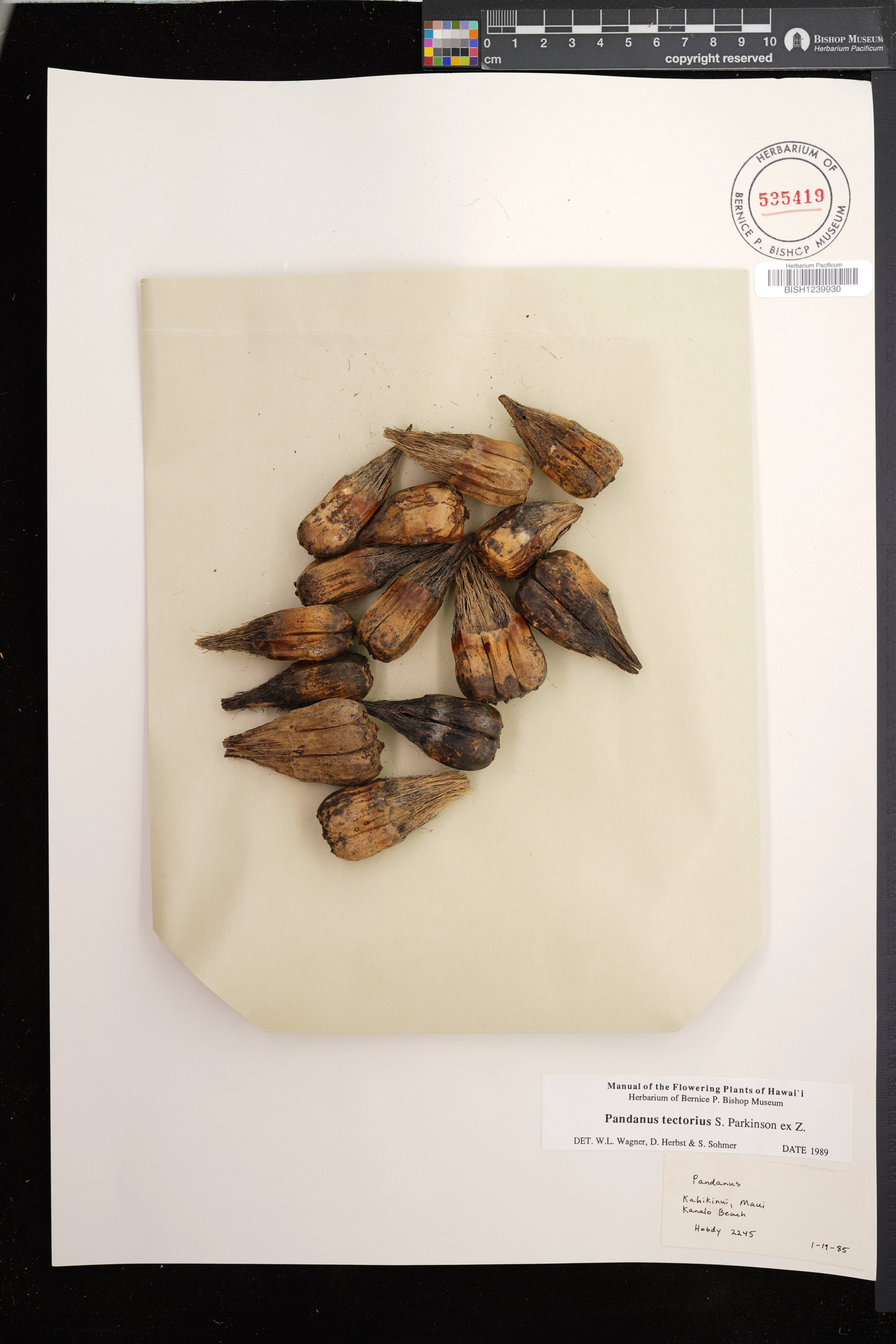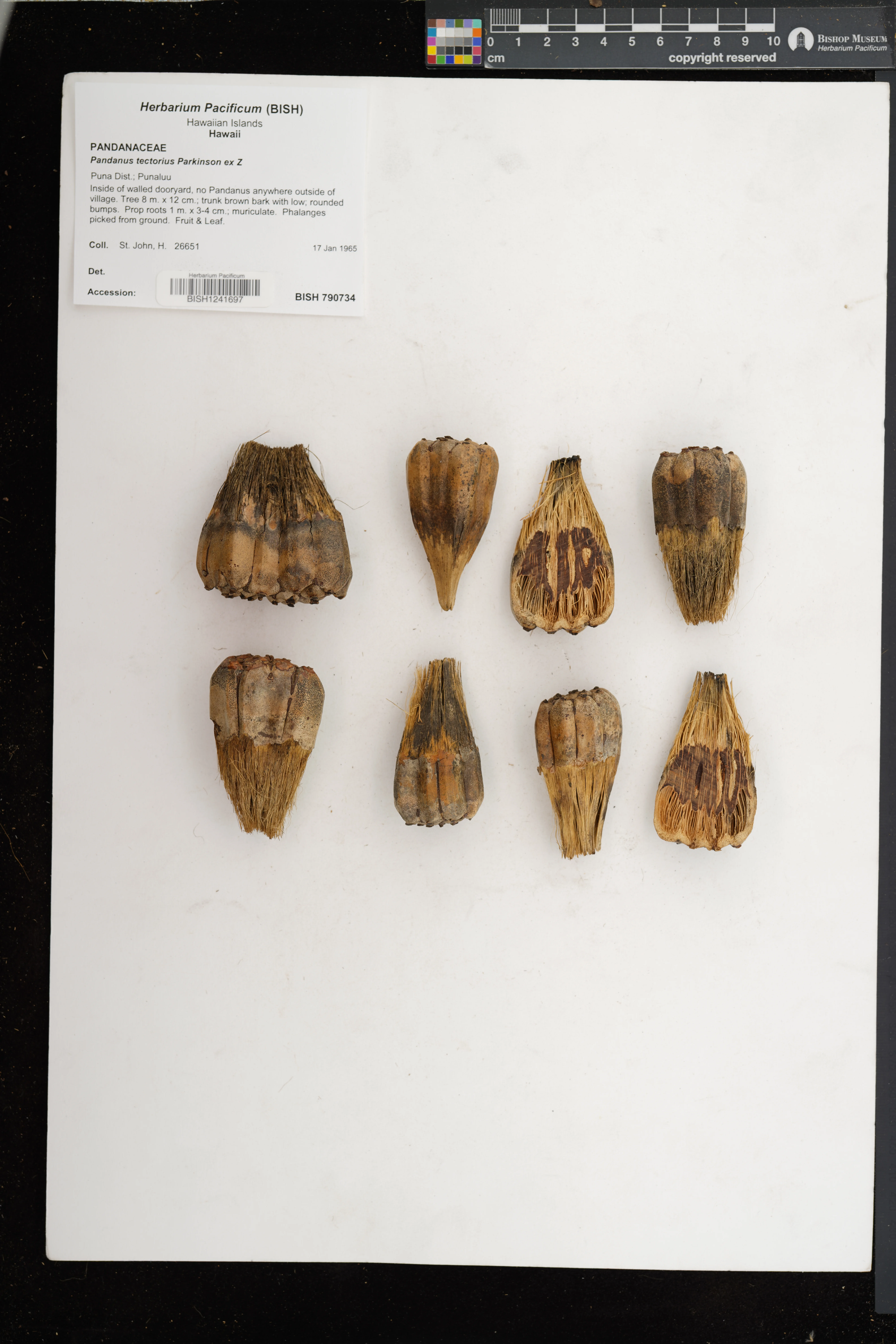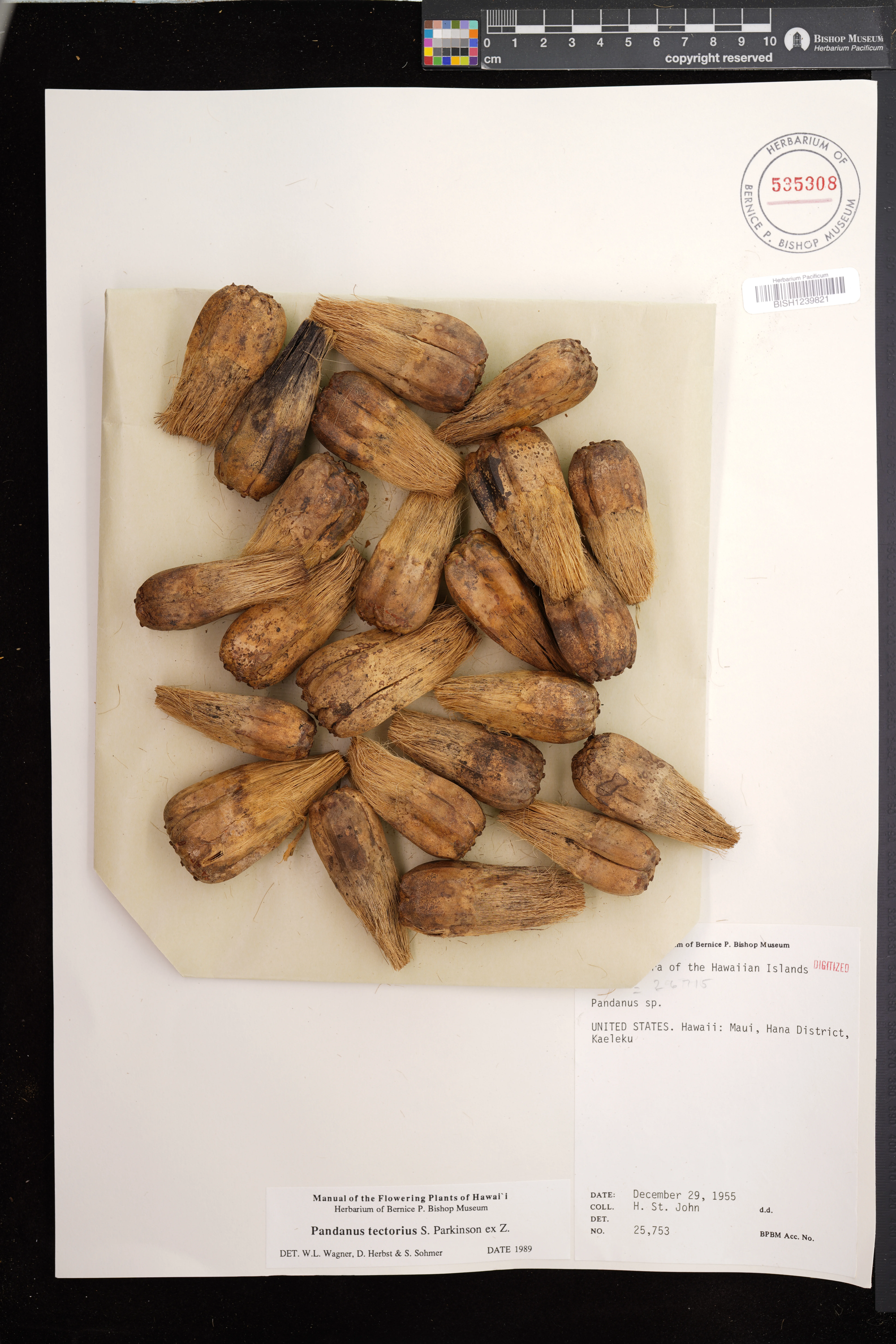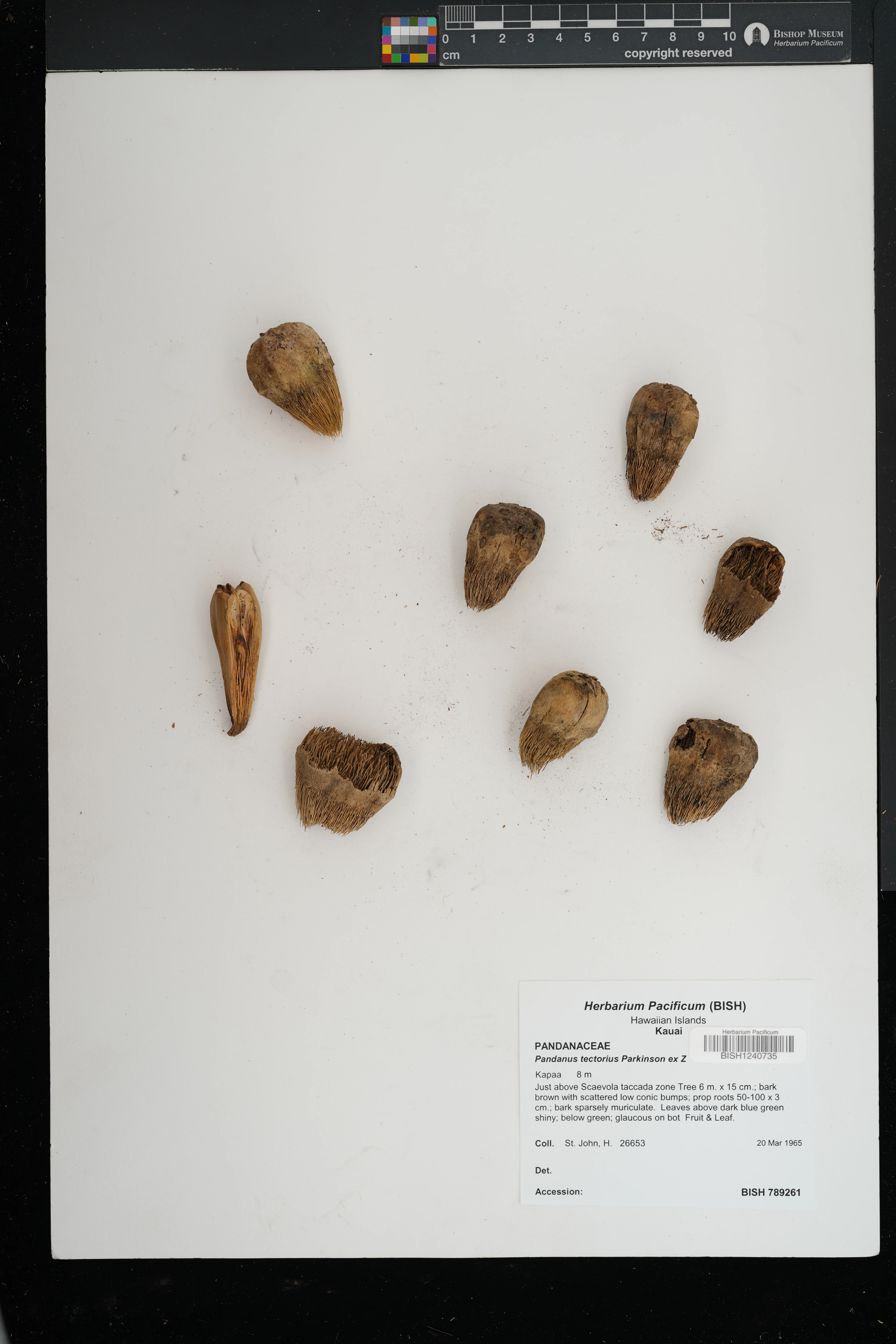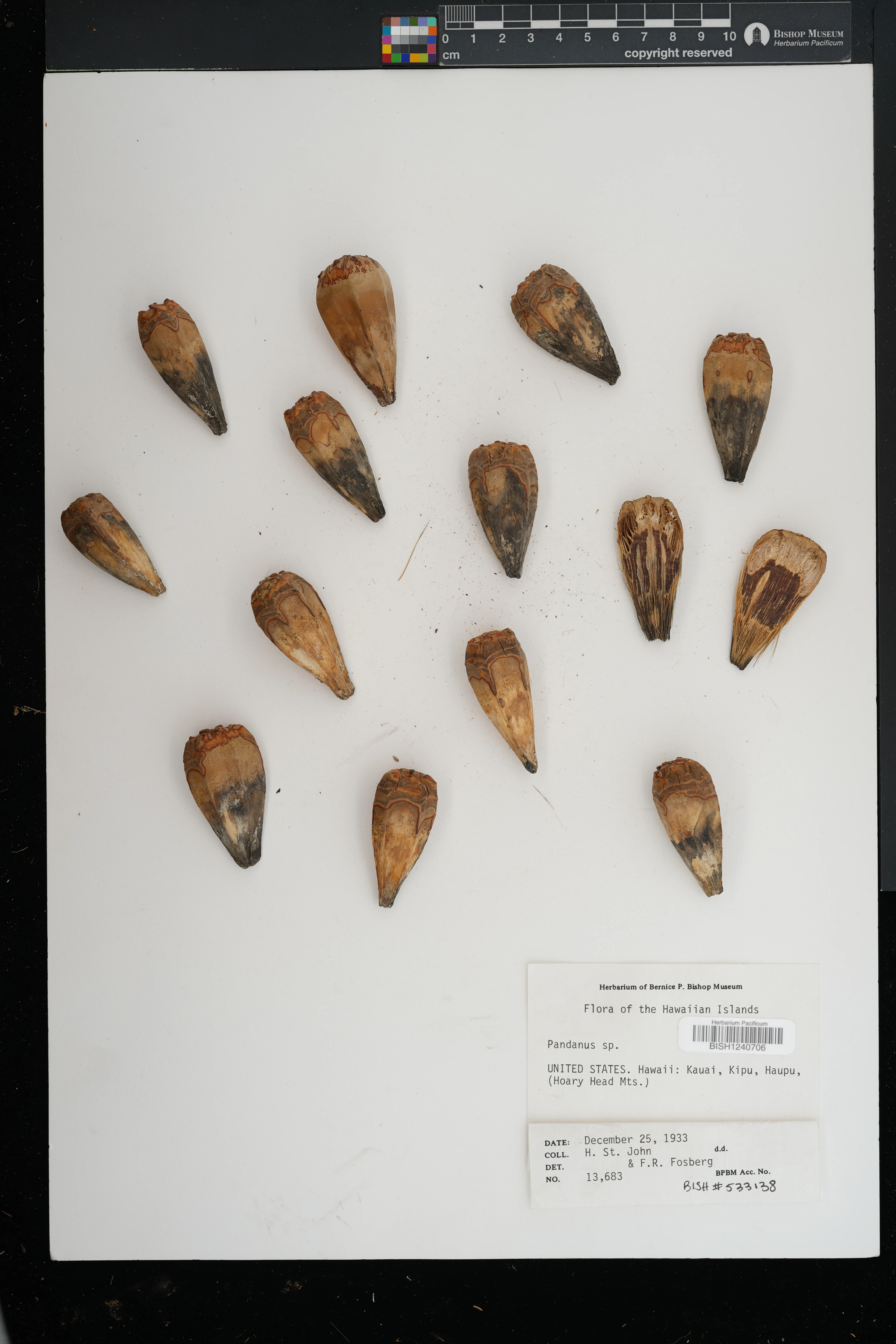 Tree 9m tall; roots spreading laterally at ground level; prop roots from 1m above ground; fruits orange at maturity; fruiting head exceptionally large |
