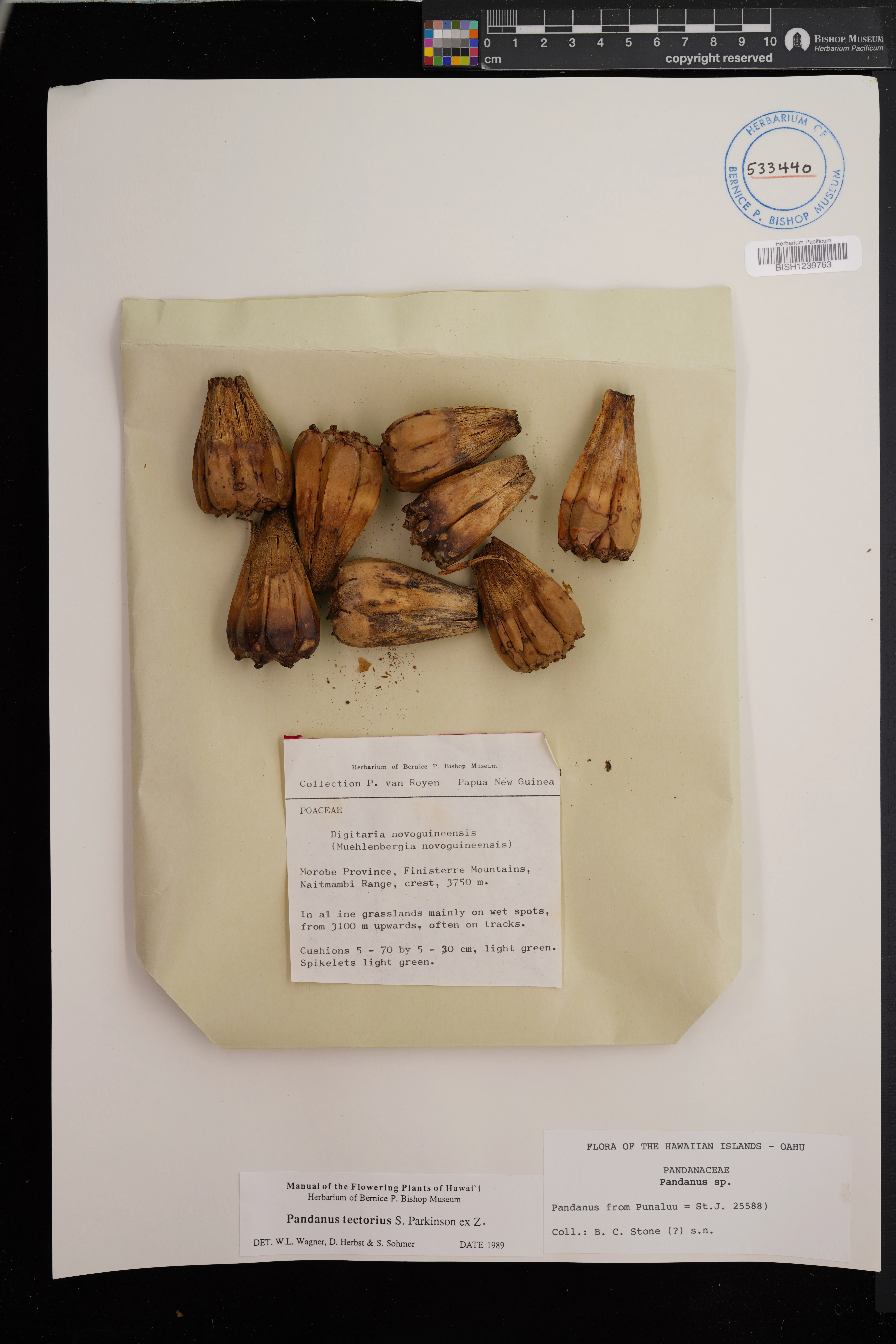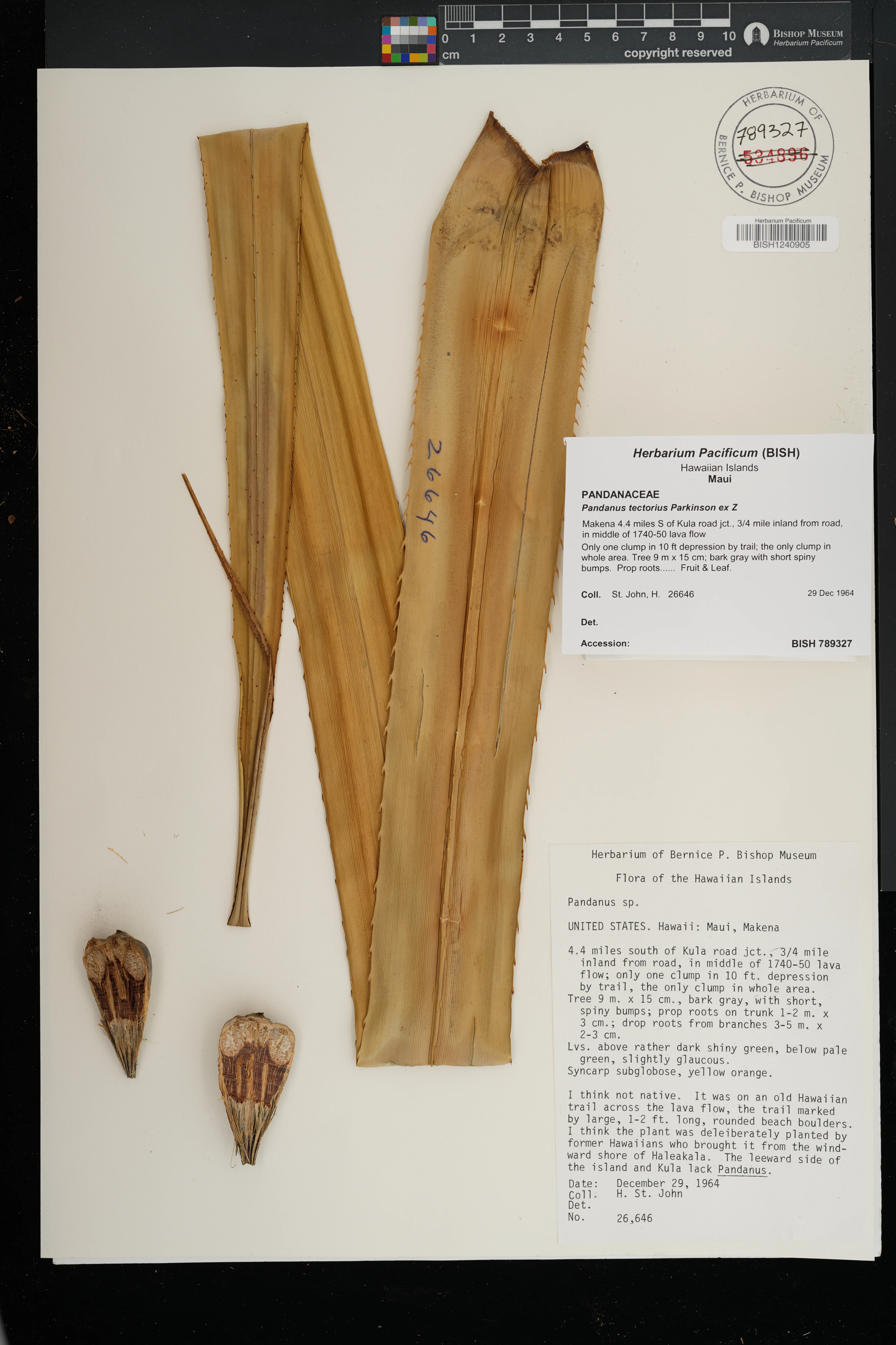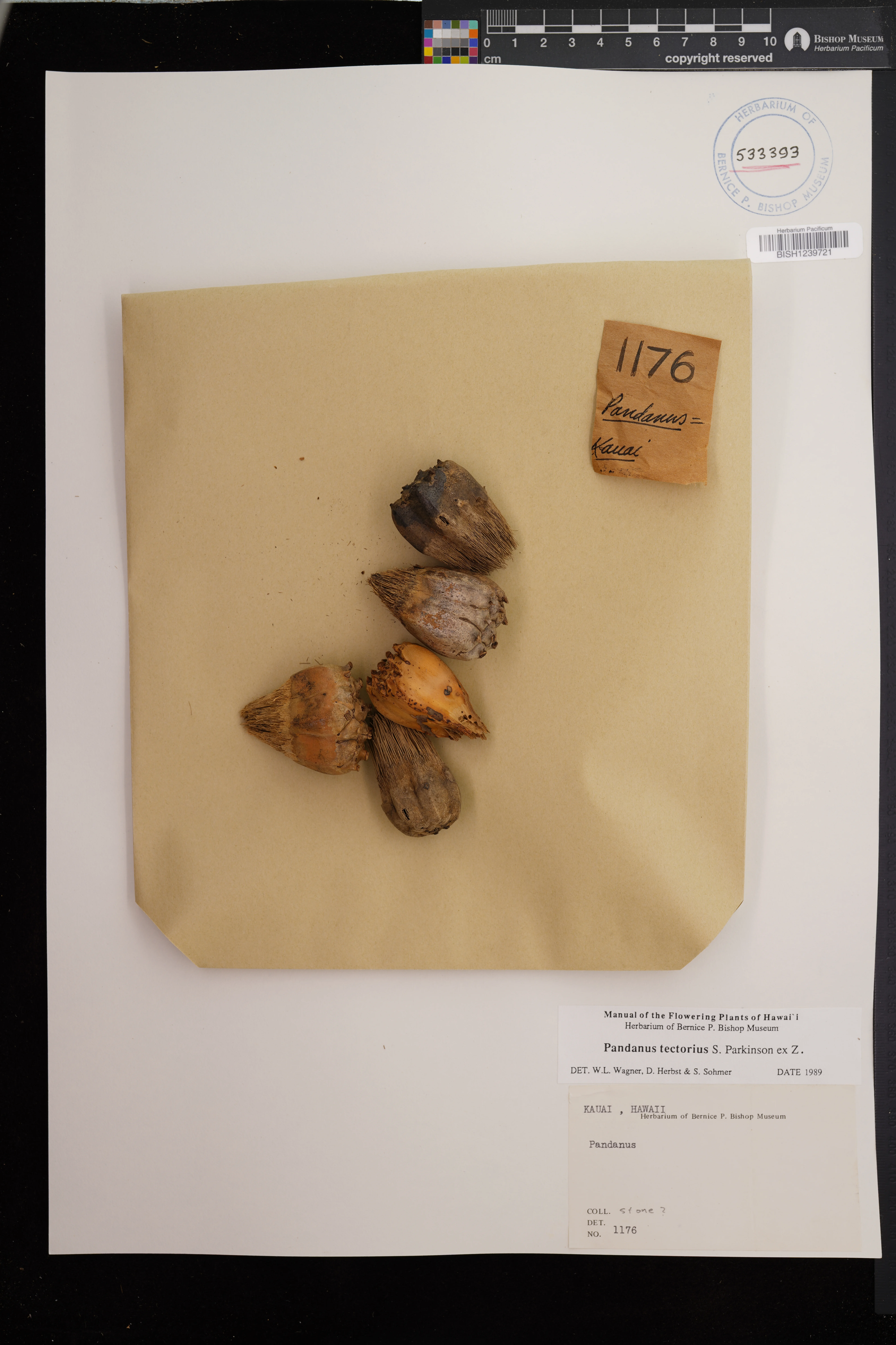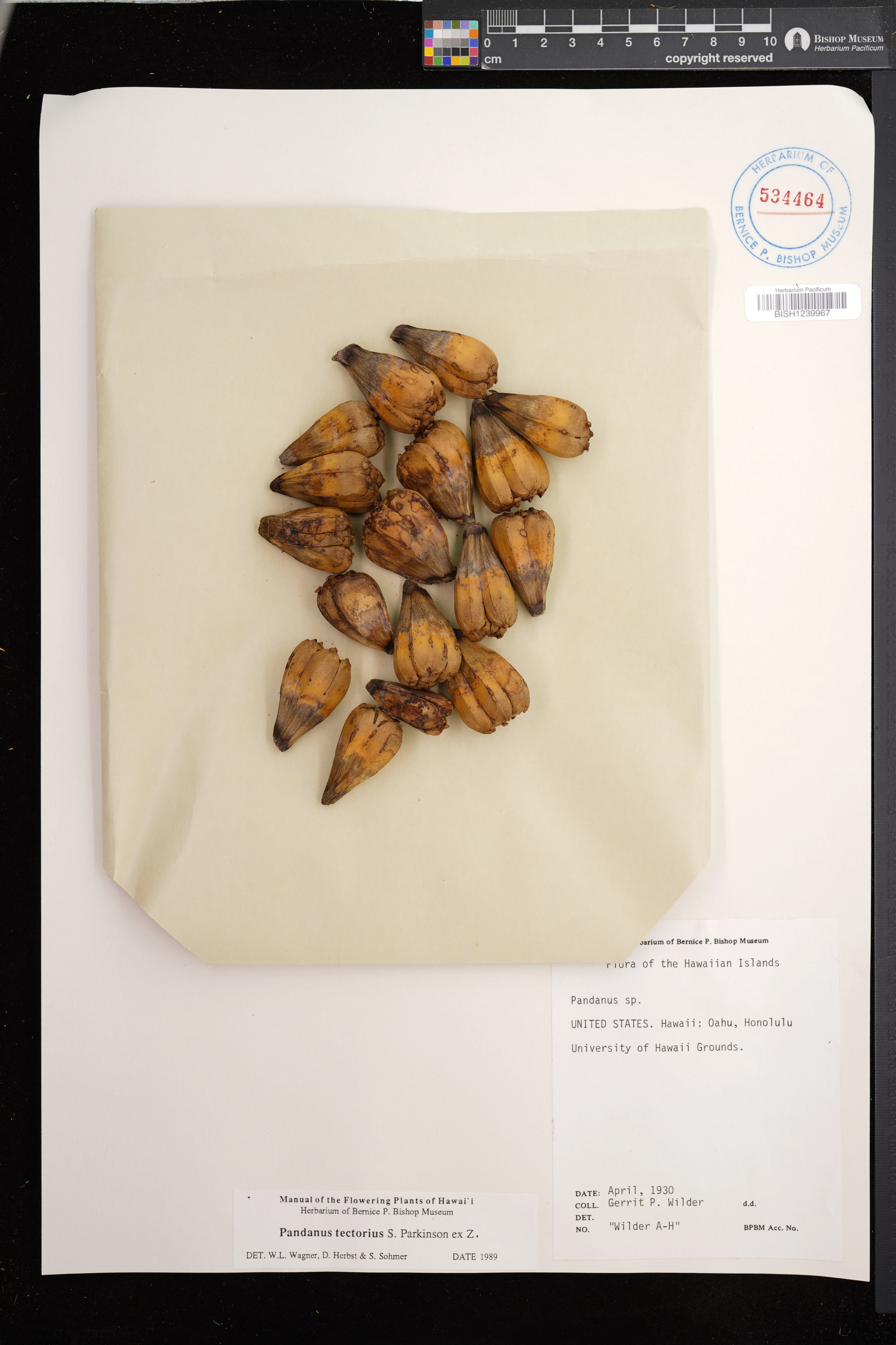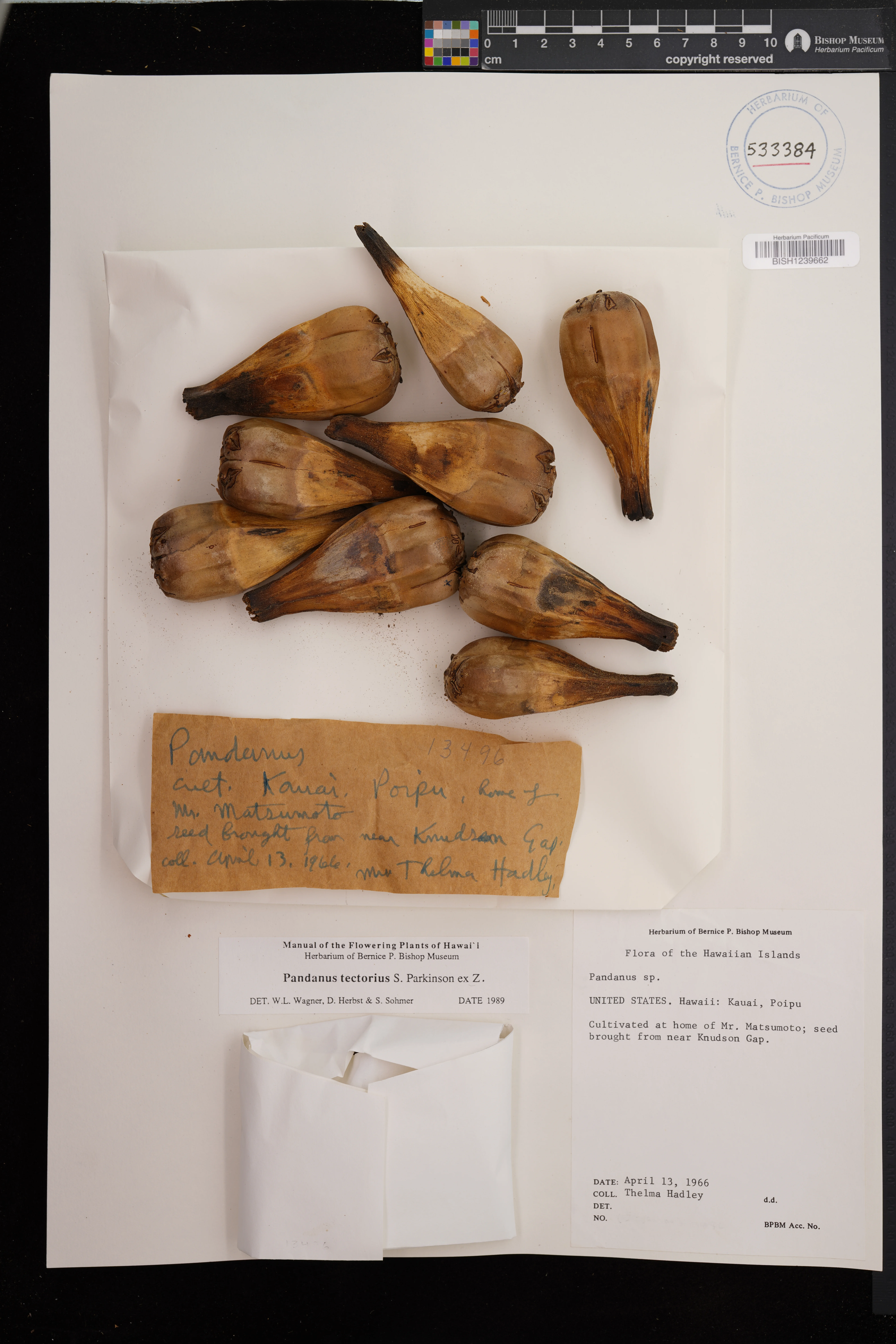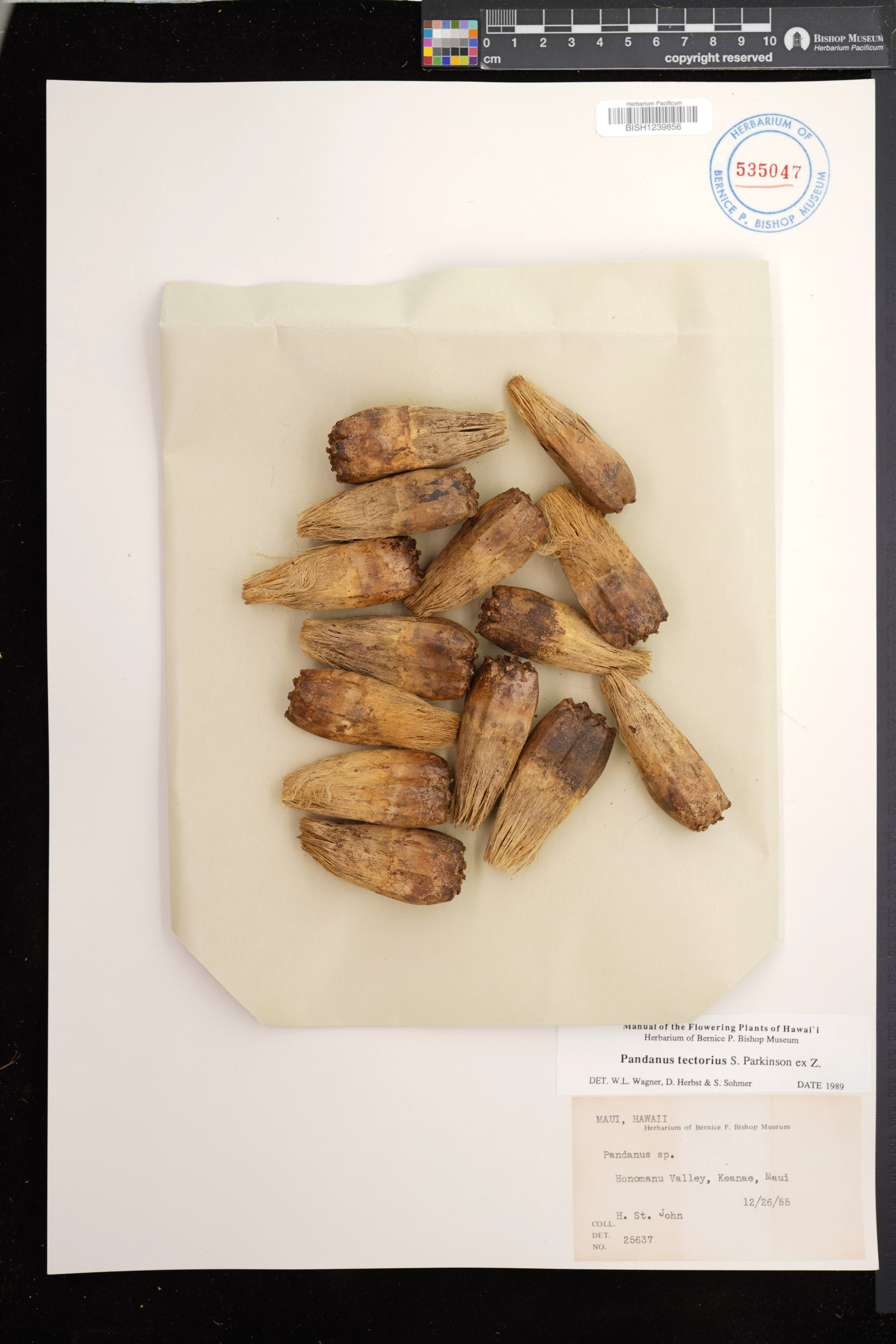Tree 9m tall; roots spreading laterally at ground level; prop roots from 1m above ground; fruits orange at maturity; fruiting head exceptionally large |