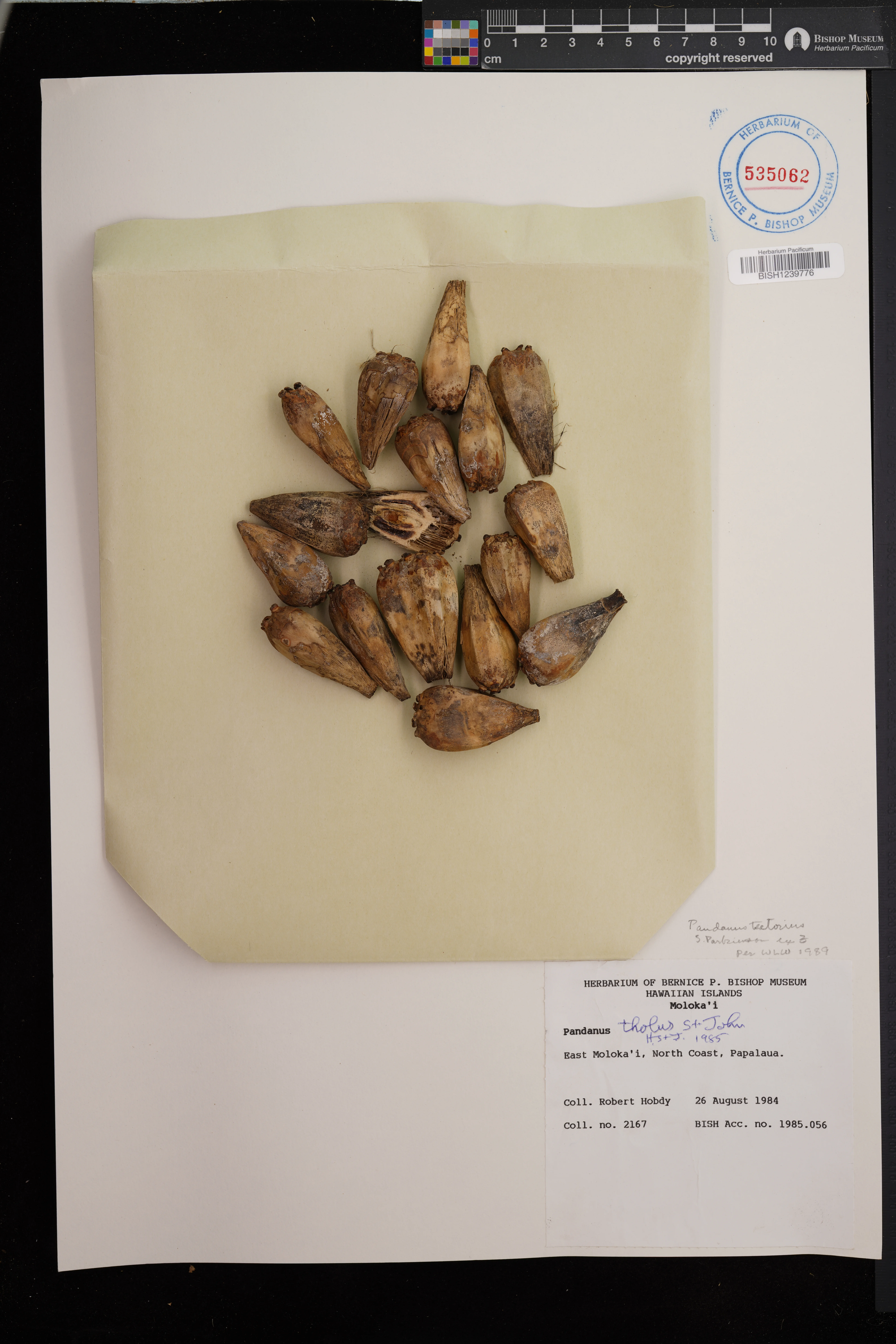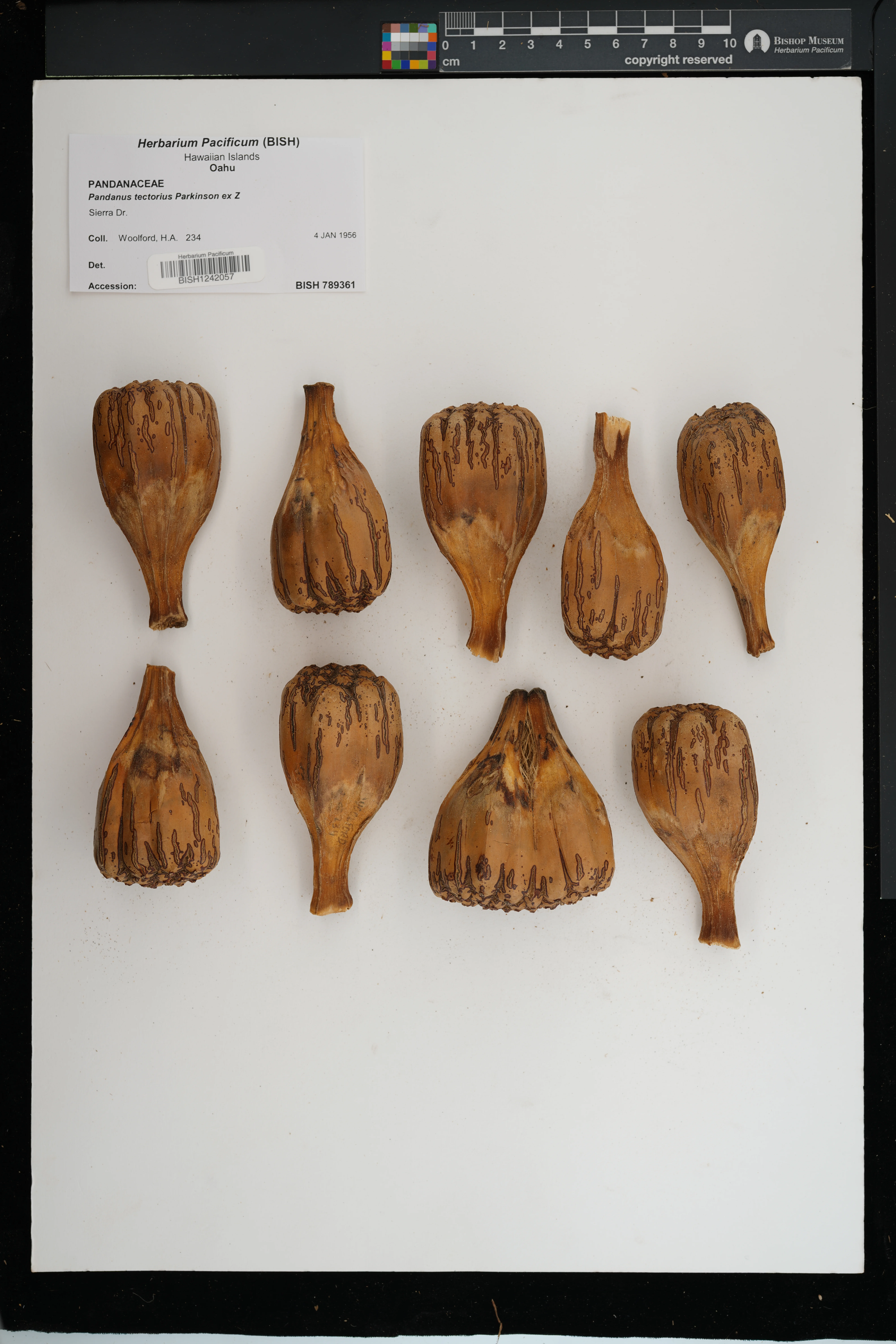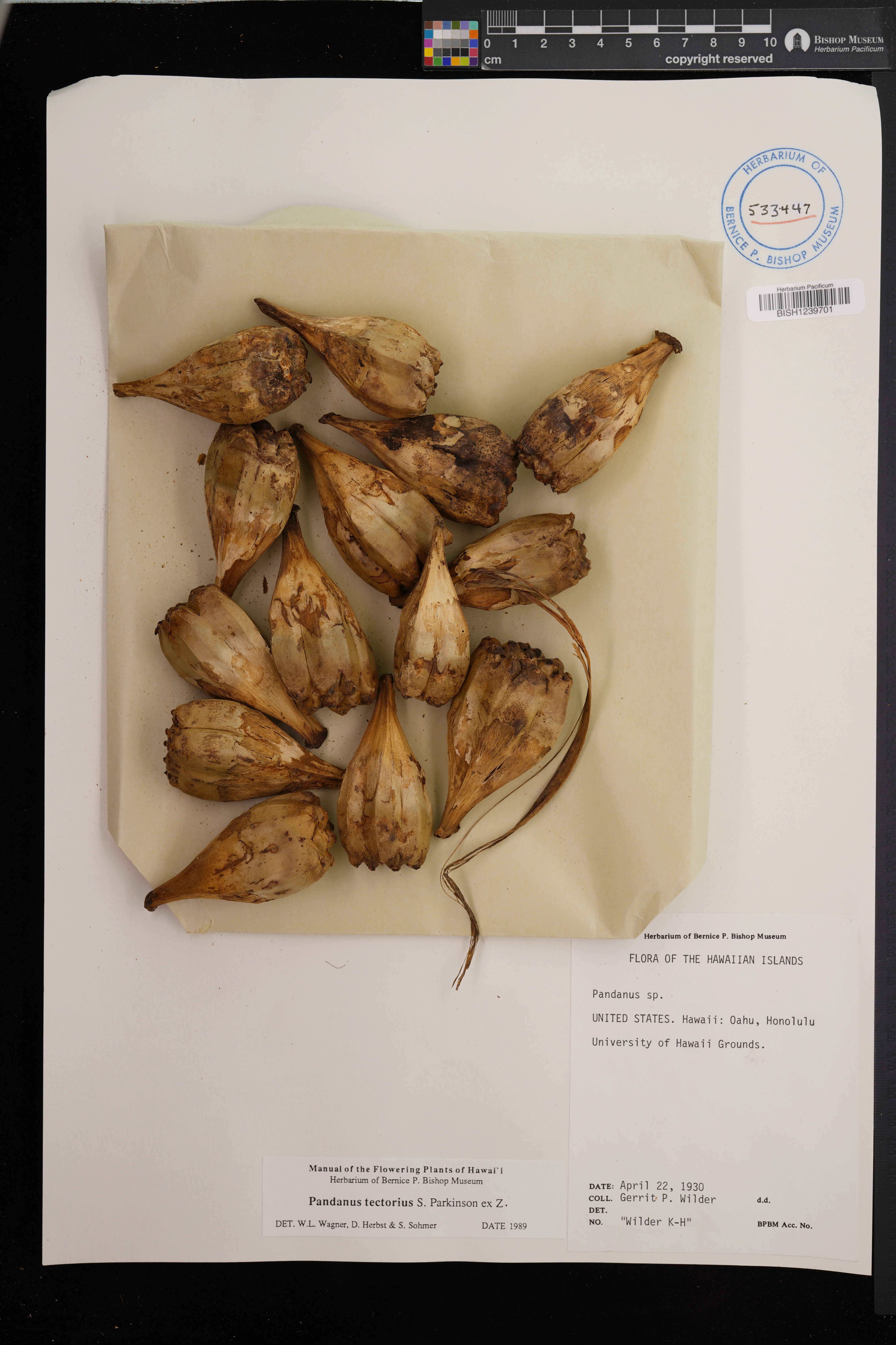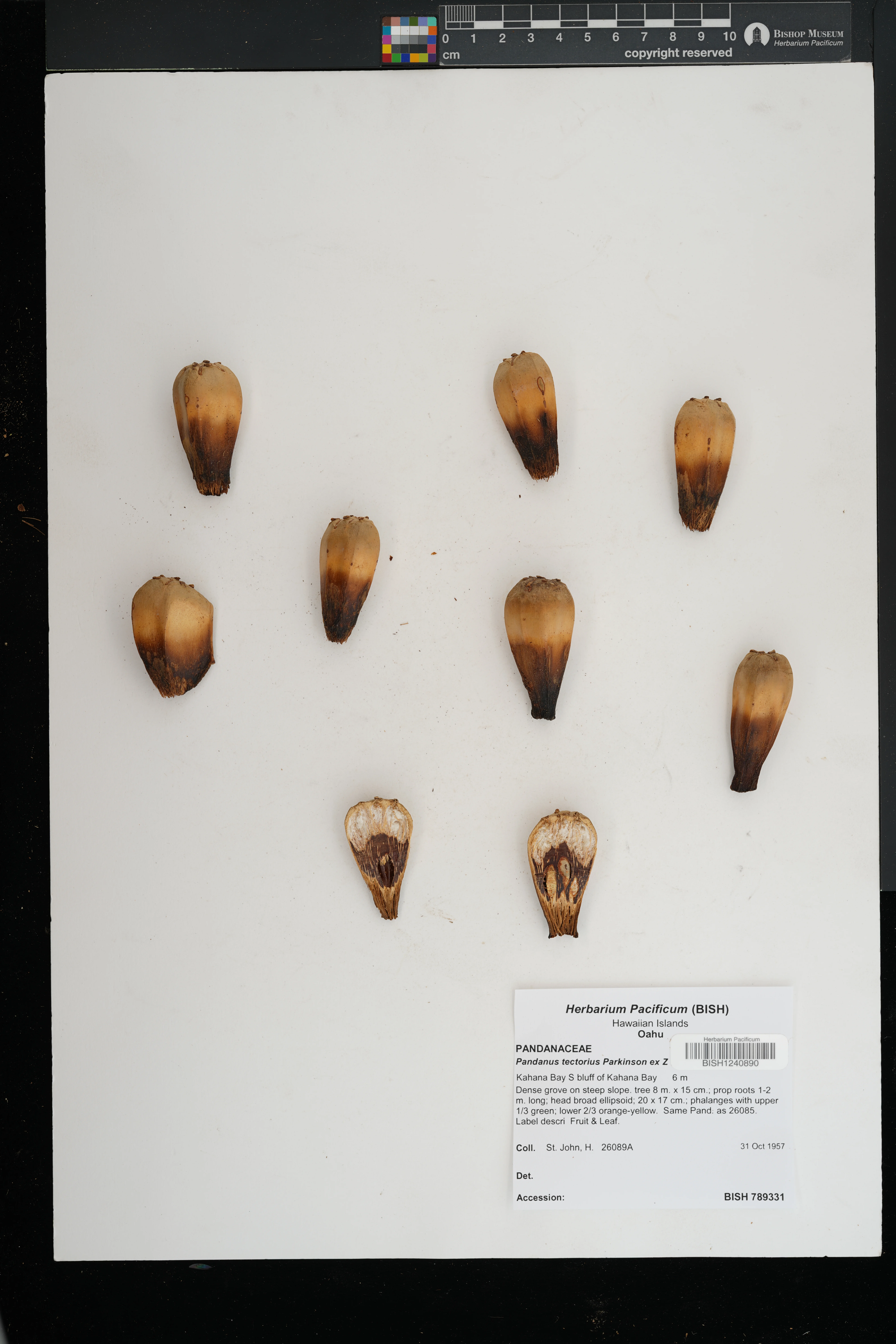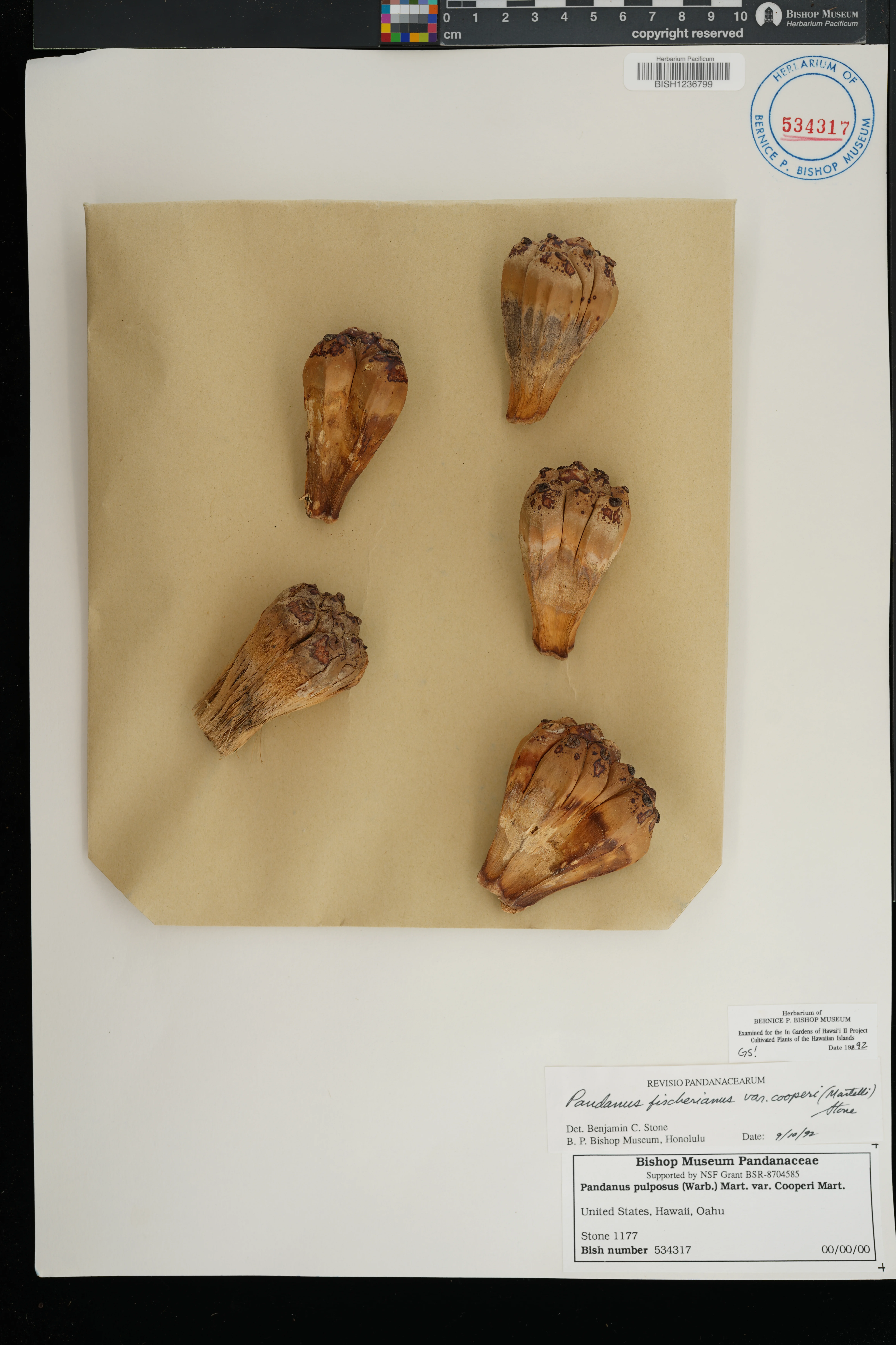 Tree 9m tall; roots spreading laterally at ground level; prop roots from 1m above ground; fruits orange at maturity; fruiting head exceptionally large |