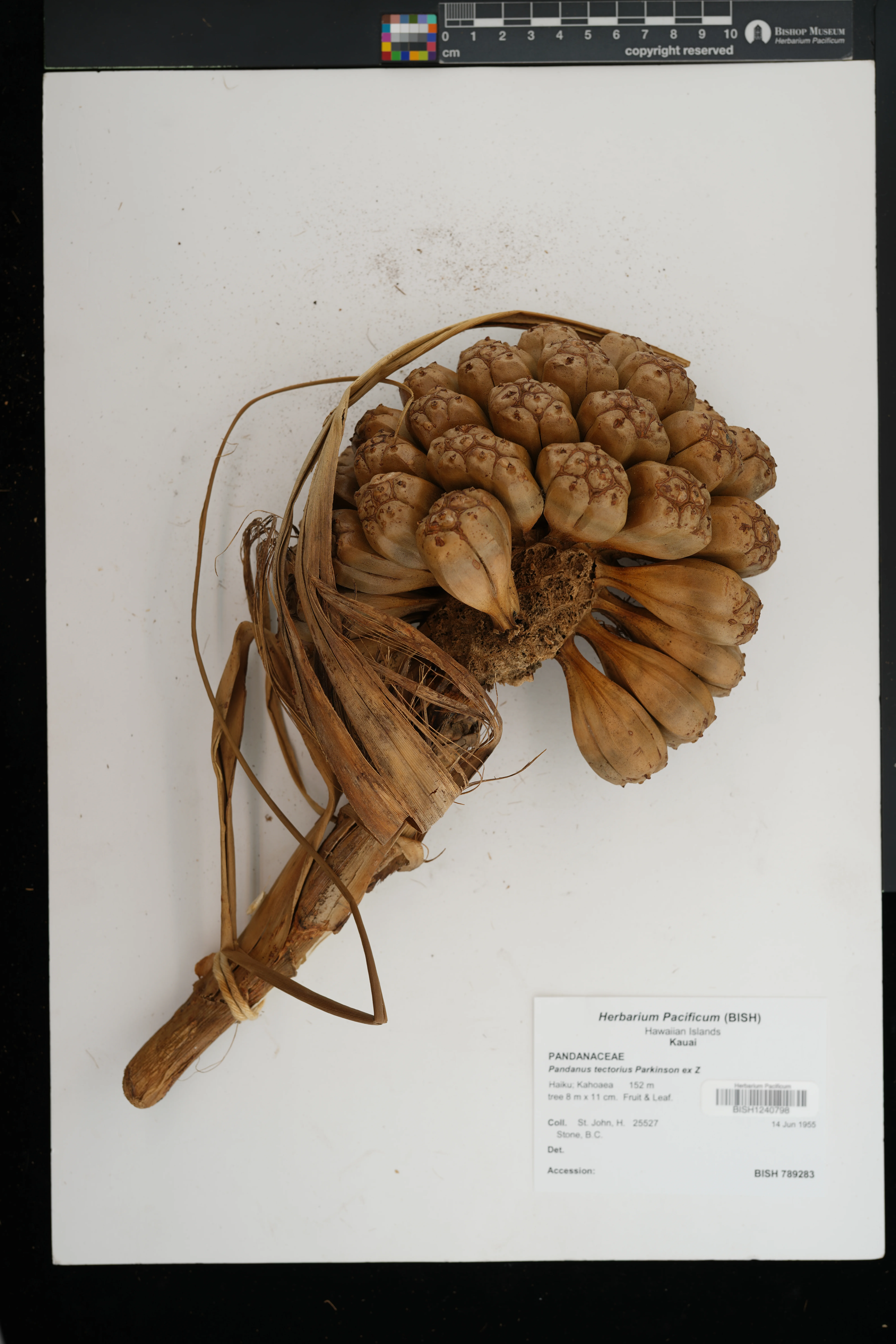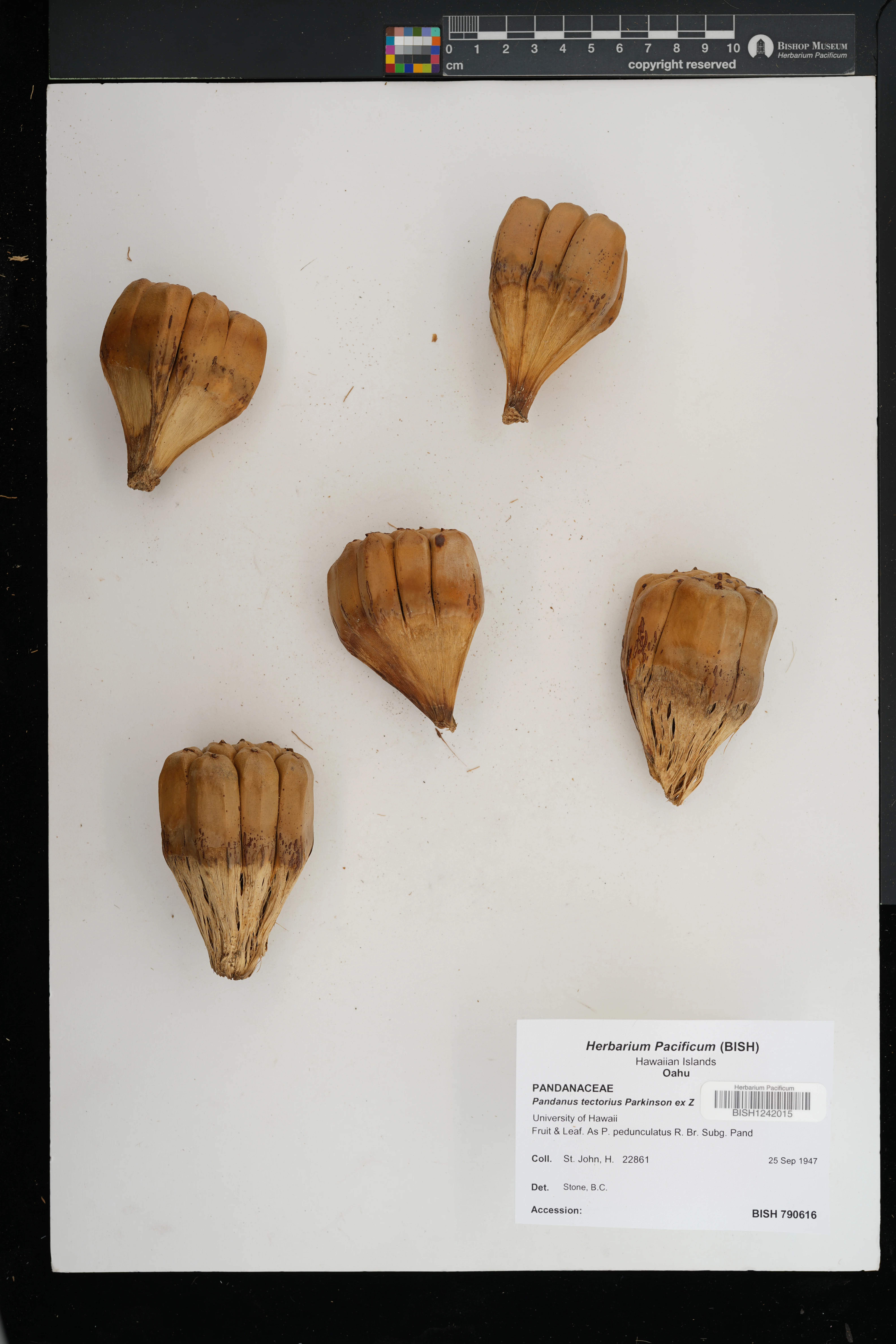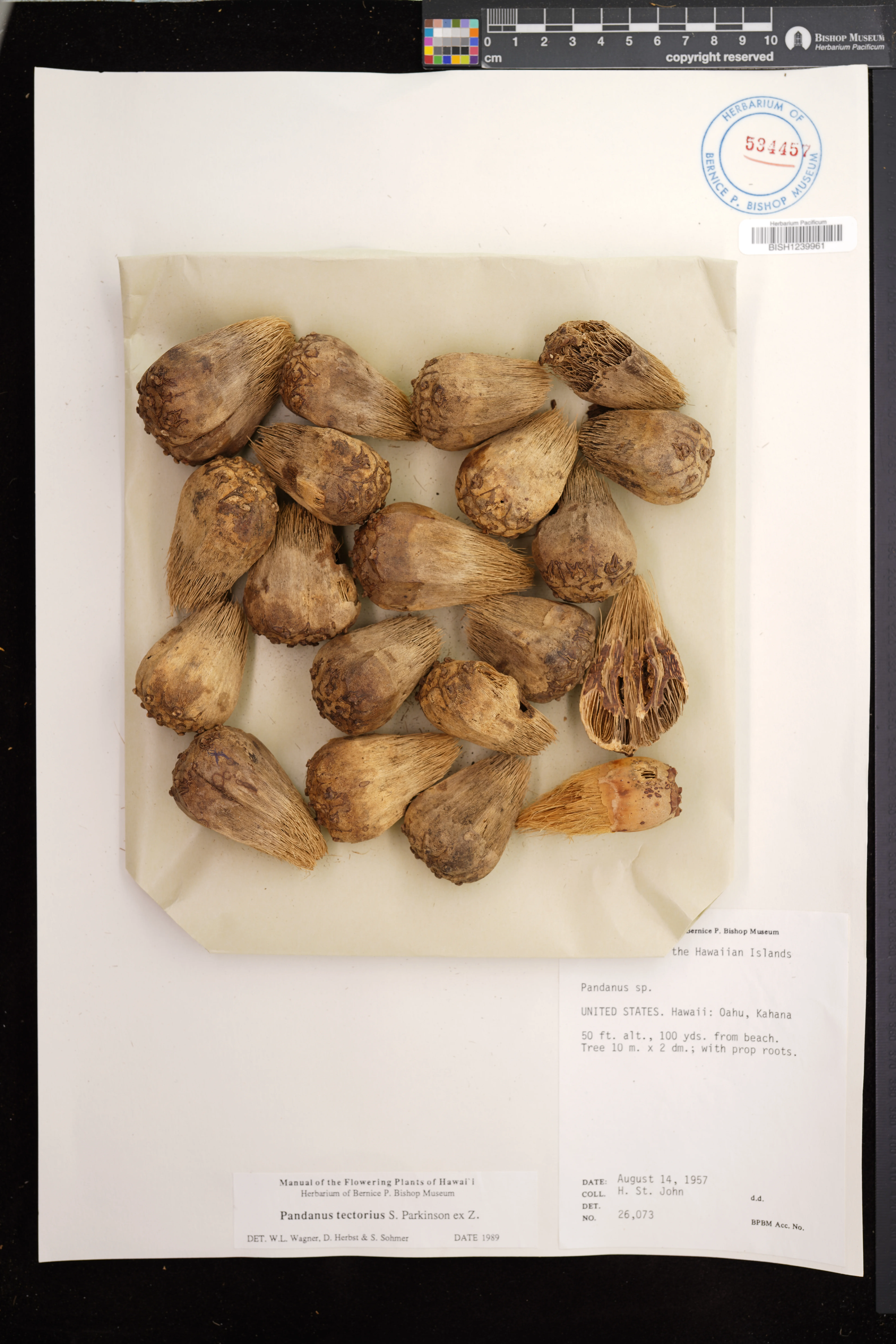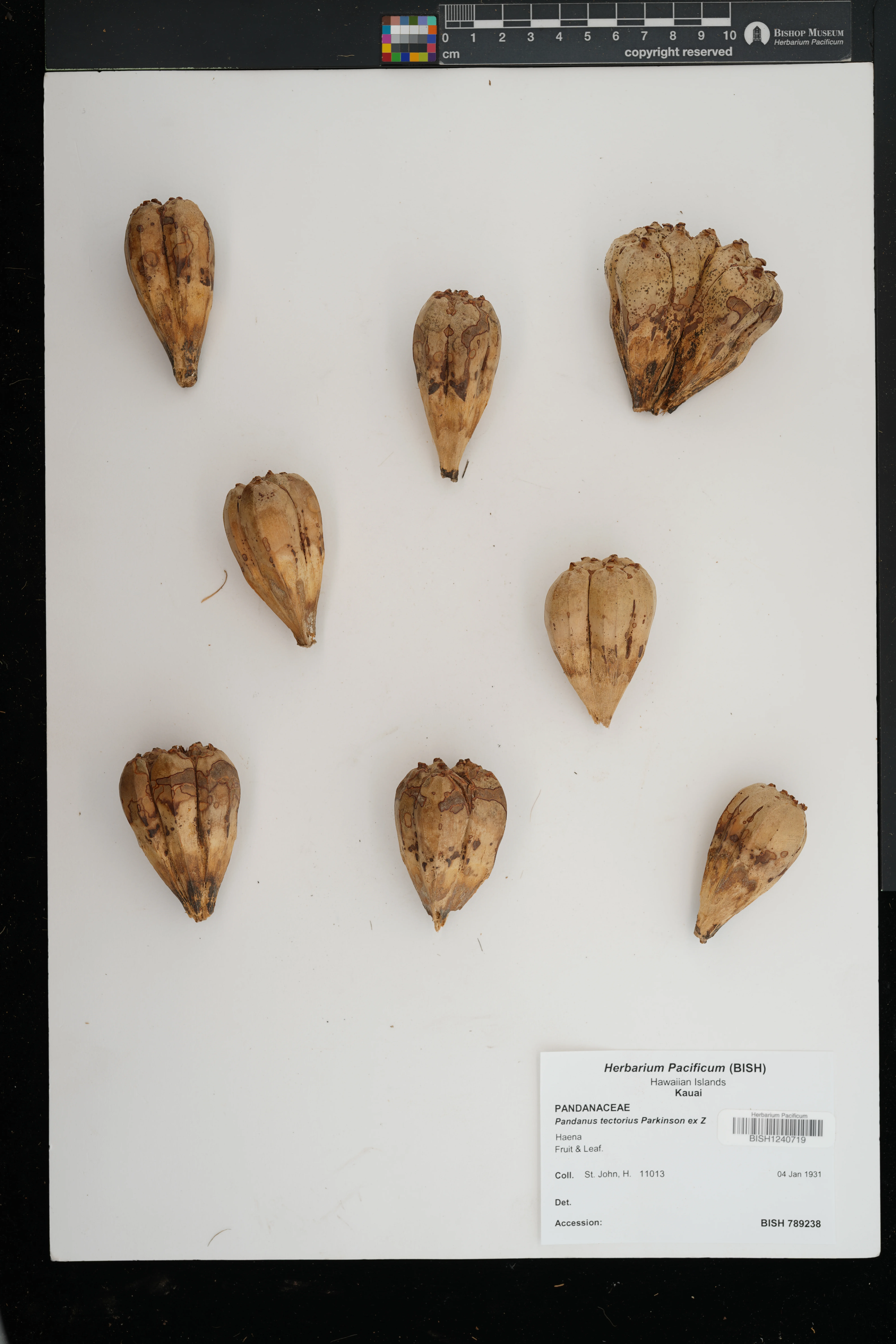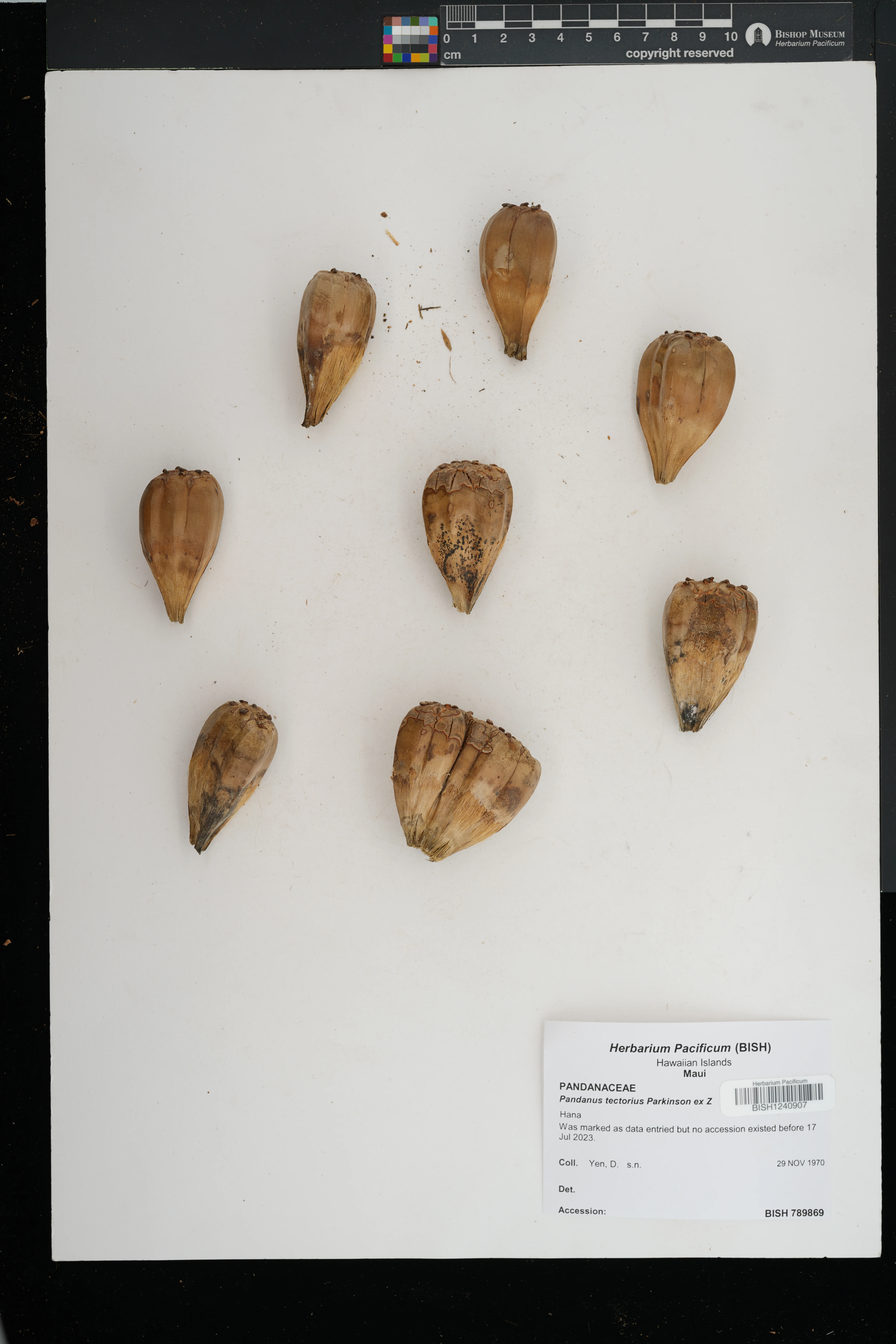 Tree 9m tall; roots spreading laterally at ground level; prop roots from 1m above ground; fruits orange at maturity; fruiting head exceptionally large |