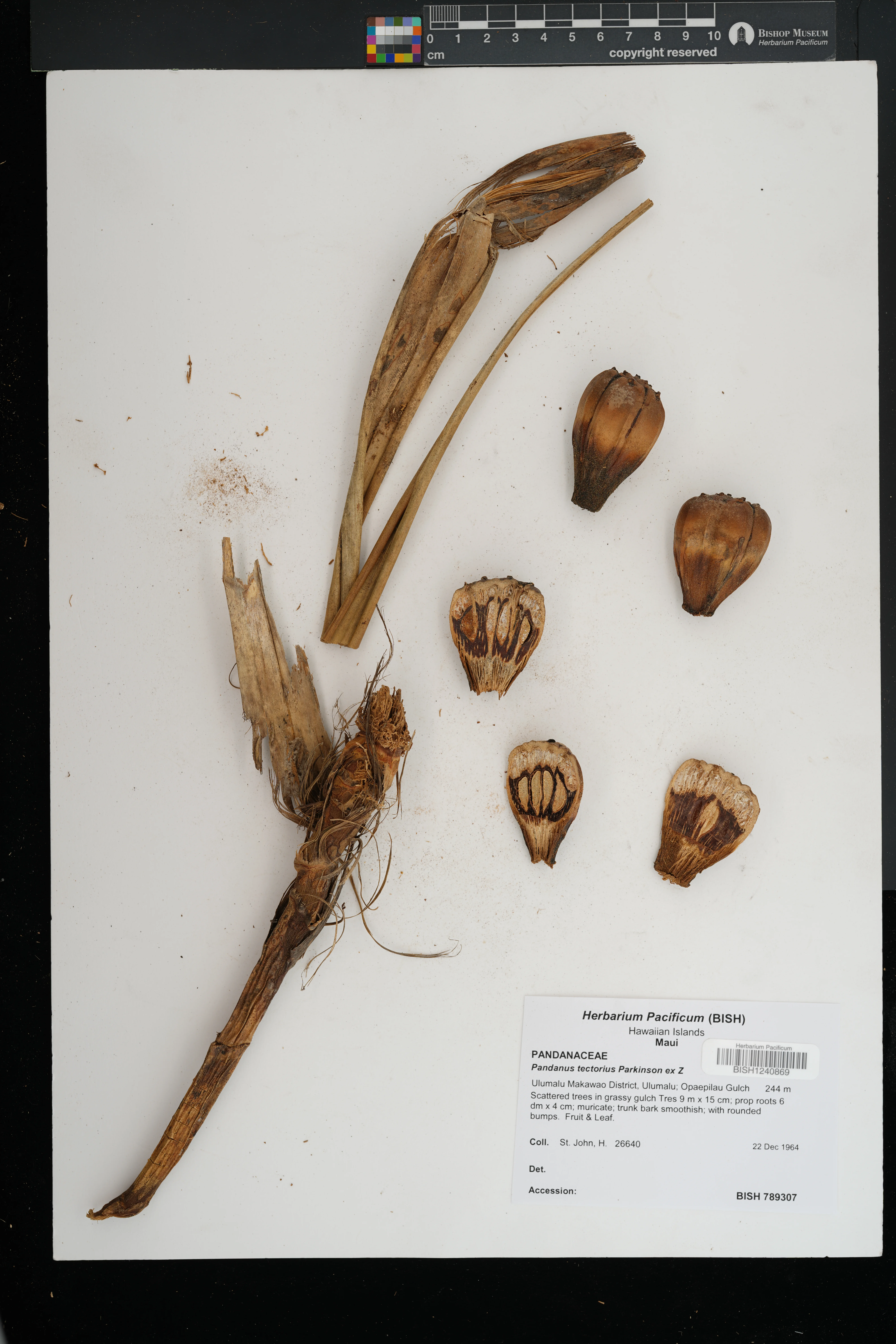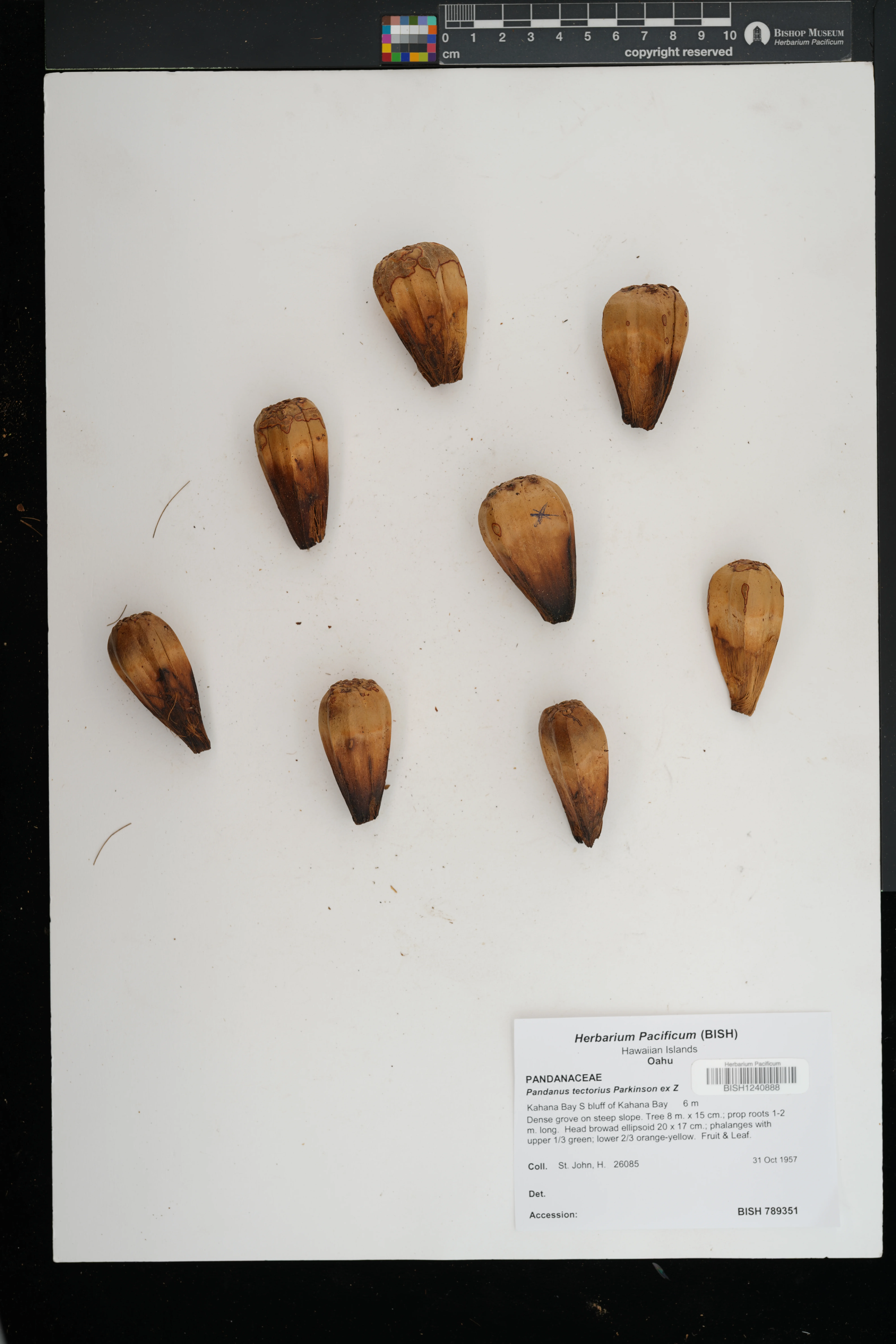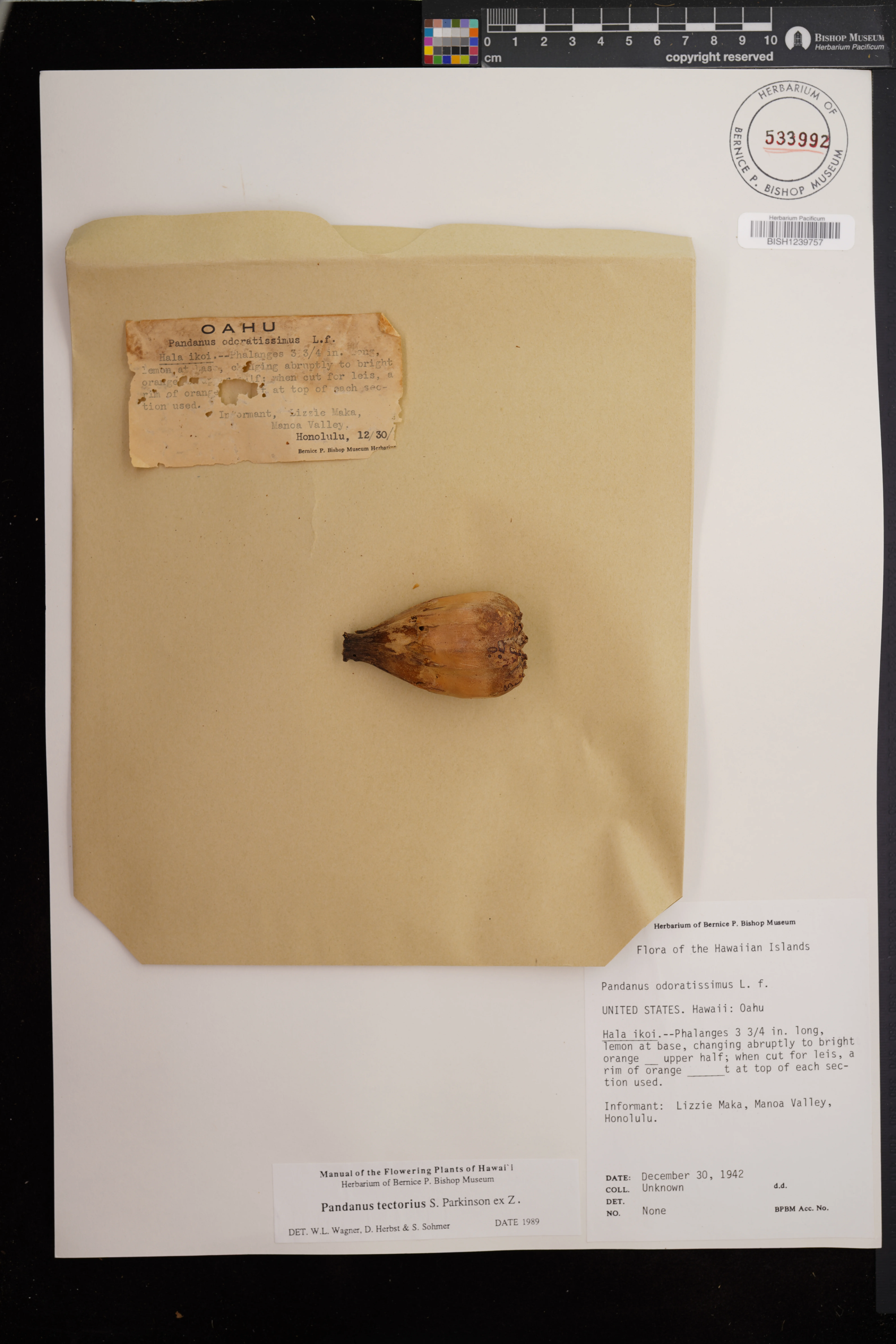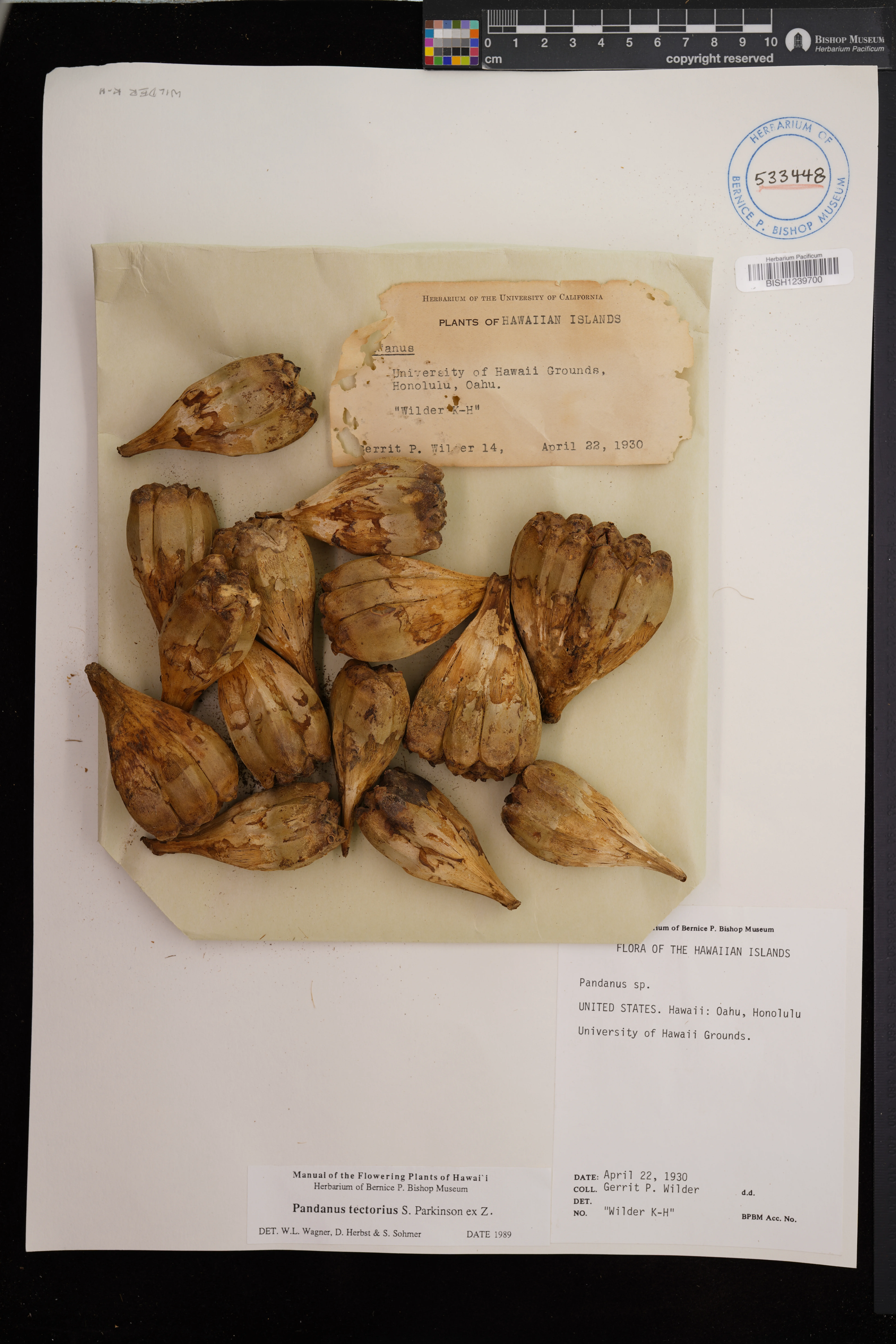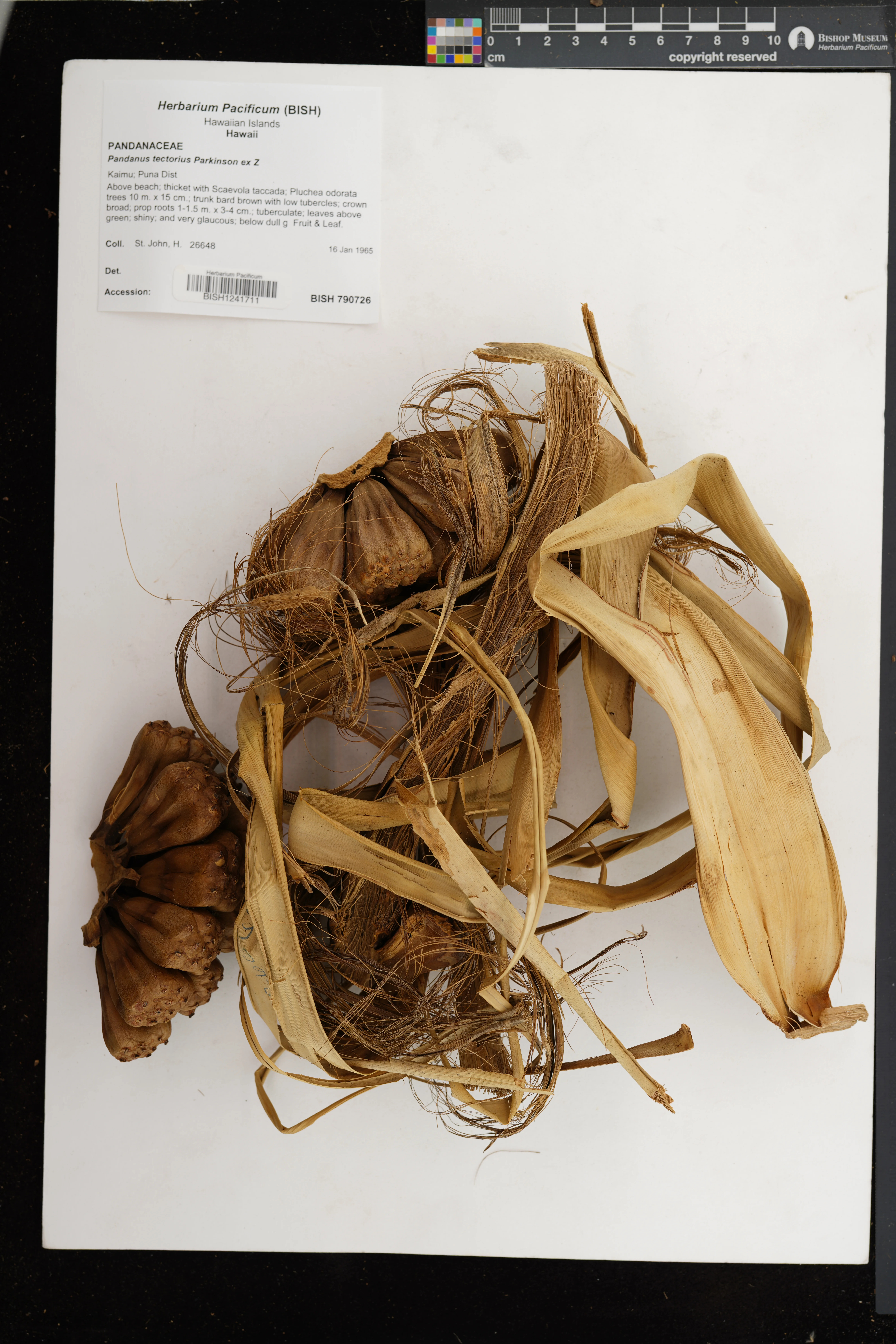 Tree 9m tall; roots spreading laterally at ground level; prop roots from 1m above ground; fruits orange at maturity; fruiting head exceptionally large |