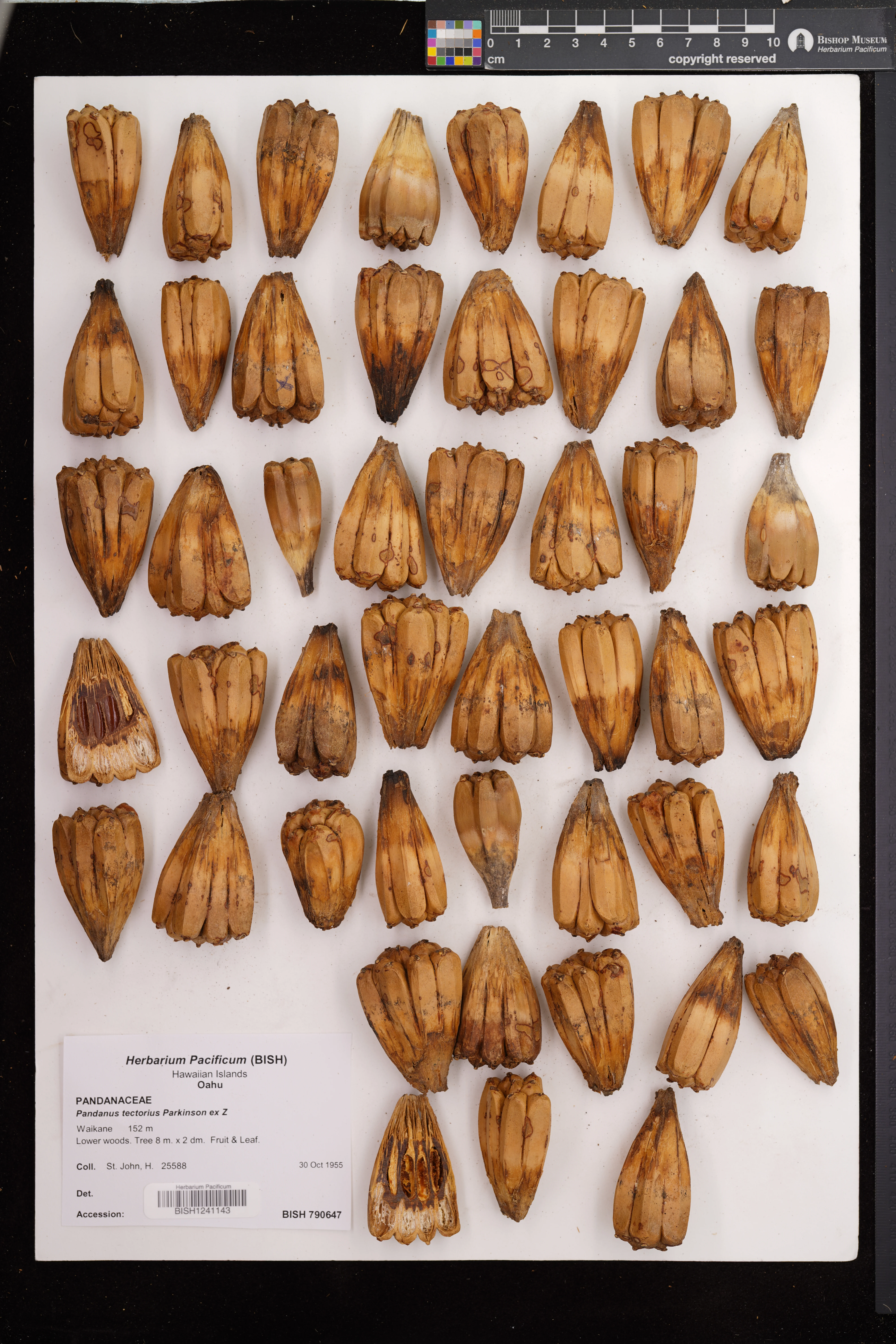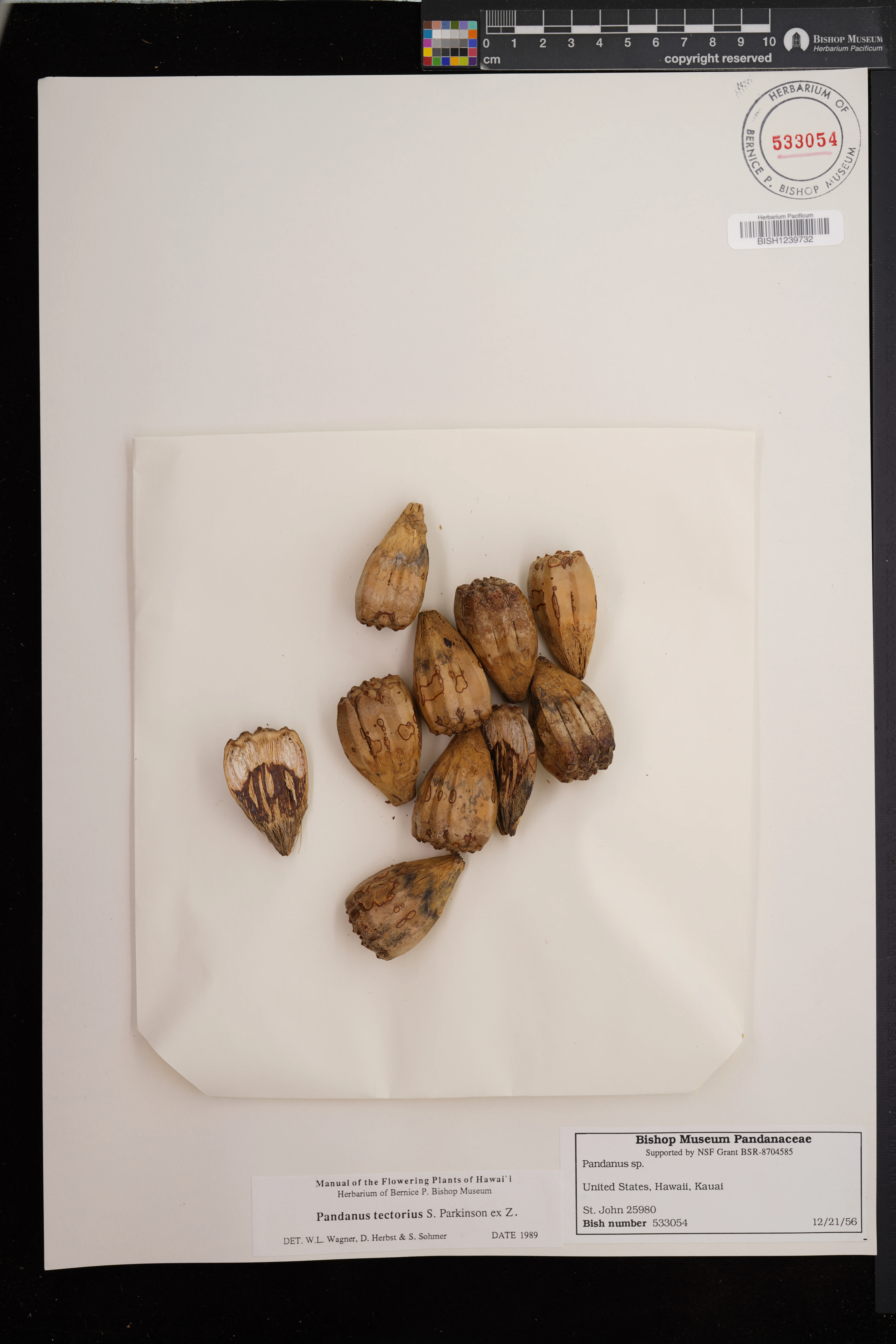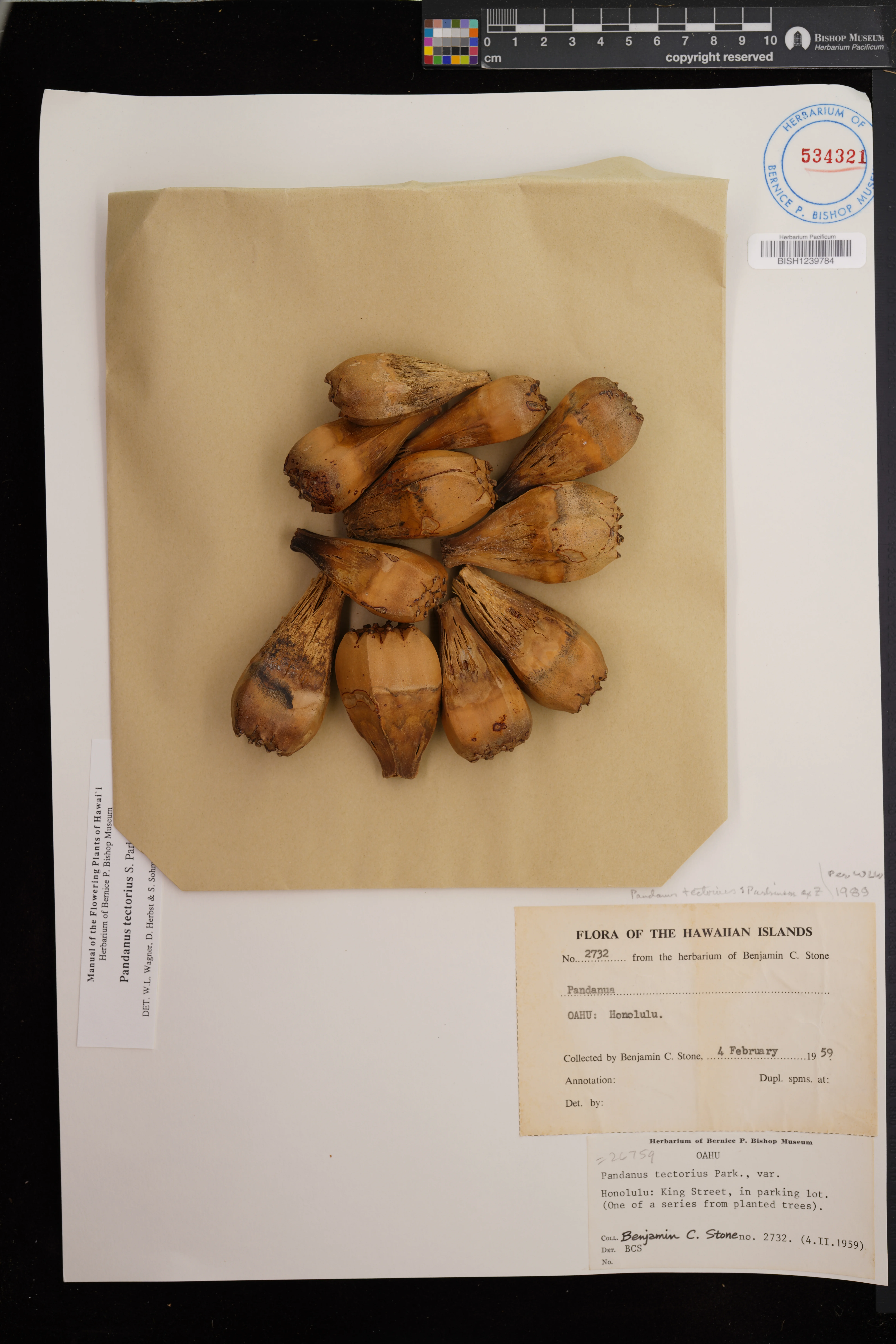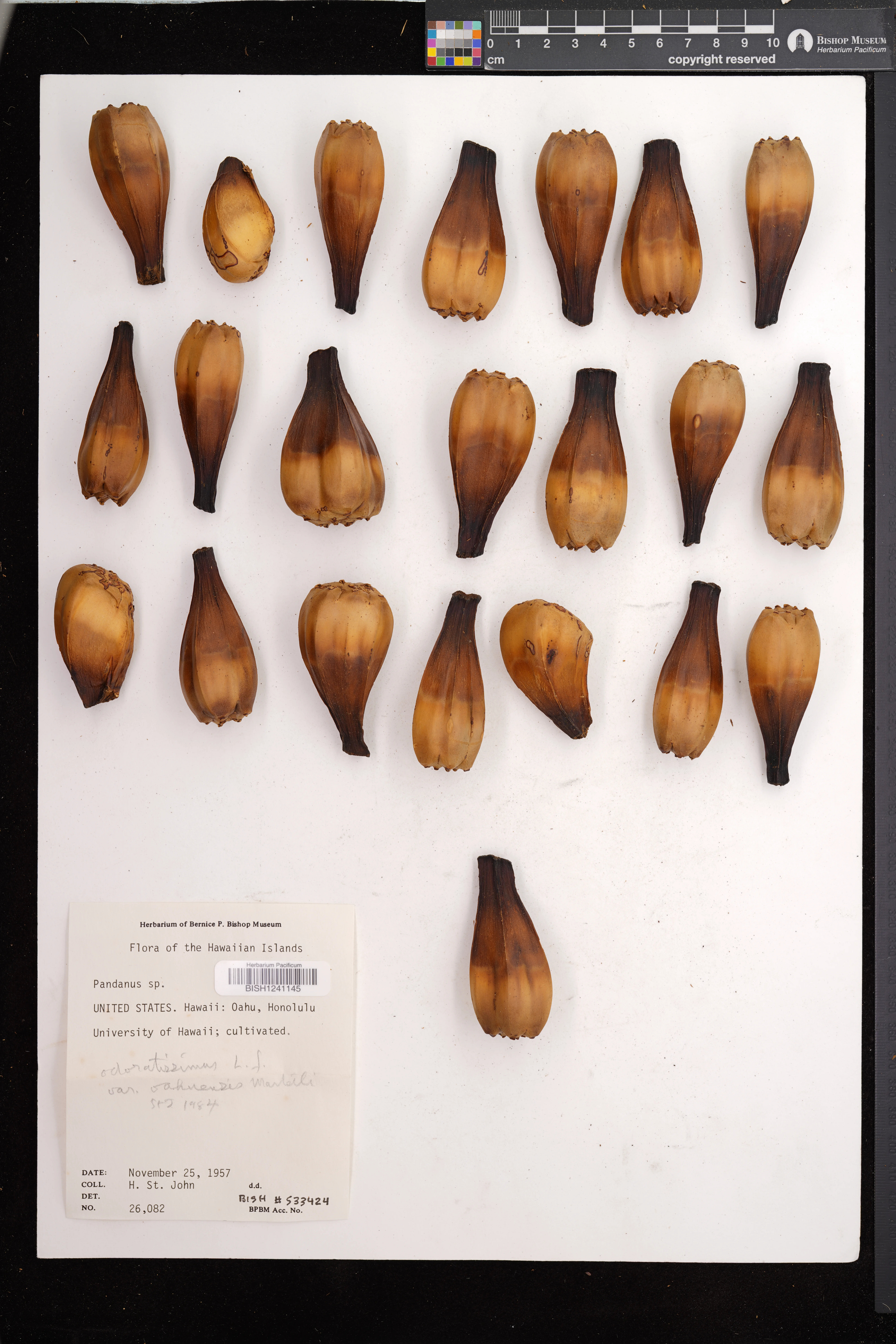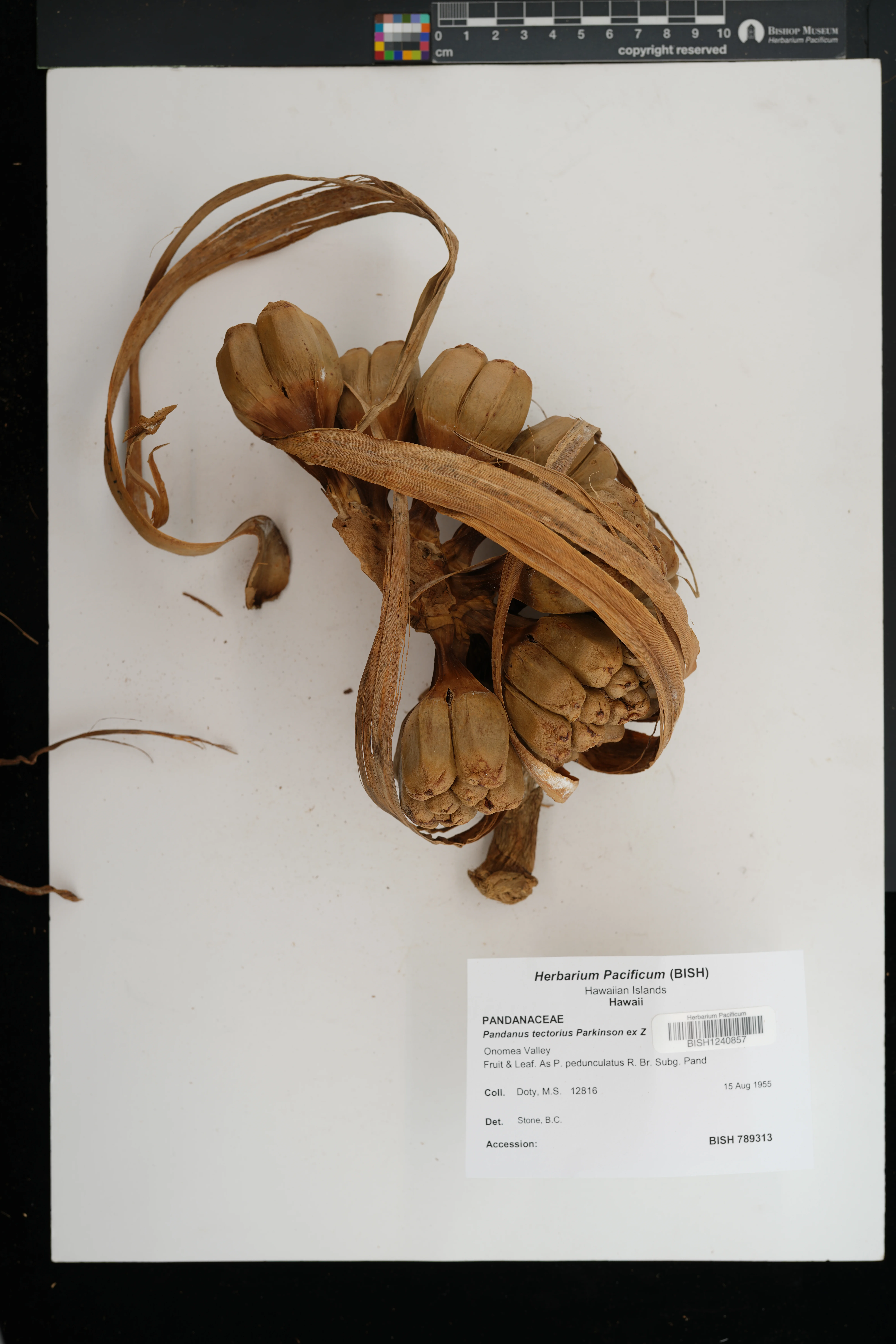 Tree 9m tall; roots spreading laterally at ground level; prop roots from 1m above ground; fruits orange at maturity; fruiting head exceptionally large |