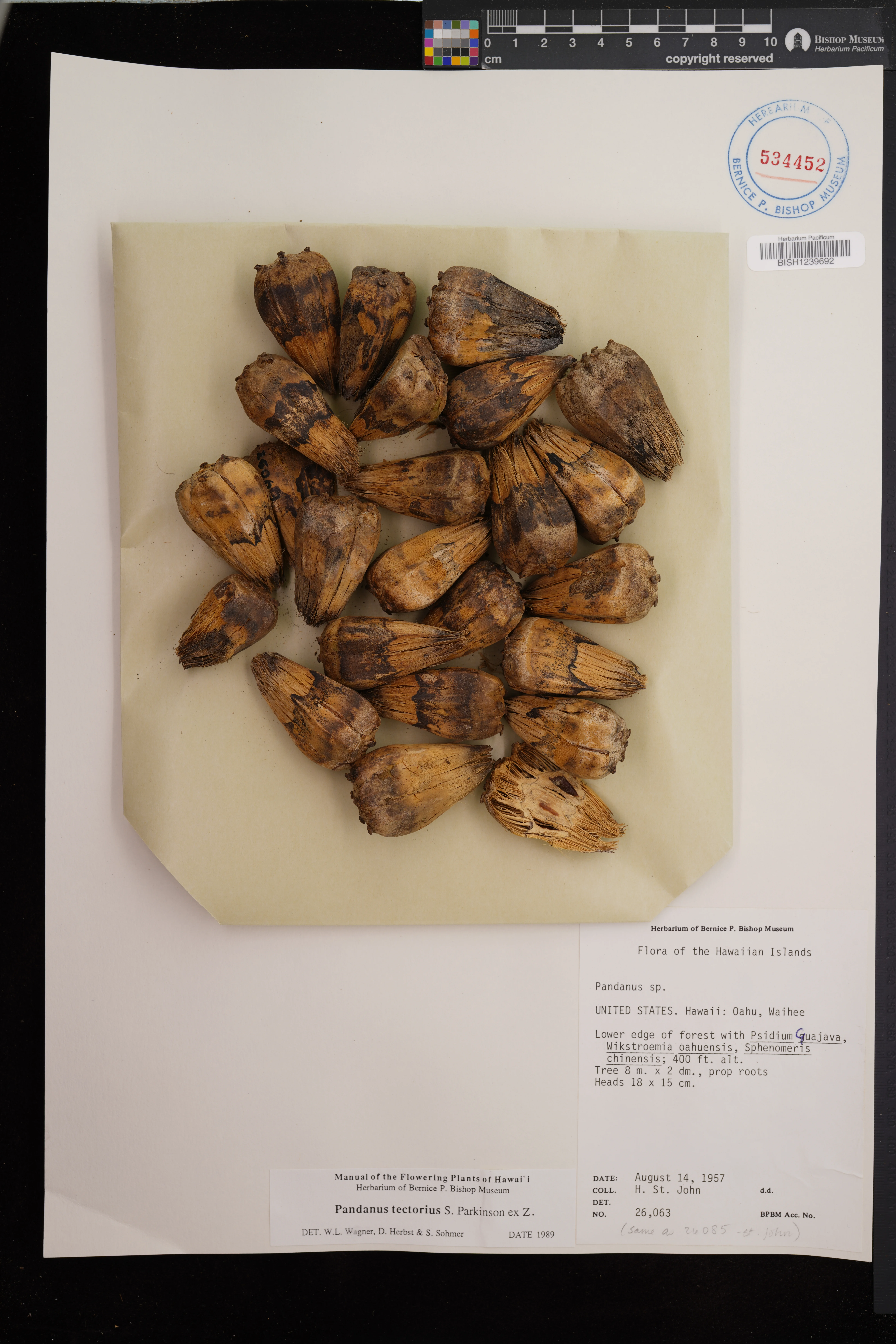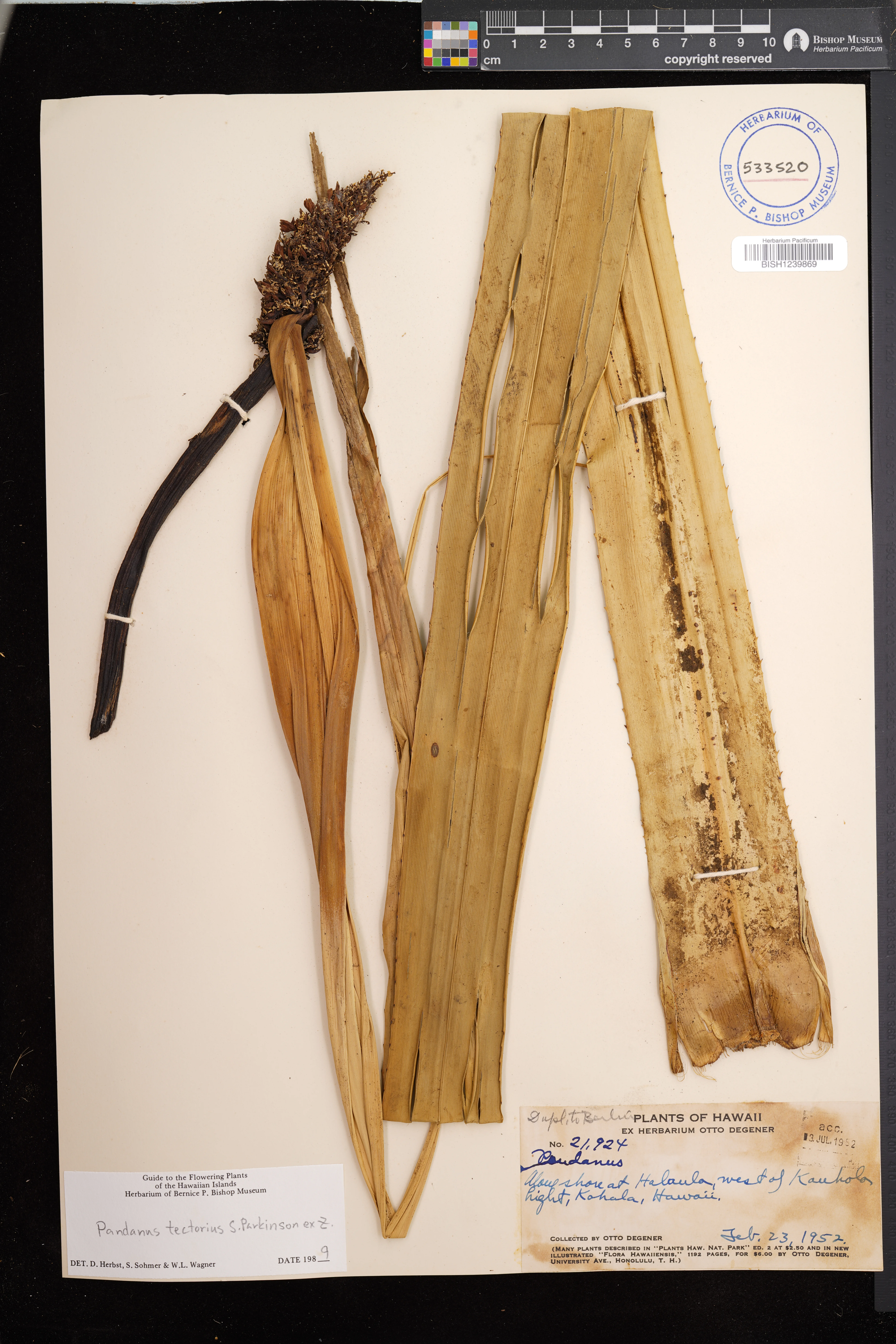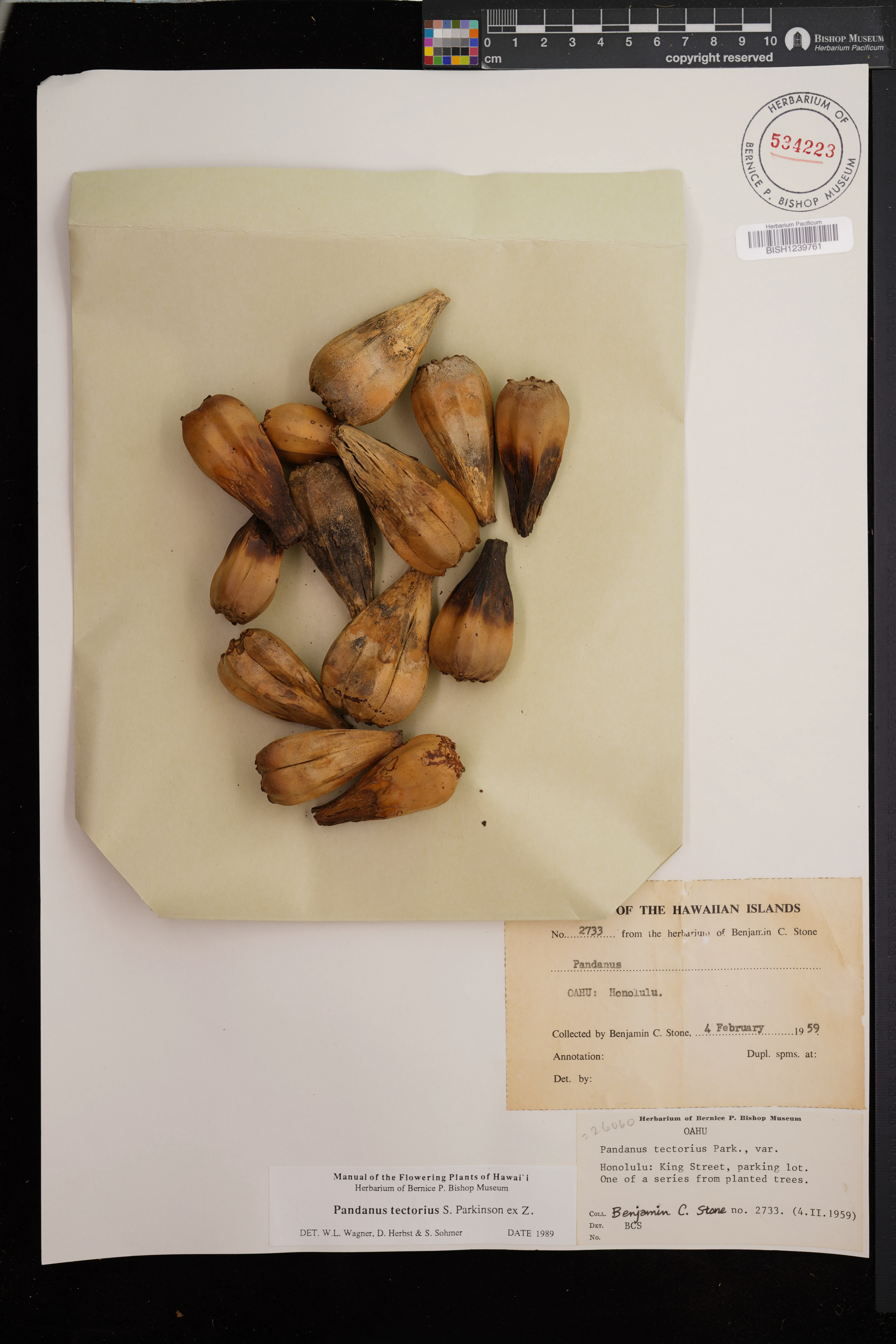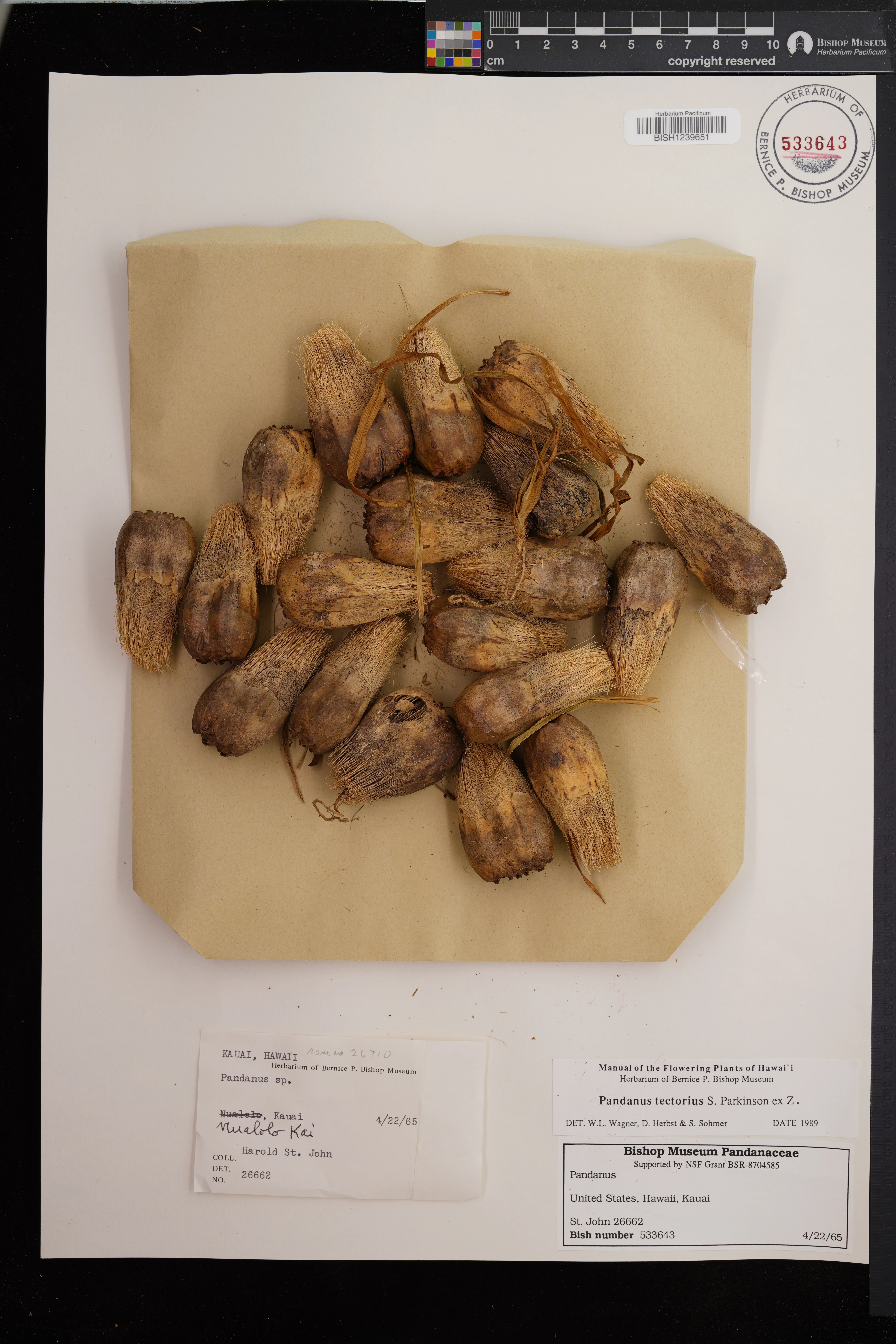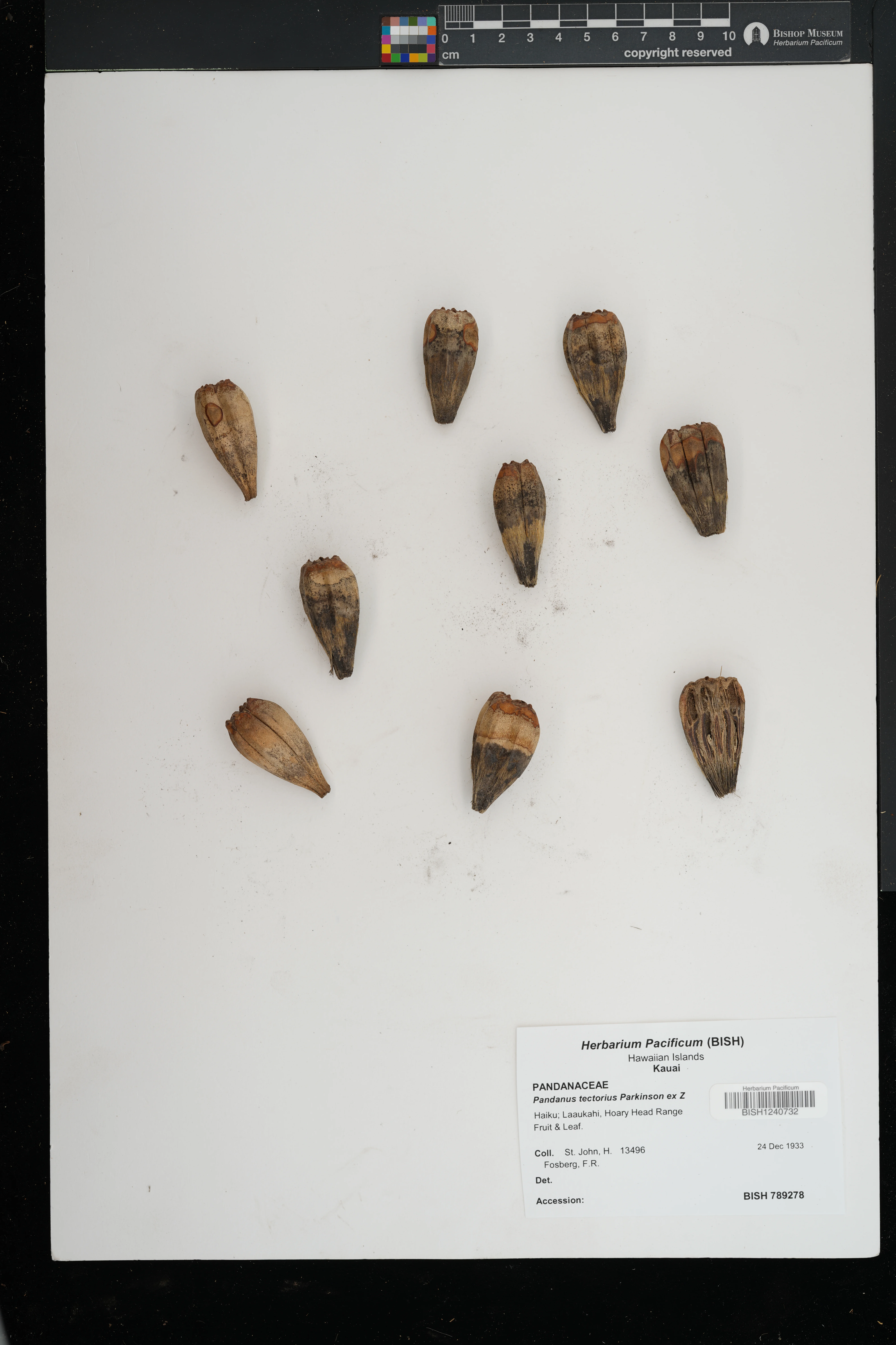 Tree 9m tall; roots spreading laterally at ground level; prop roots from 1m above ground; fruits orange at maturity; fruiting head exceptionally large |
