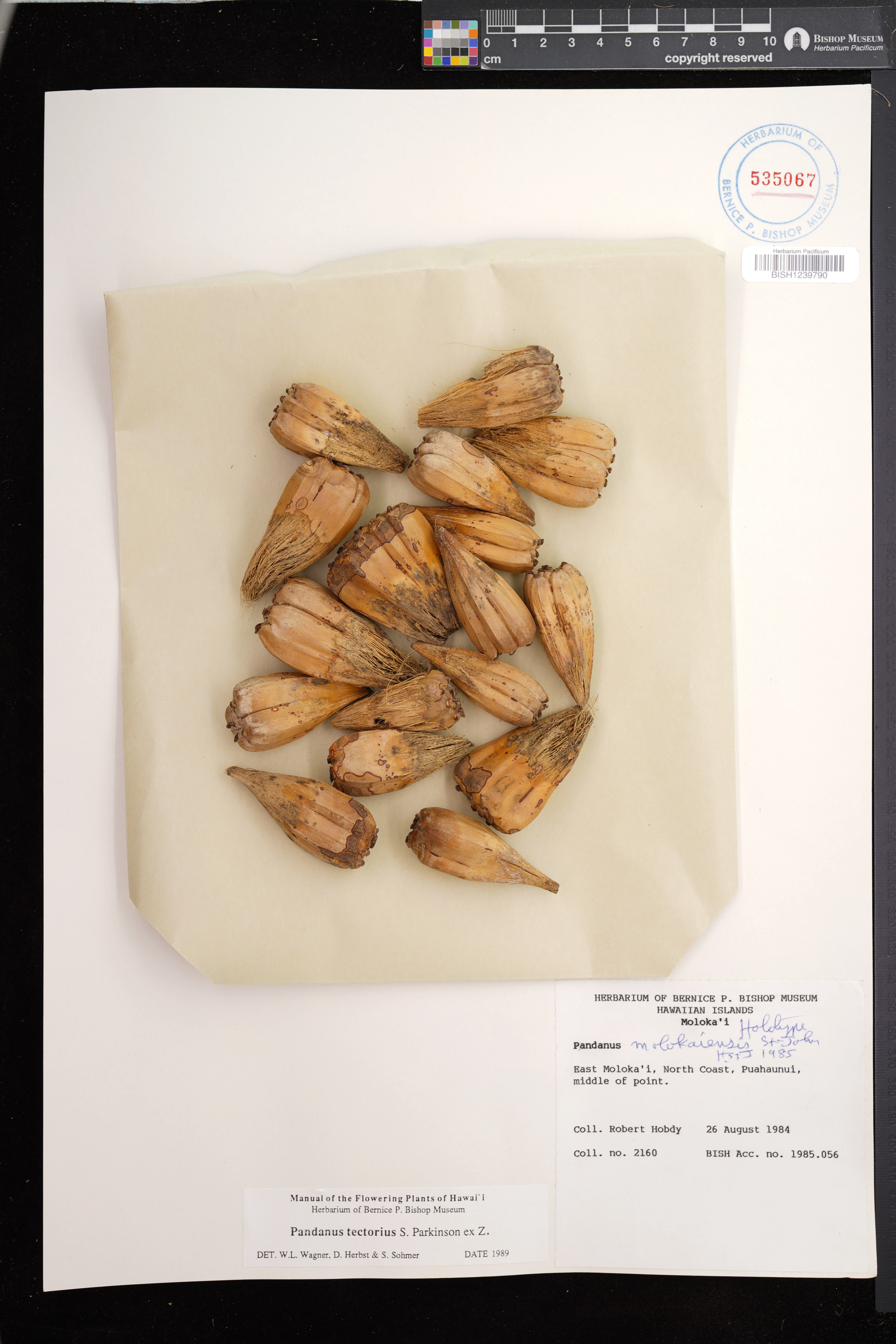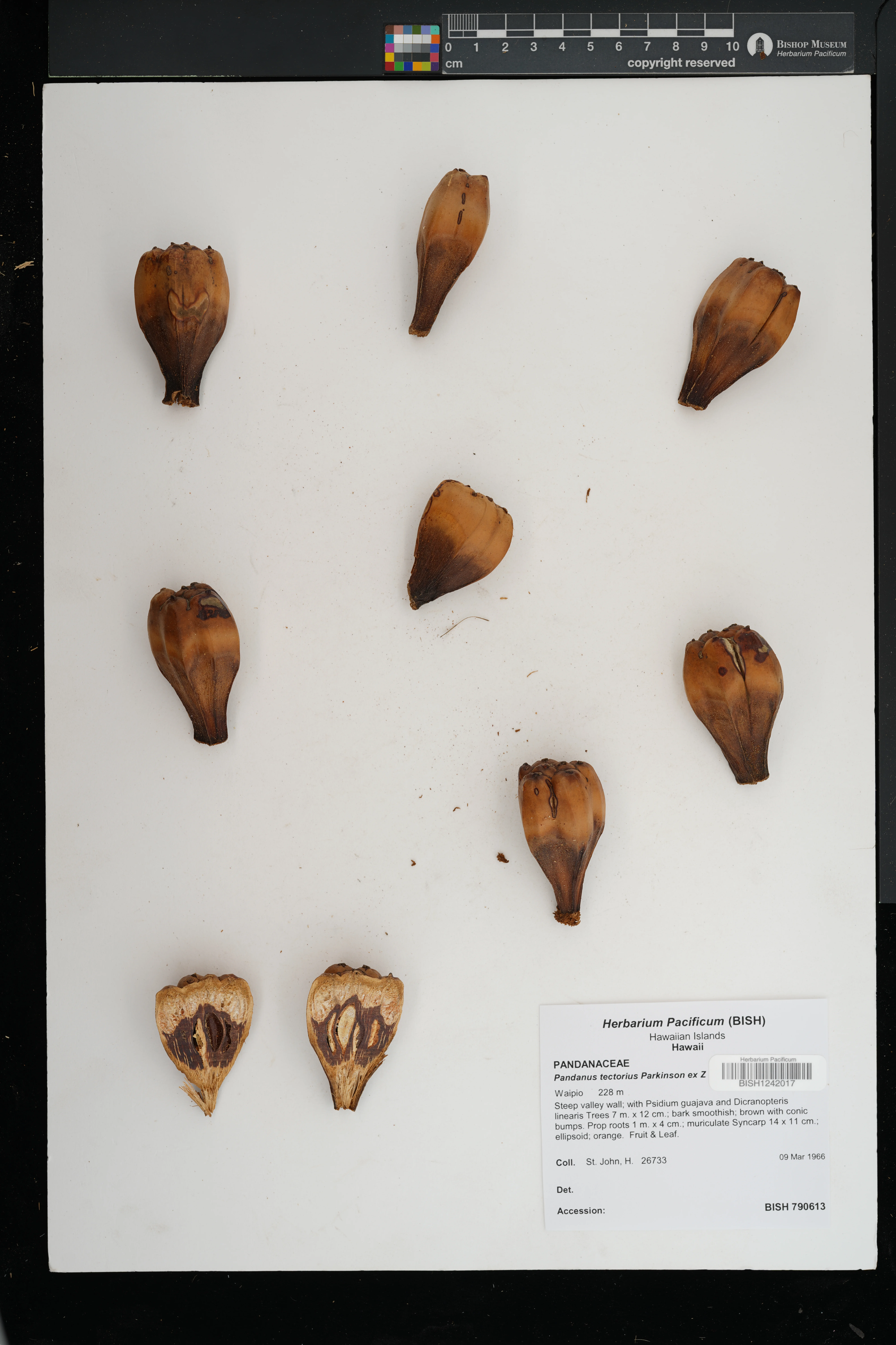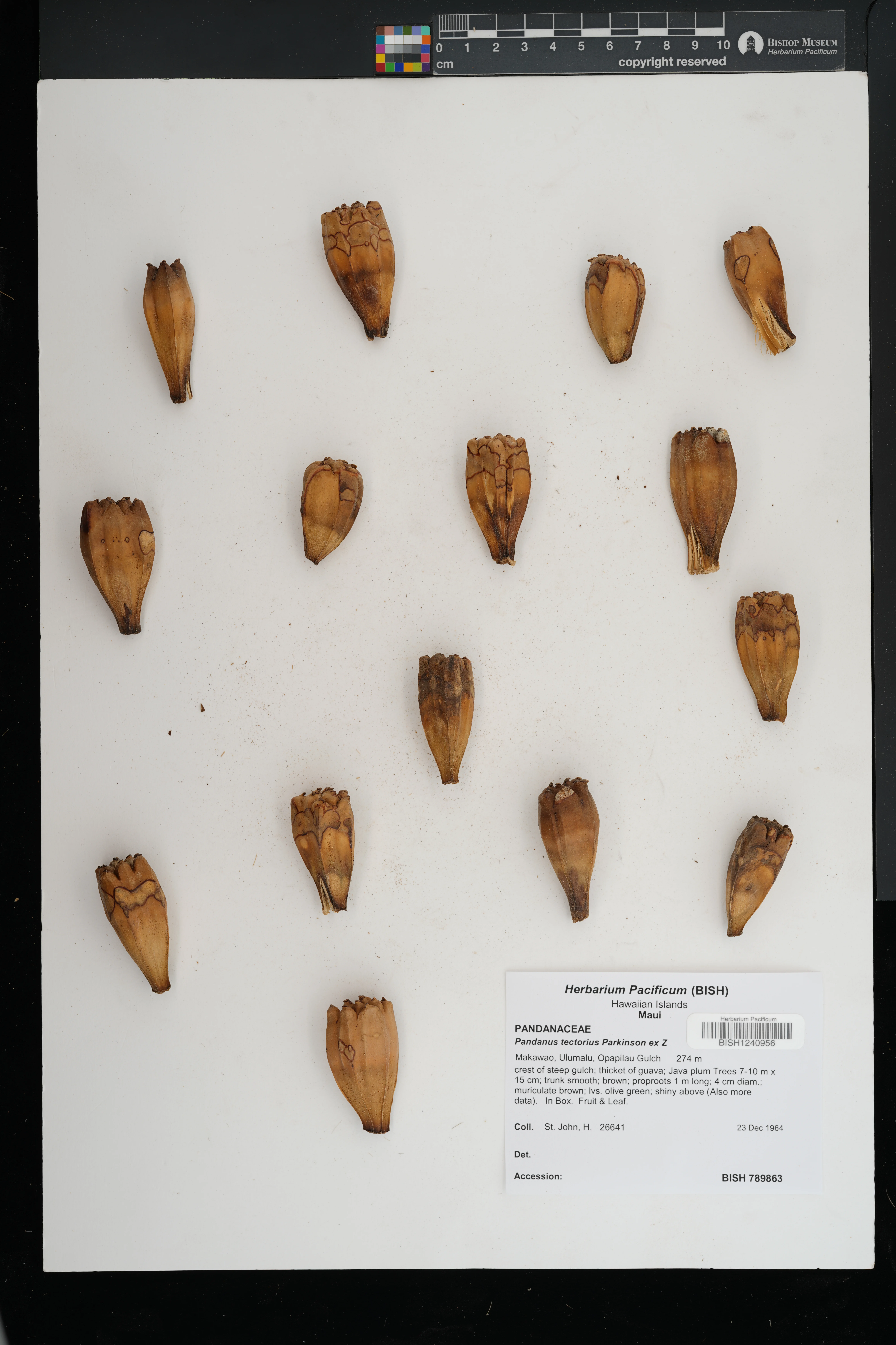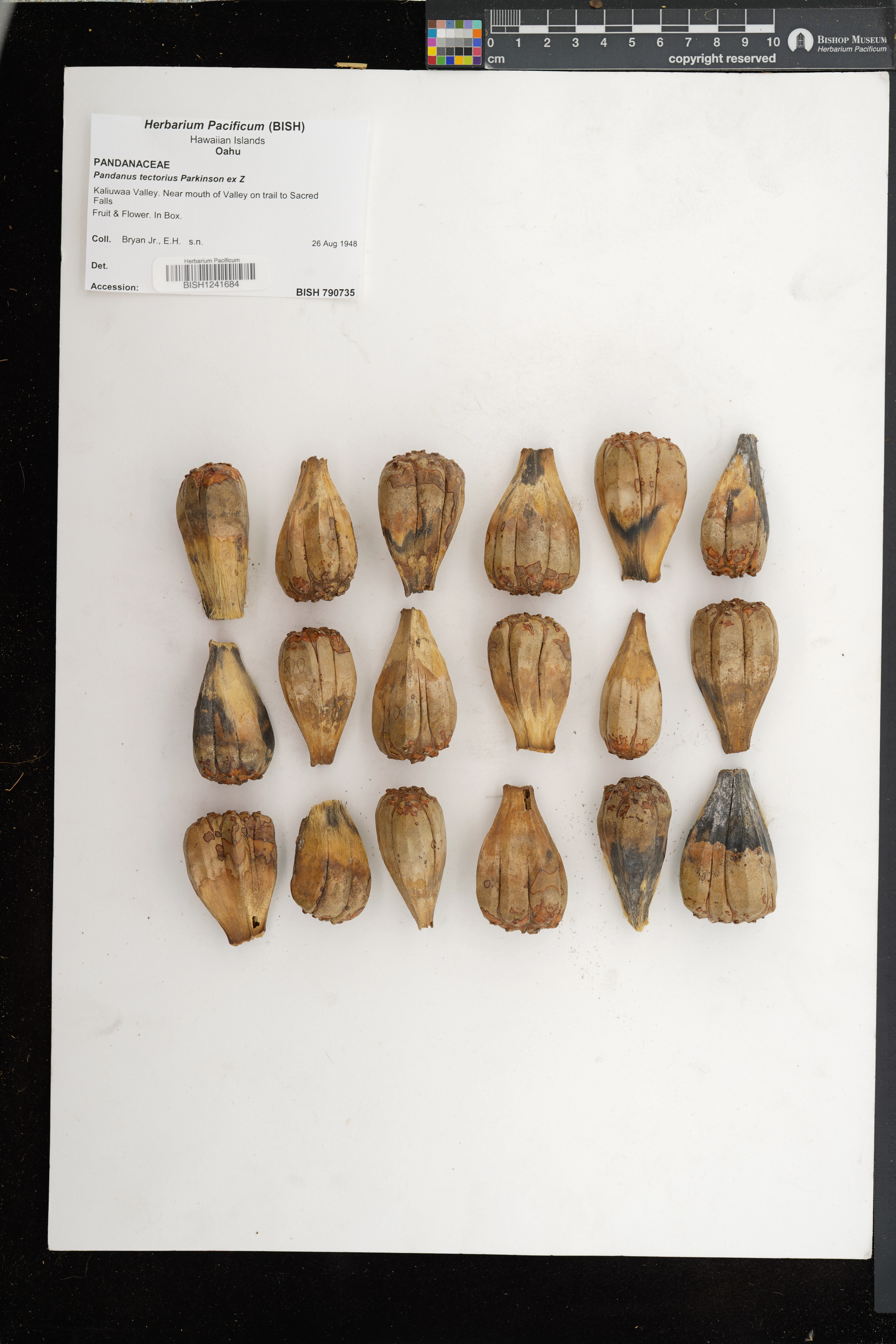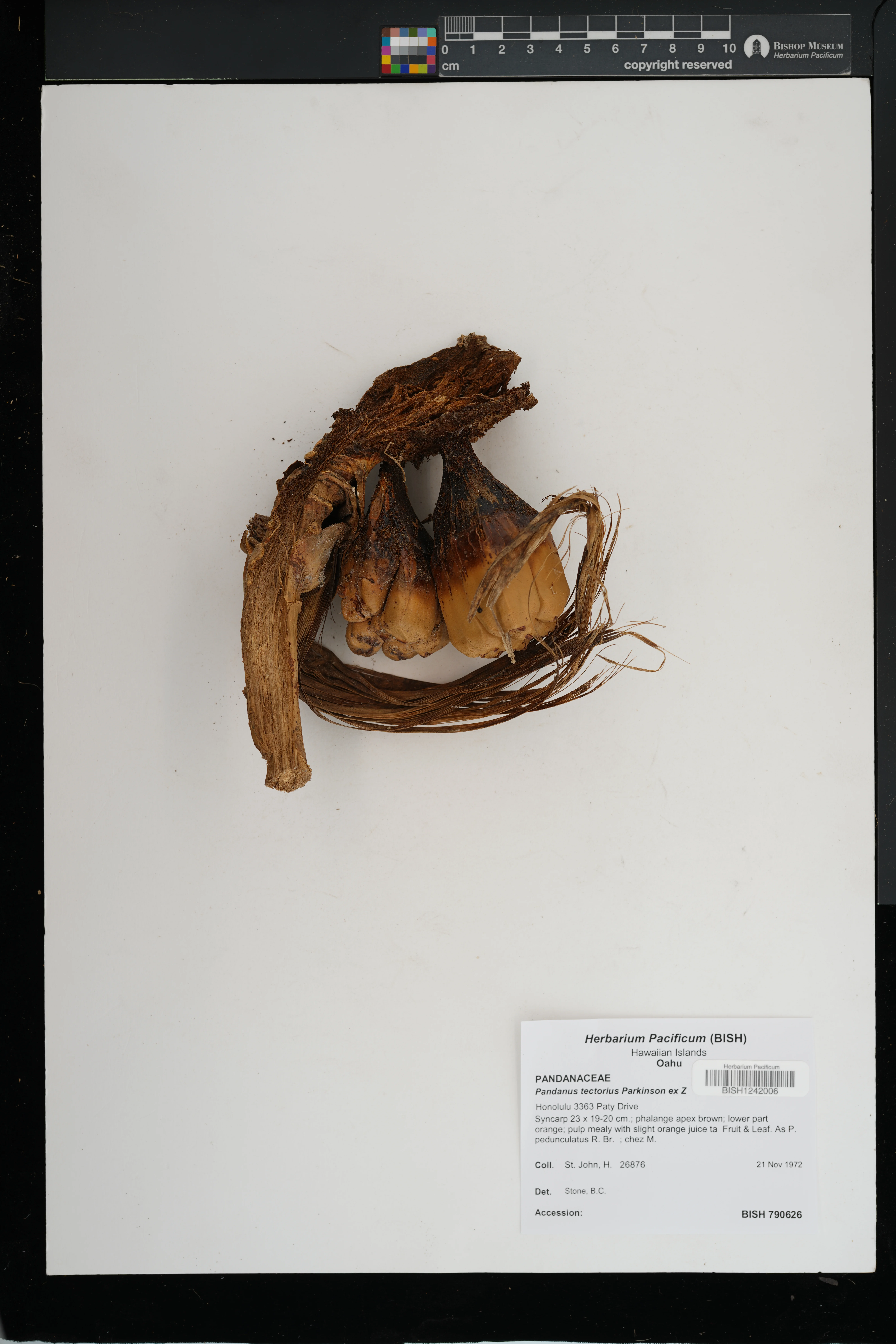 Tree 9m tall; roots spreading laterally at ground level; prop roots from 1m above ground; fruits orange at maturity; fruiting head exceptionally large |