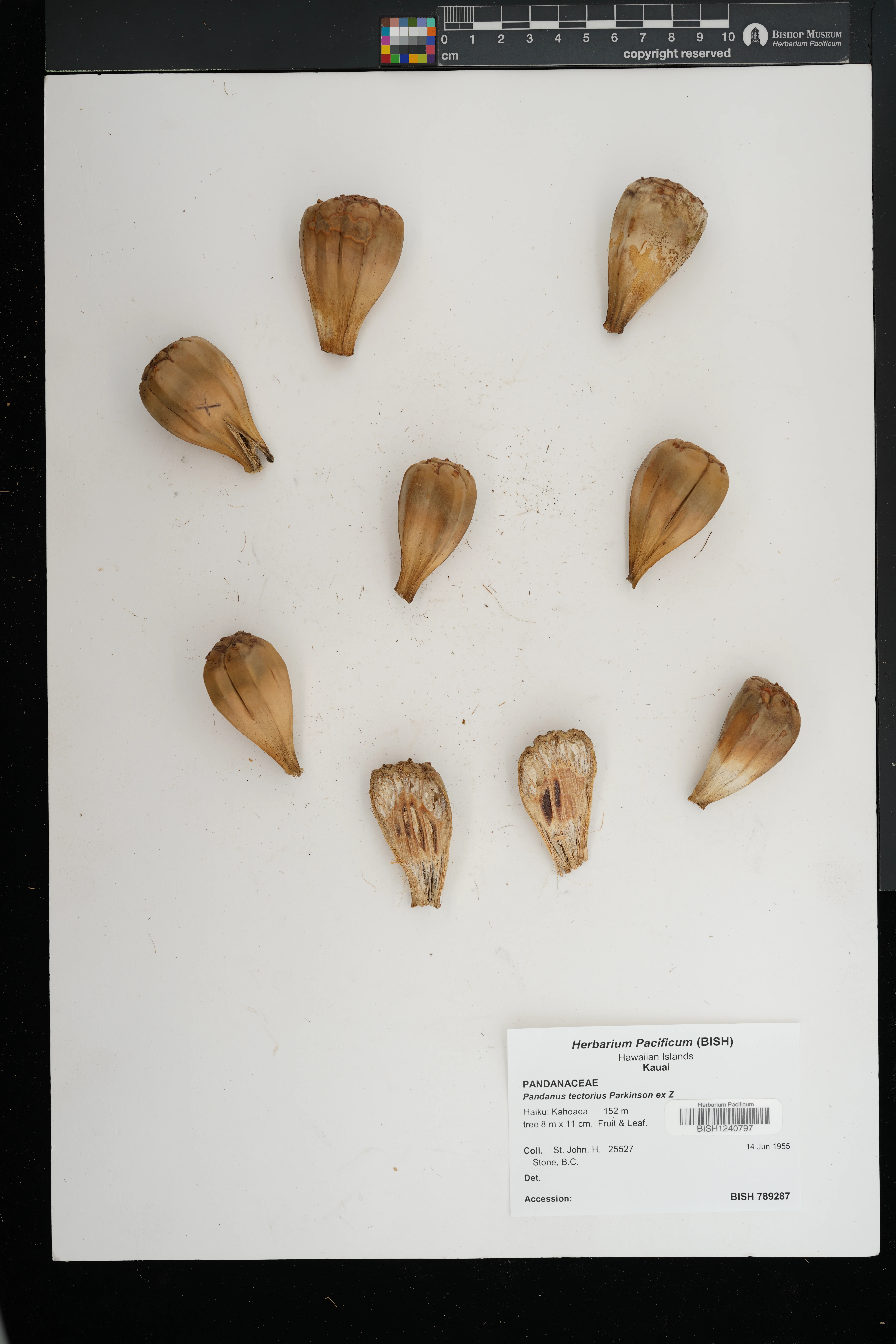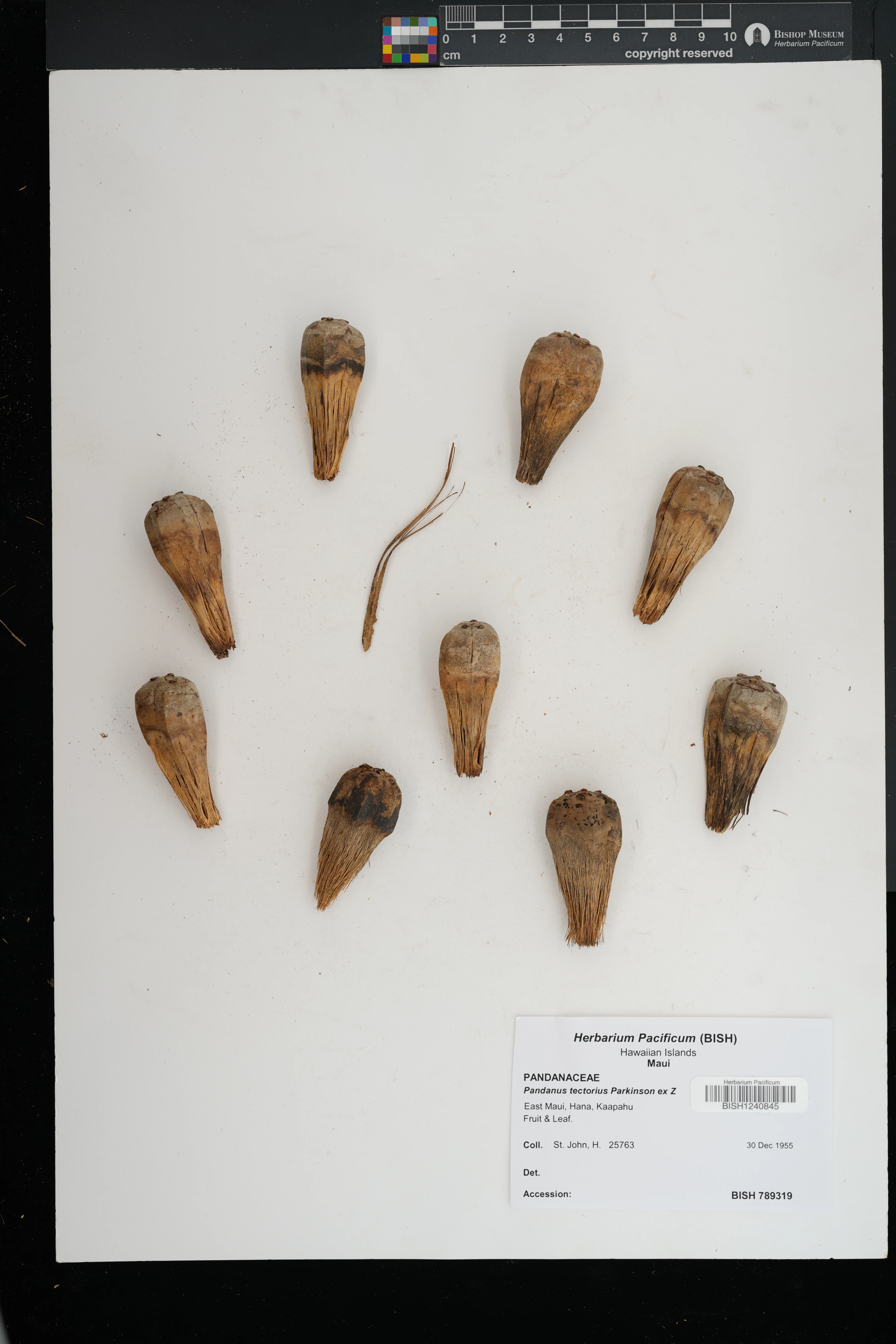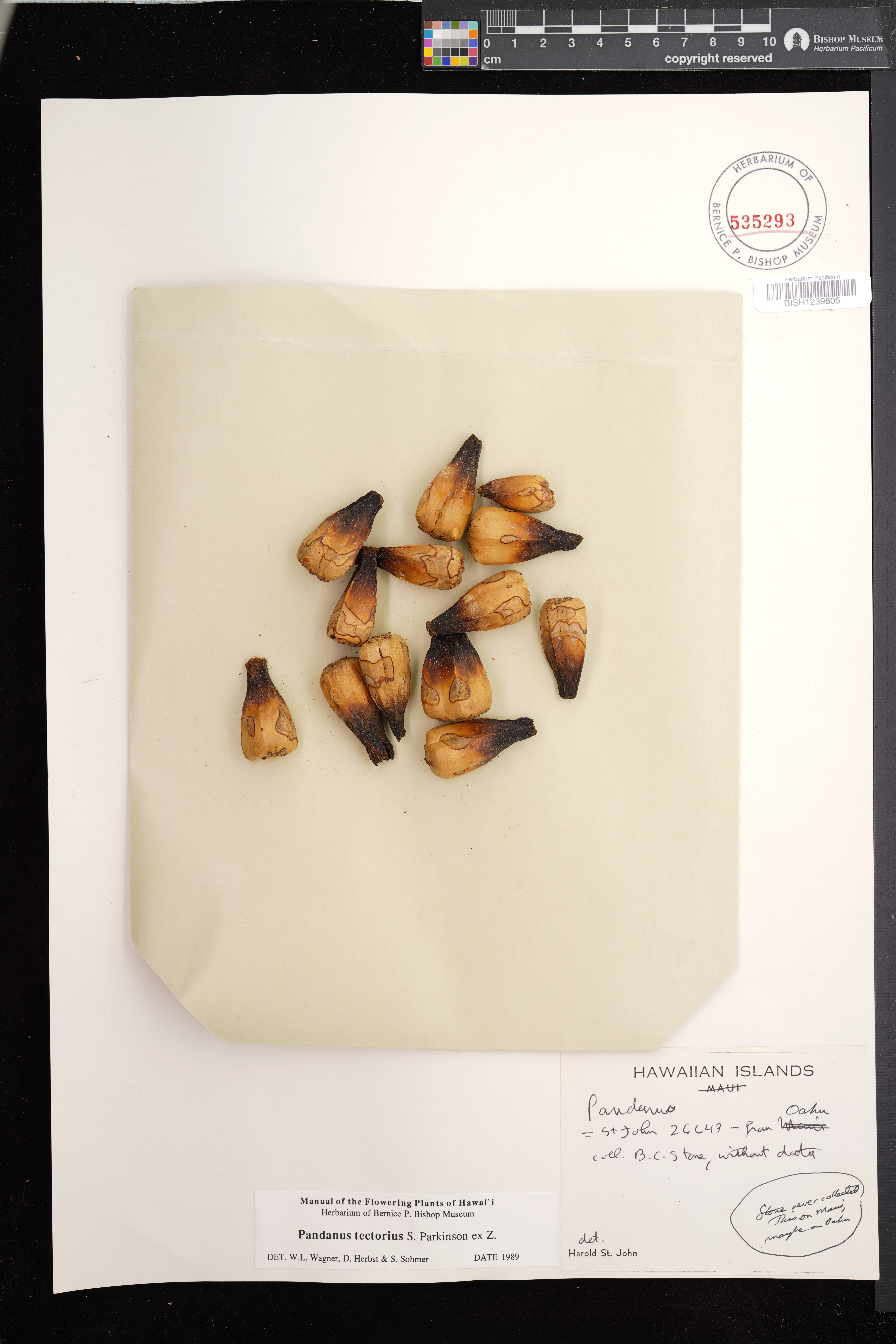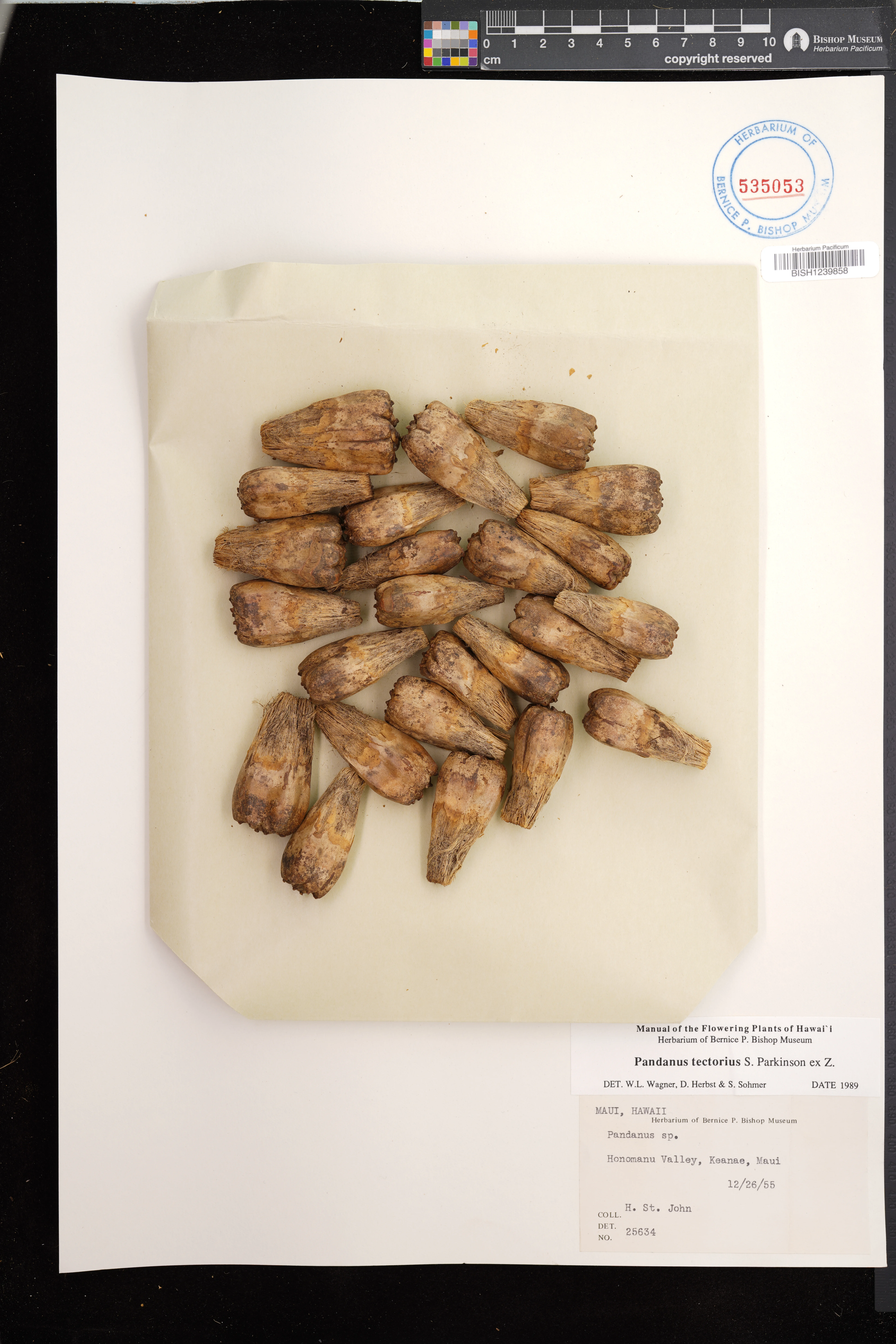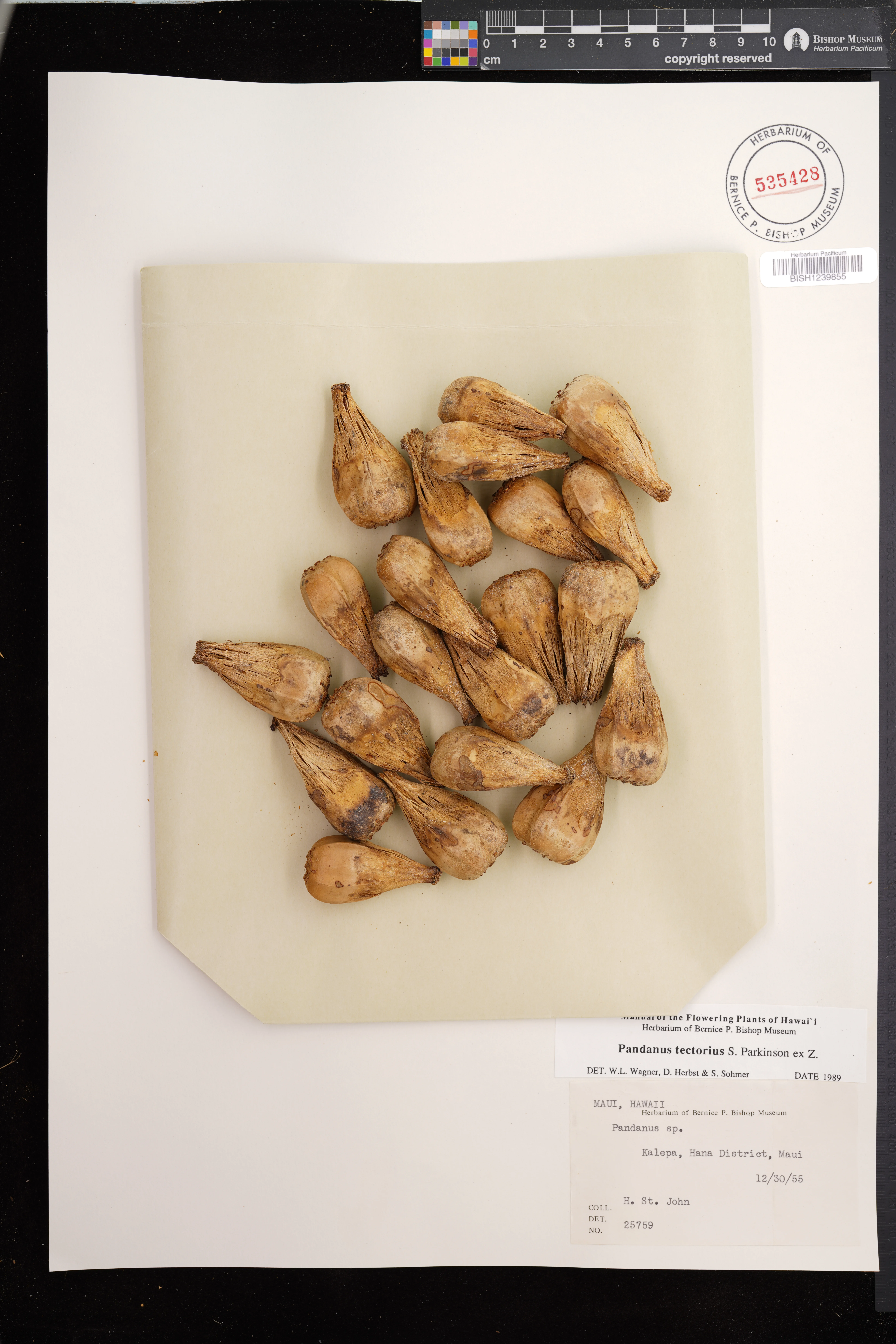Tree 9m tall; roots spreading laterally at ground level; prop roots from 1m above ground; fruits orange at maturity; fruiting head exceptionally large |