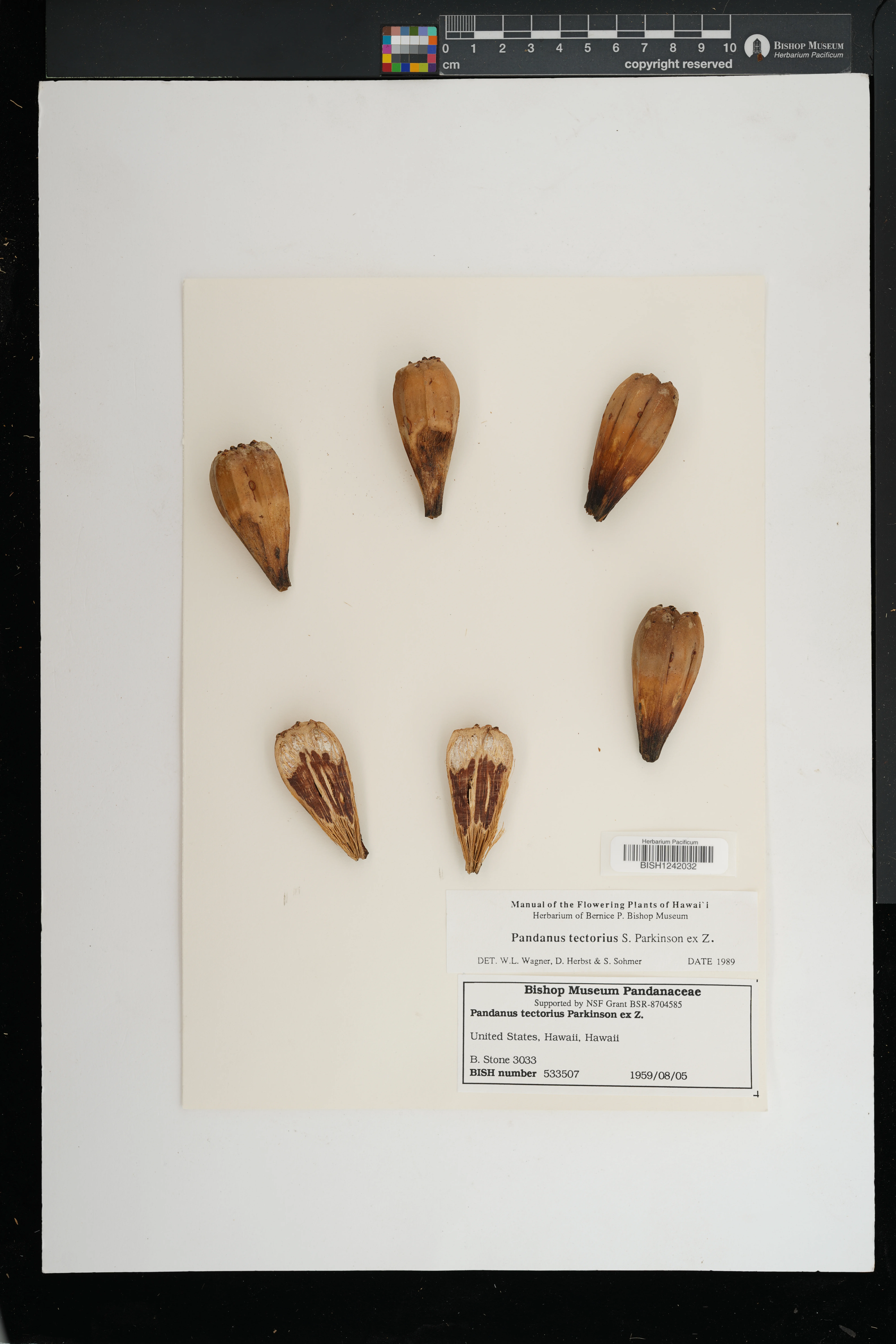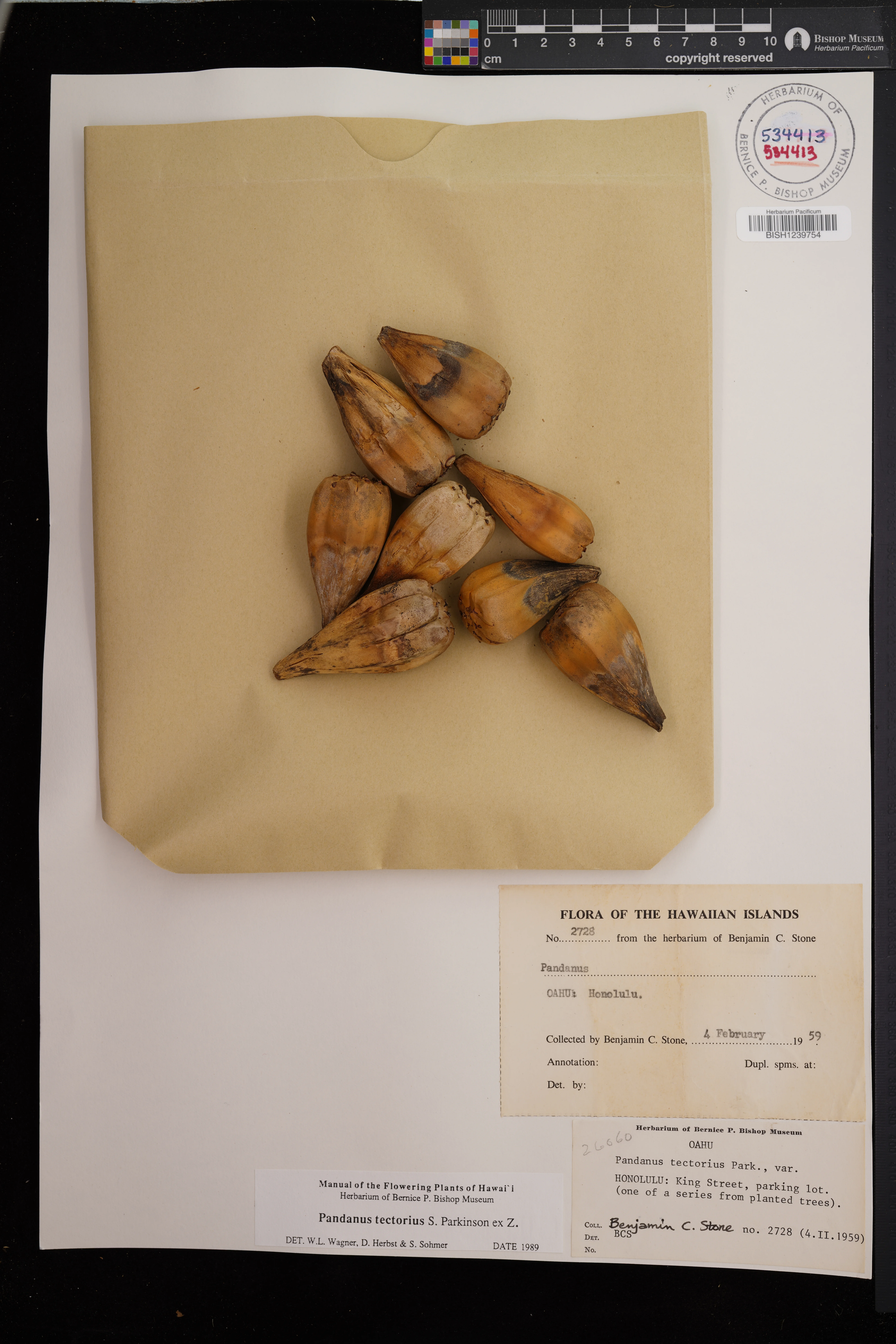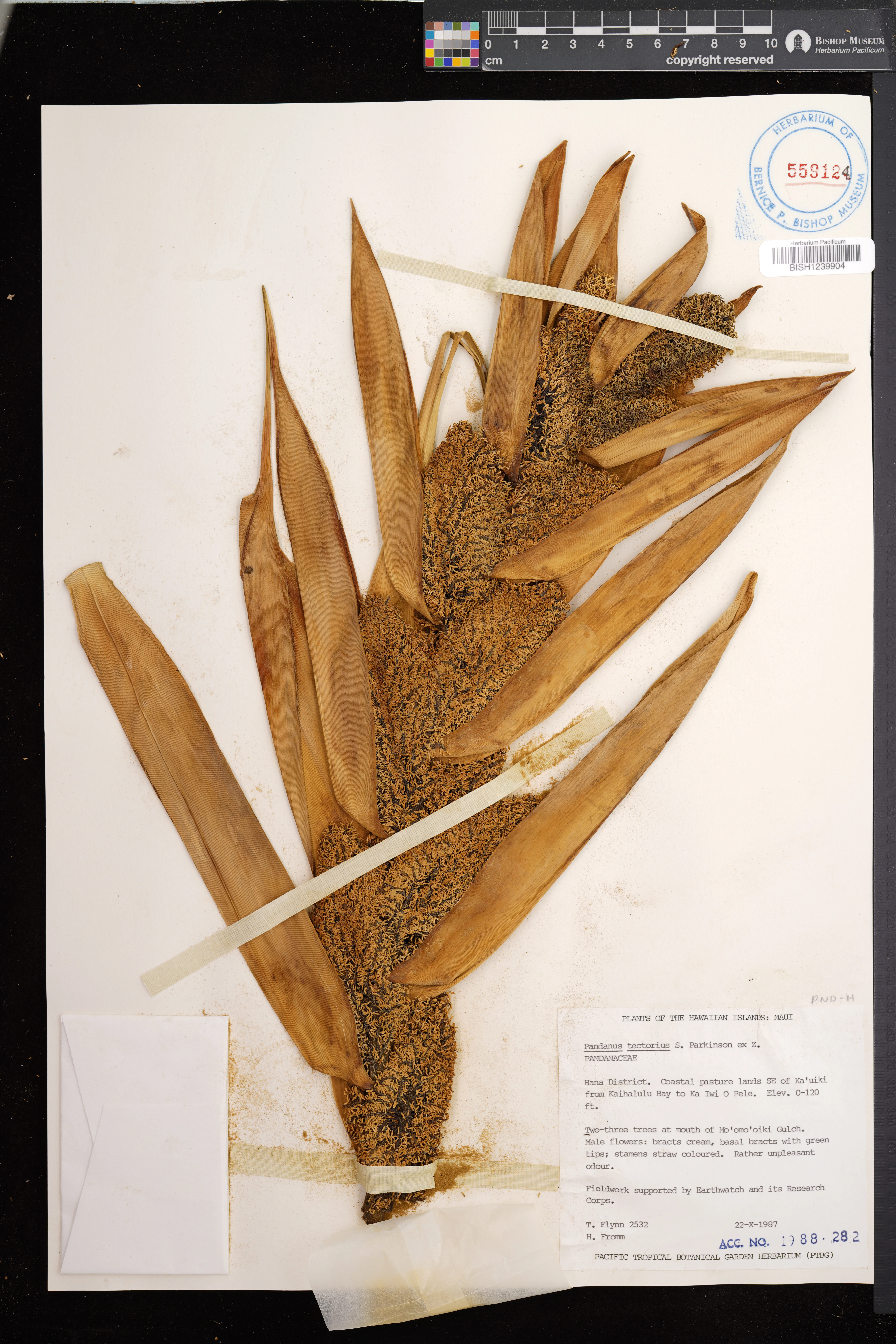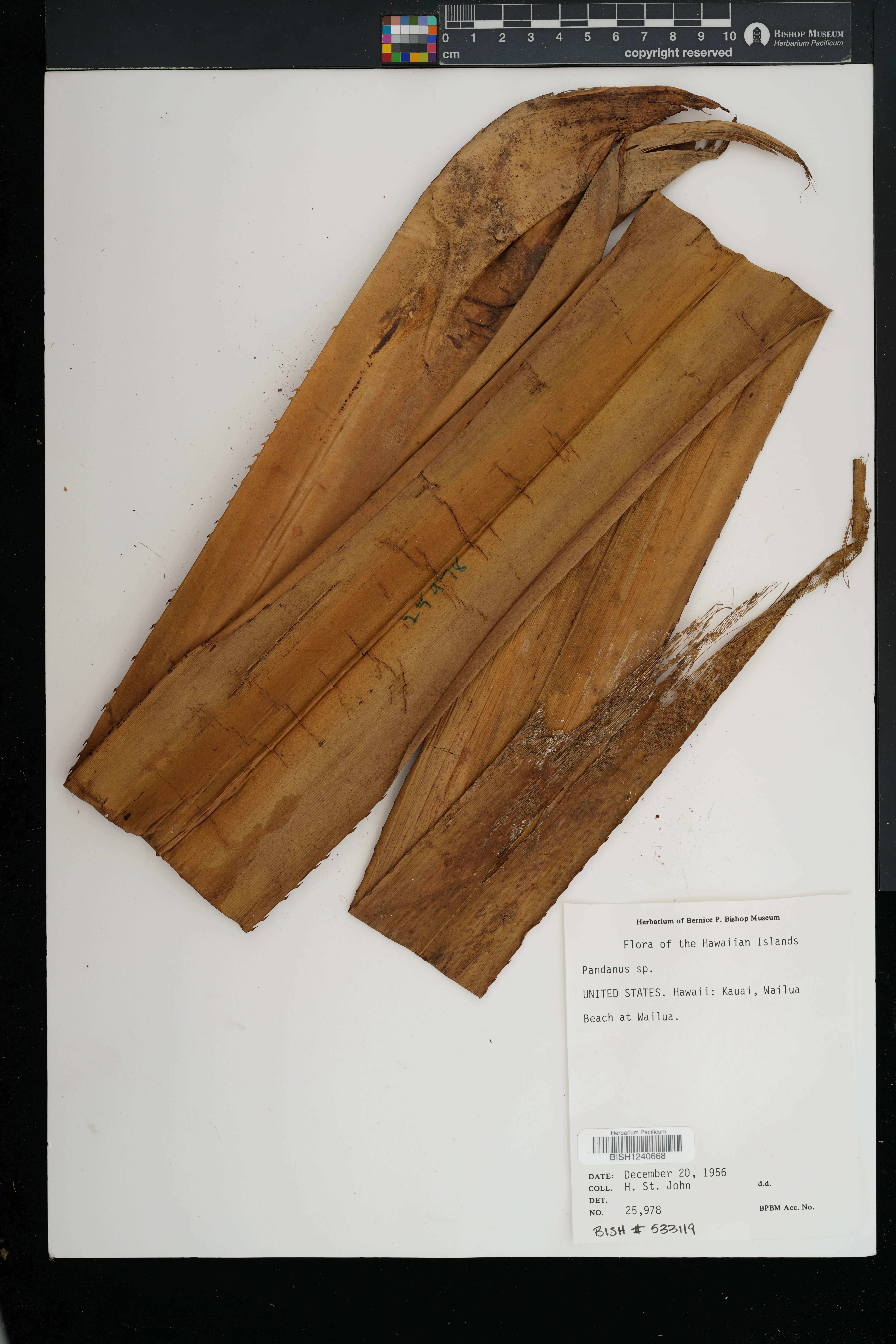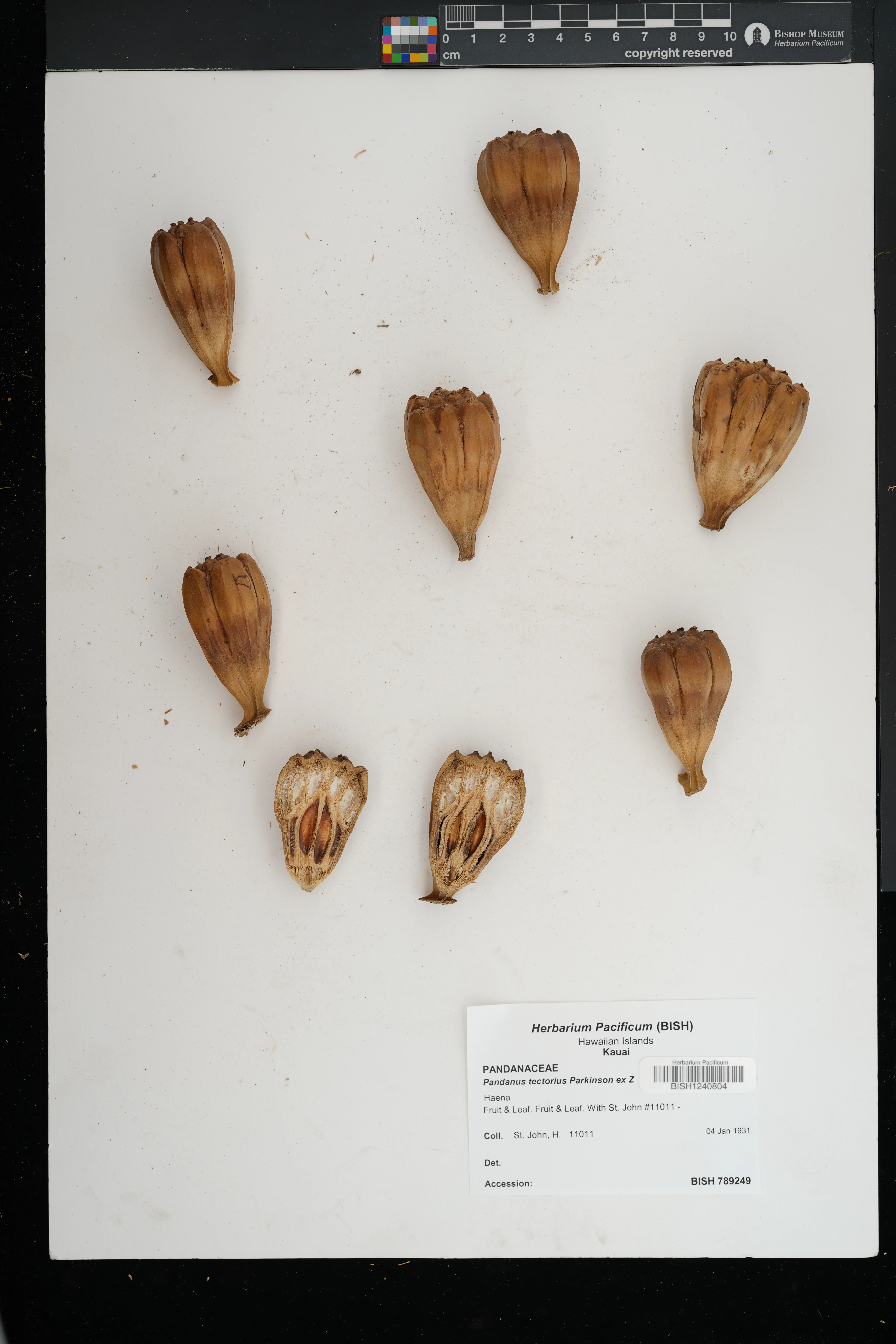 Tree 9m tall; roots spreading laterally at ground level; prop roots from 1m above ground; fruits orange at maturity; fruiting head exceptionally large |