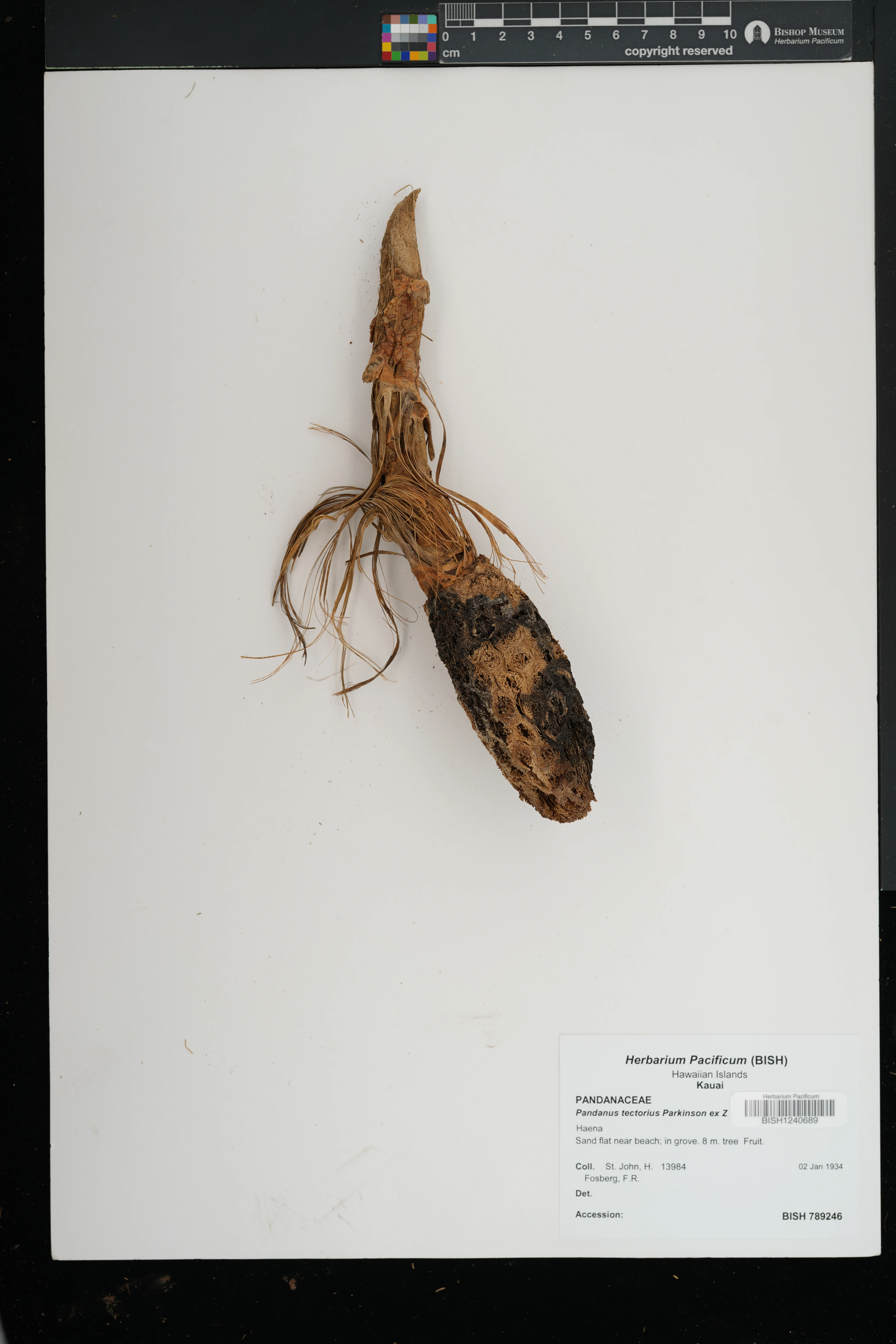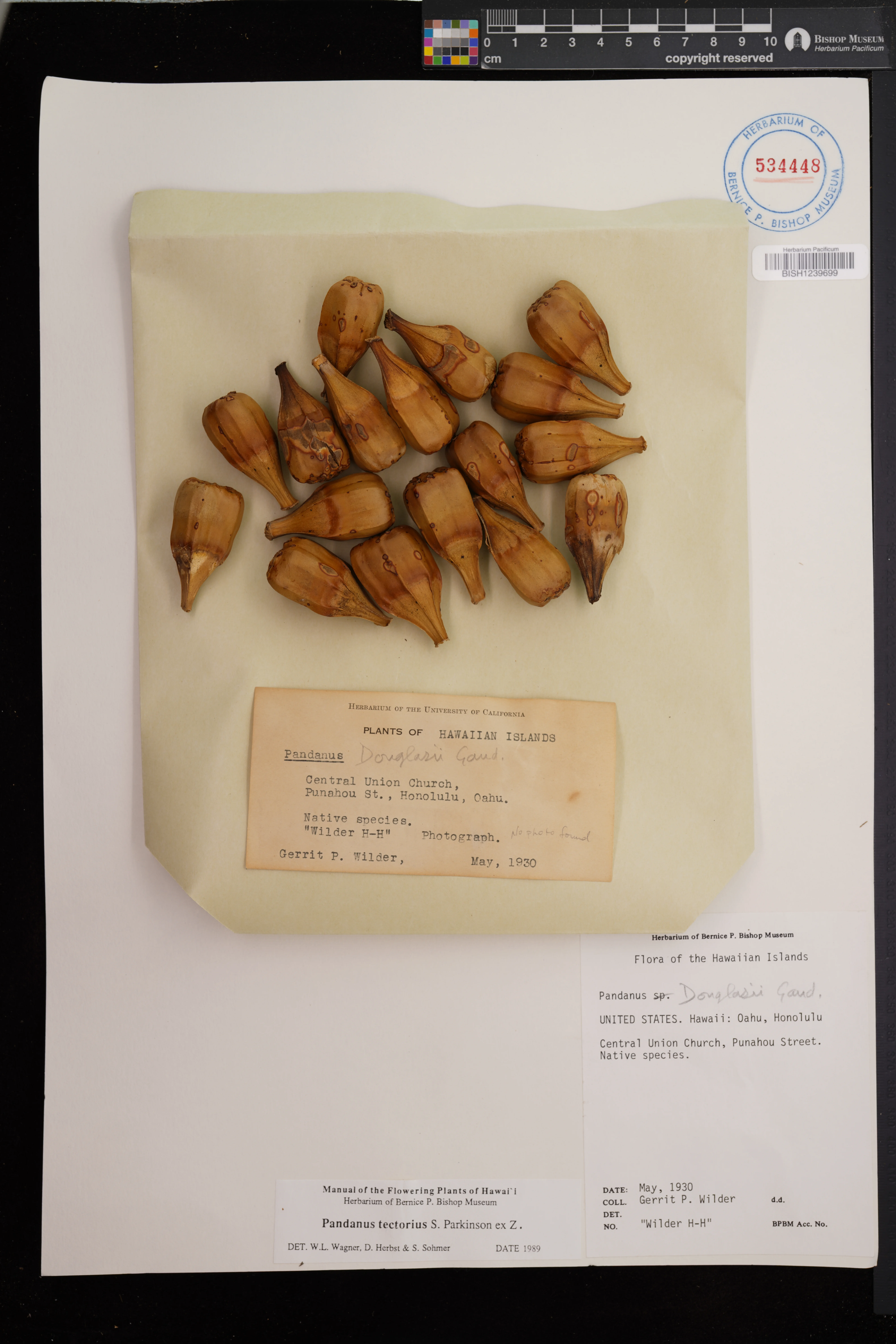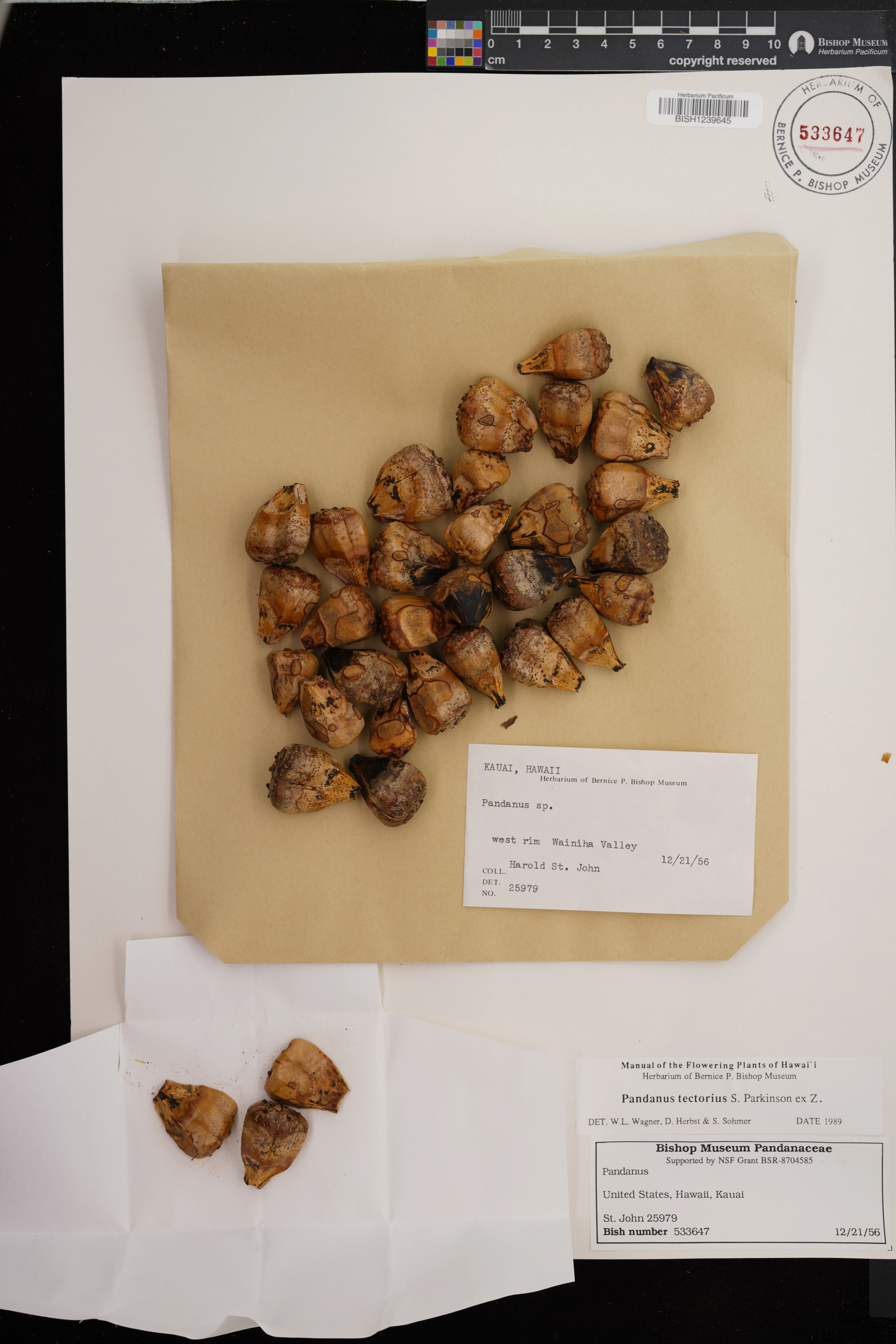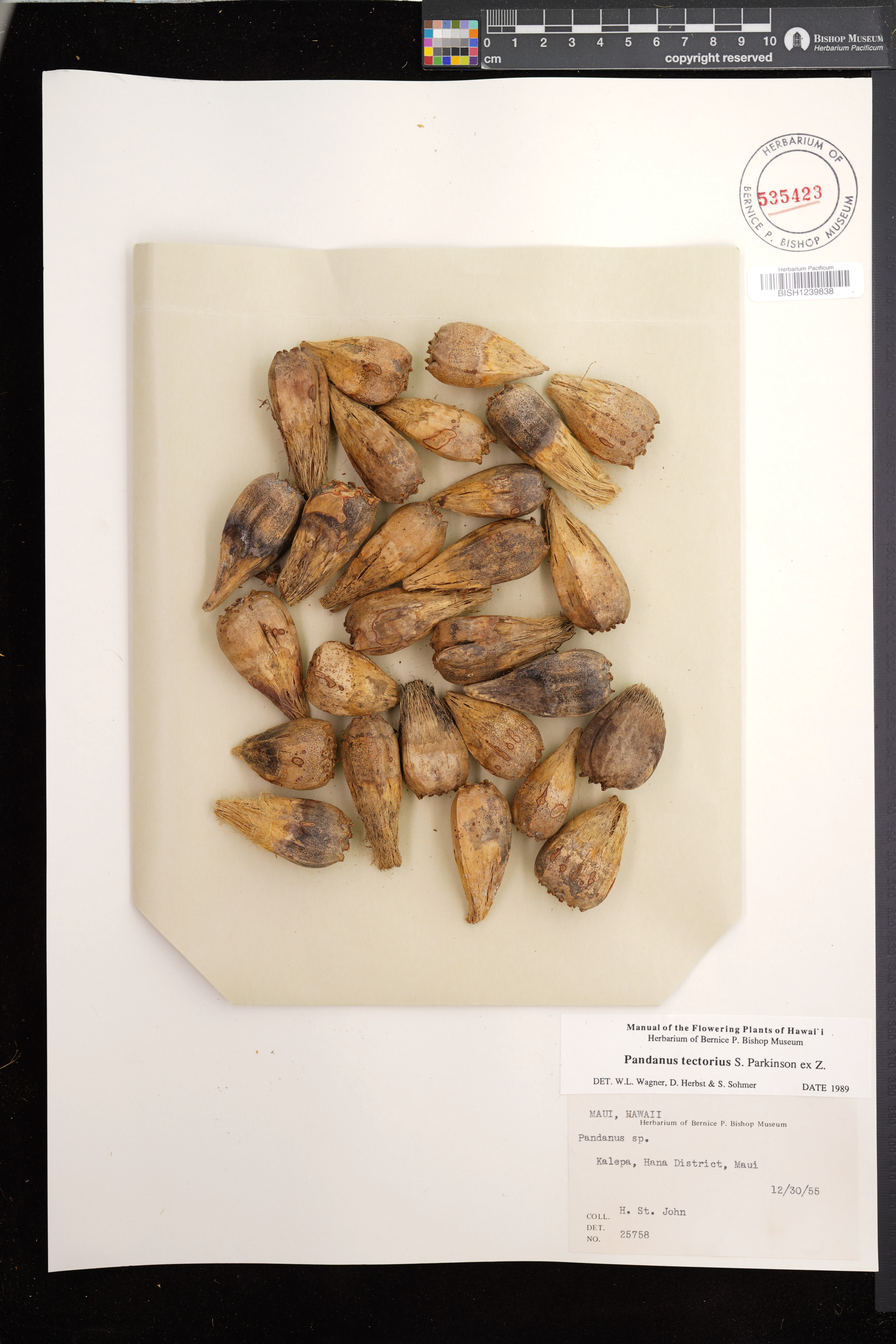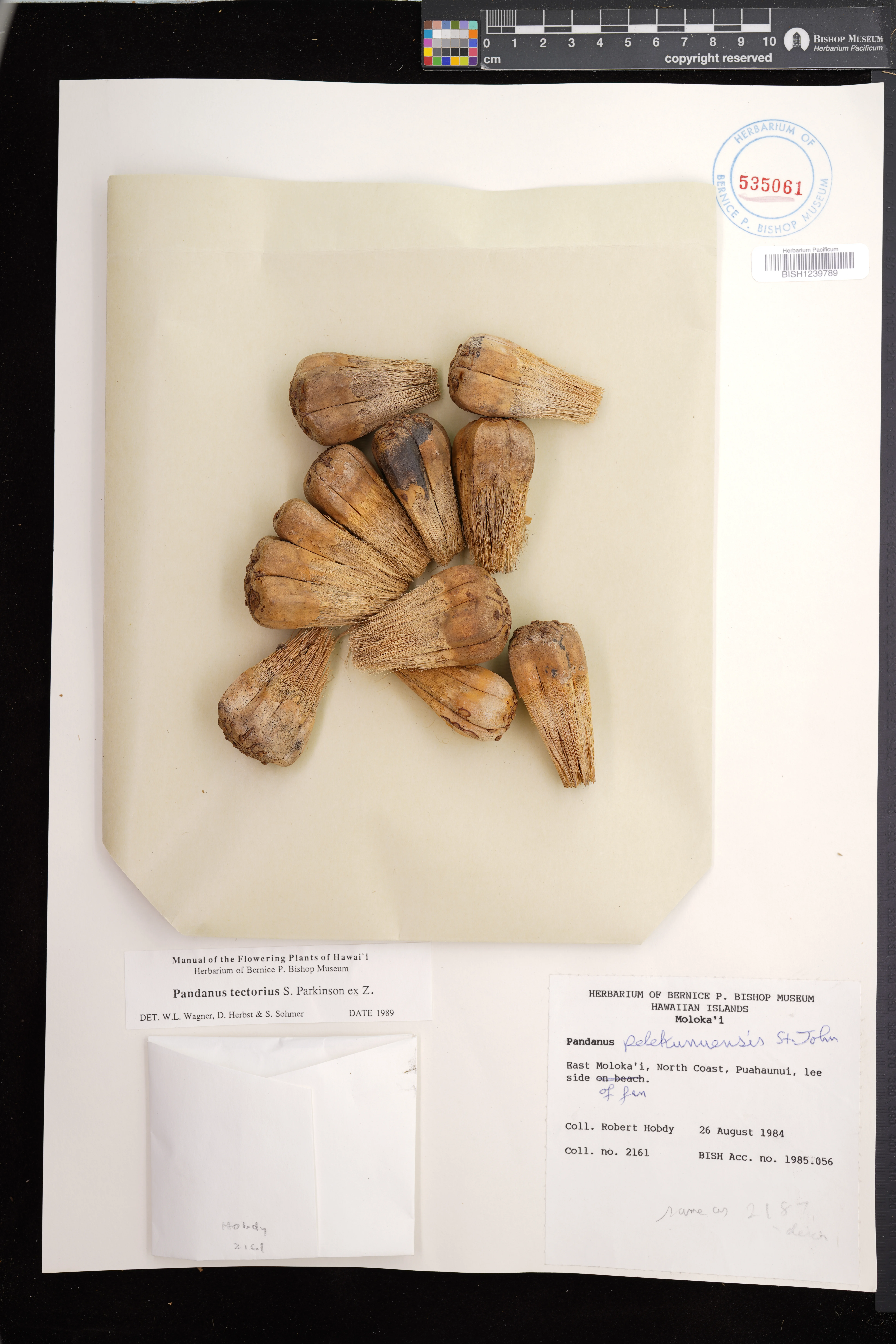 Tree 9m tall; roots spreading laterally at ground level; prop roots from 1m above ground; fruits orange at maturity; fruiting head exceptionally large |