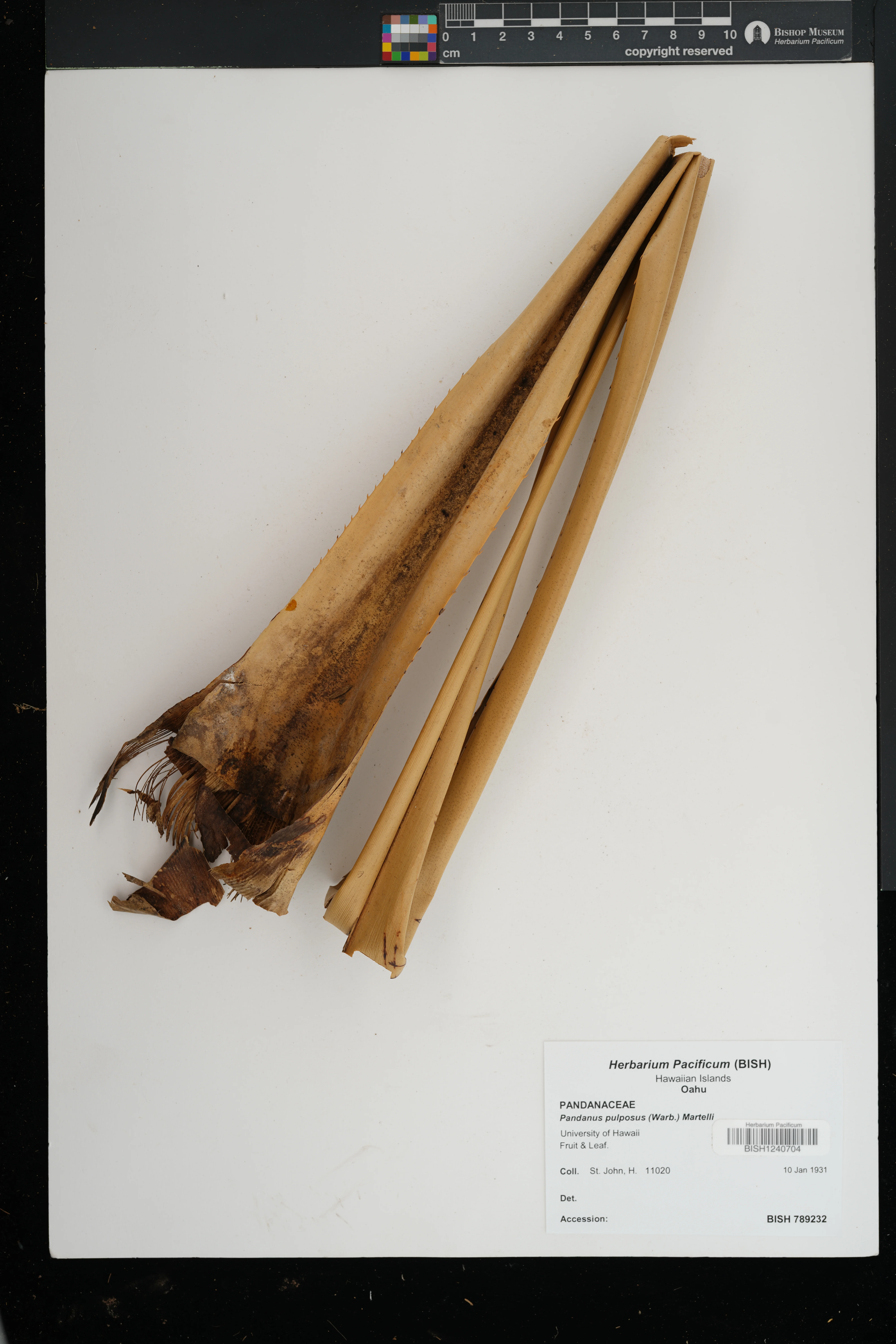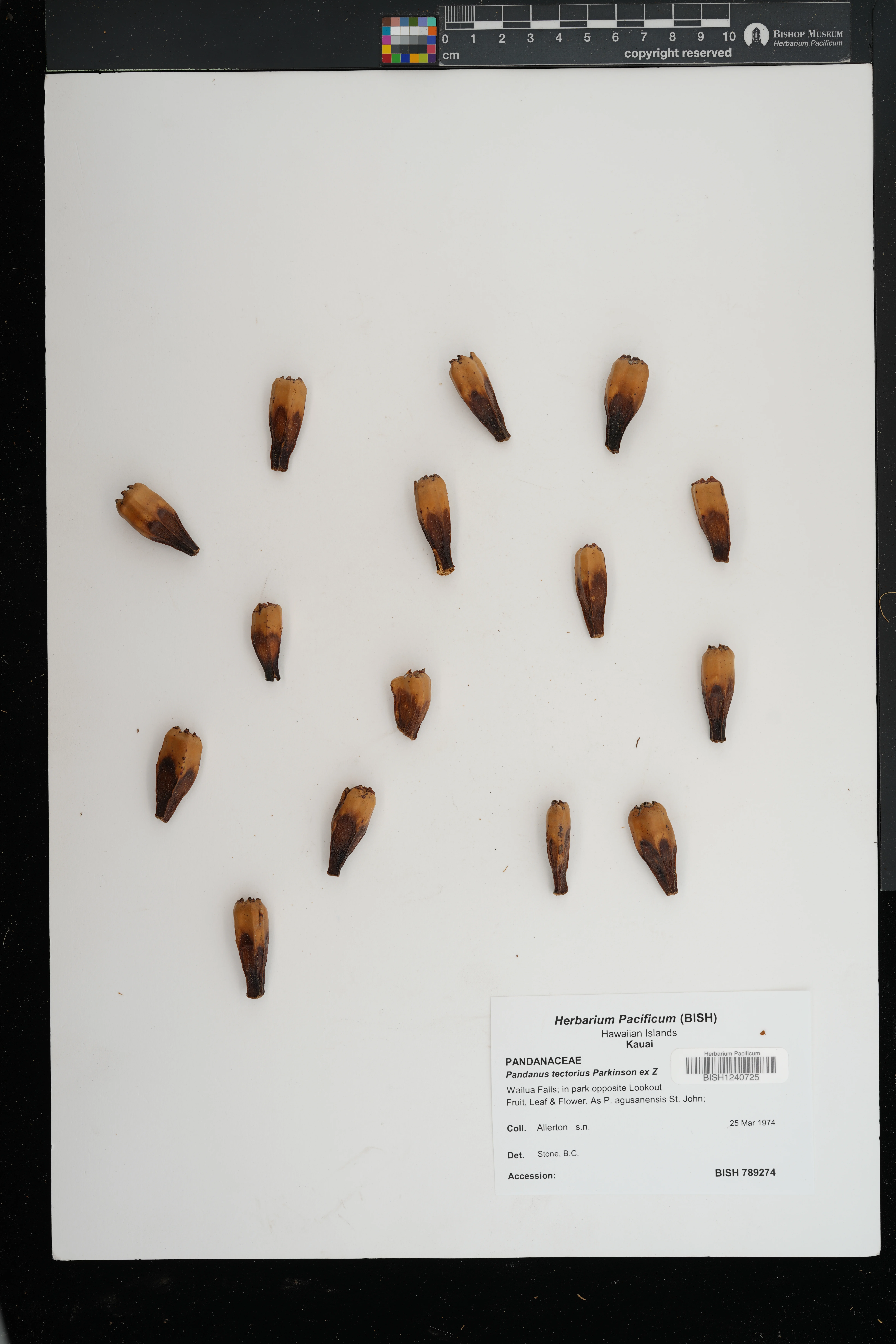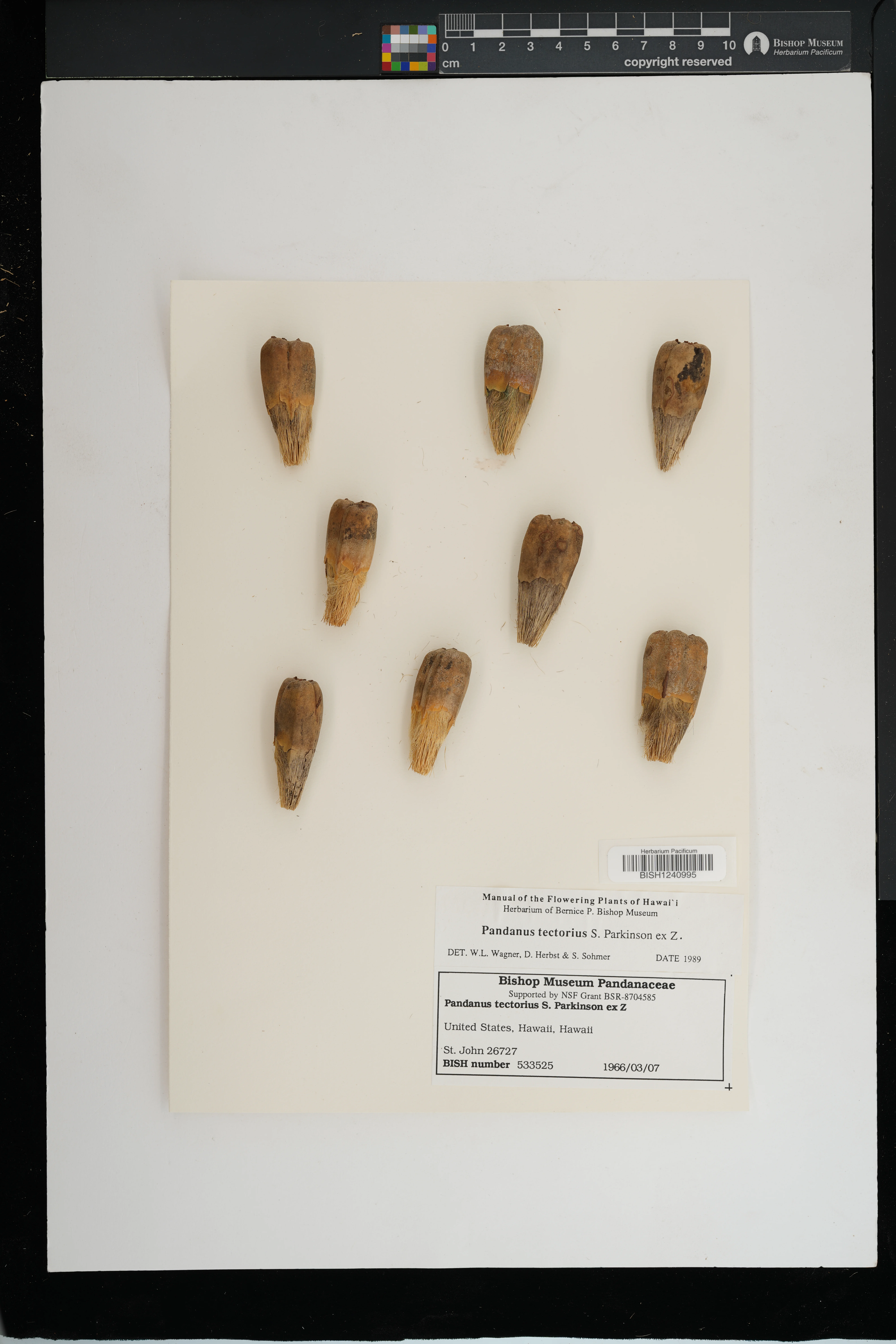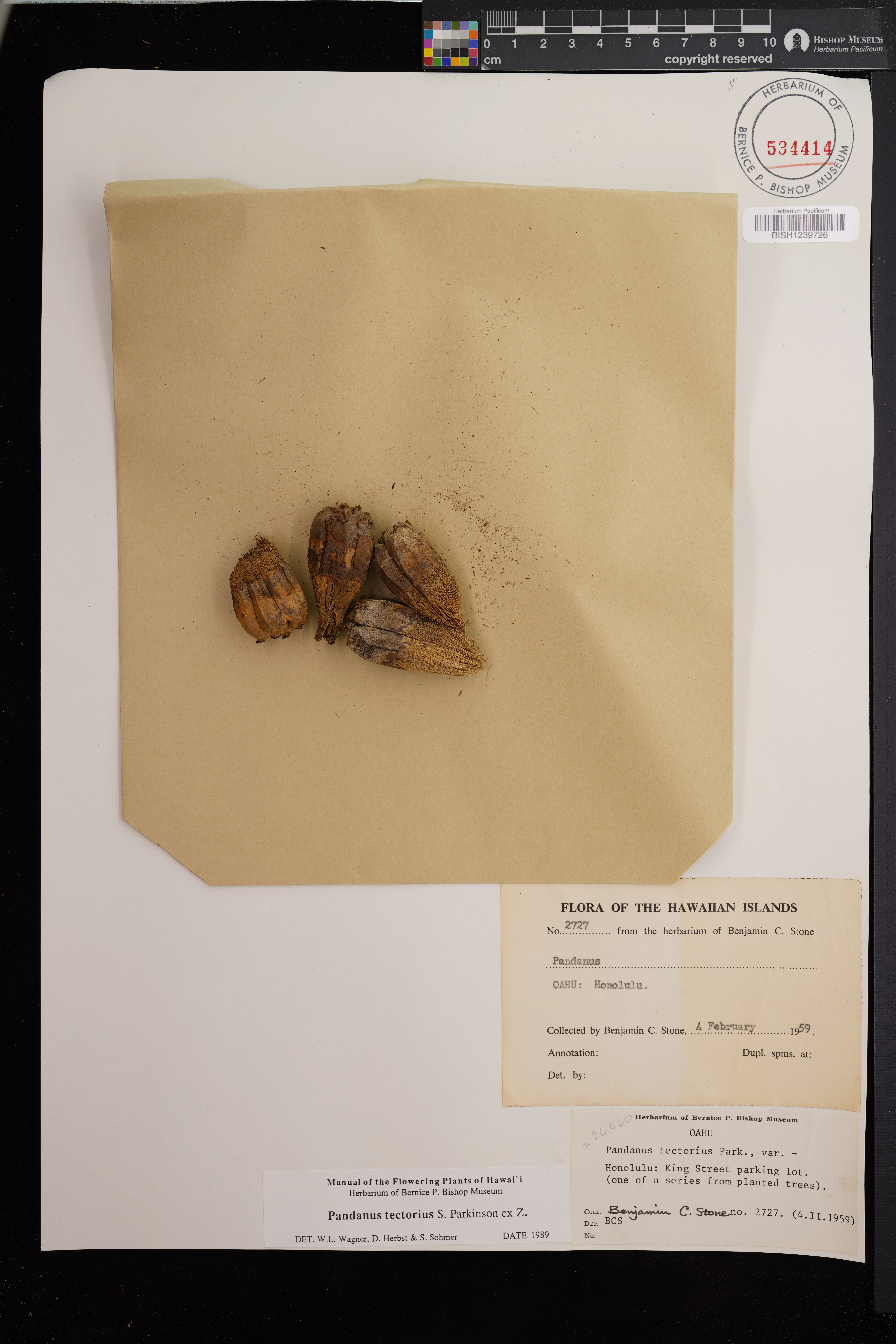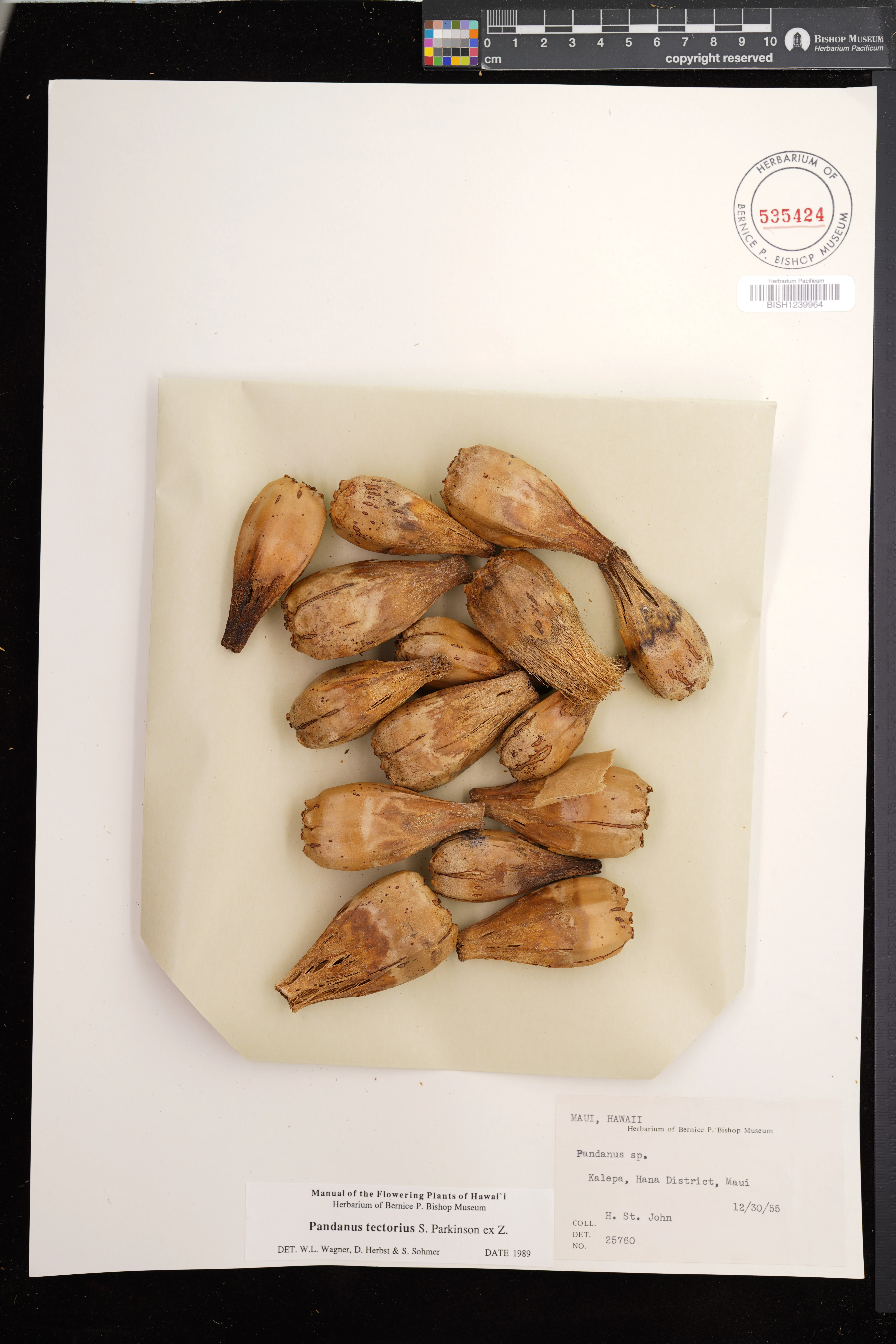 Tree 9m tall; roots spreading laterally at ground level; prop roots from 1m above ground; fruits orange at maturity; fruiting head exceptionally large |