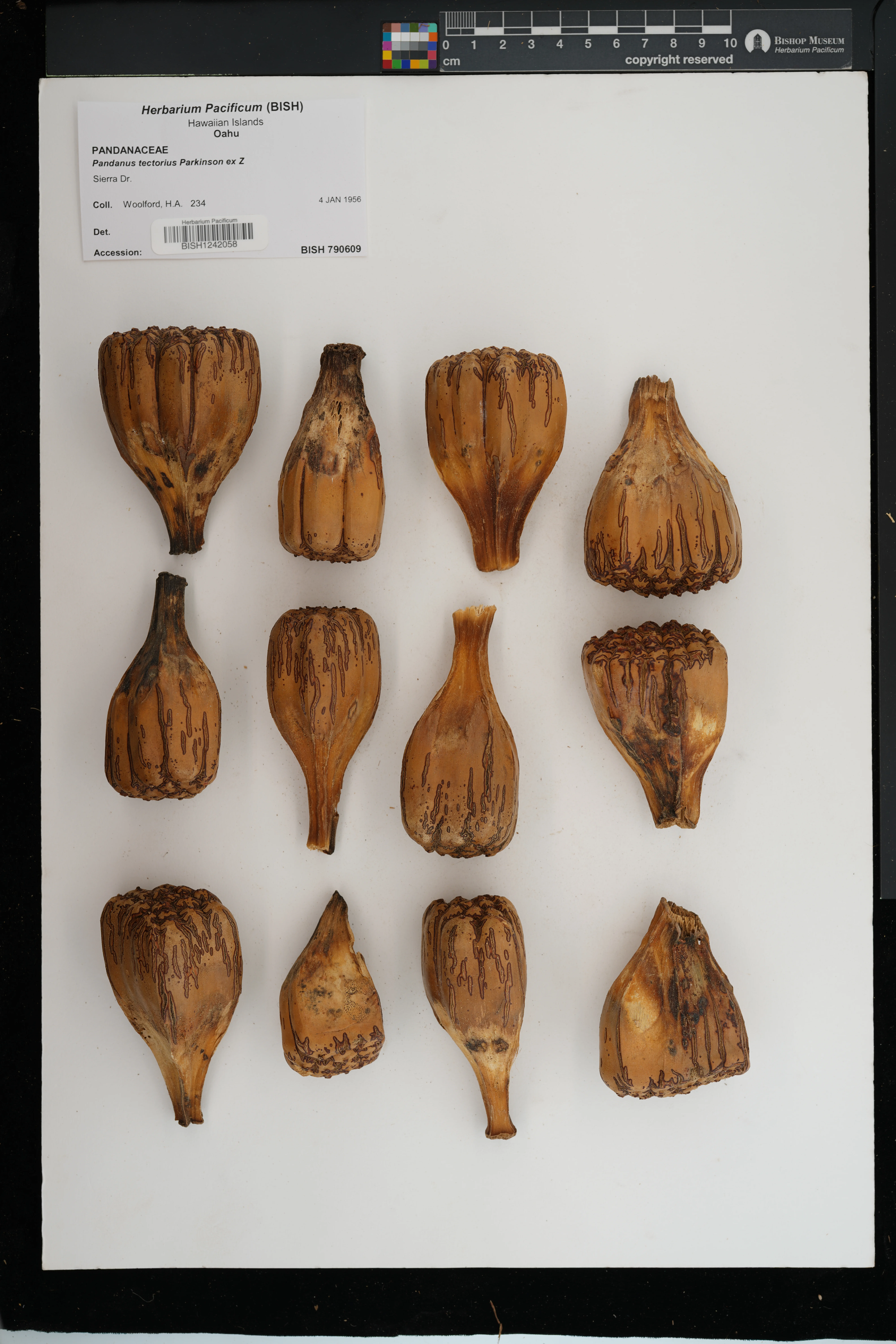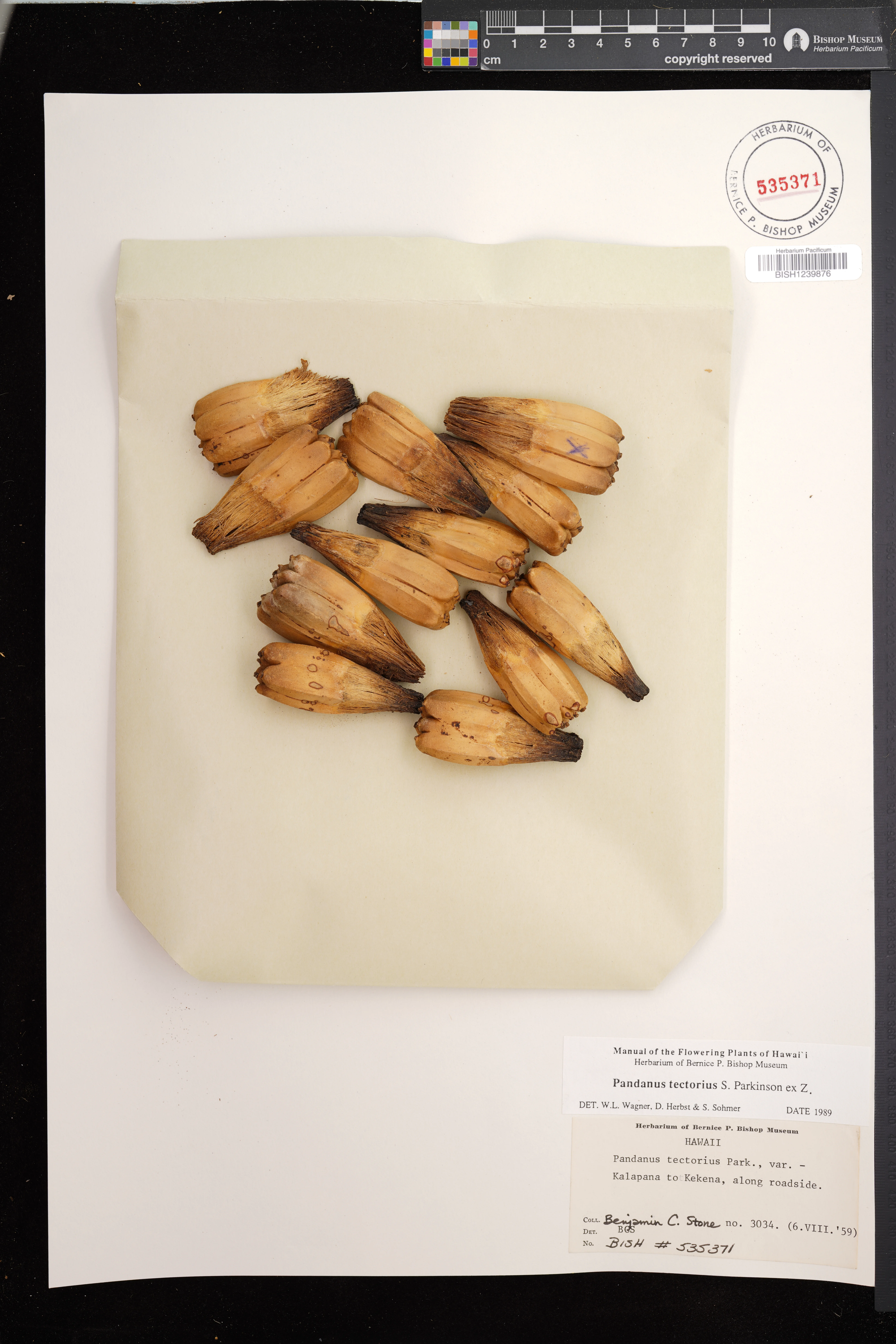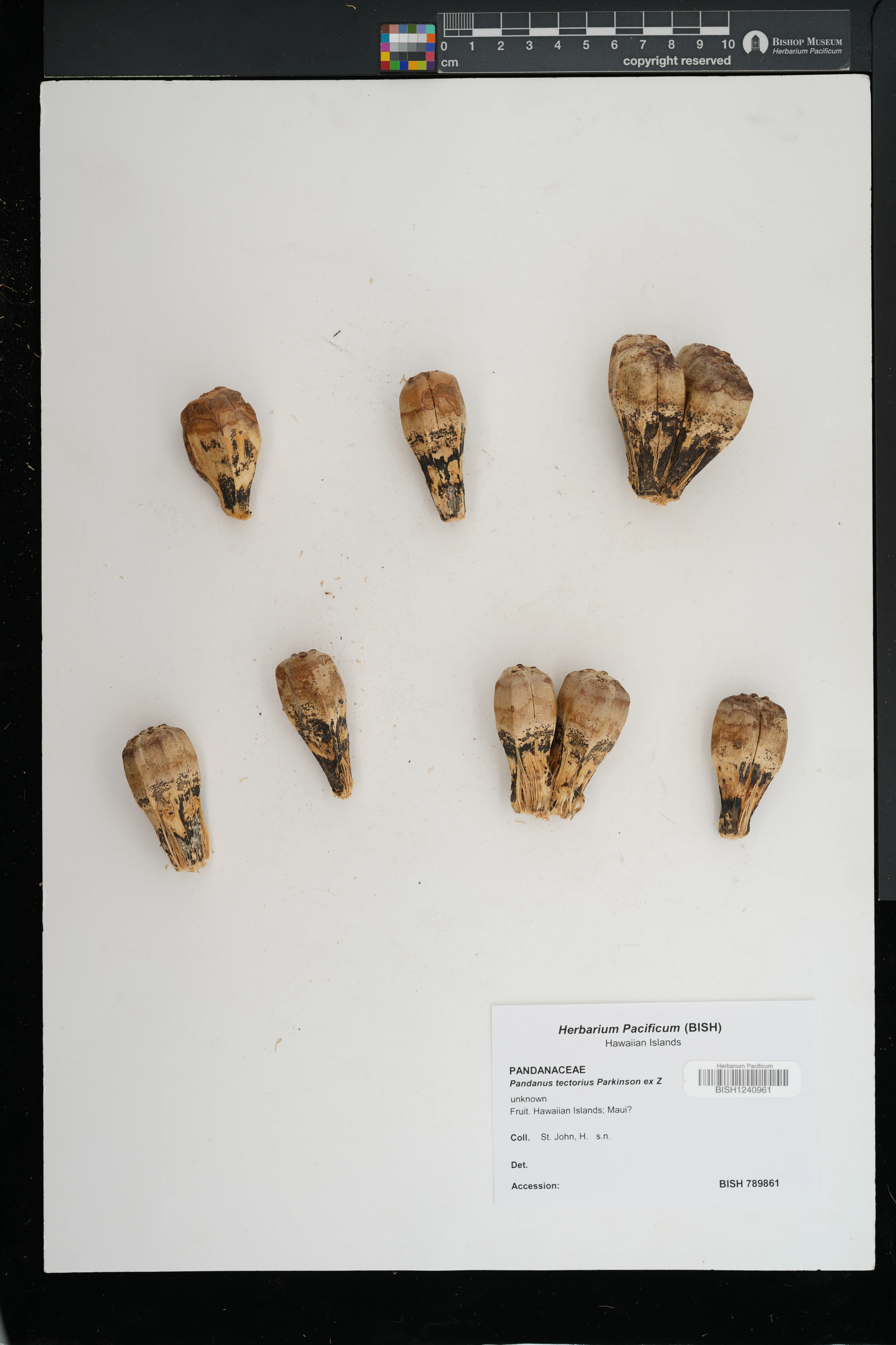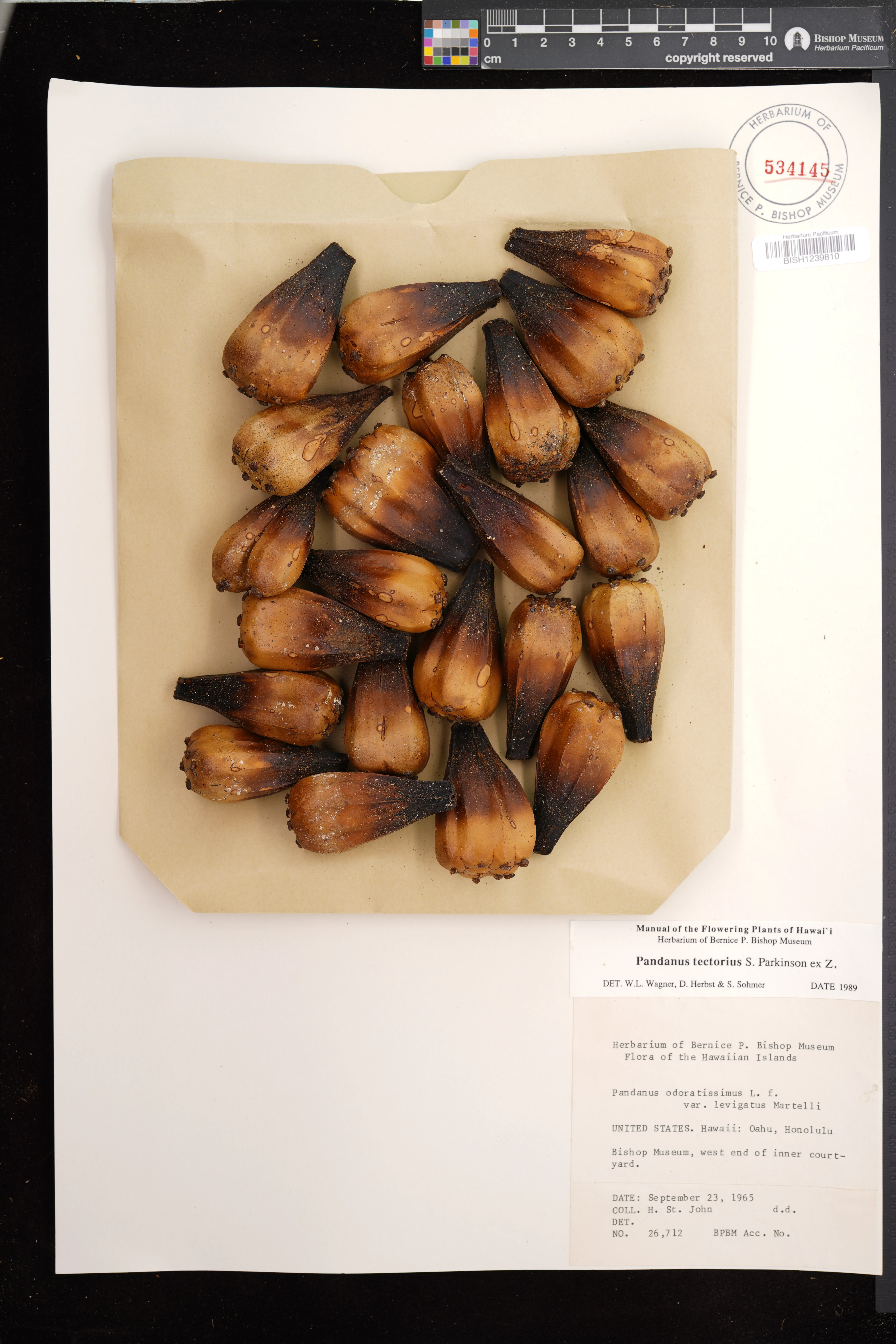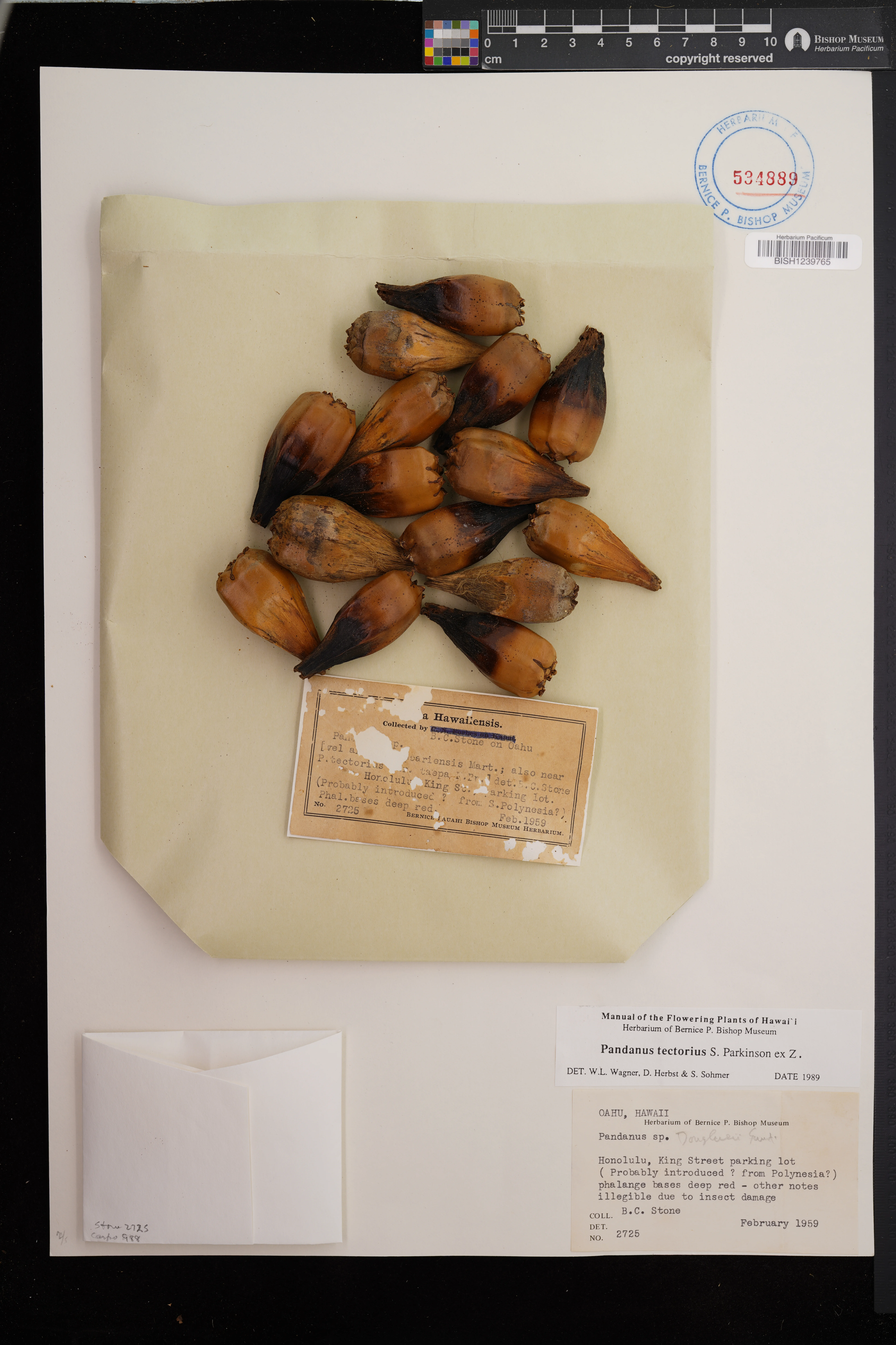 Tree 9m tall; roots spreading laterally at ground level; prop roots from 1m above ground; fruits orange at maturity; fruiting head exceptionally large |