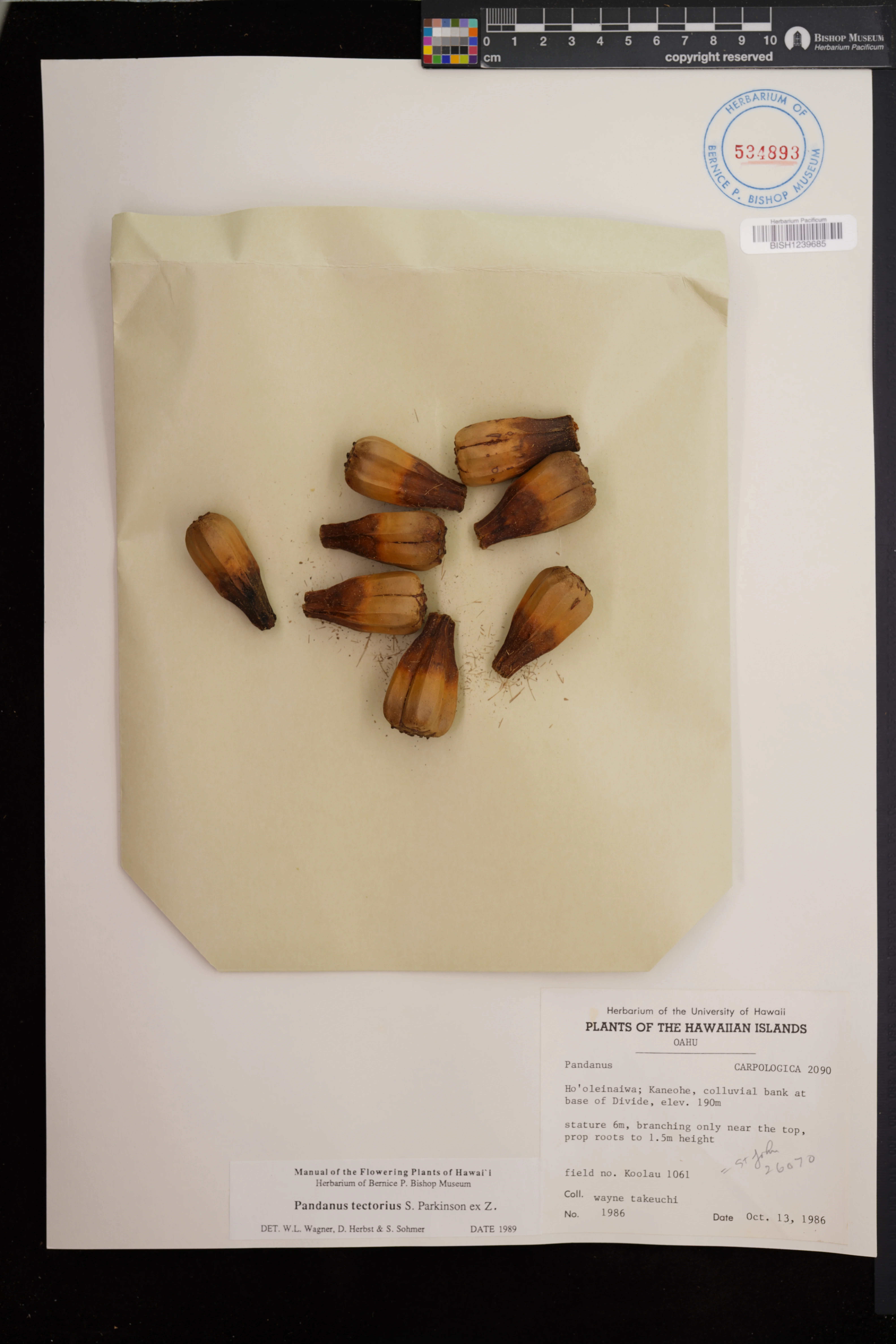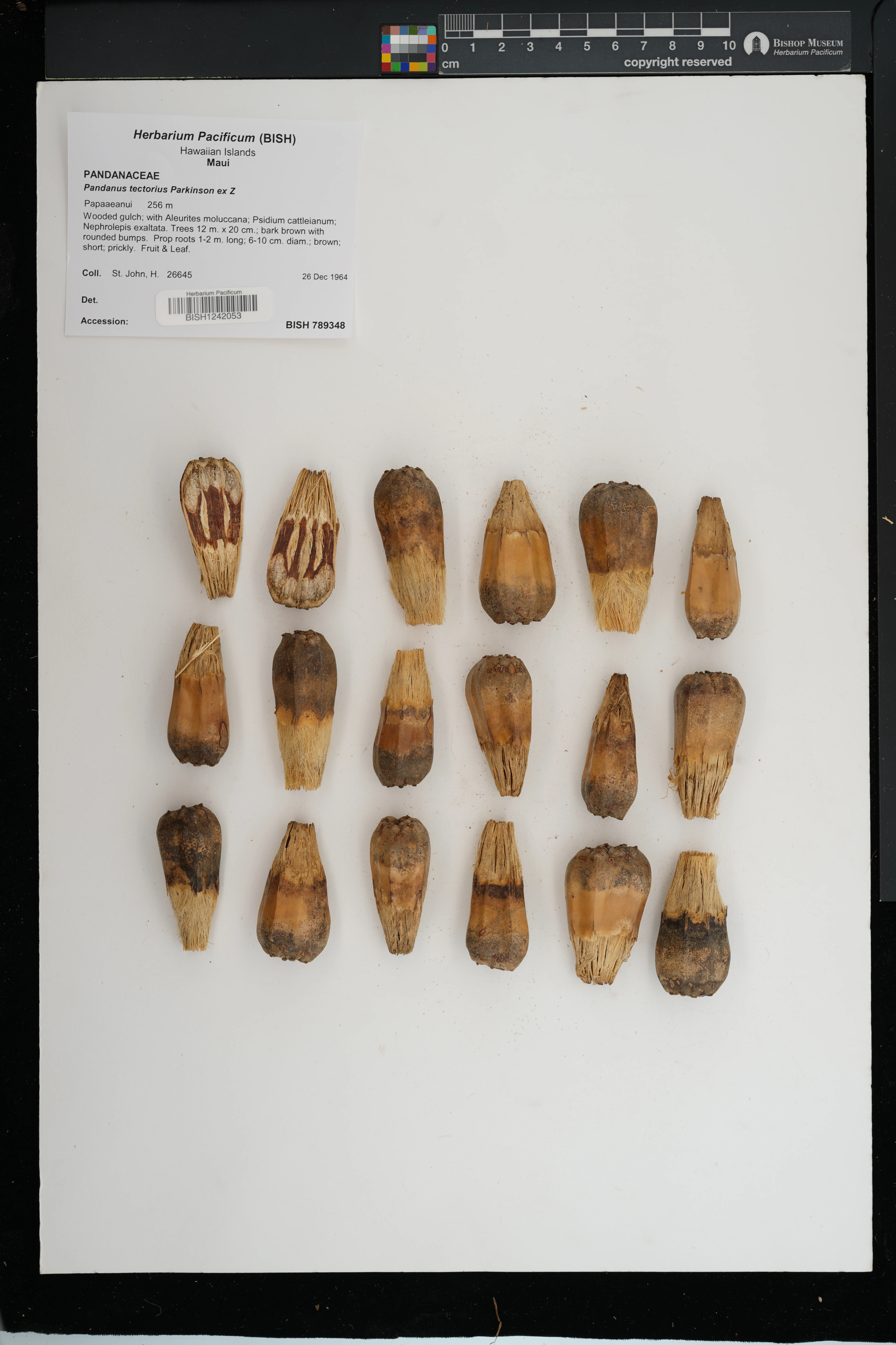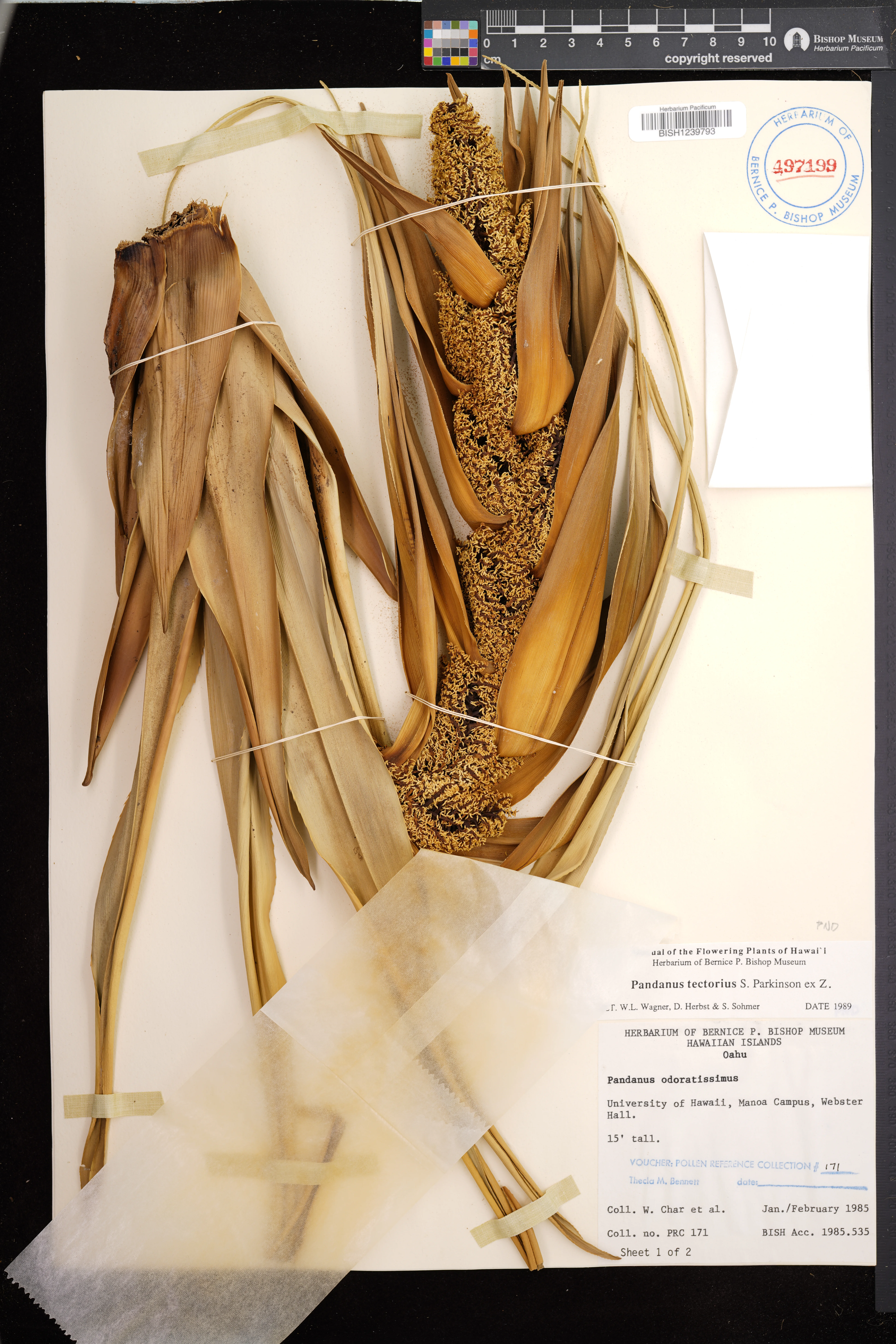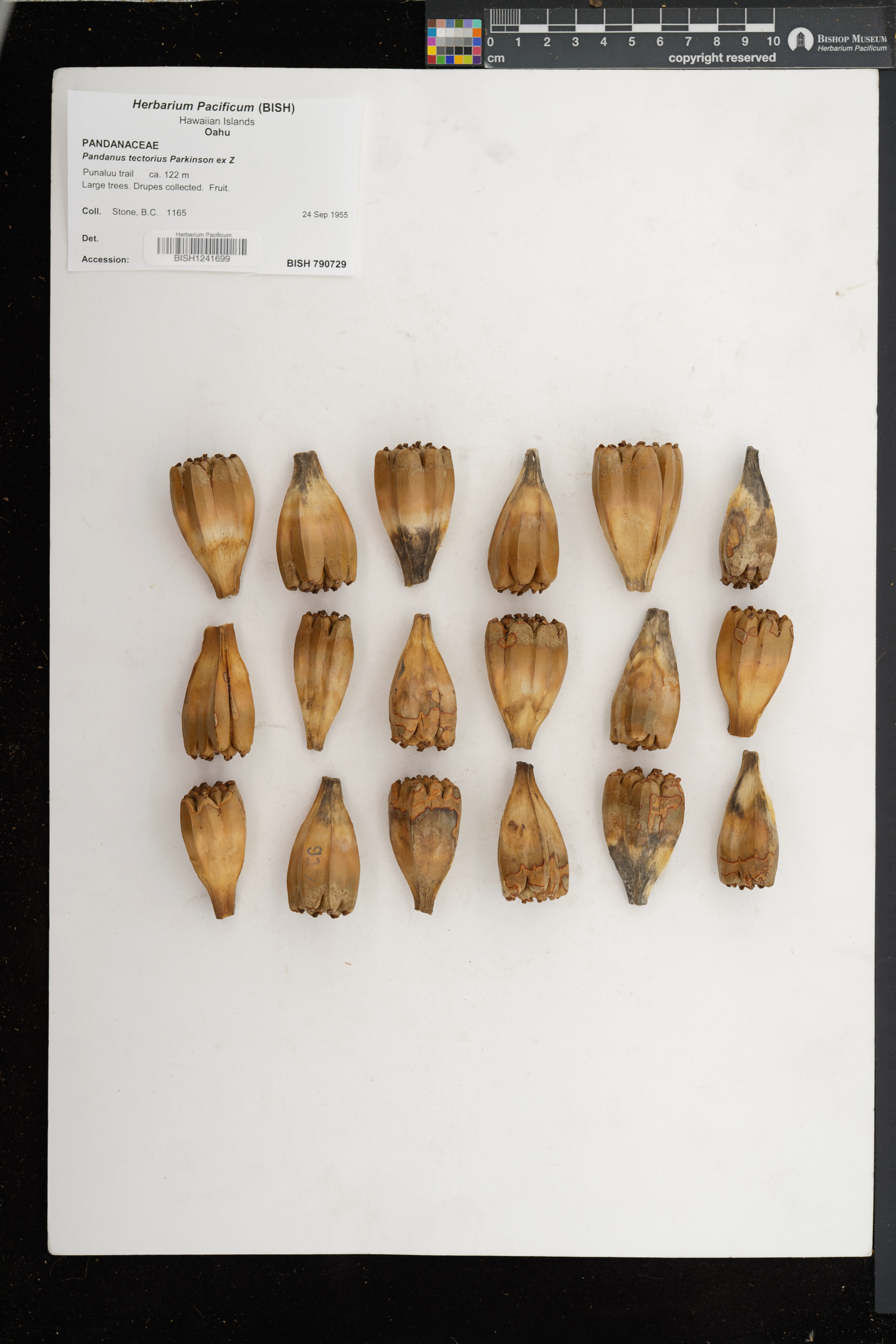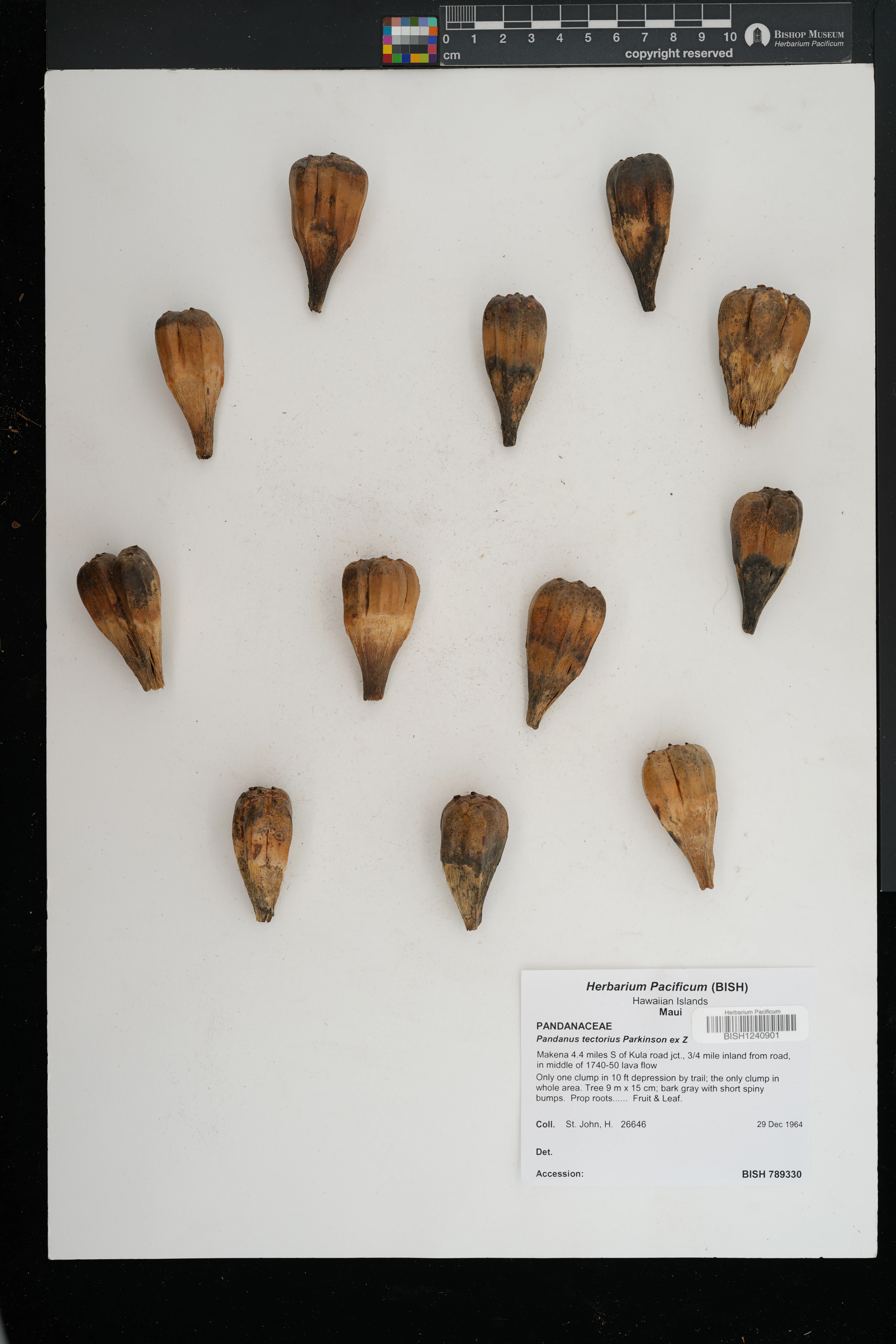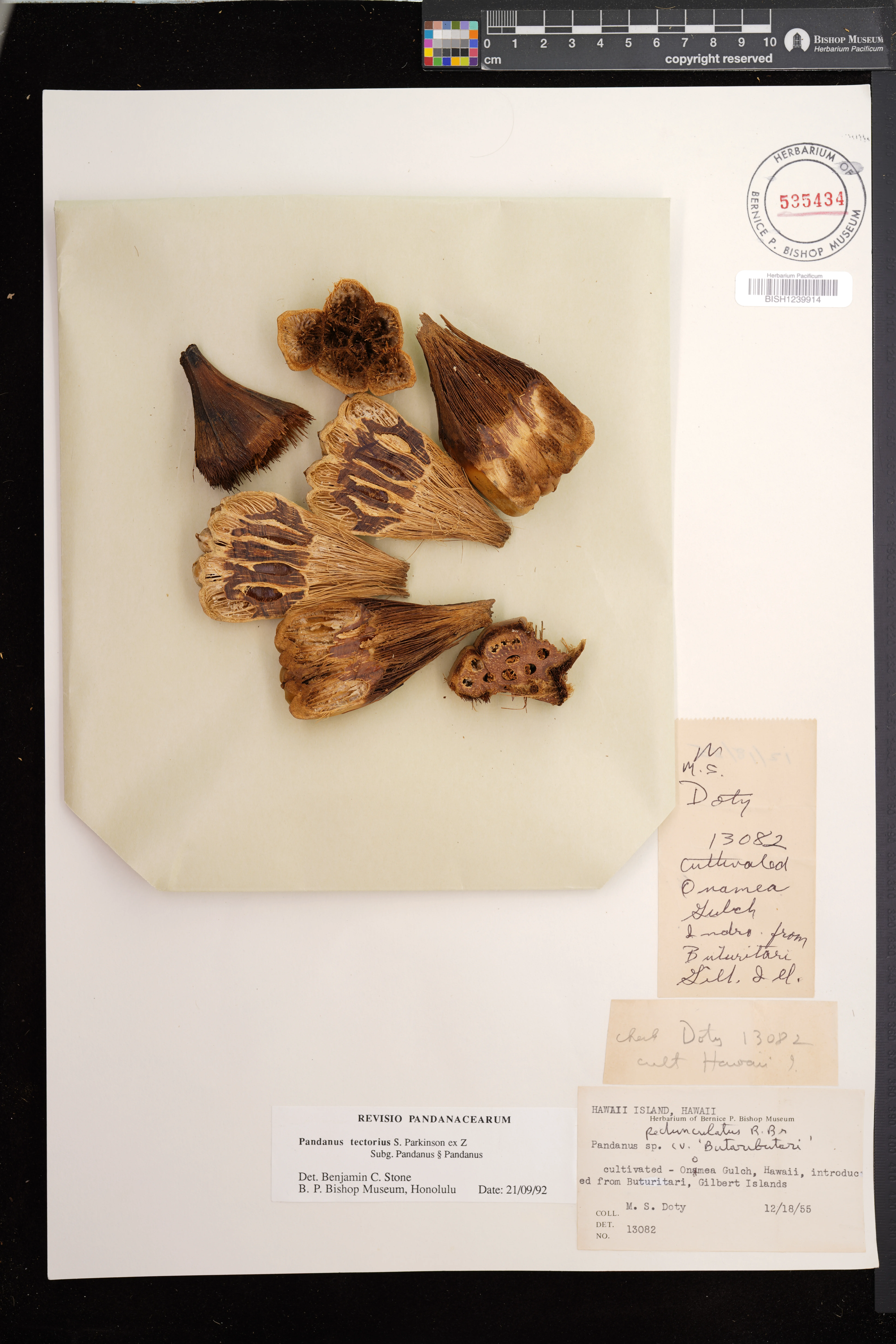 Tree 9m tall; roots spreading laterally at ground level; prop roots from 1m above ground; fruits orange at maturity; fruiting head exceptionally large |