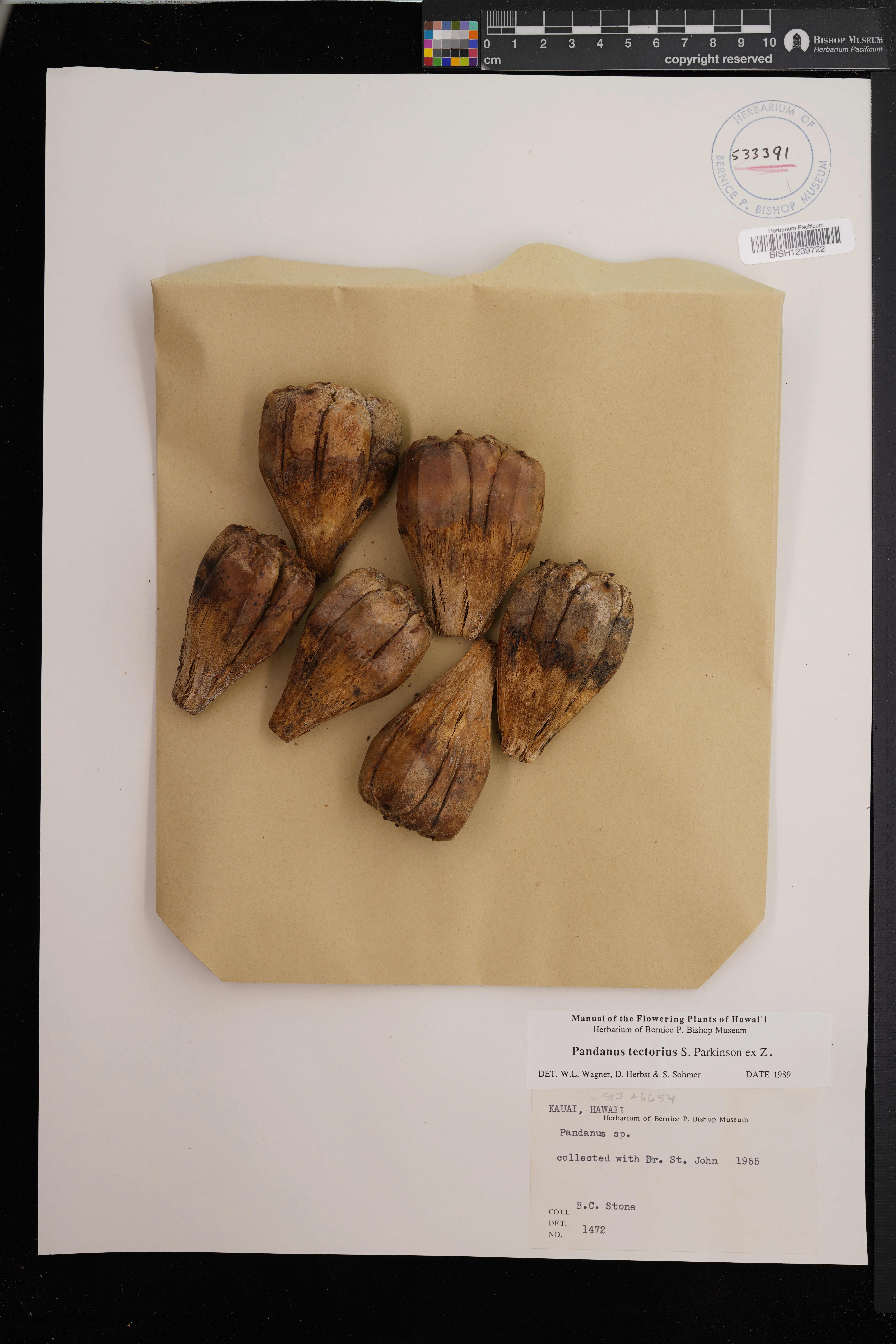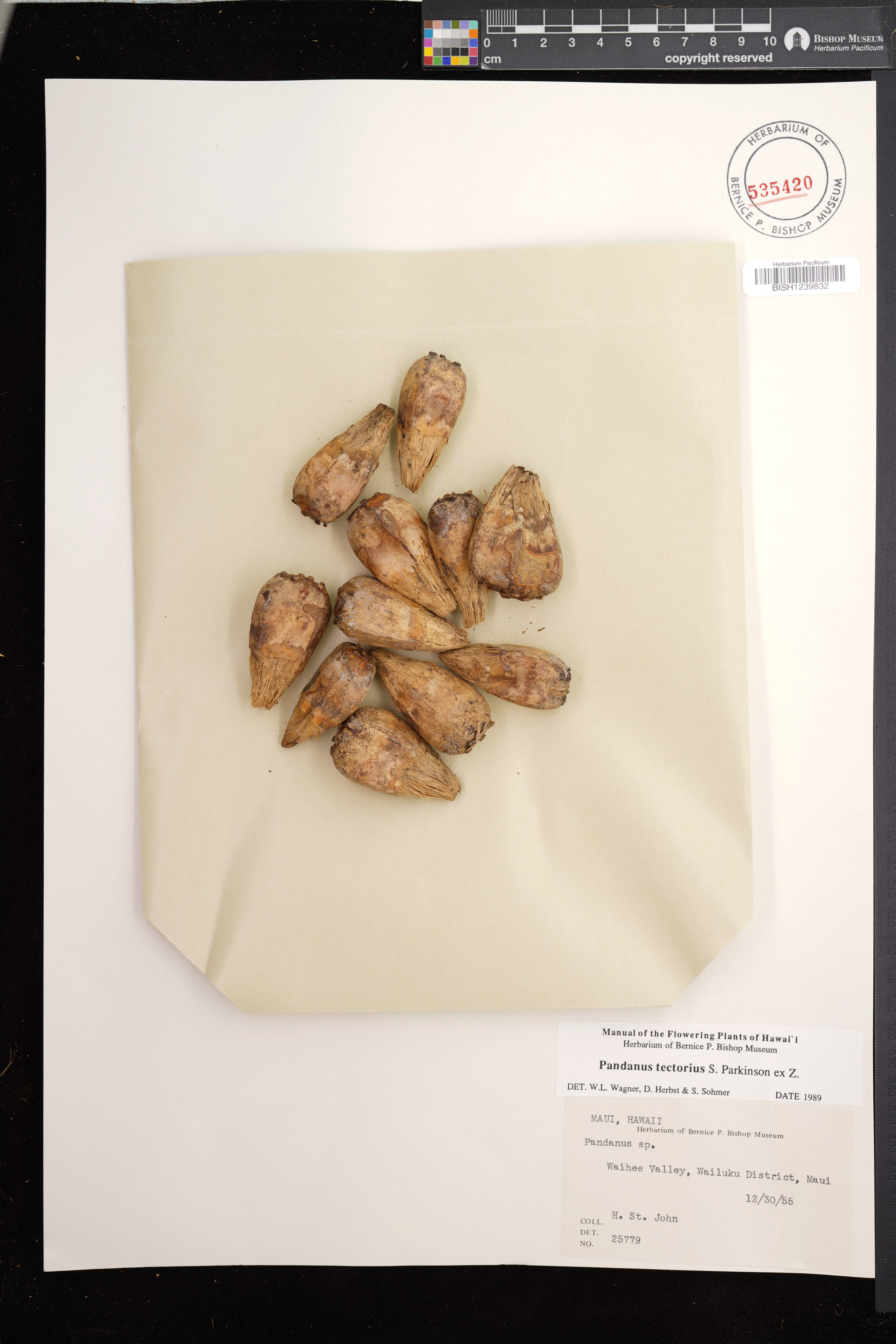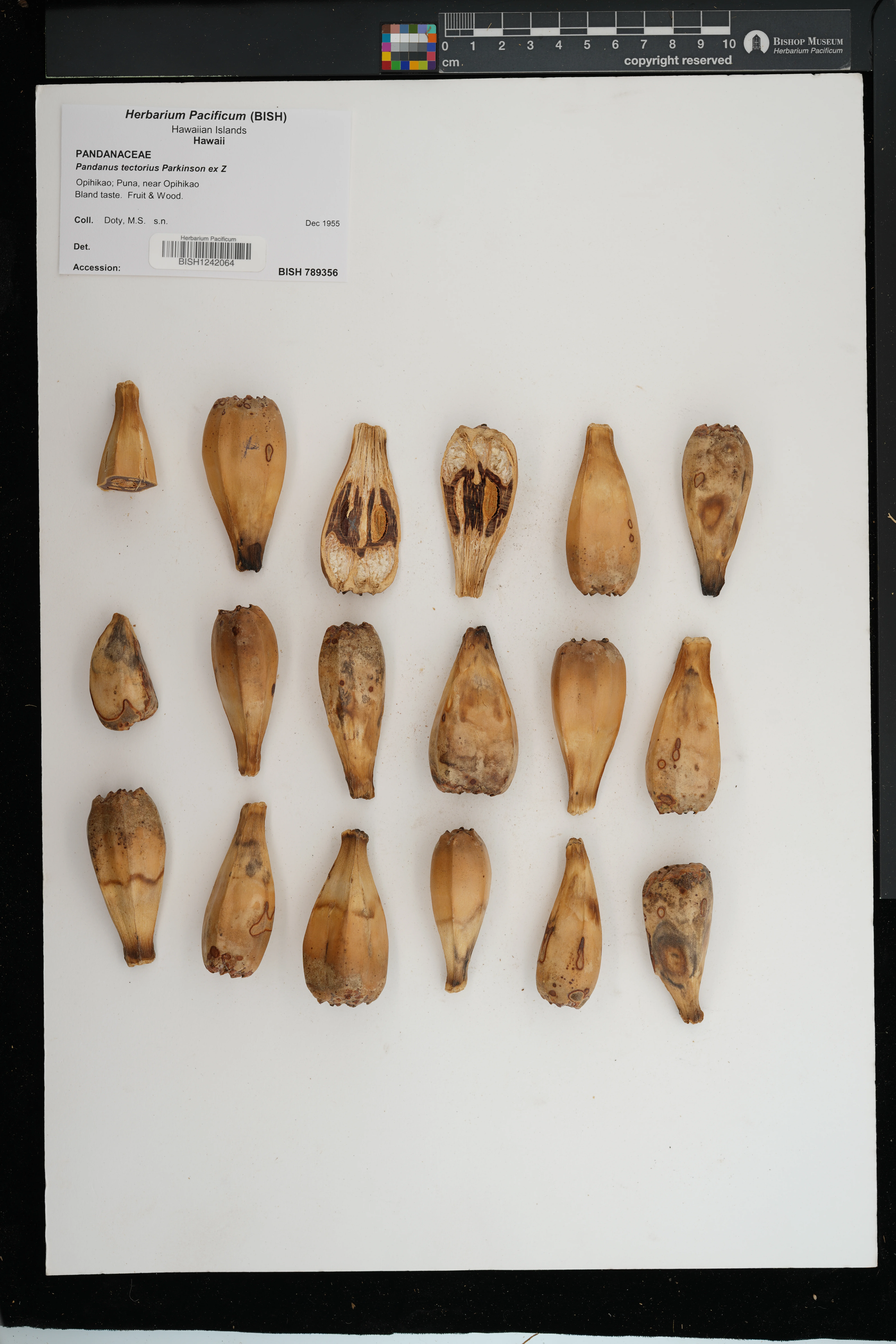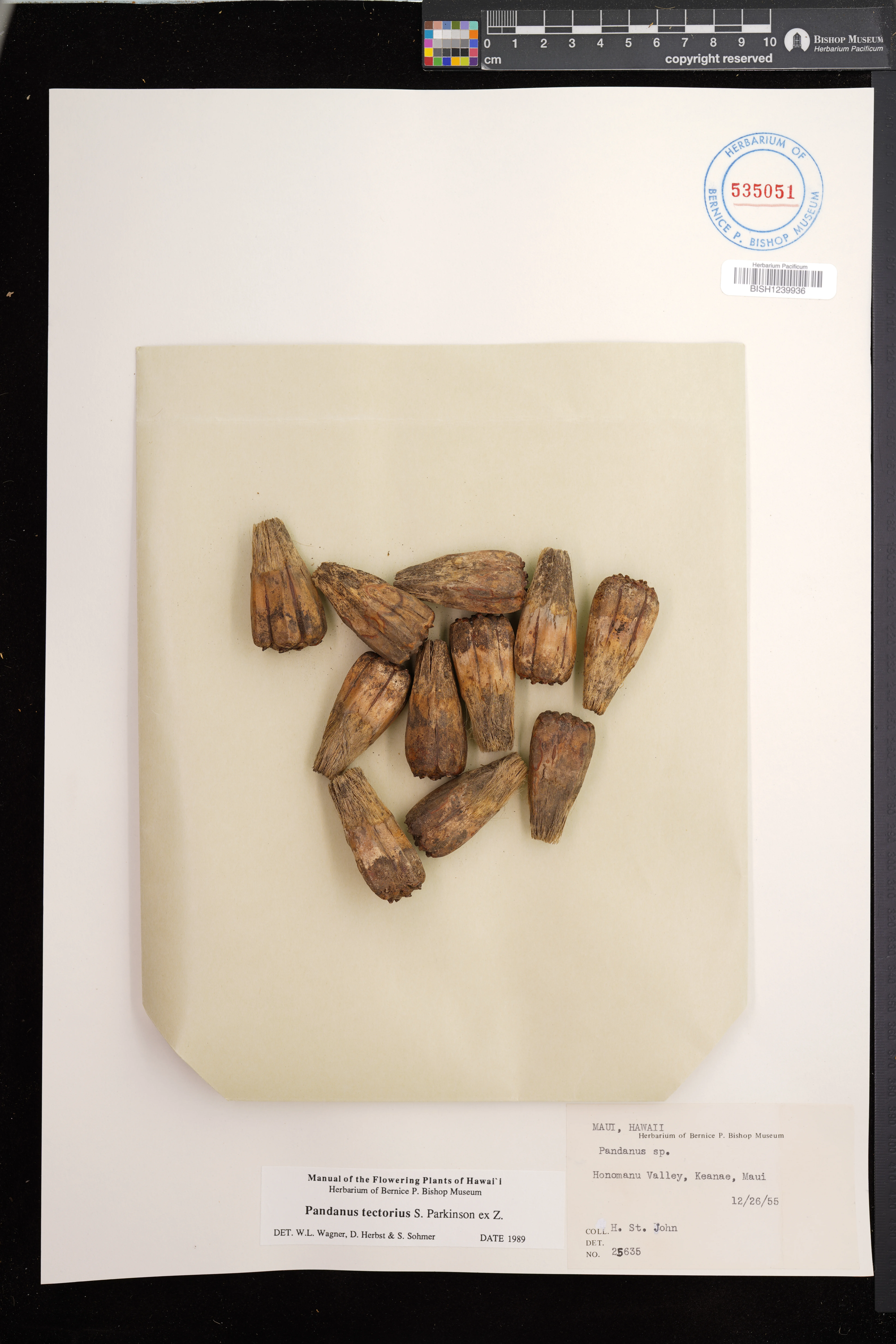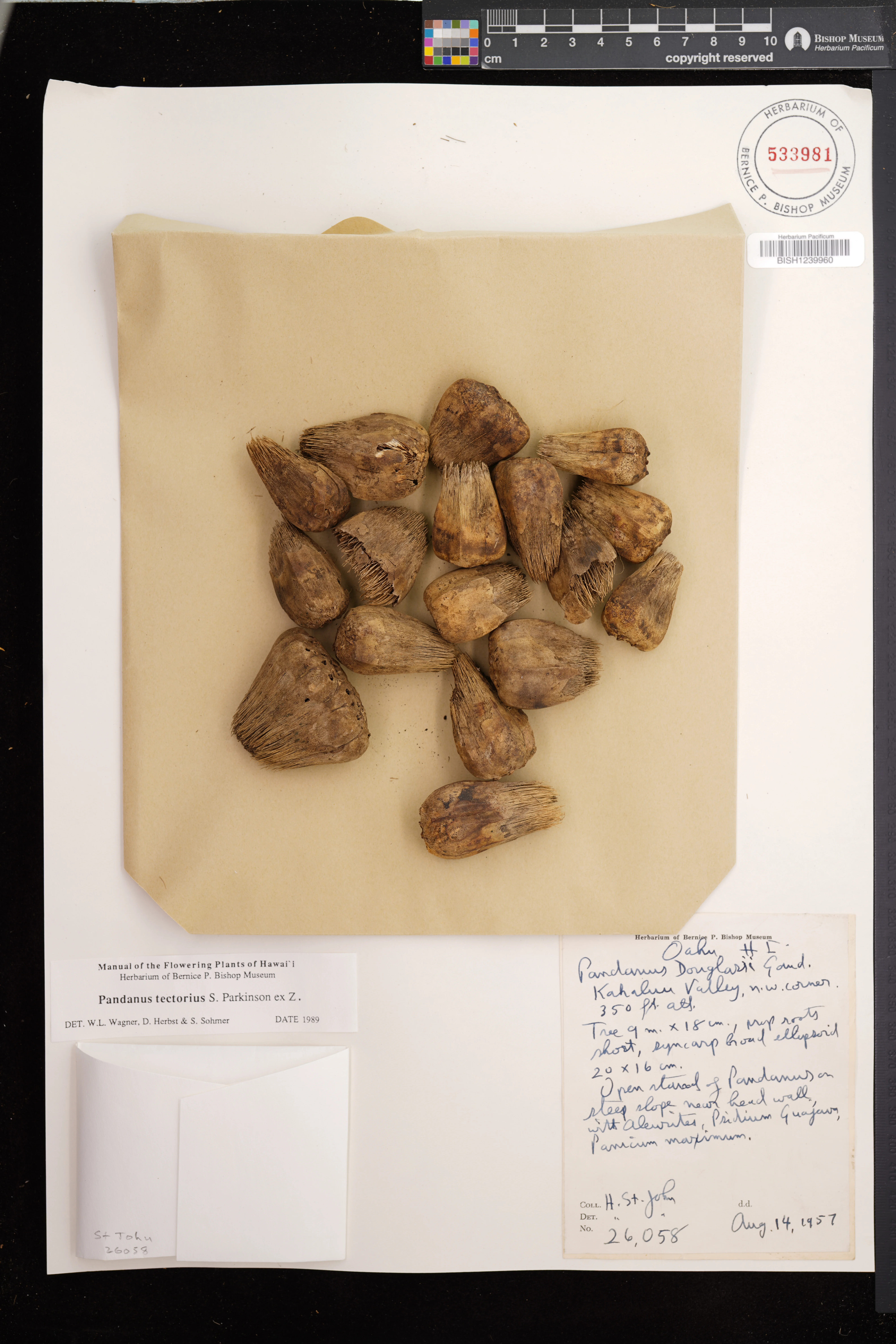 Tree 9m tall; roots spreading laterally at ground level; prop roots from 1m above ground; fruits orange at maturity; fruiting head exceptionally large |