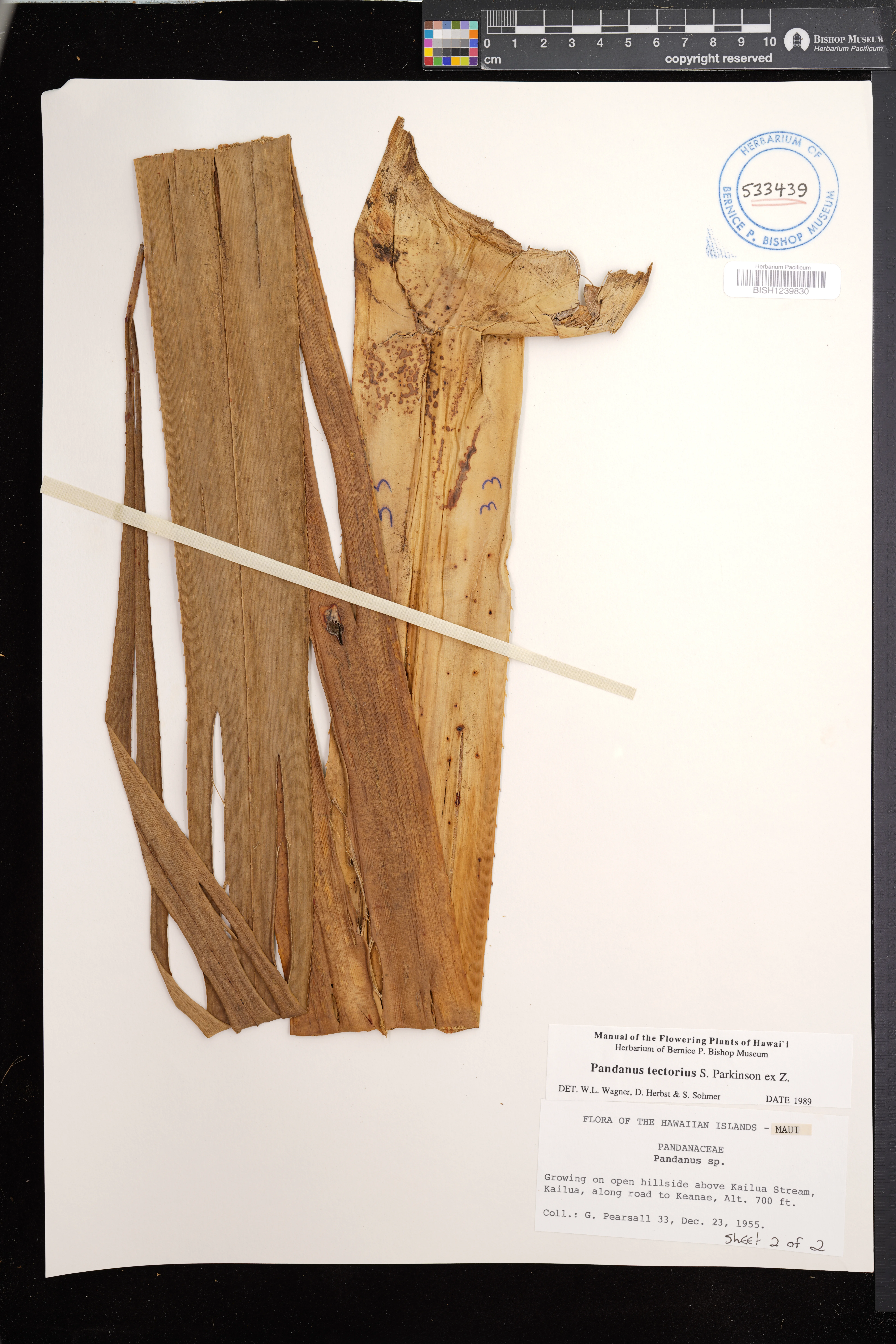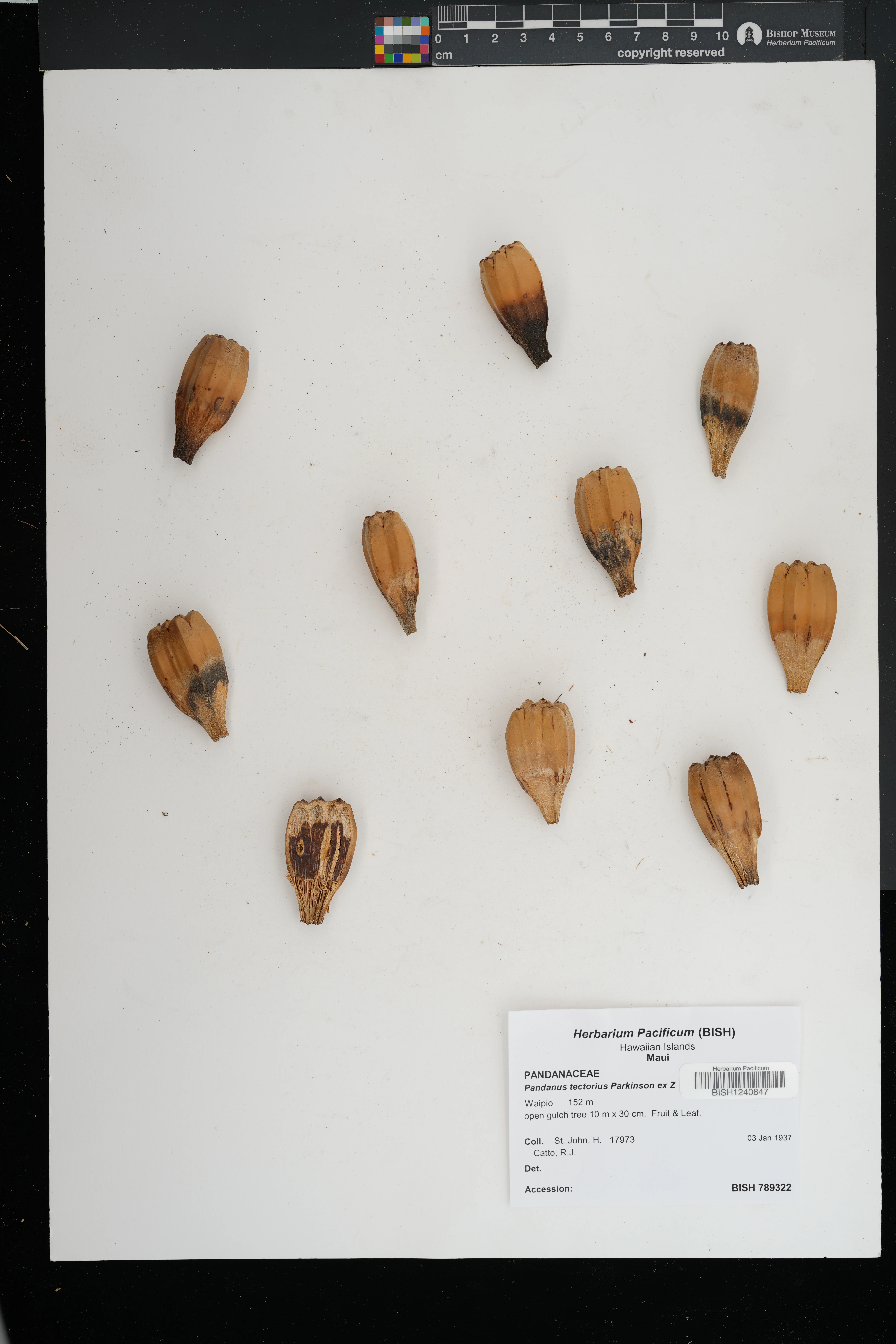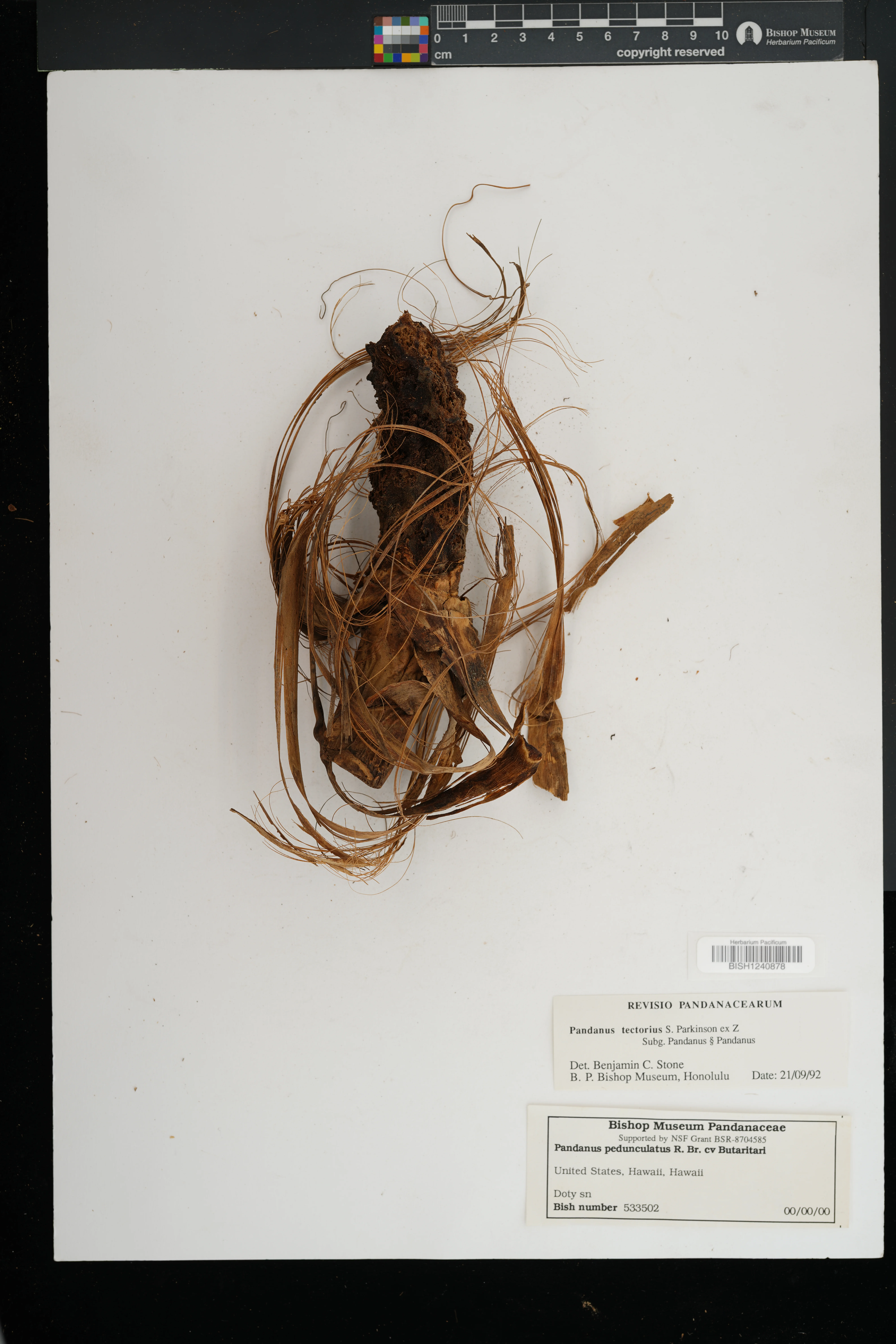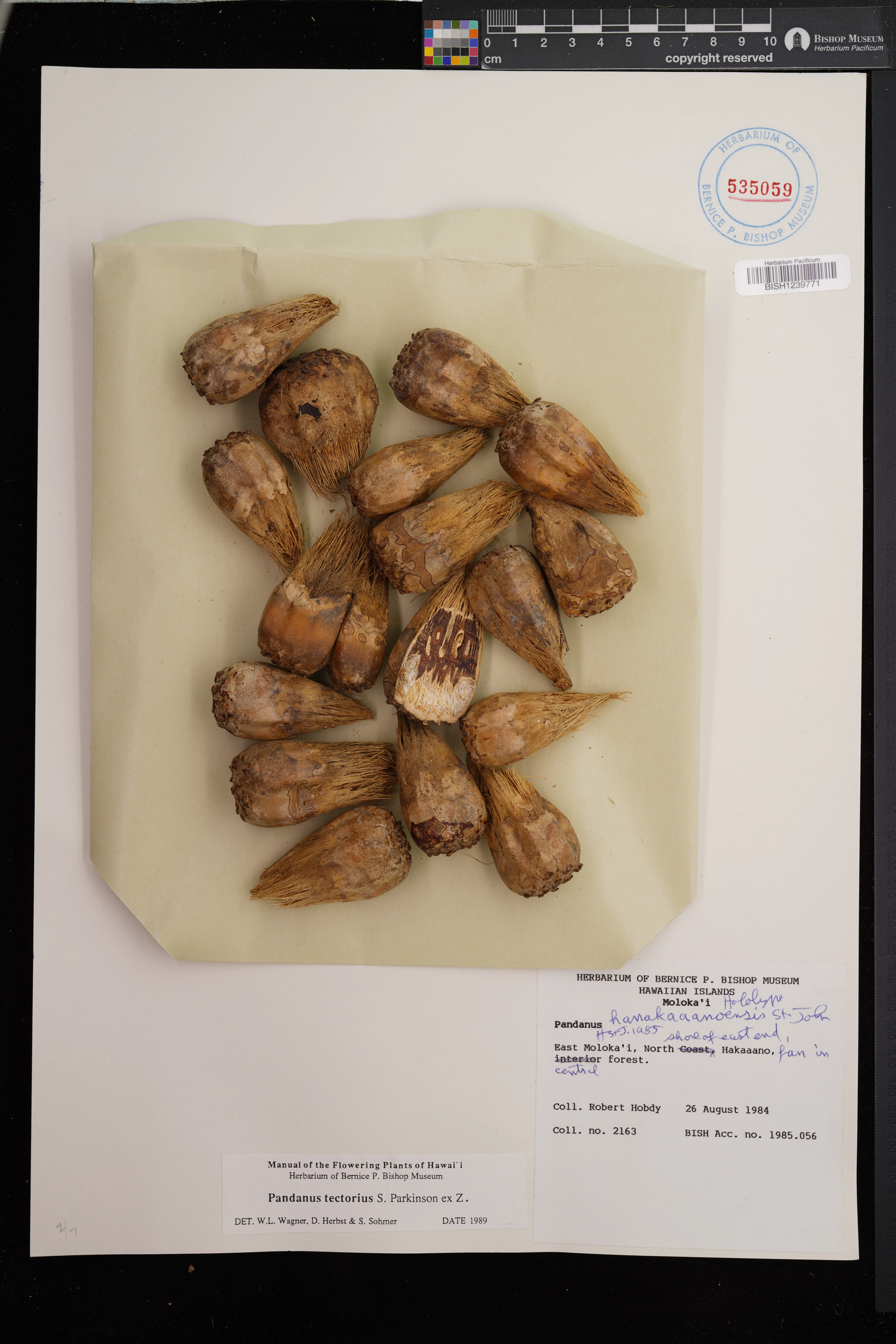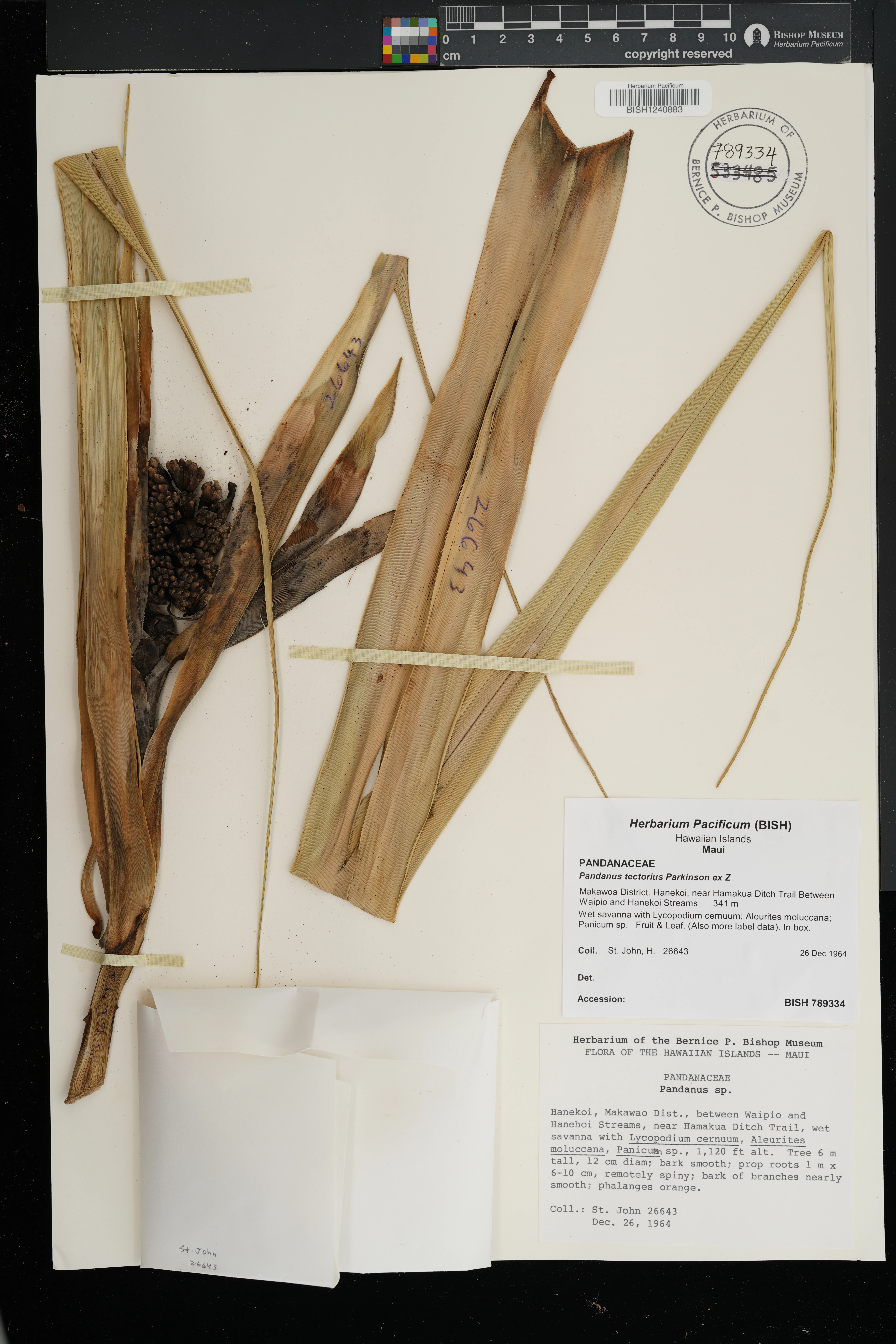 Tree 9m tall; roots spreading laterally at ground level; prop roots from 1m above ground; fruits orange at maturity; fruiting head exceptionally large |