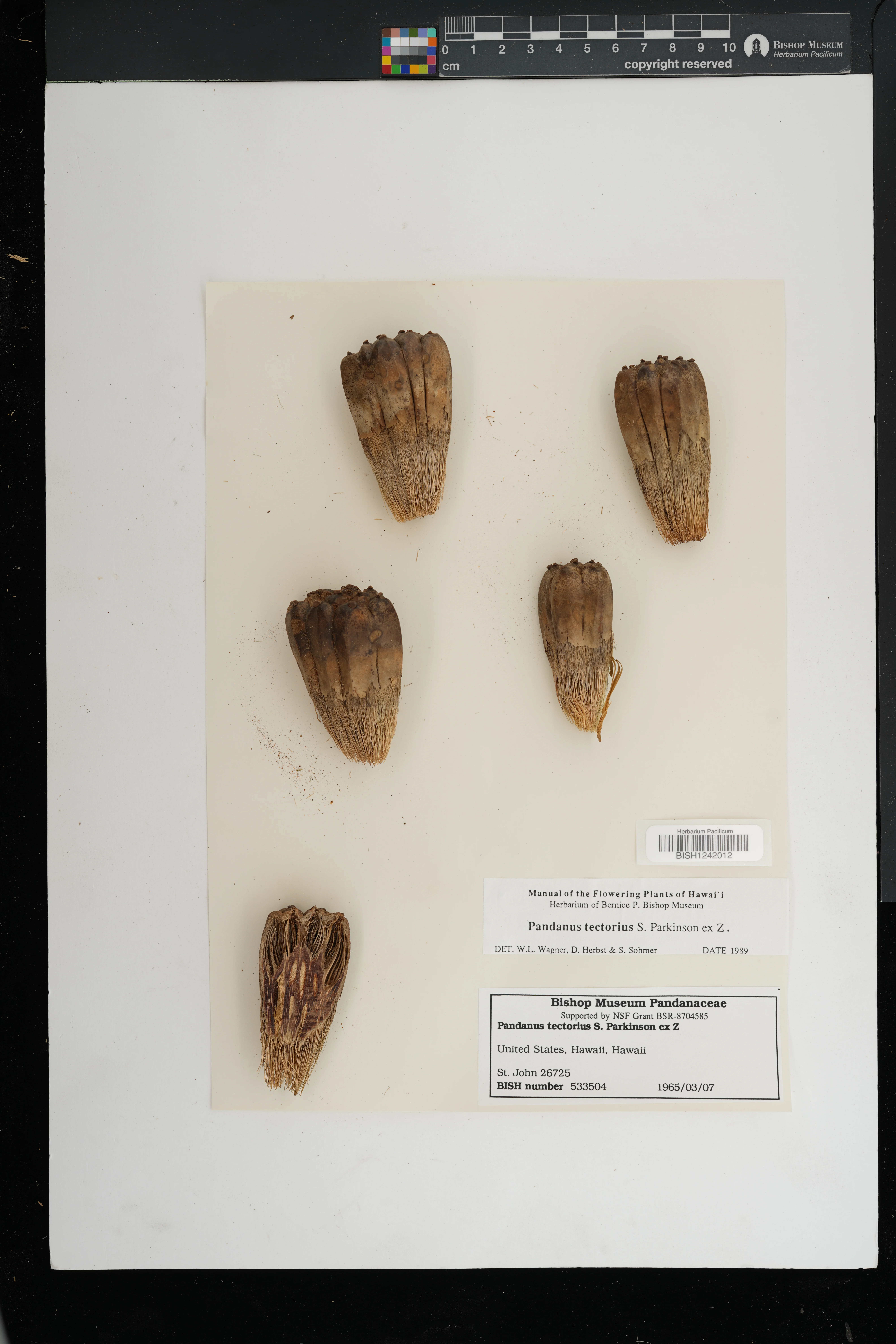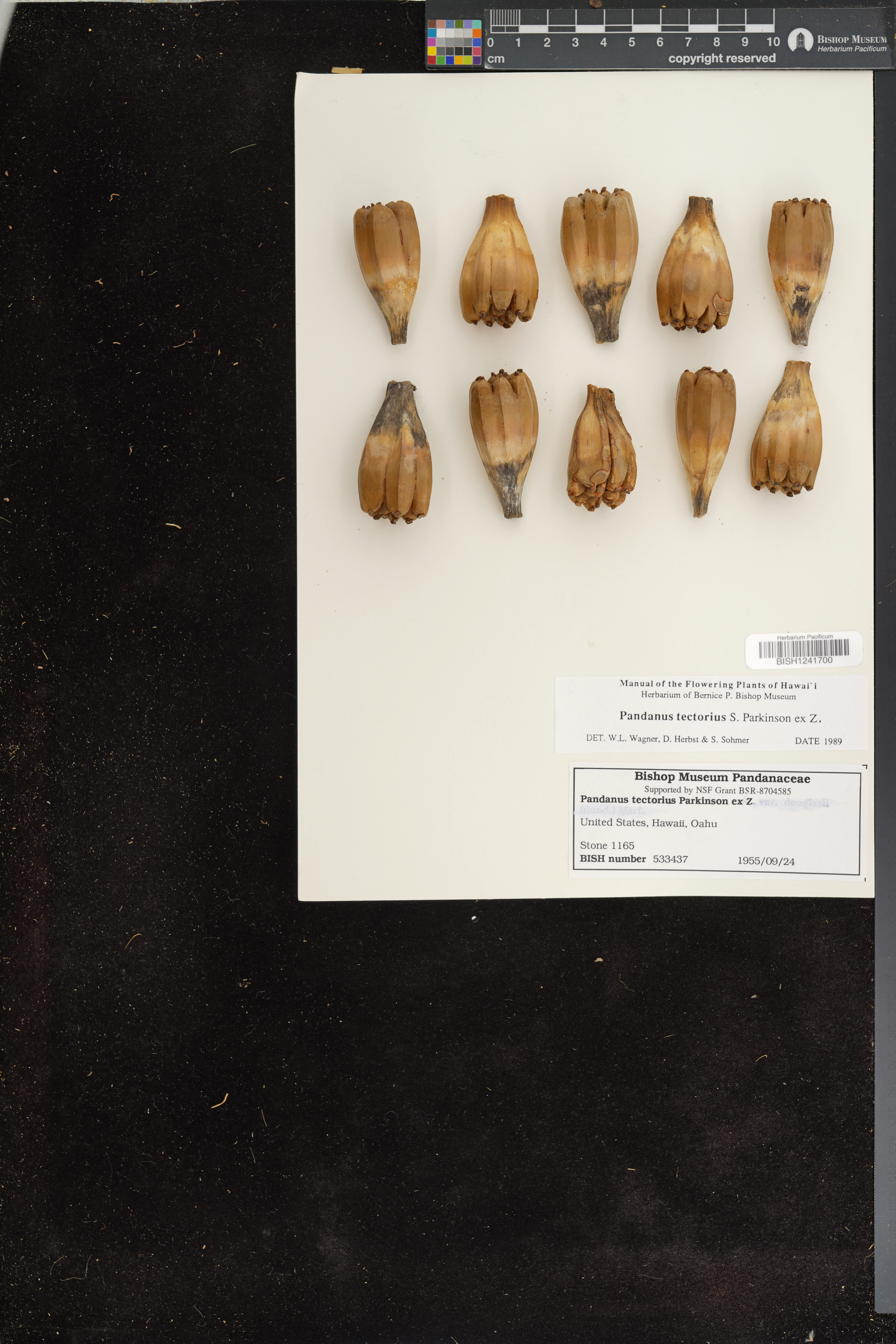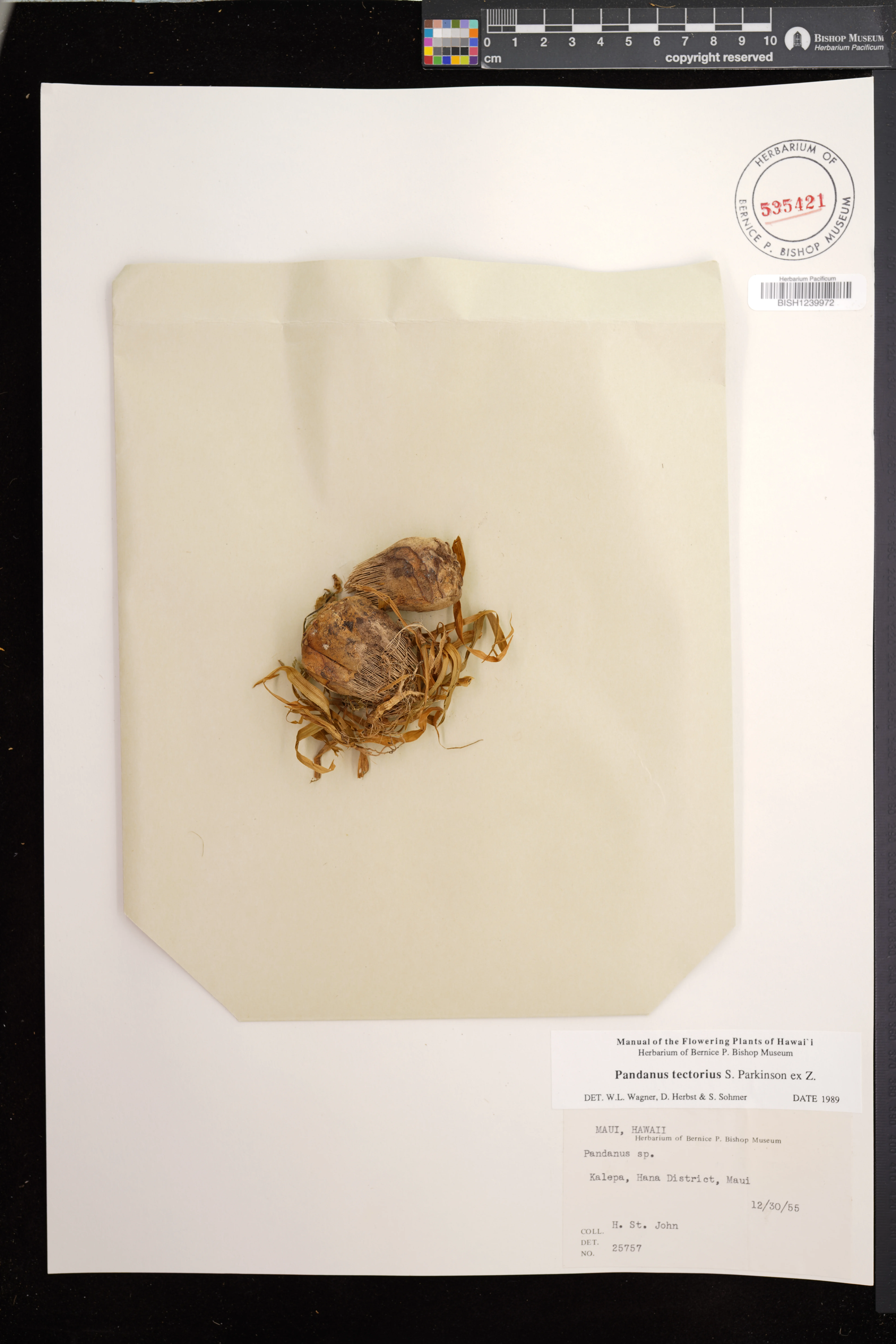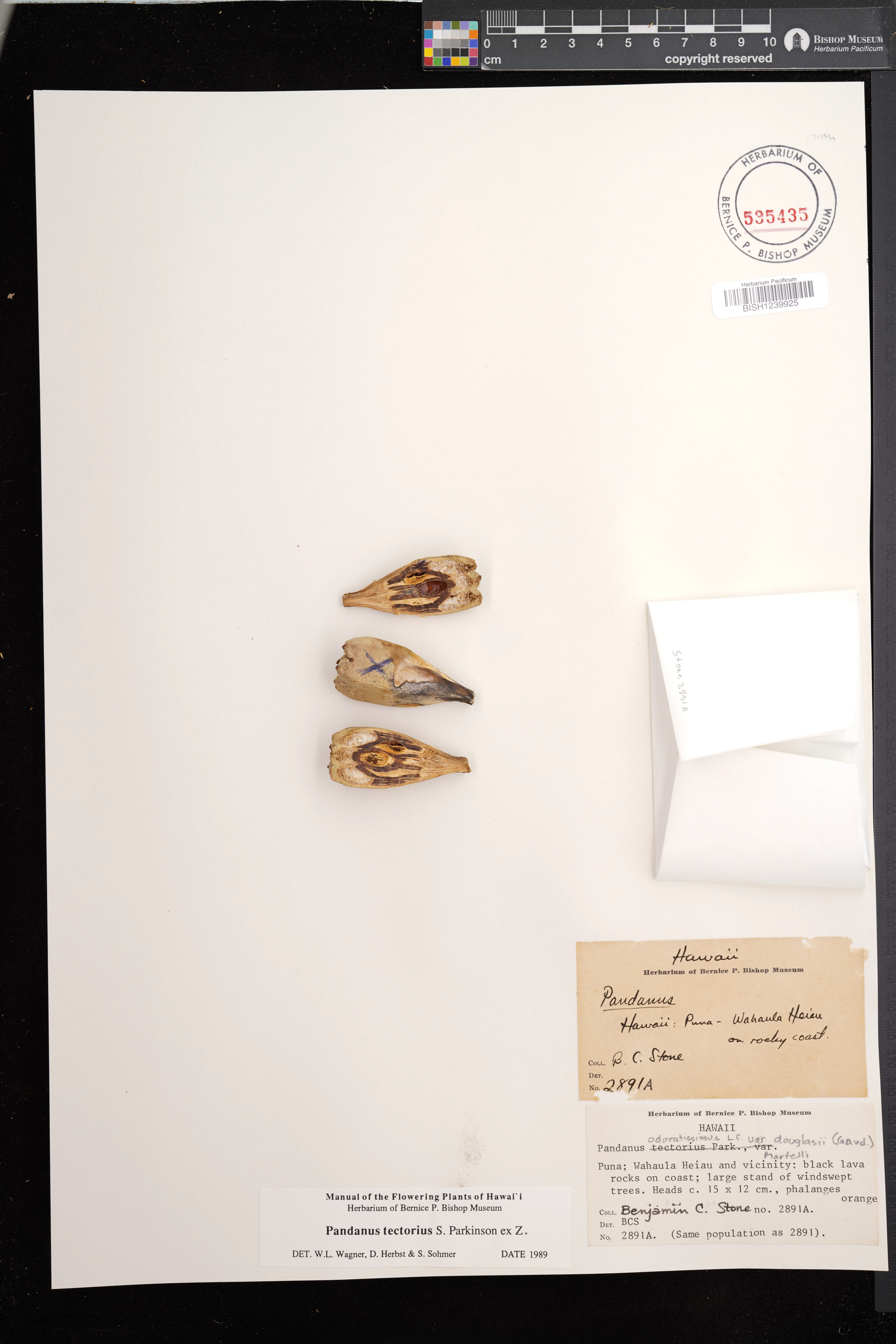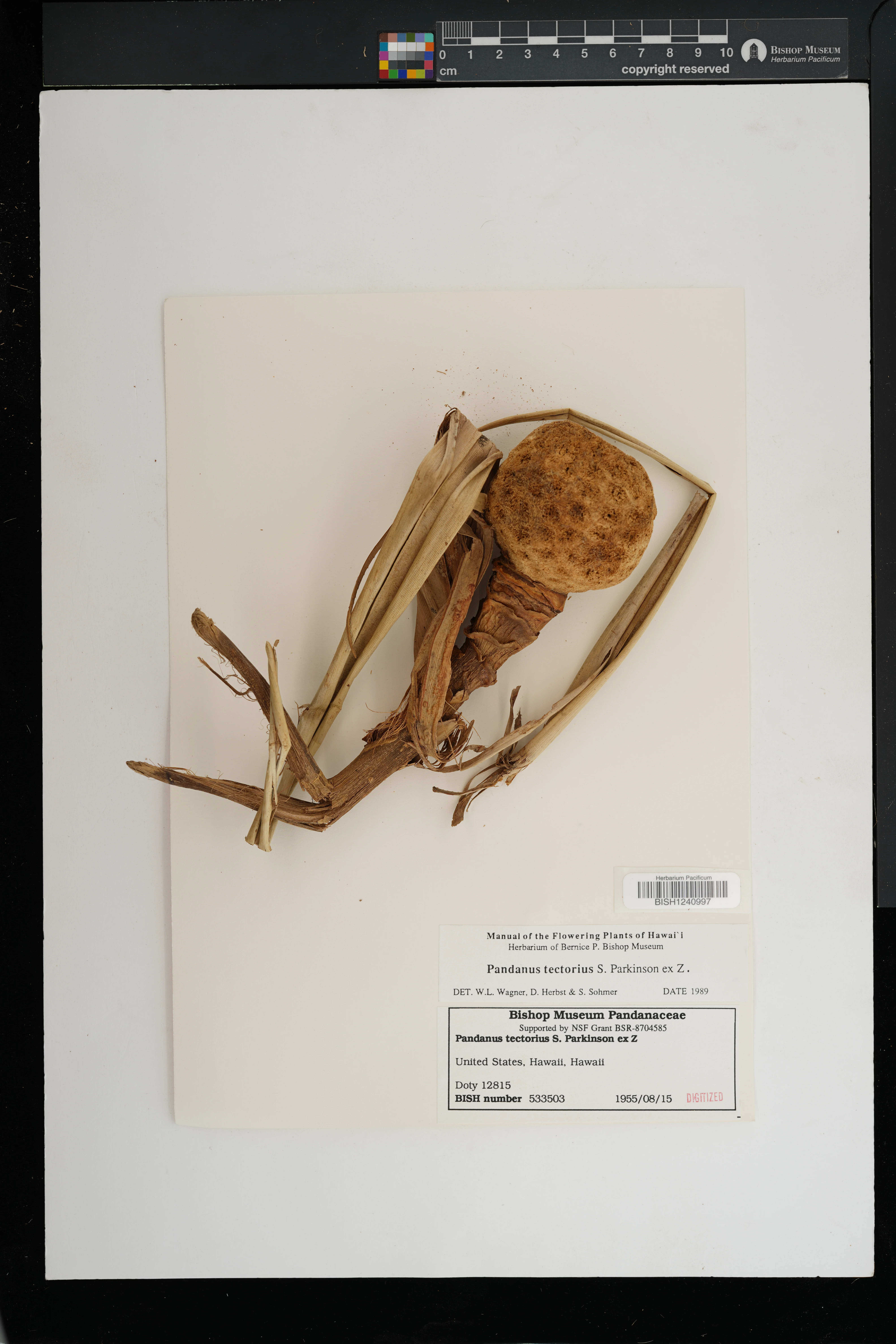 Tree 9m tall; roots spreading laterally at ground level; prop roots from 1m above ground; fruits orange at maturity; fruiting head exceptionally large |
