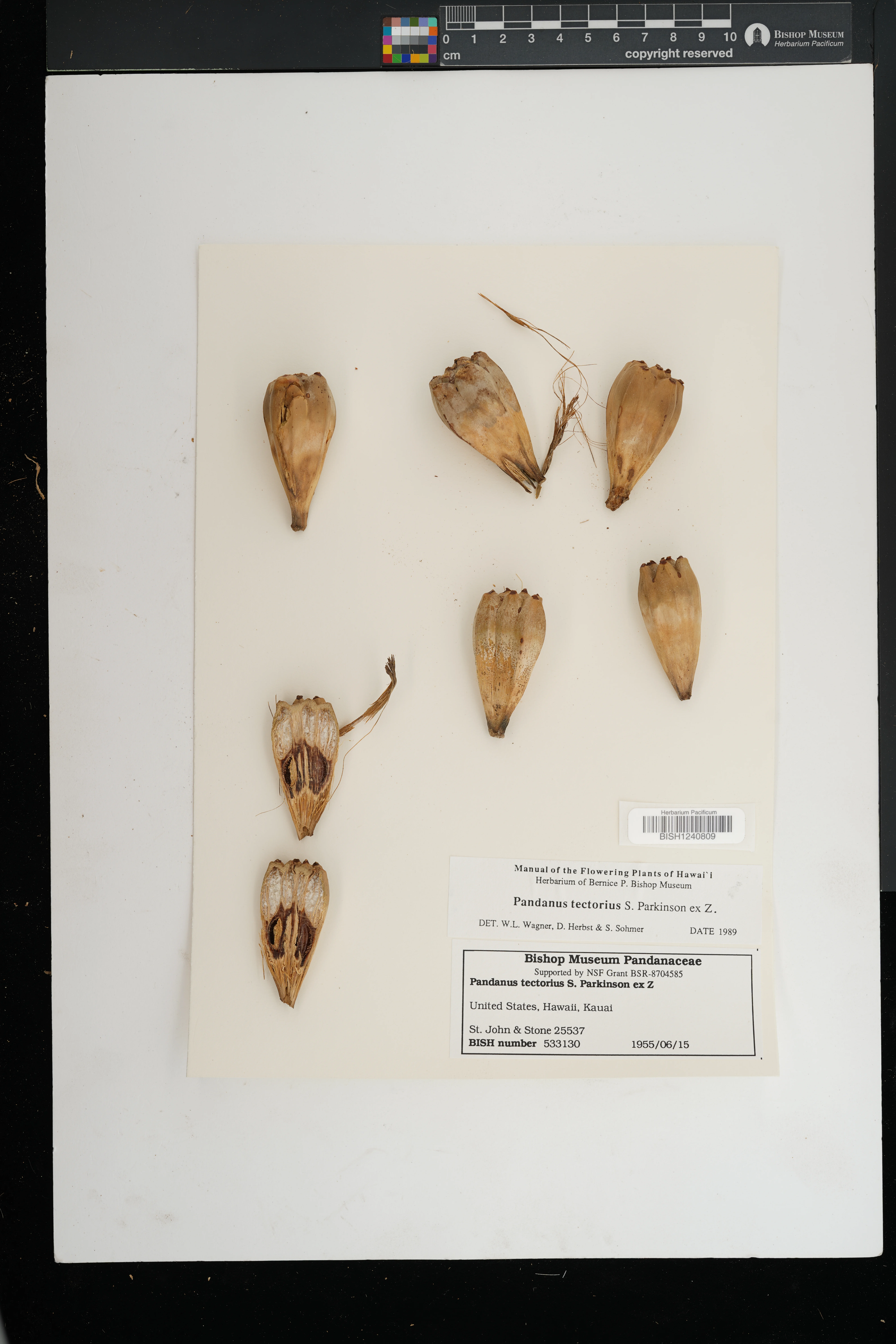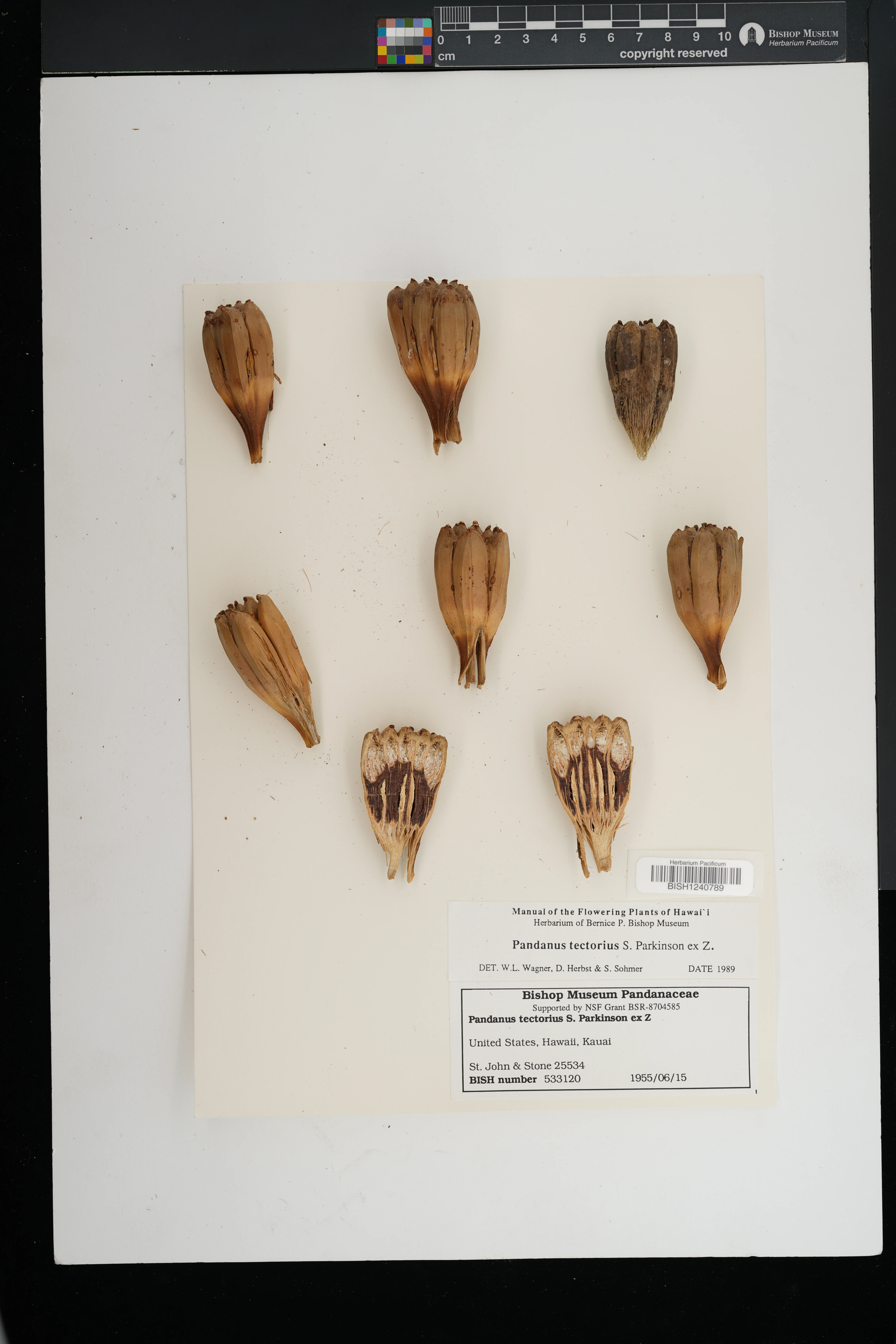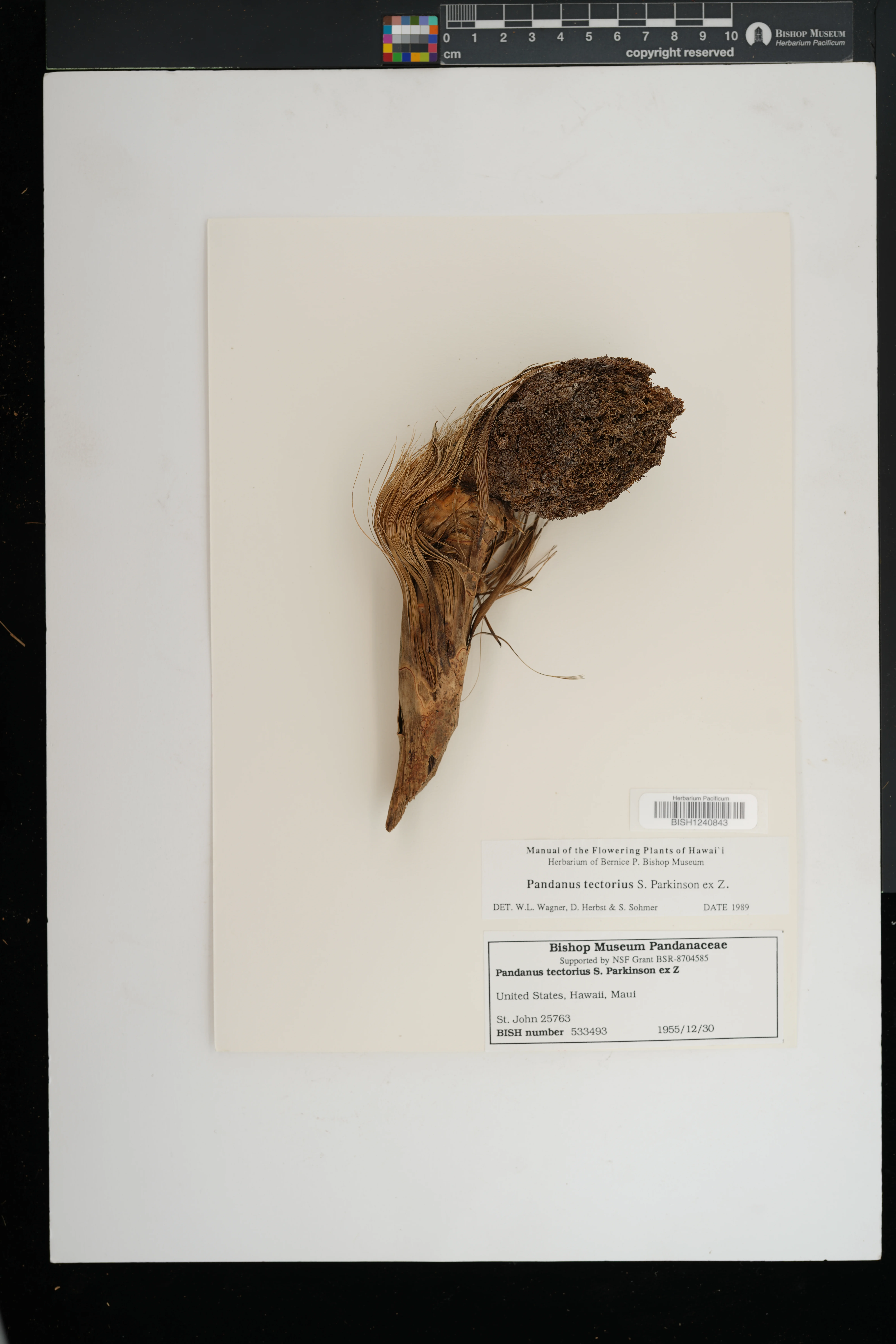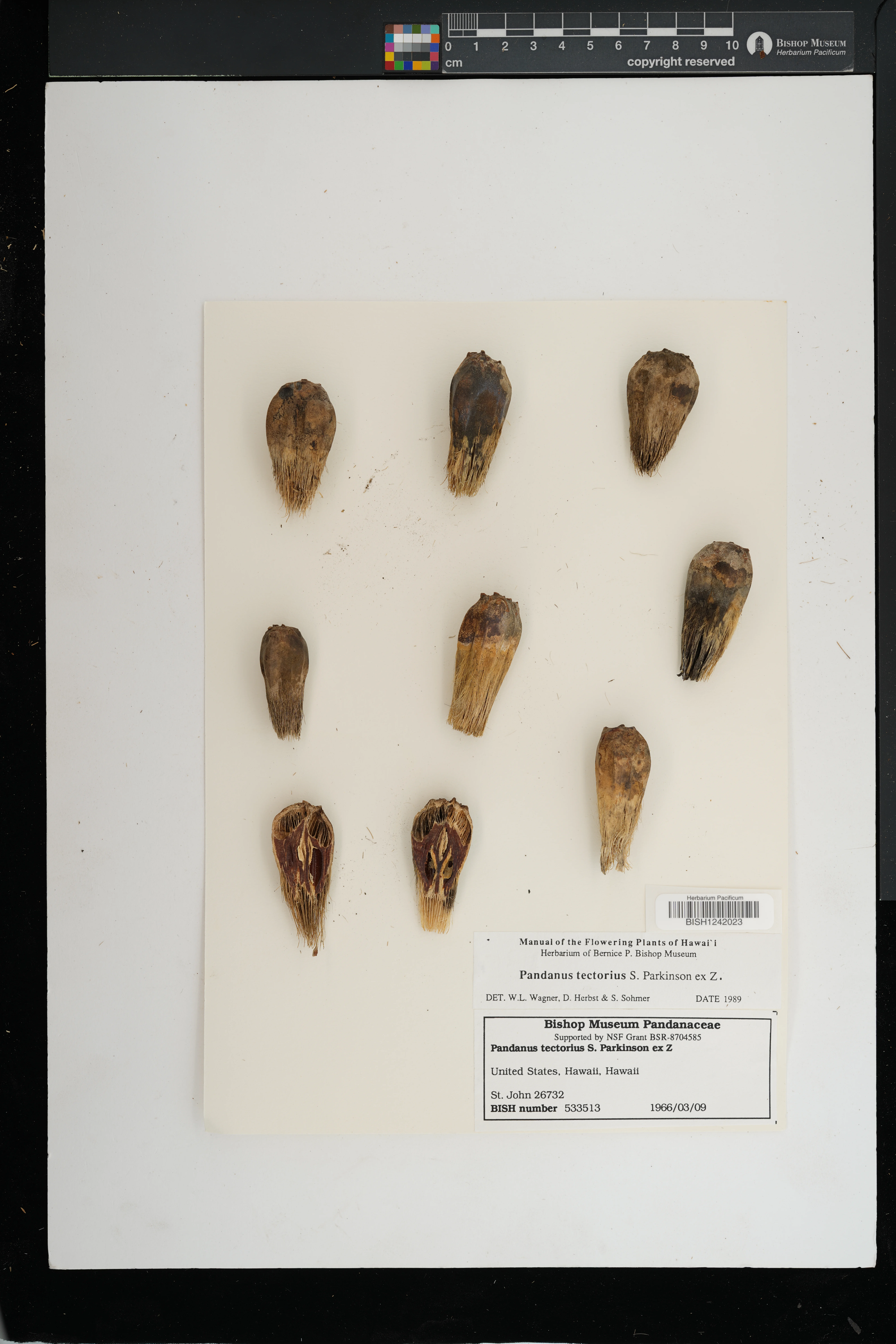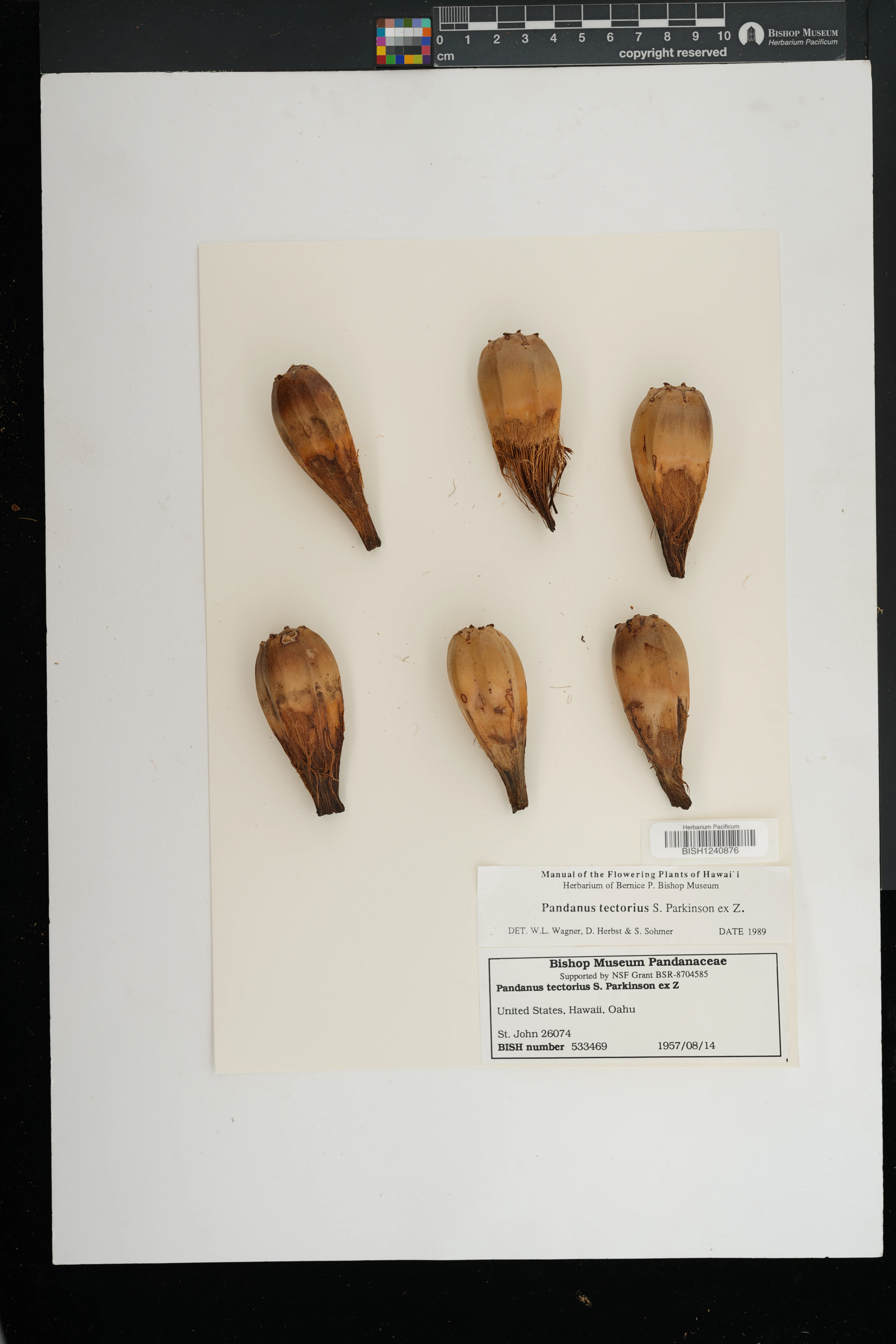 Tree 9m tall; roots spreading laterally at ground level; prop roots from 1m above ground; fruits orange at maturity; fruiting head exceptionally large |