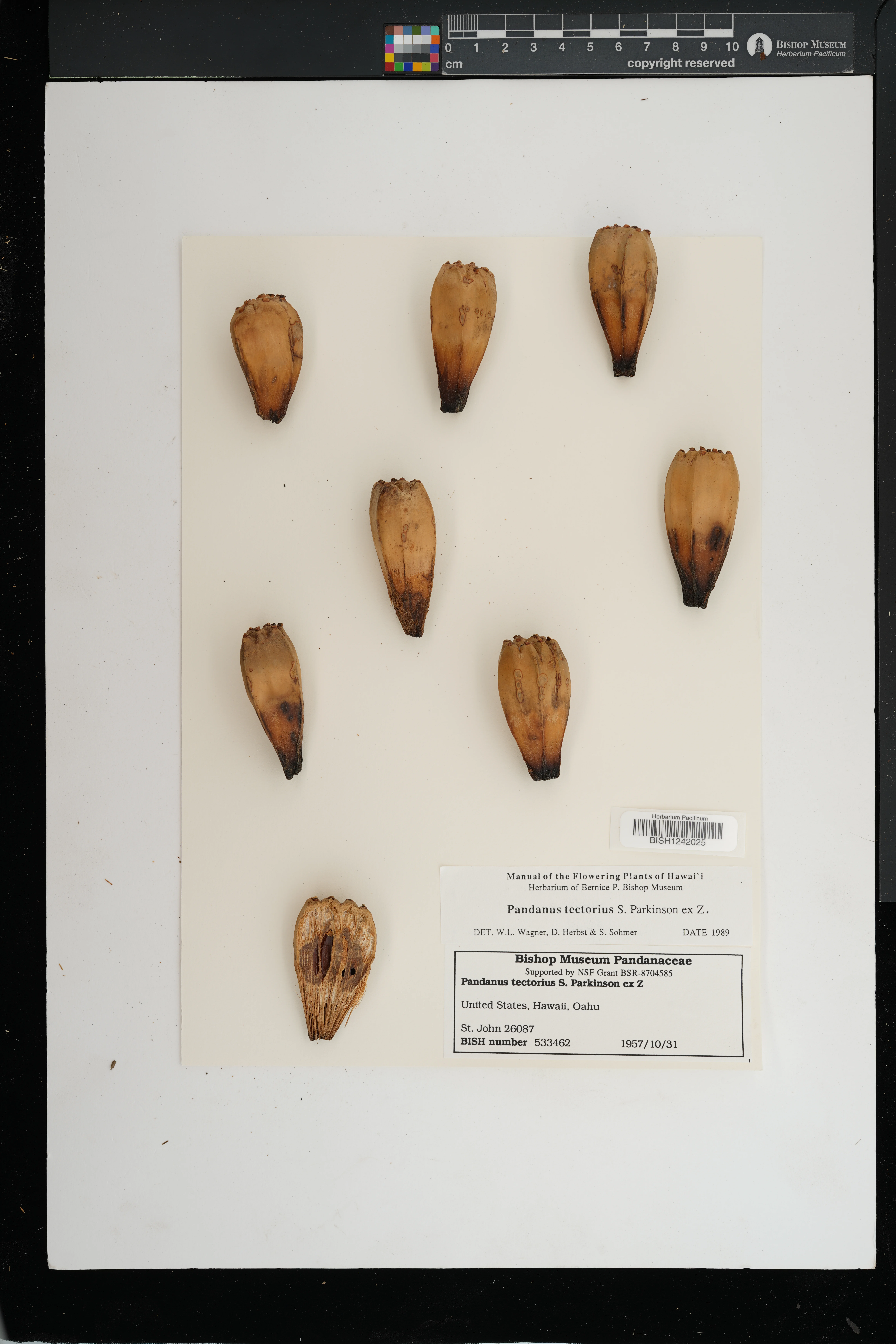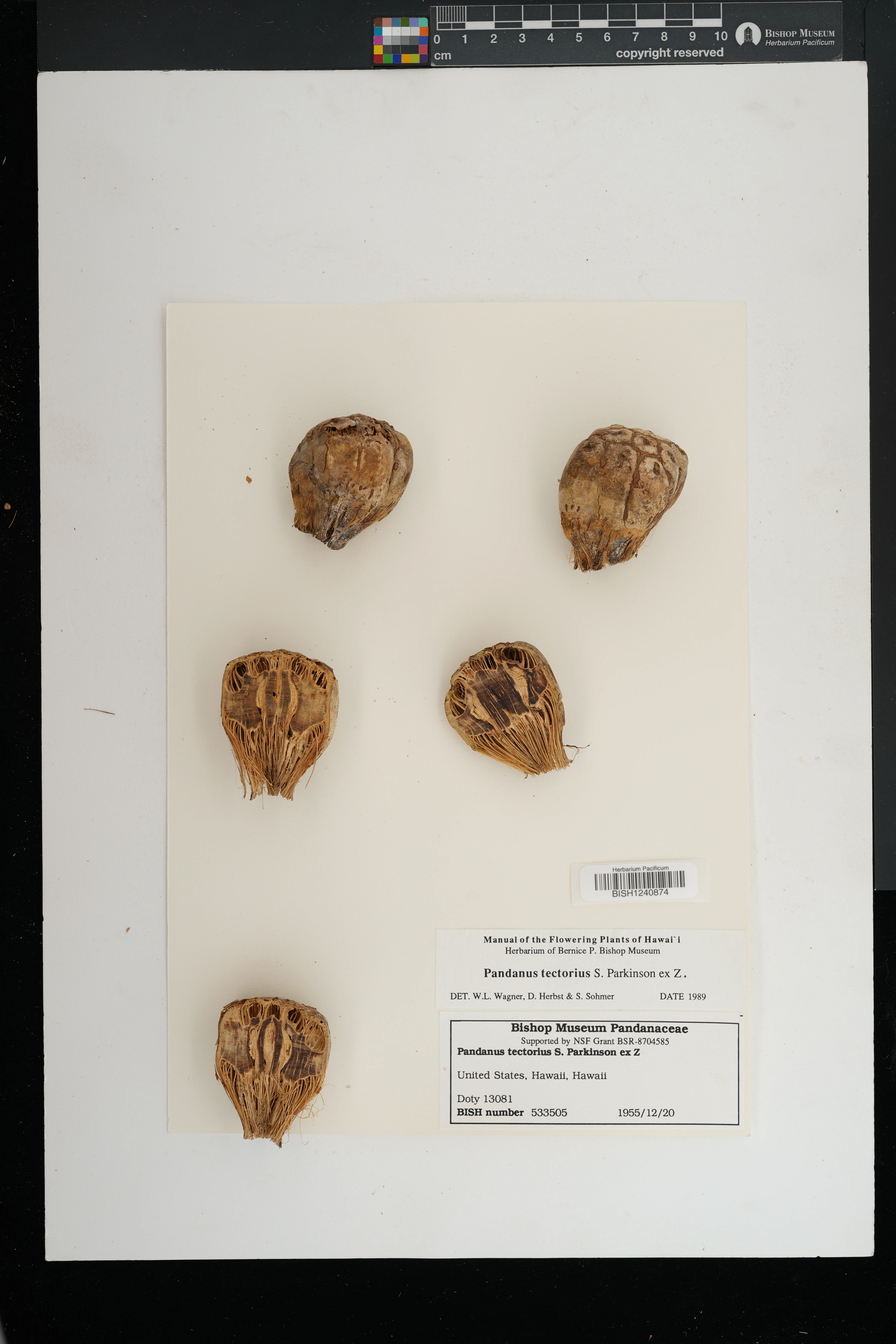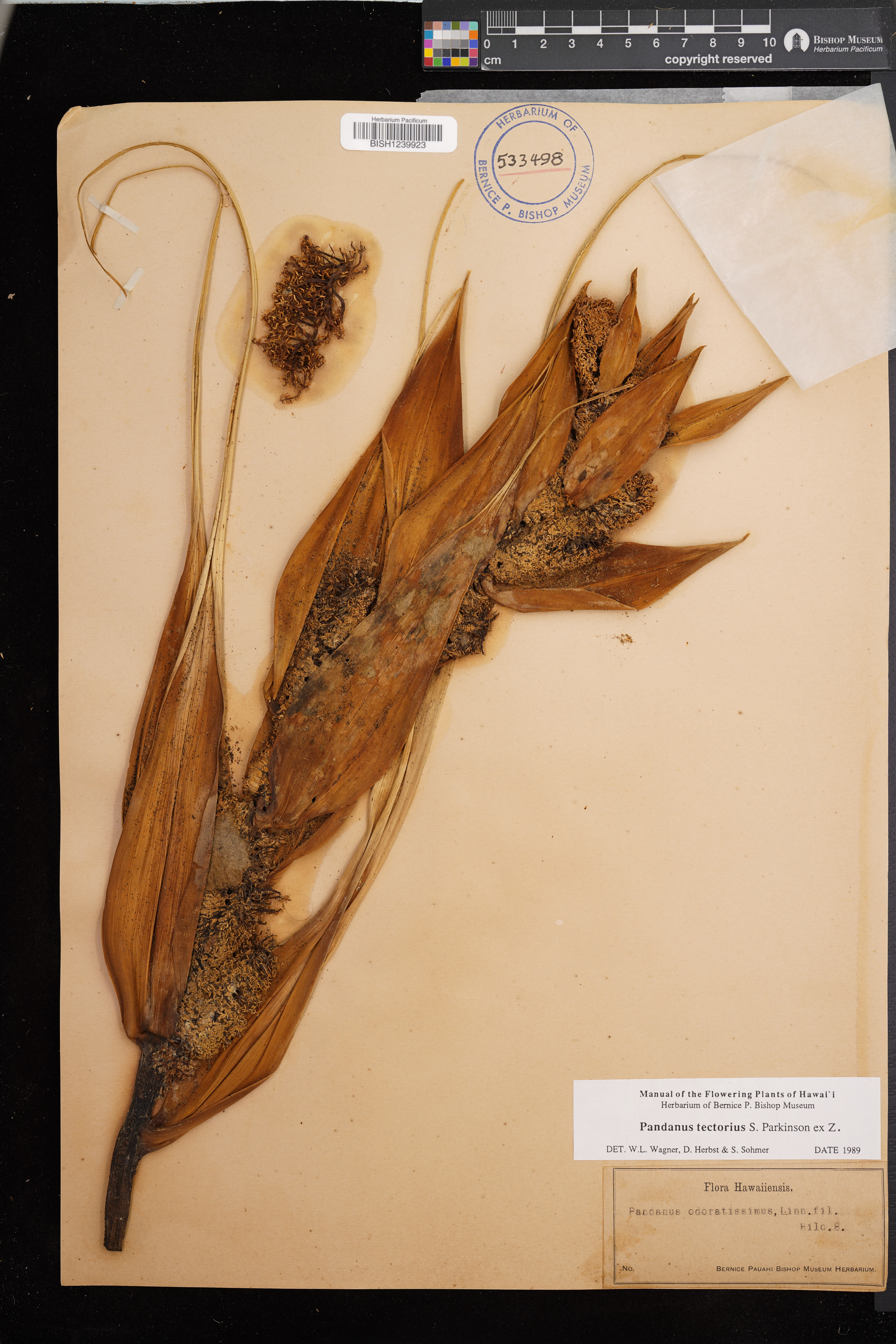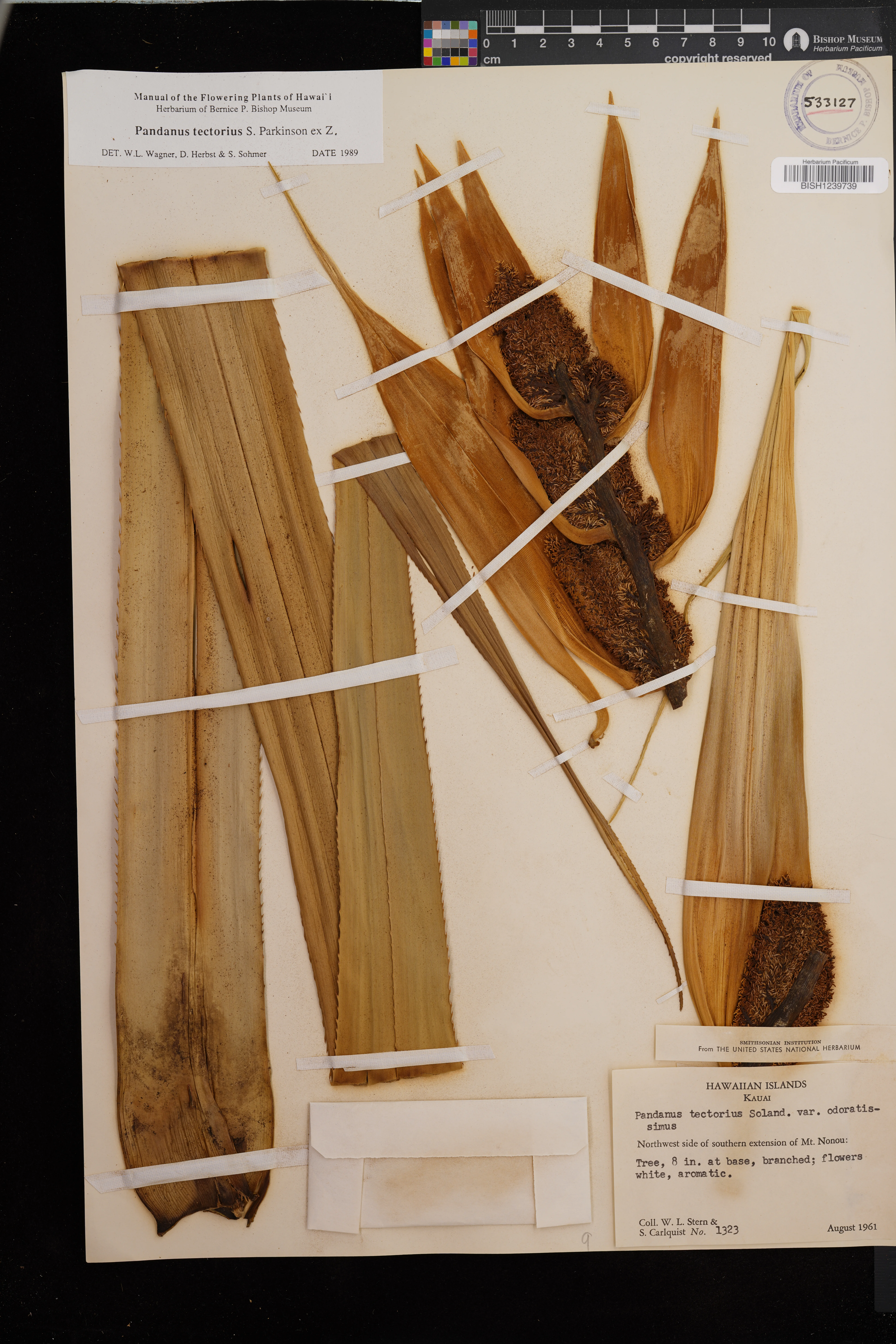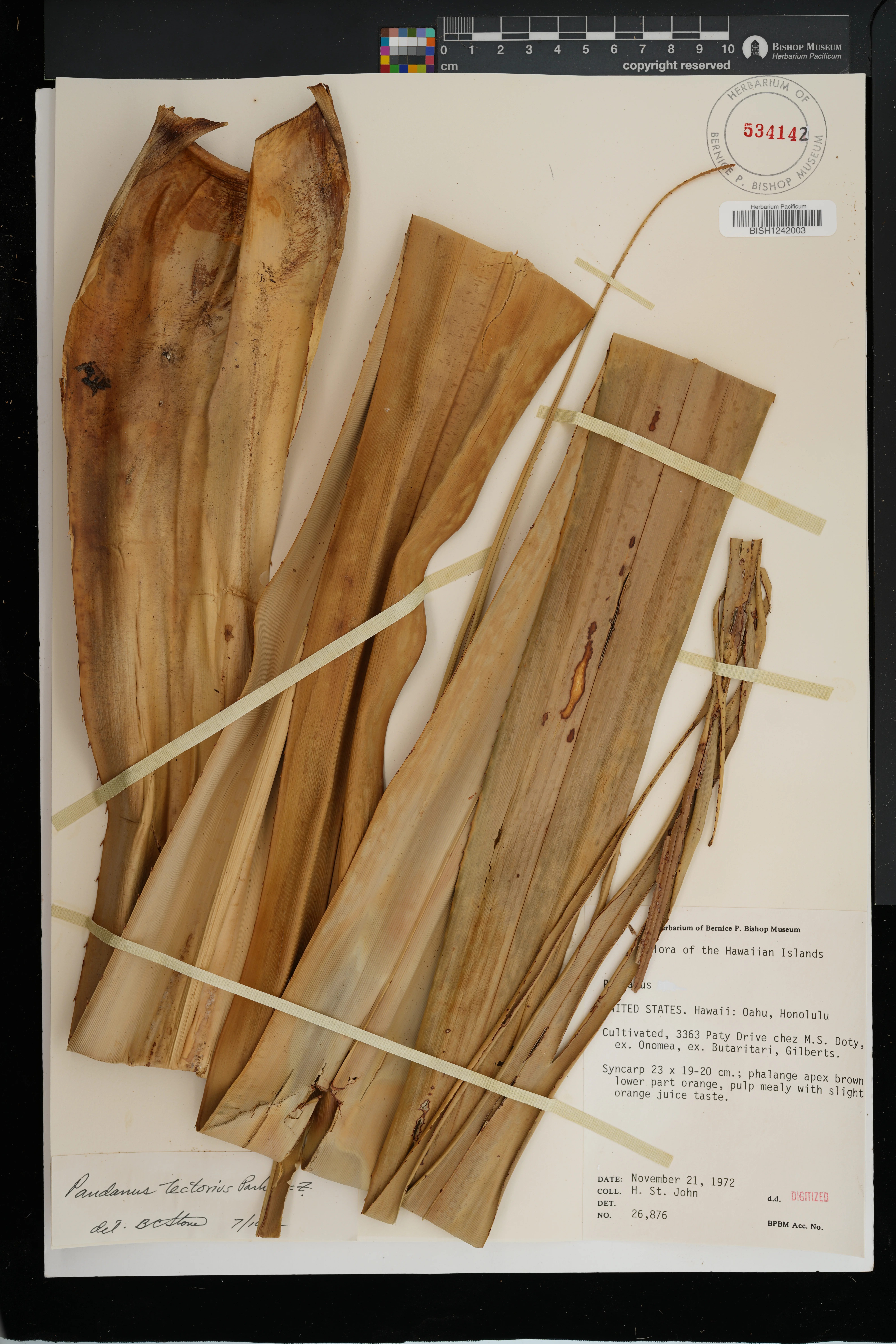 Tree 9m tall; roots spreading laterally at ground level; prop roots from 1m above ground; fruits orange at maturity; fruiting head exceptionally large |