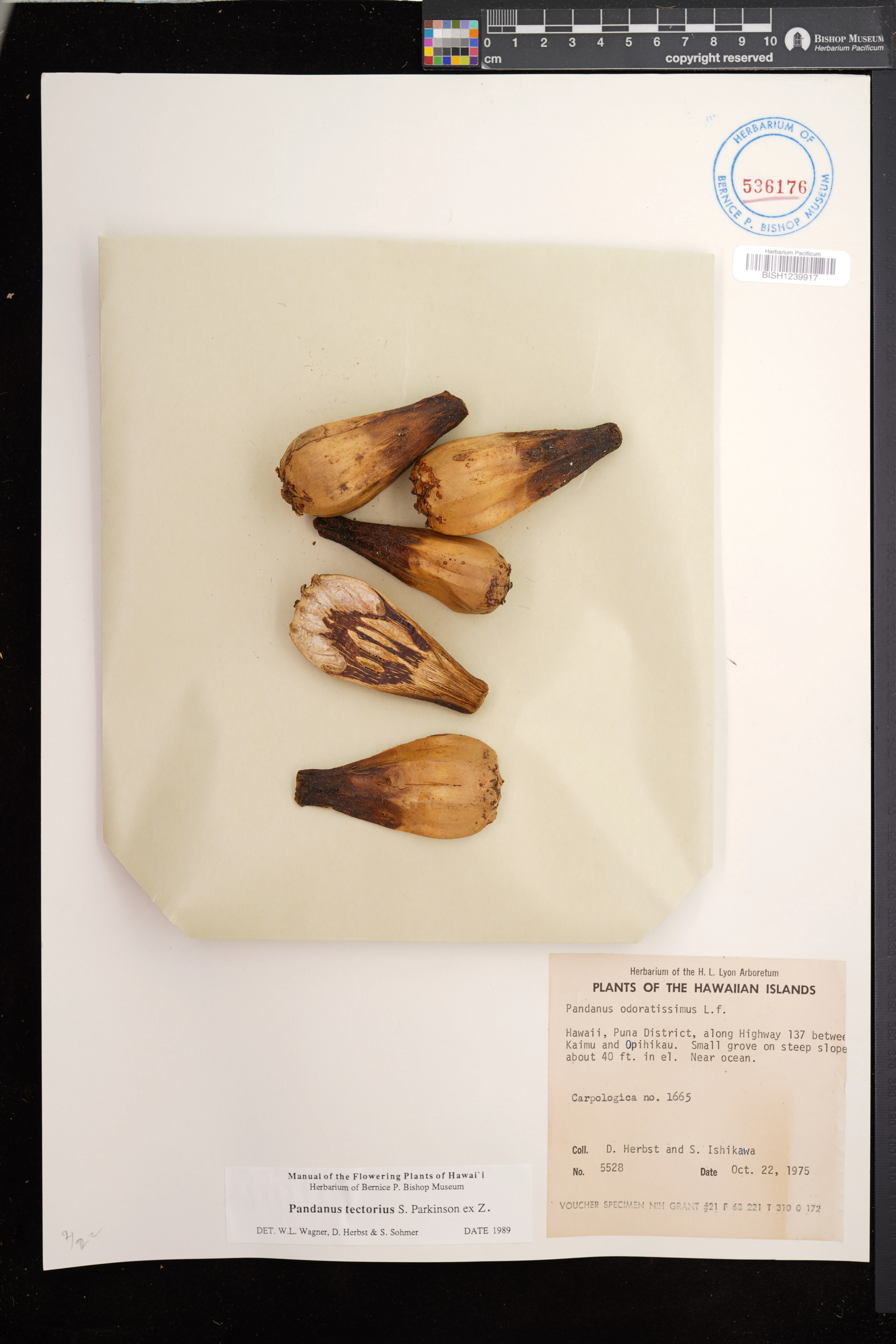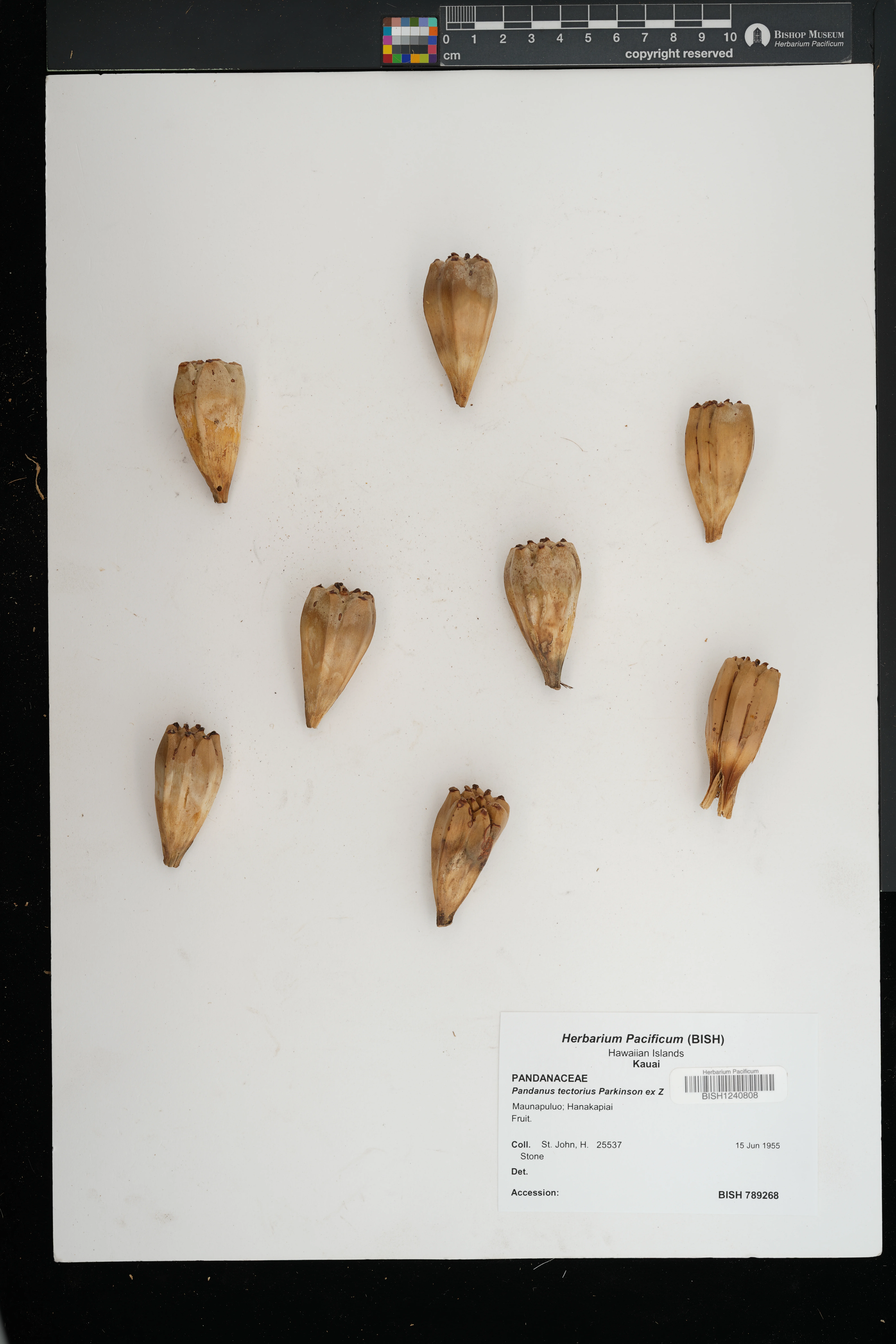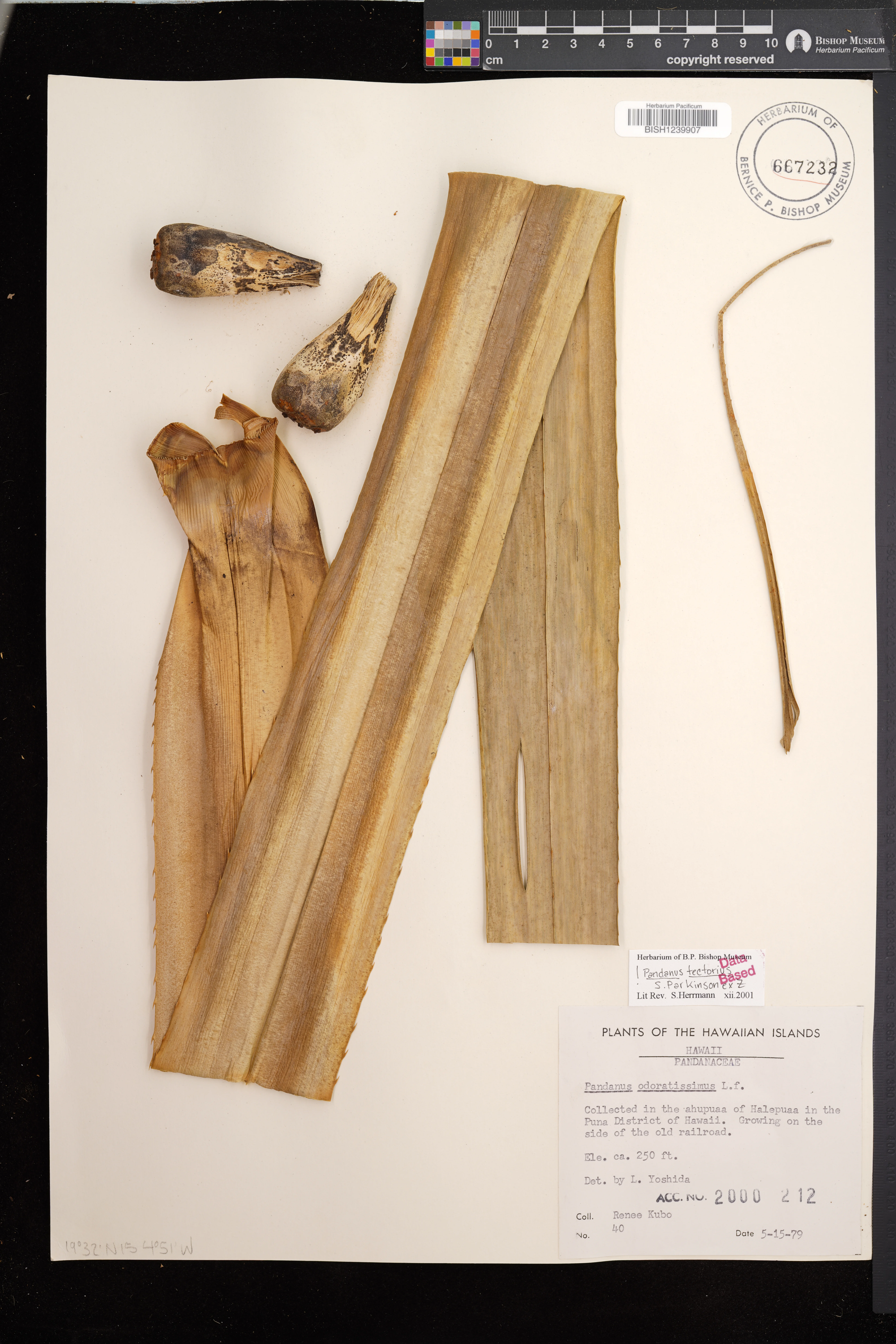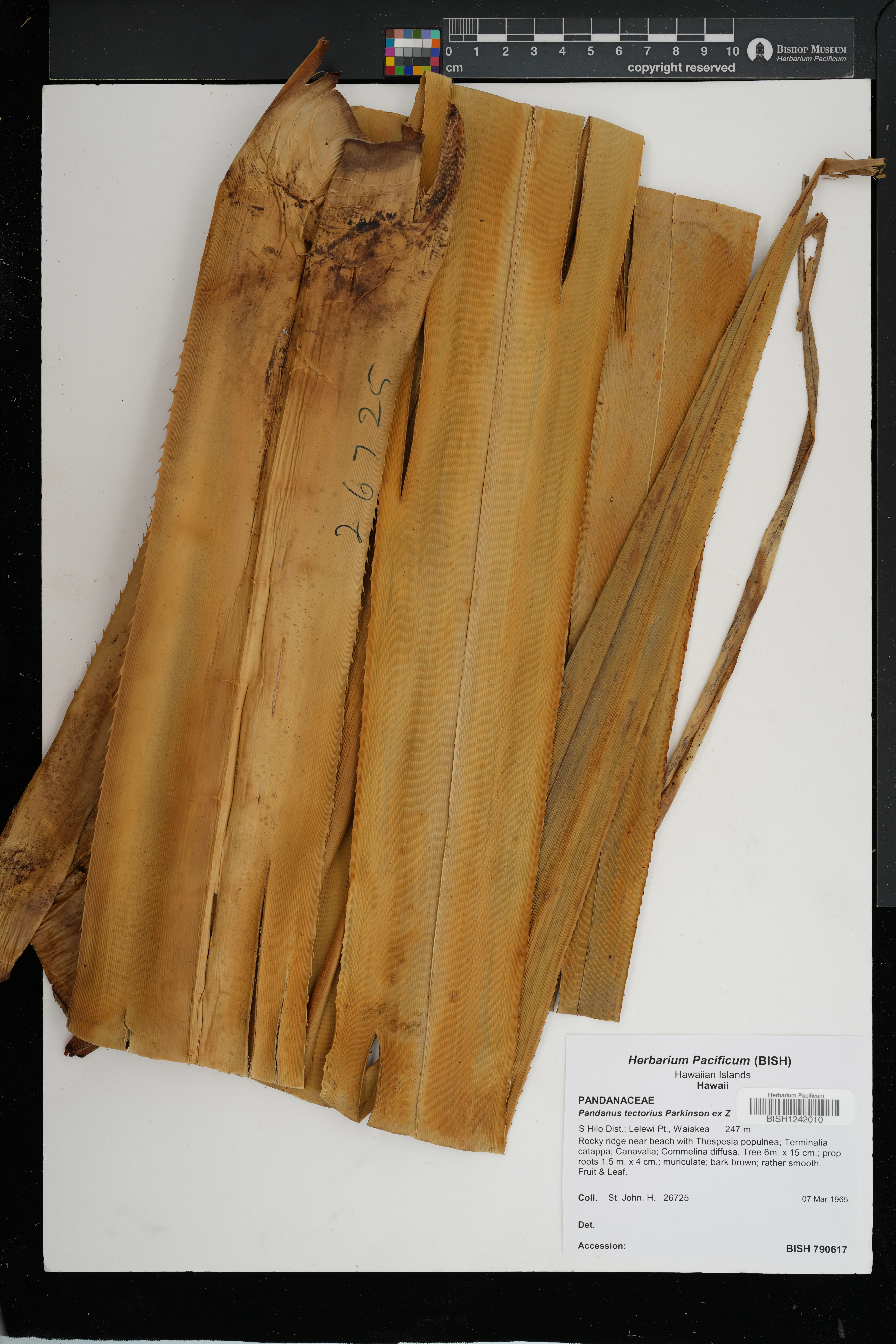 Tree 2 m tall. Thick prop roots. Leaves thornless except along driptip. Collection consists of a single ripe fruit. |