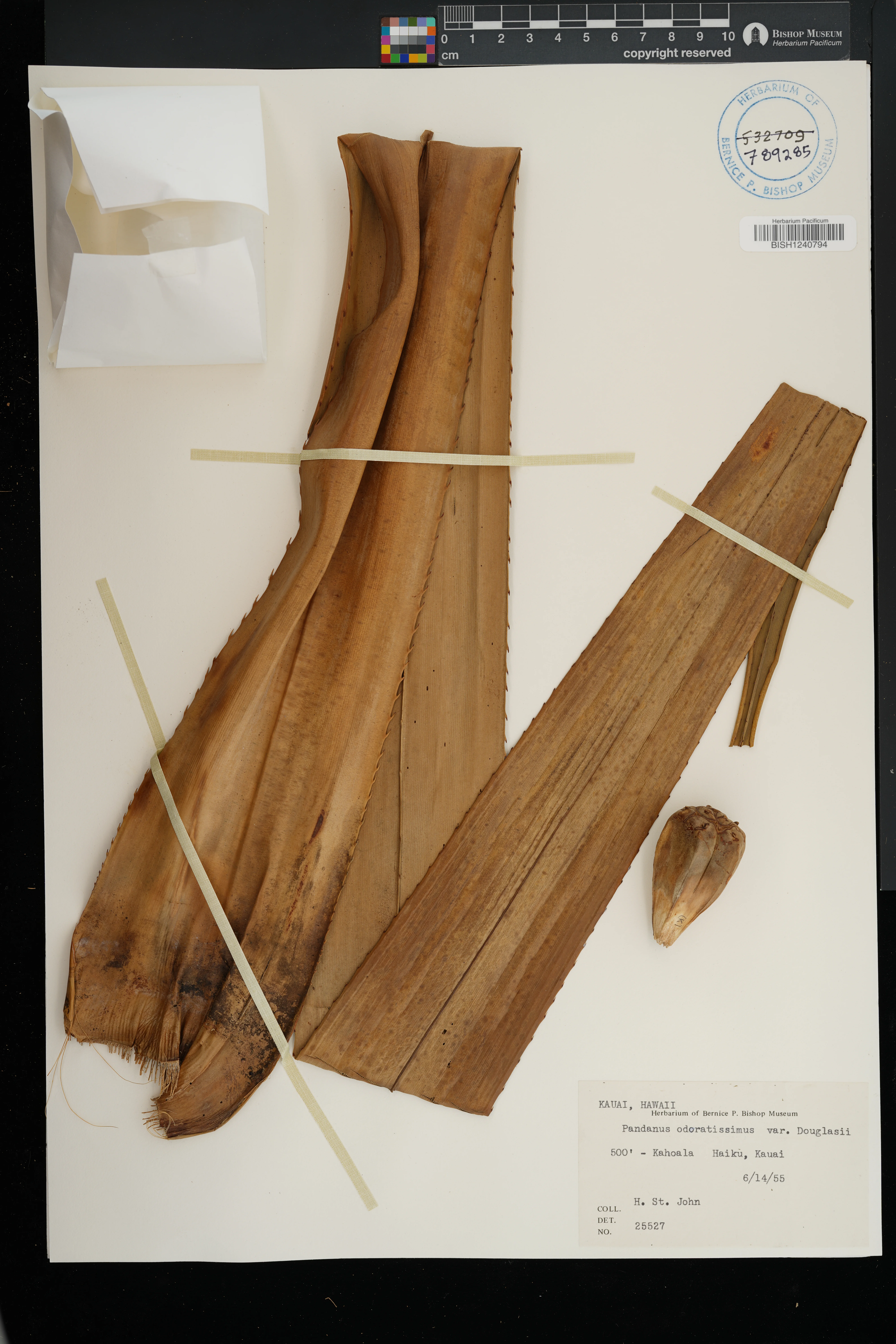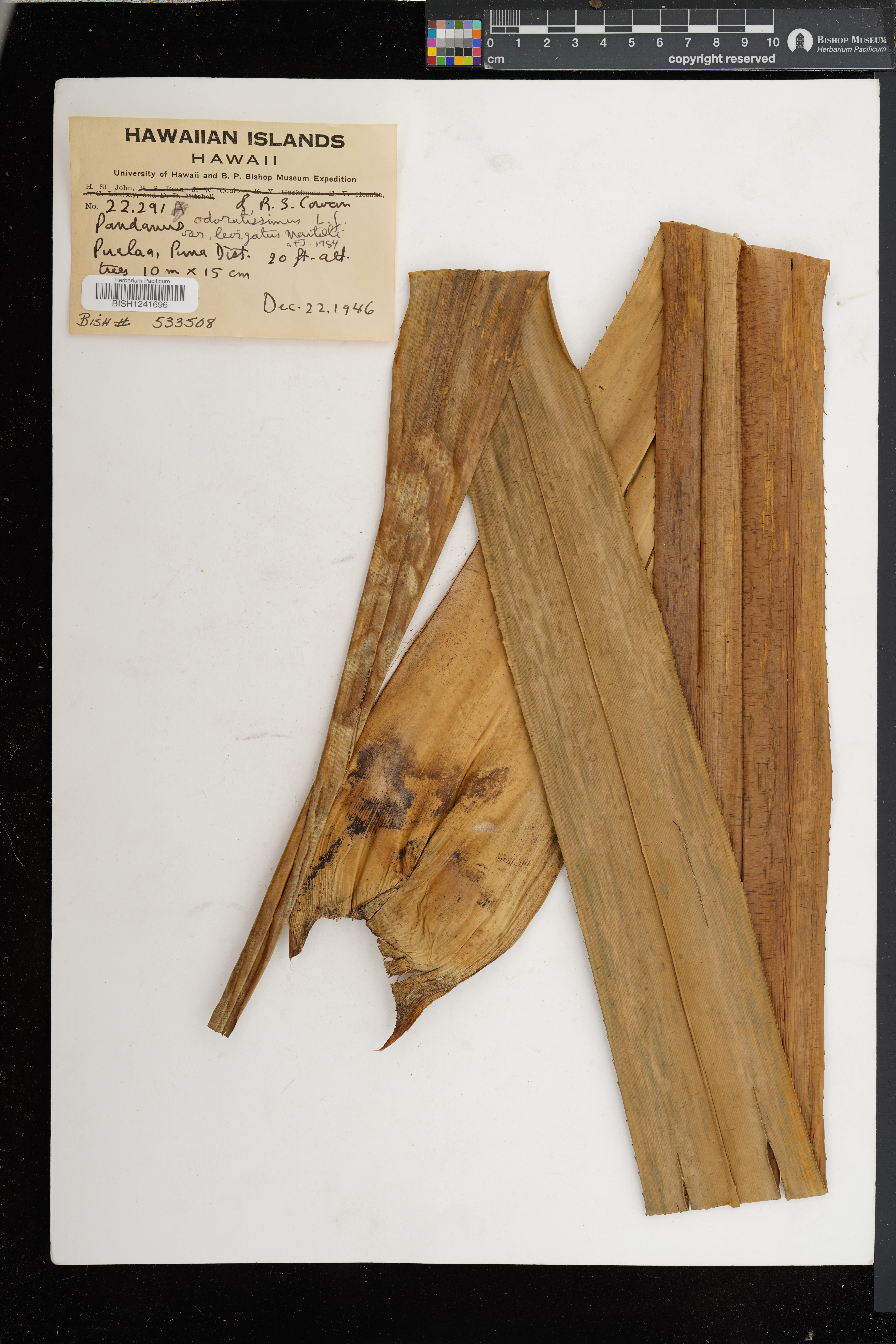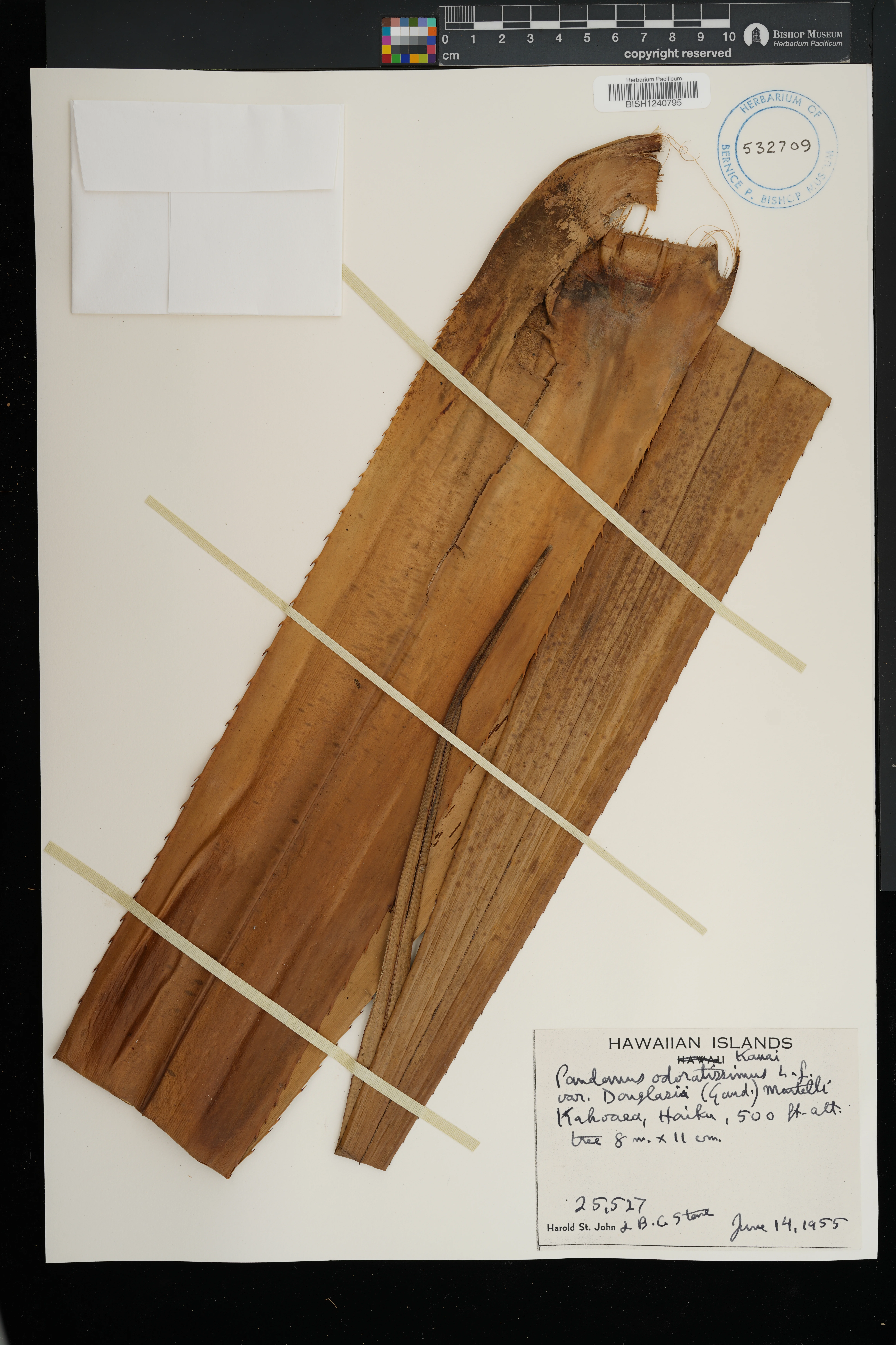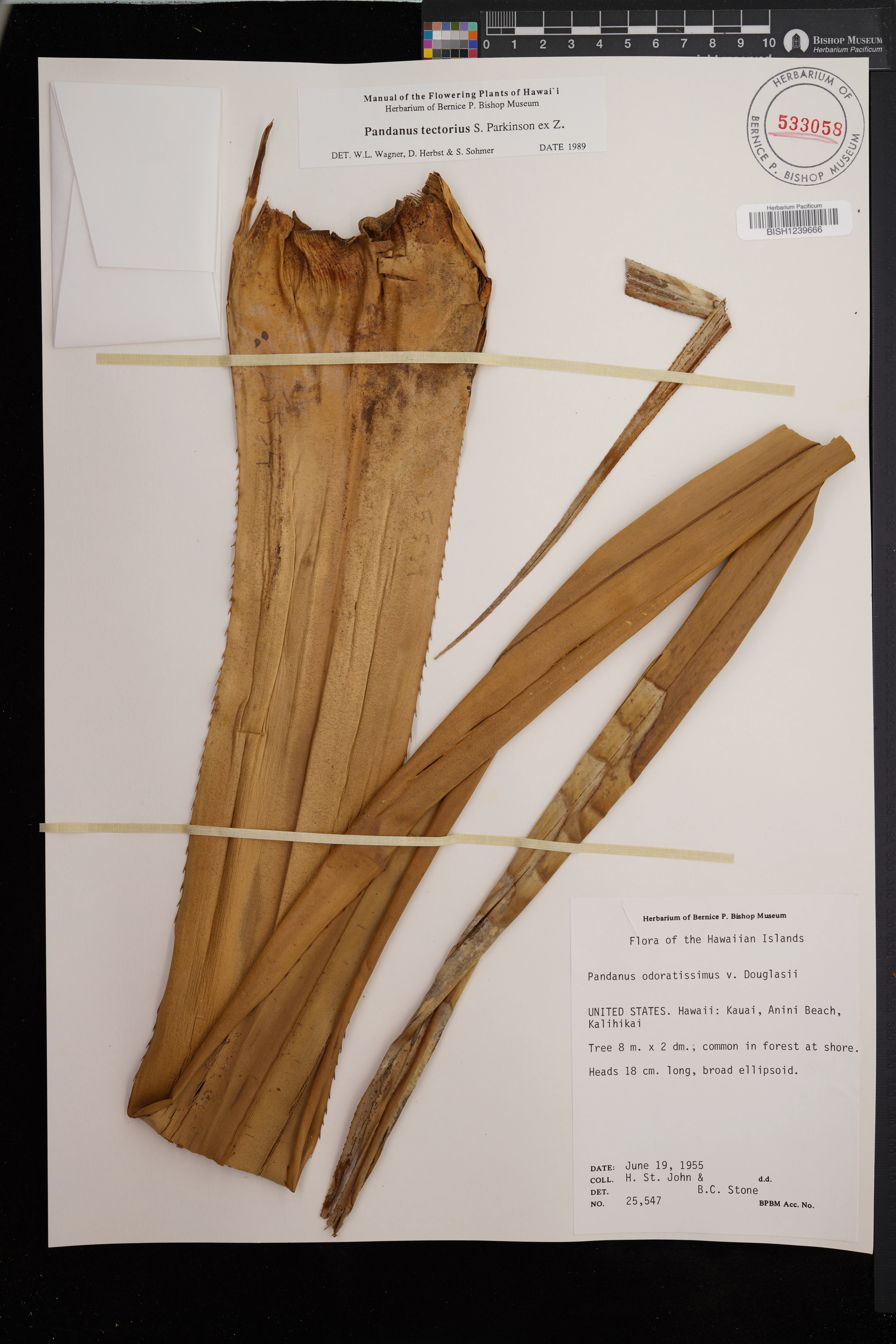 Tree 2 m tall. Thick prop roots. Leaves thornless except along driptip. Collection consists of a single ripe fruit. |