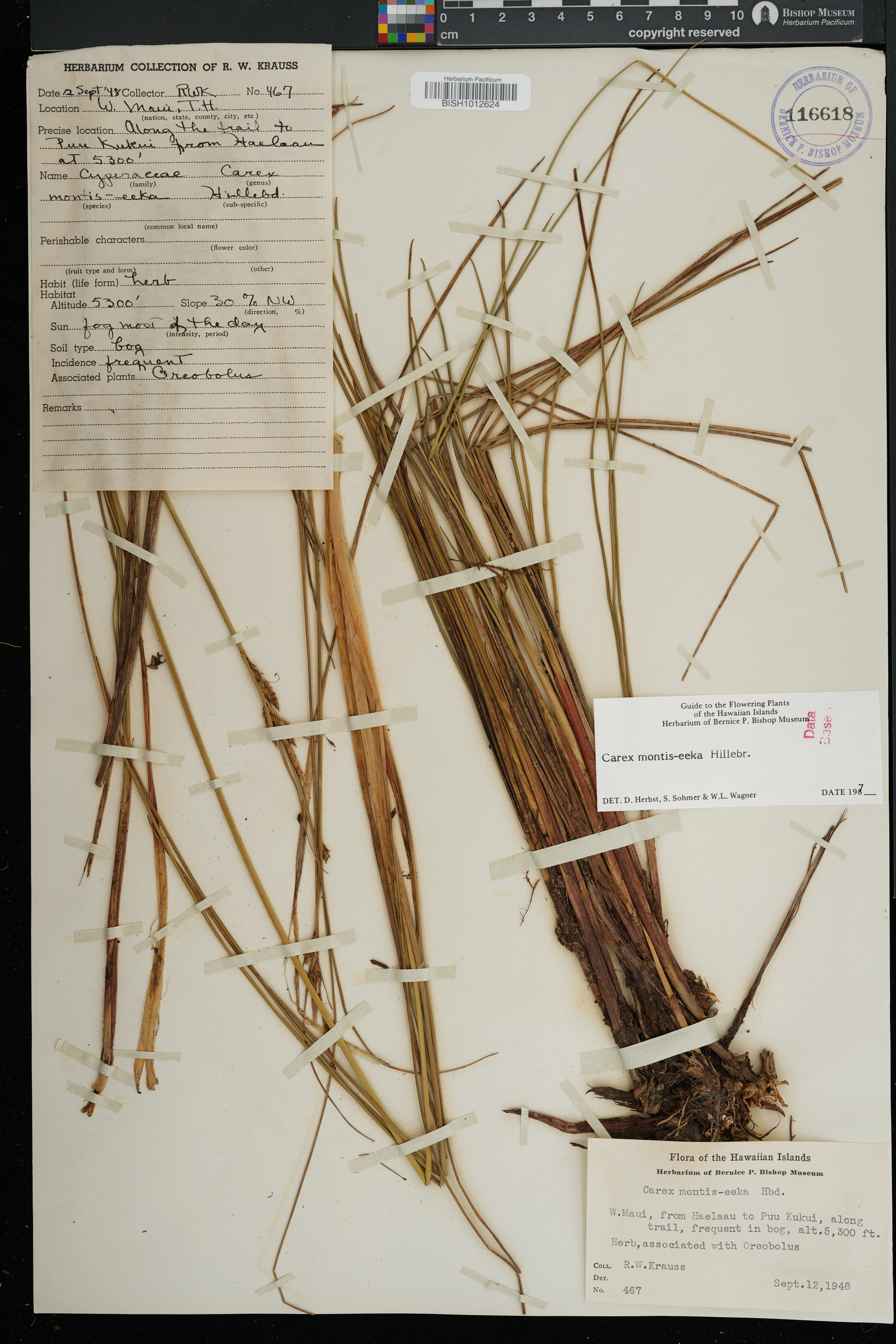 55% cover of Metrosideros polymorpha,~25-50 cm high, 15% cover of Argyroxiphium grayanum, 5% cover of Oreobolus furcatus; Coprosma ochracea, Leptecophylla tameiameiae, Vaccinium dentatum, Geranium hillebrandii, Lycopodiella cernua, Carex montis-eeka, Deschampsia nubigena, Dichanthelium cynodon, Dichanthelium hillebrandianum |