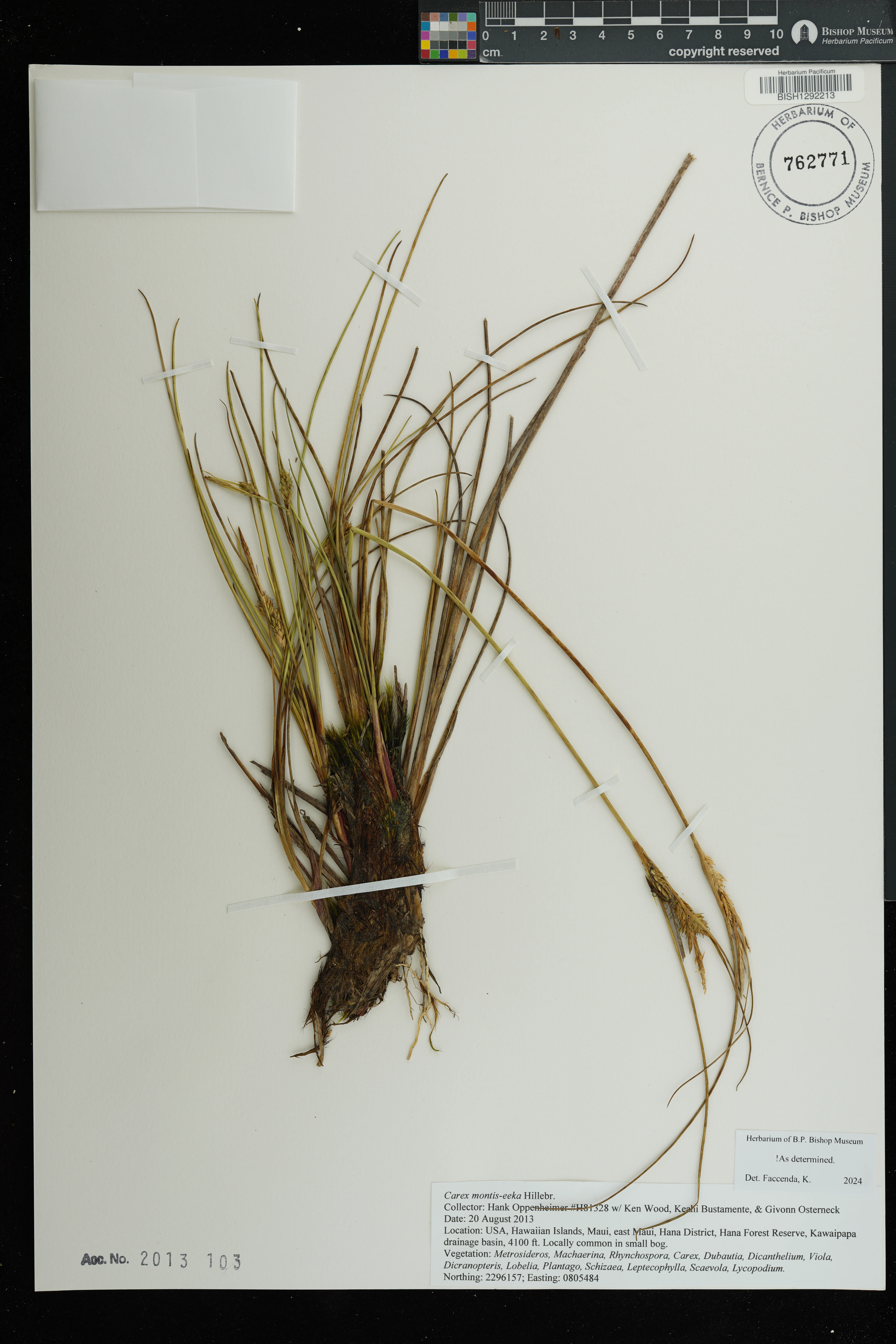 Machaerina-Rhynchospora-Racomitrium montane bog W/ Dcranopteris linearis, Lycopodiella cernua, Cheirondendron trigynum, Trematolobelia macrstachys, Vaccinium dentatum, Peperomia kipahuluensis, Metrosideros polymorpha Viola maviensis, L |