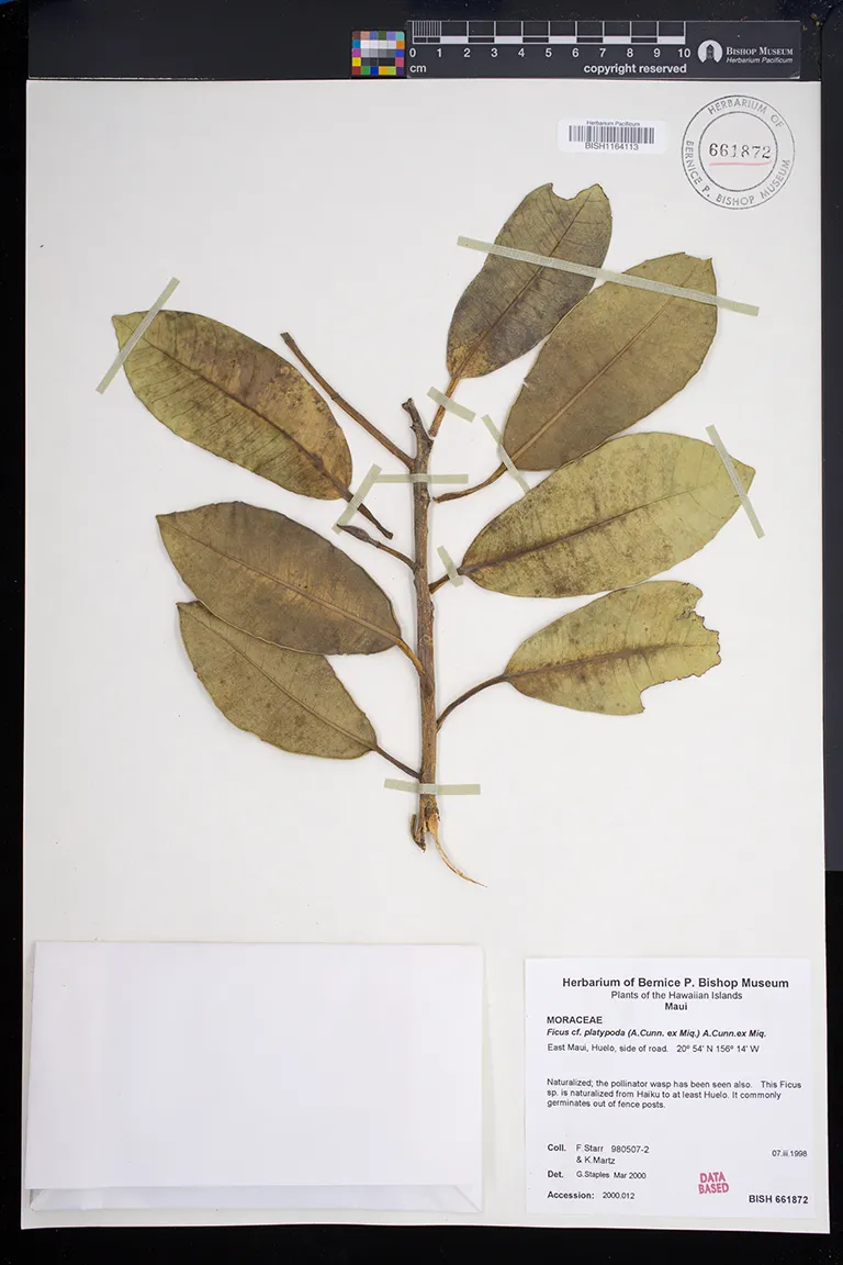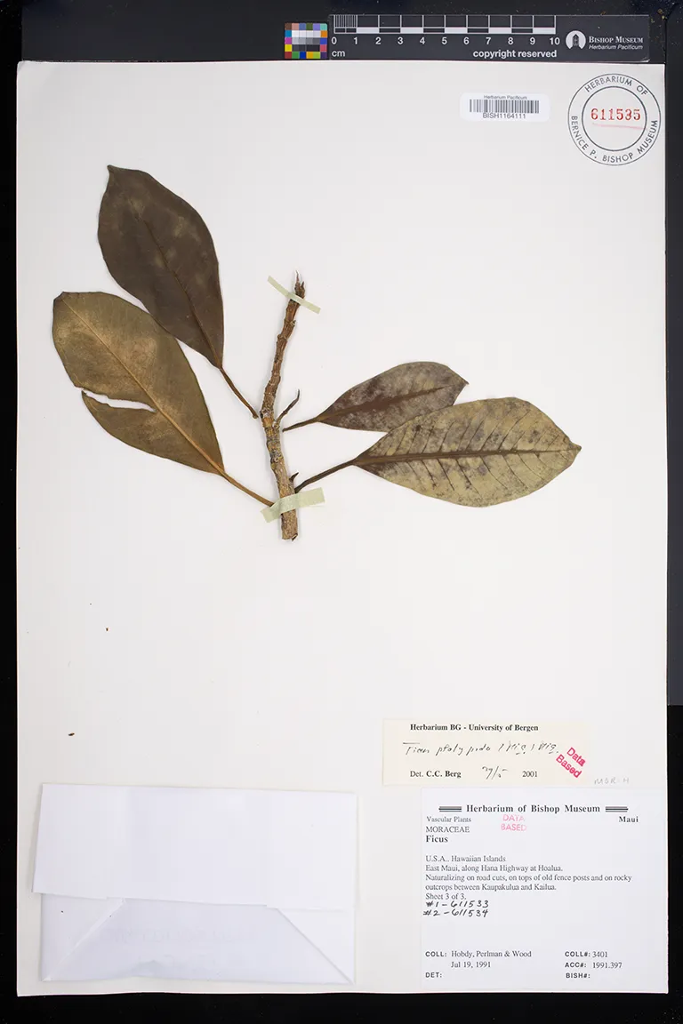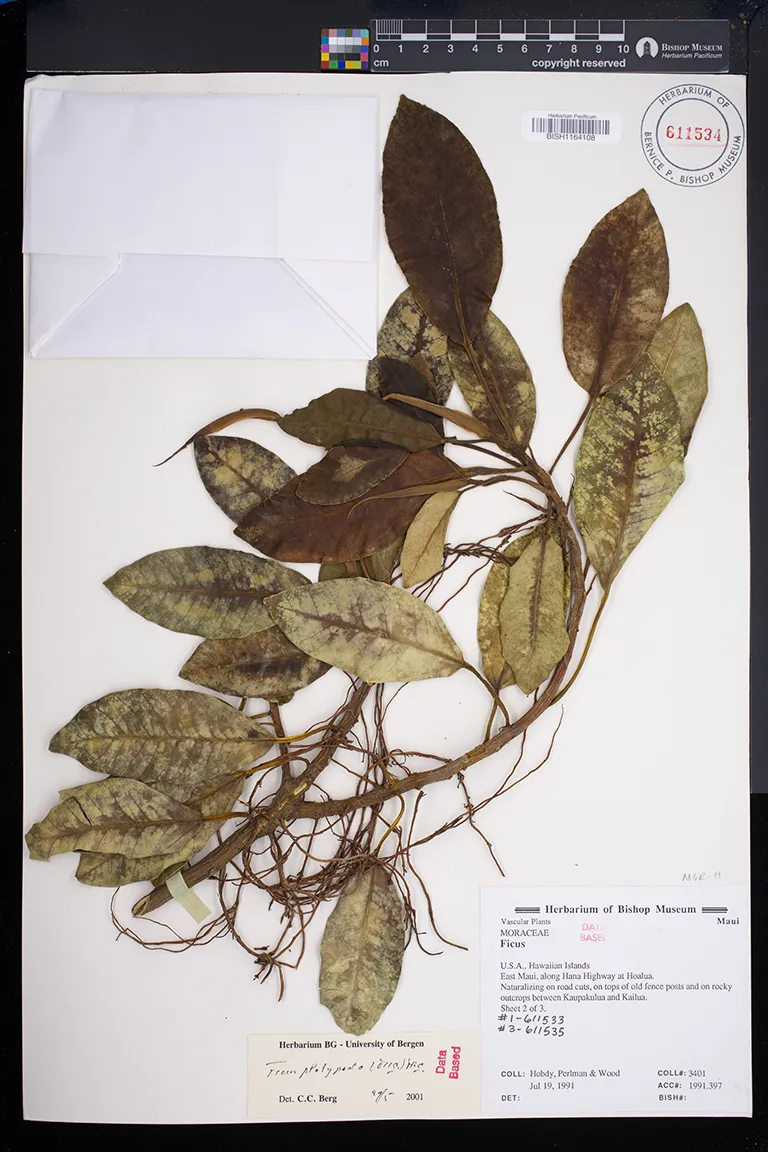 Probably an escape from nearby Maunalei Arboretum. Now common in the area both terrestrially and epiphytically. |