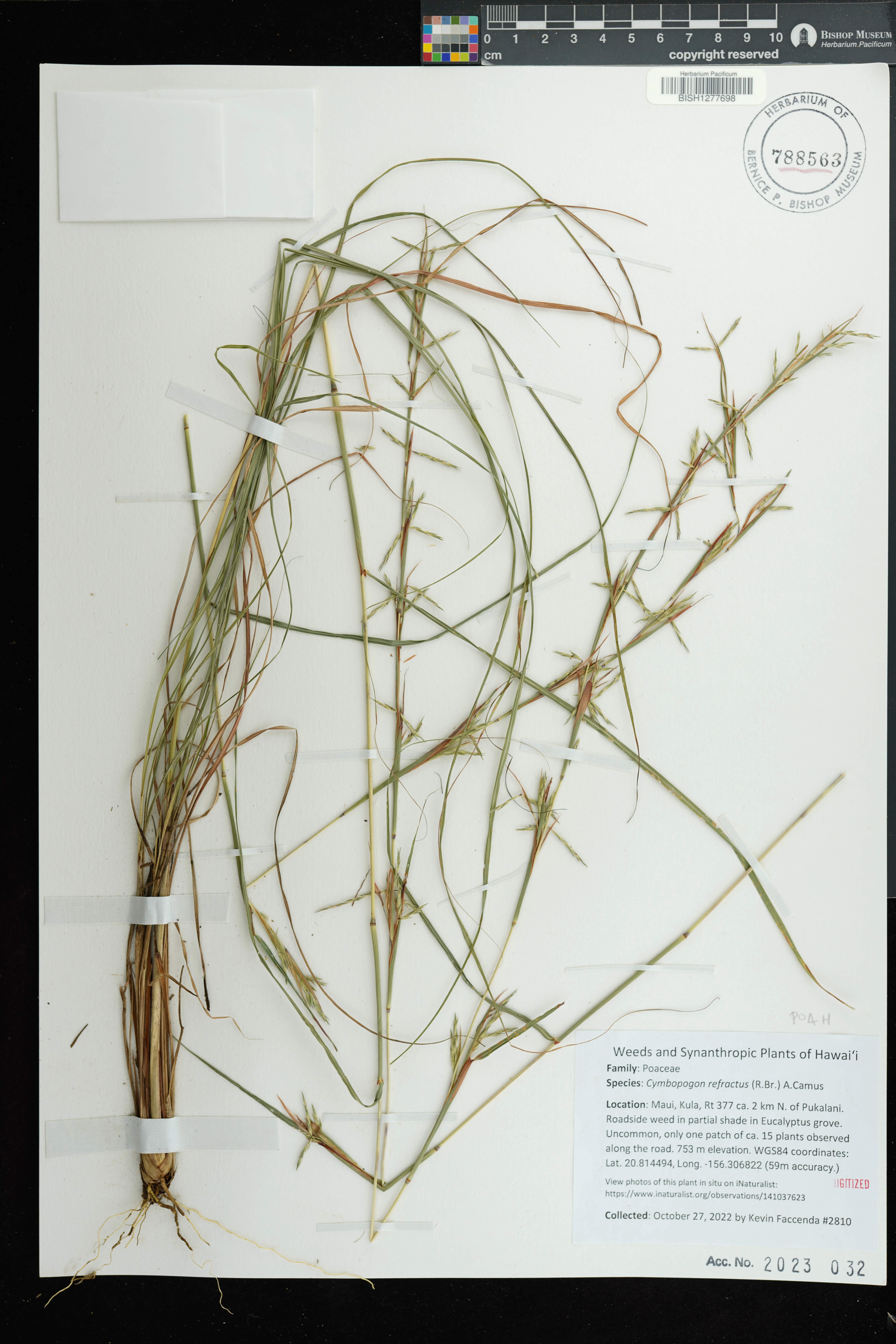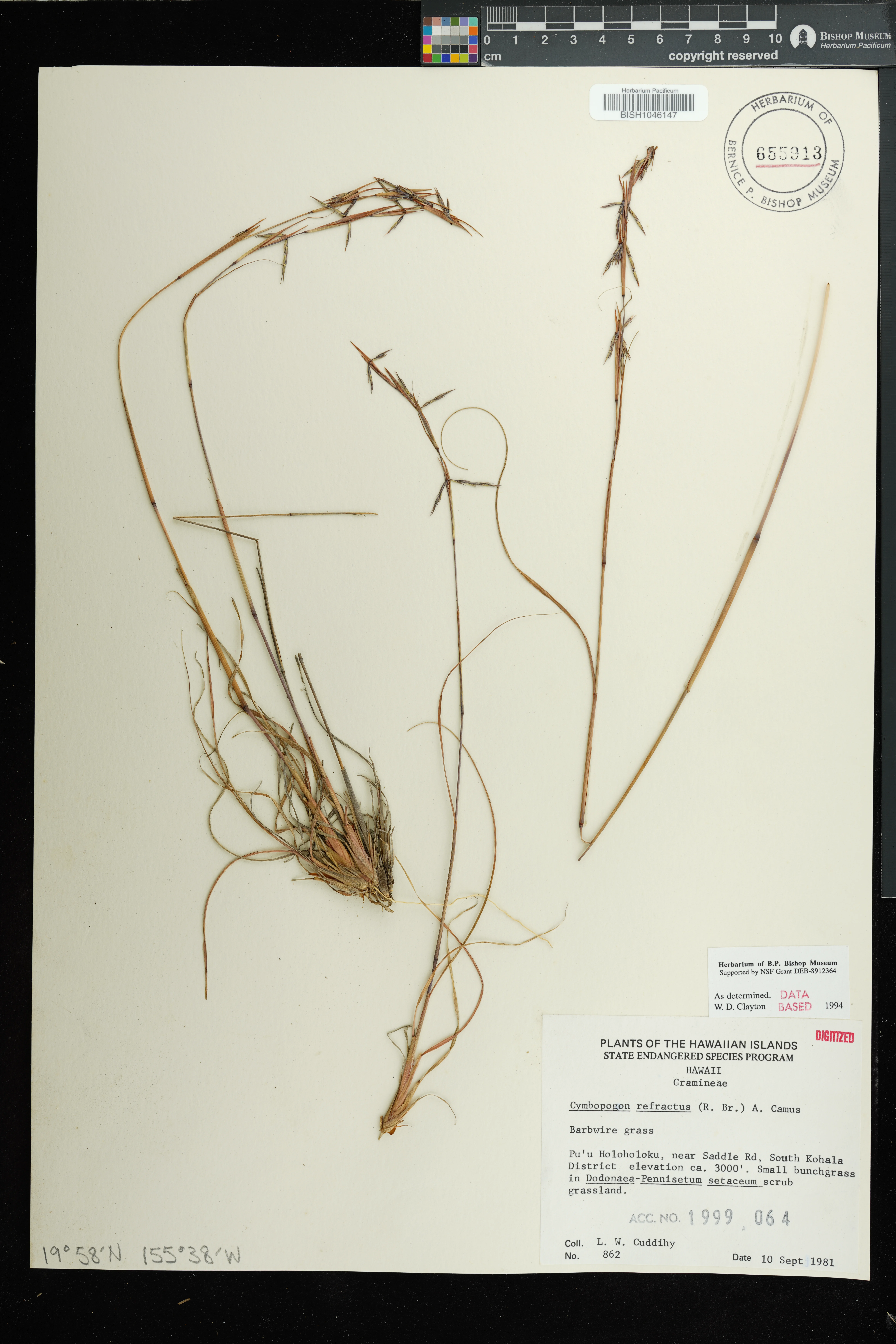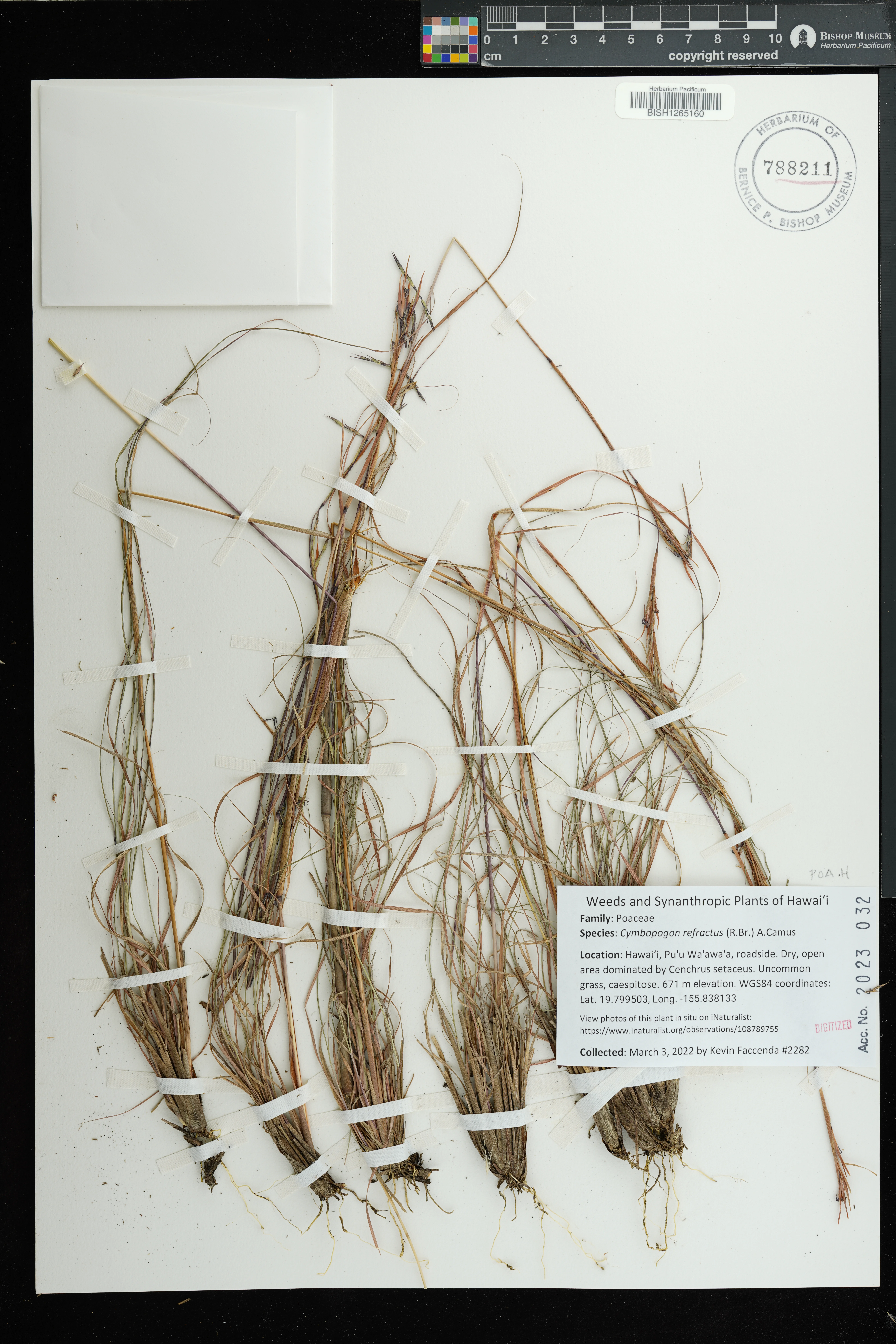 Occasional bunchgrass on steep, dry gulch slopes, growing with Hyparrhenia hirta, Melinis minutiflora, Waltheria, scattered Osteomeles, in Bidens micrantha ssp. kalealaha habitat. |