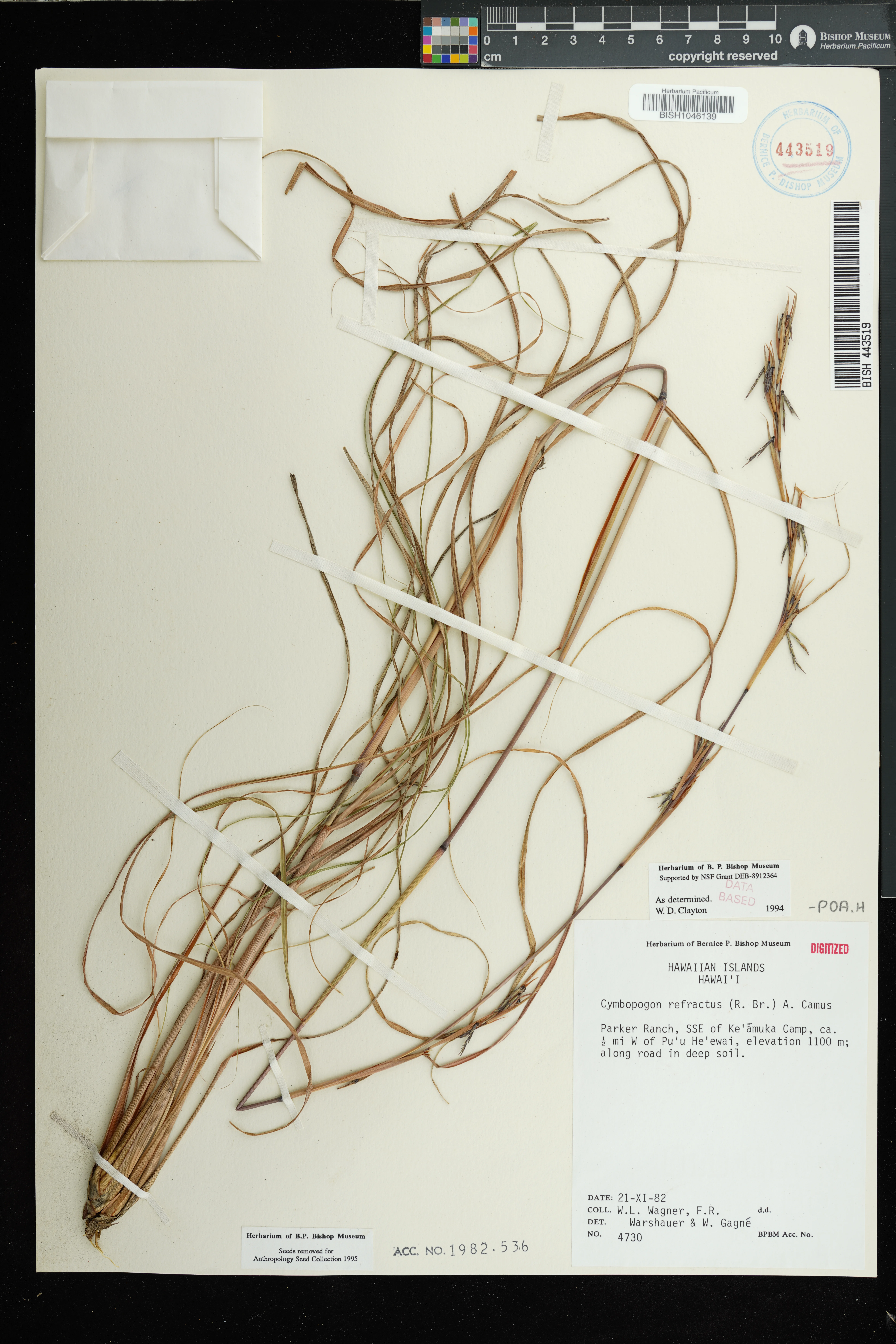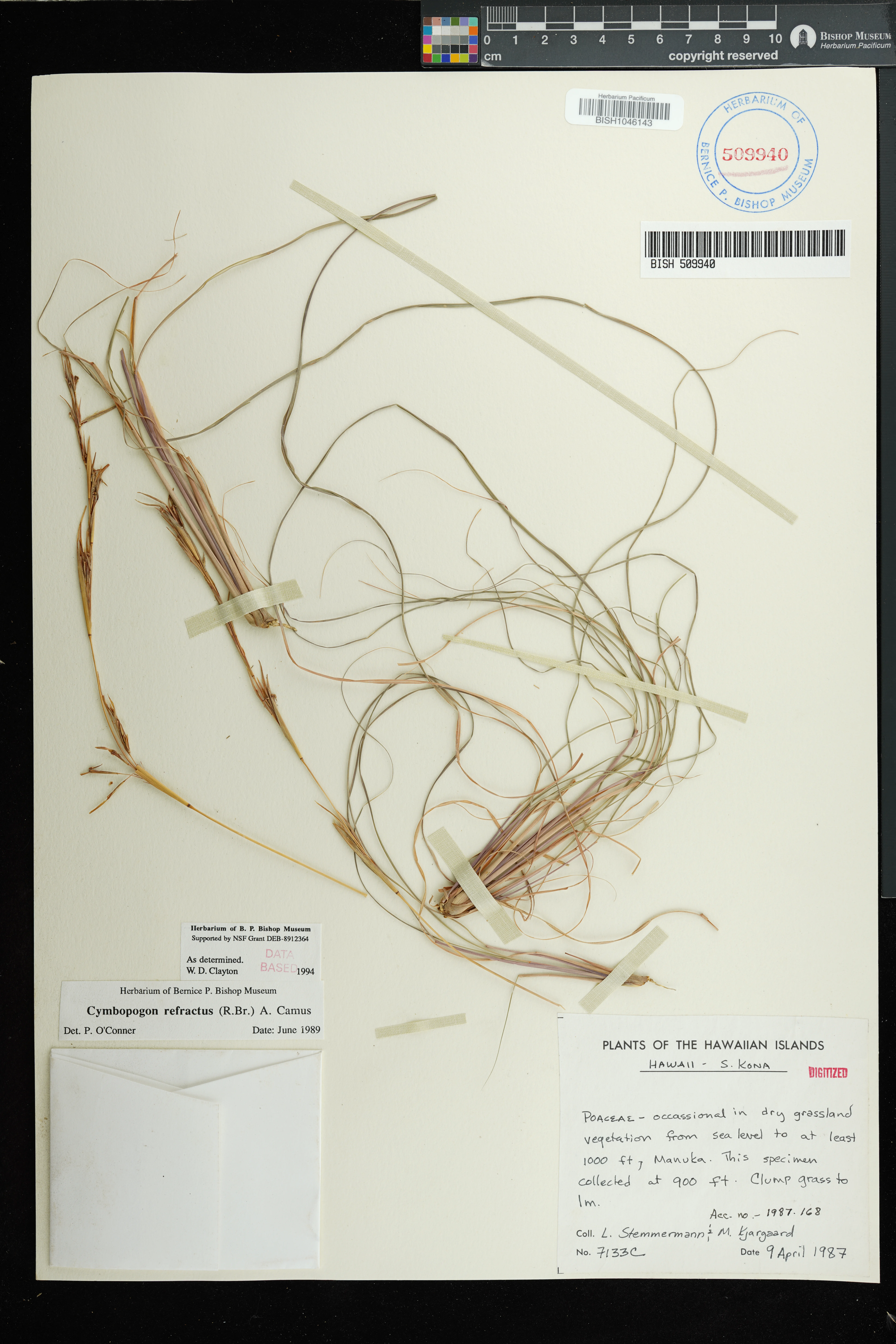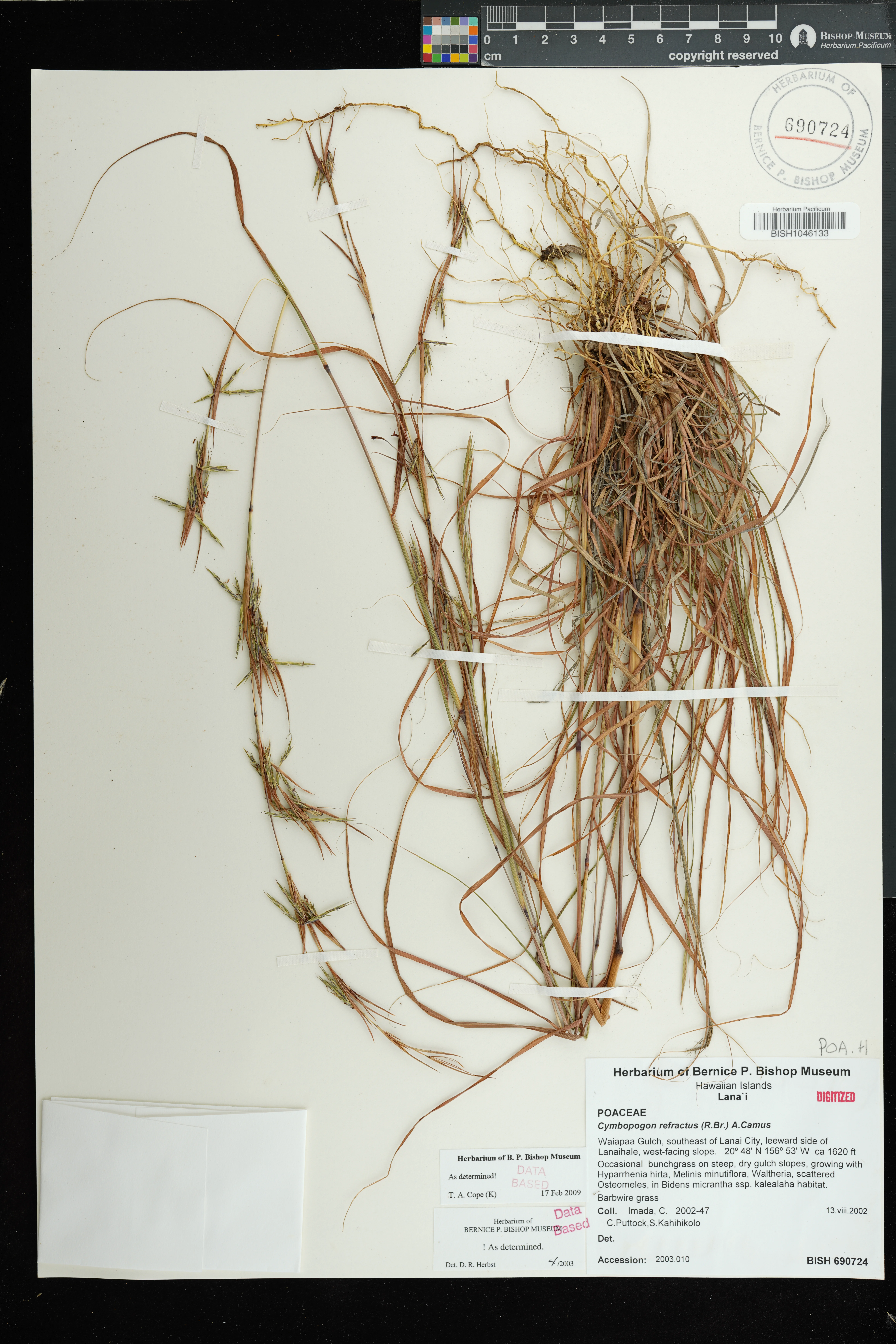 Occasional bunchgrass on steep, dry gulch slopes, growing with Hyparrhenia hirta, Melinis minutiflora, Waltheria, scattered Osteomeles, in Bidens micrantha ssp. kalealaha habitat. |